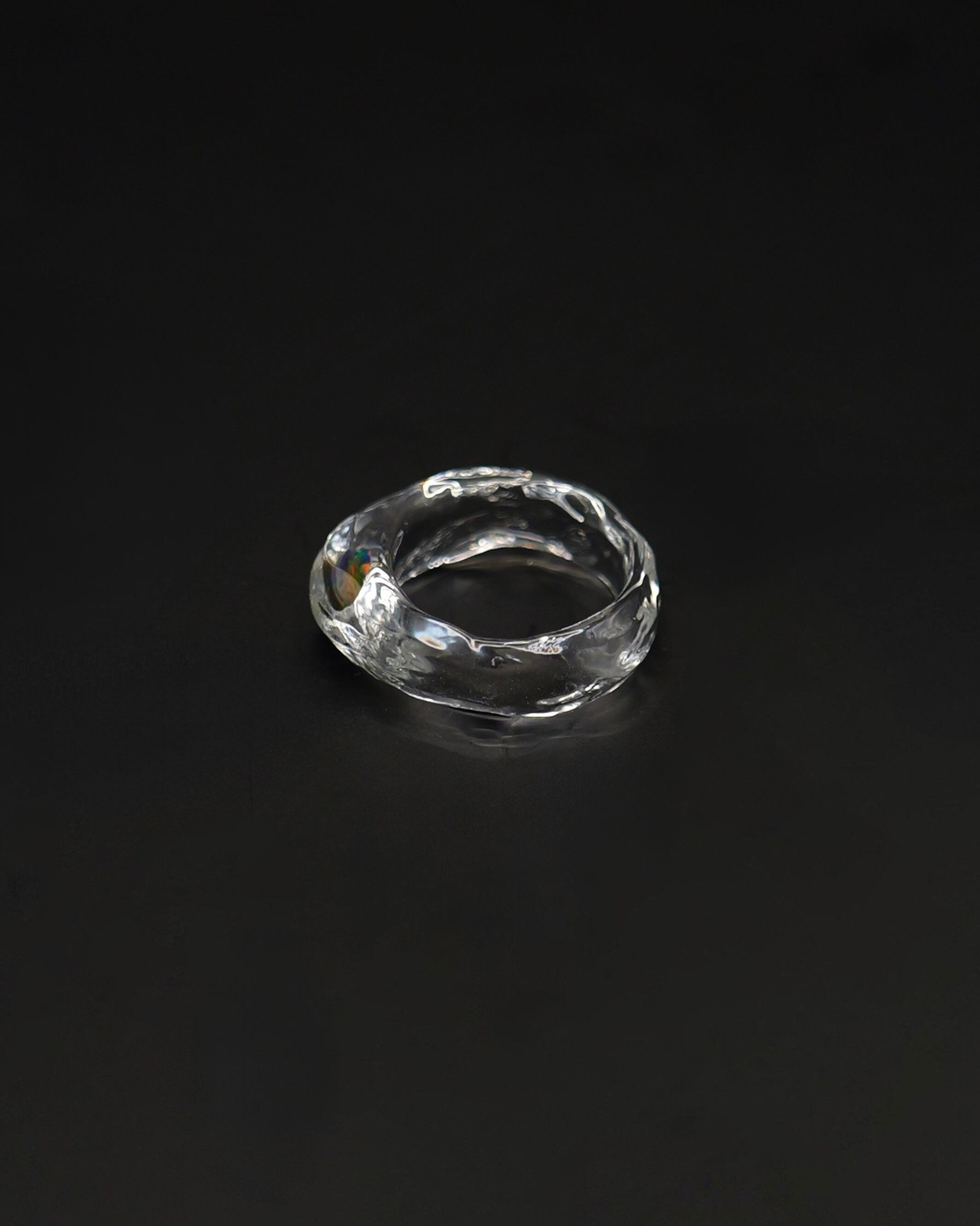 The ring’s main body is crafted from SENTE’s carefully selected optical glass, a special material composed with a higher concentration of silica—like that found in natural quartz—compared to ordinary glass. This composition allows for: