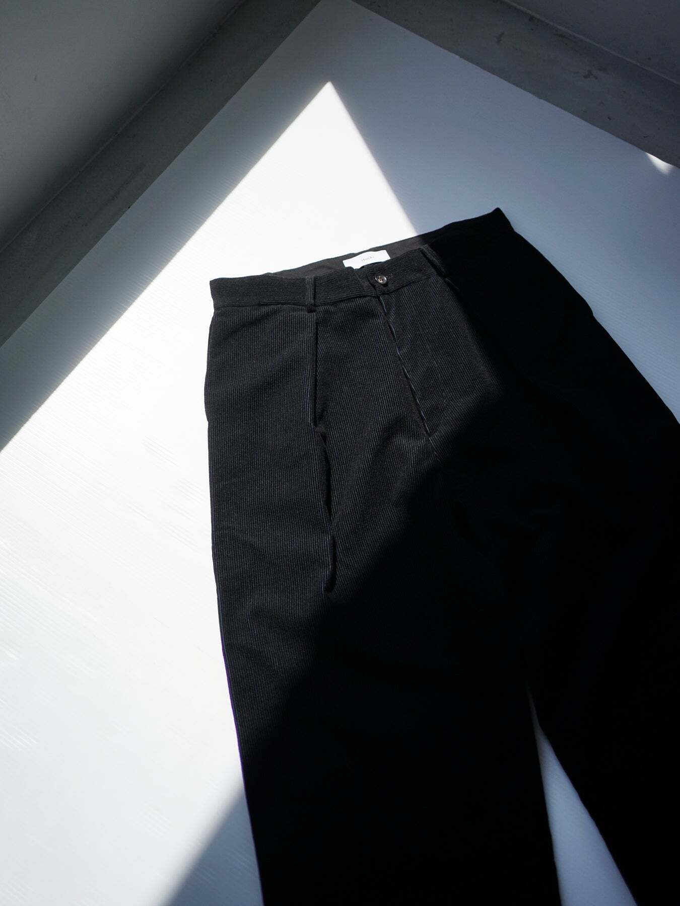 itochi - Wool & Cashmere Corduroy Tuck Slacks :Midnight|先染めネイビー/尾州×遠州/裏地付