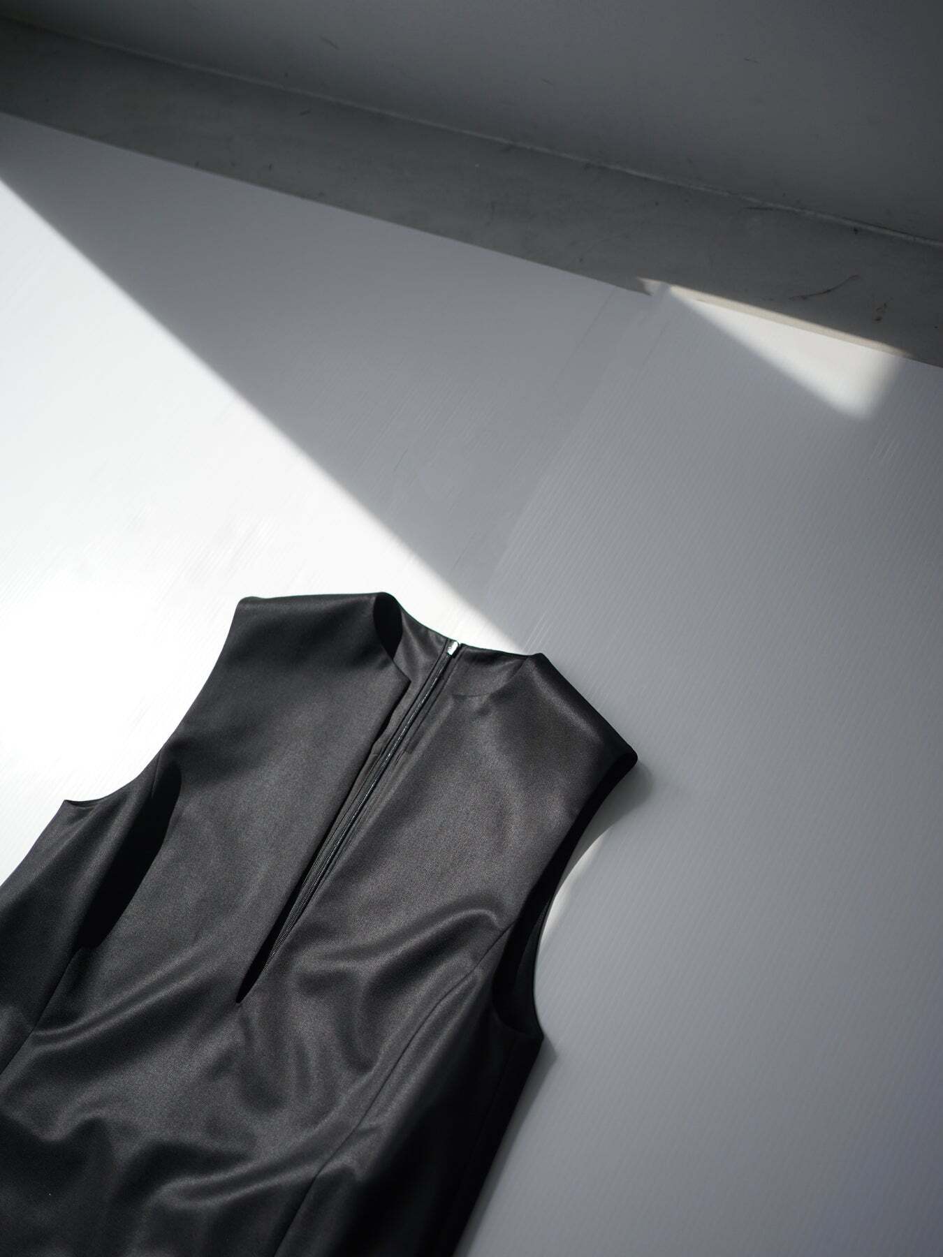 曲線と直線のバランス、そして生地のもつしなやかなハリが合わさることで、