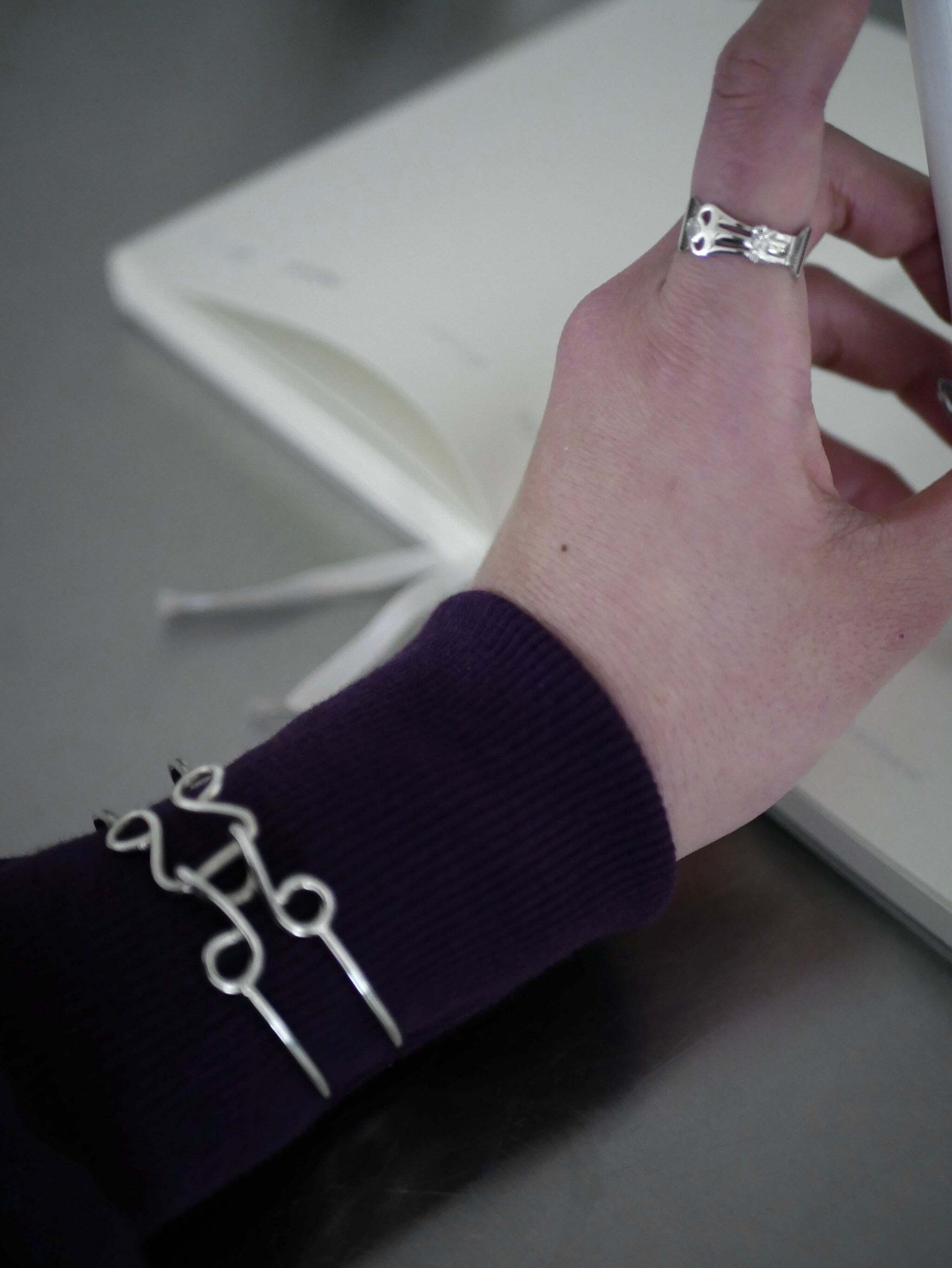 ・服飾用スプリングホックを再解釈した、ミニマルなフックバングル。