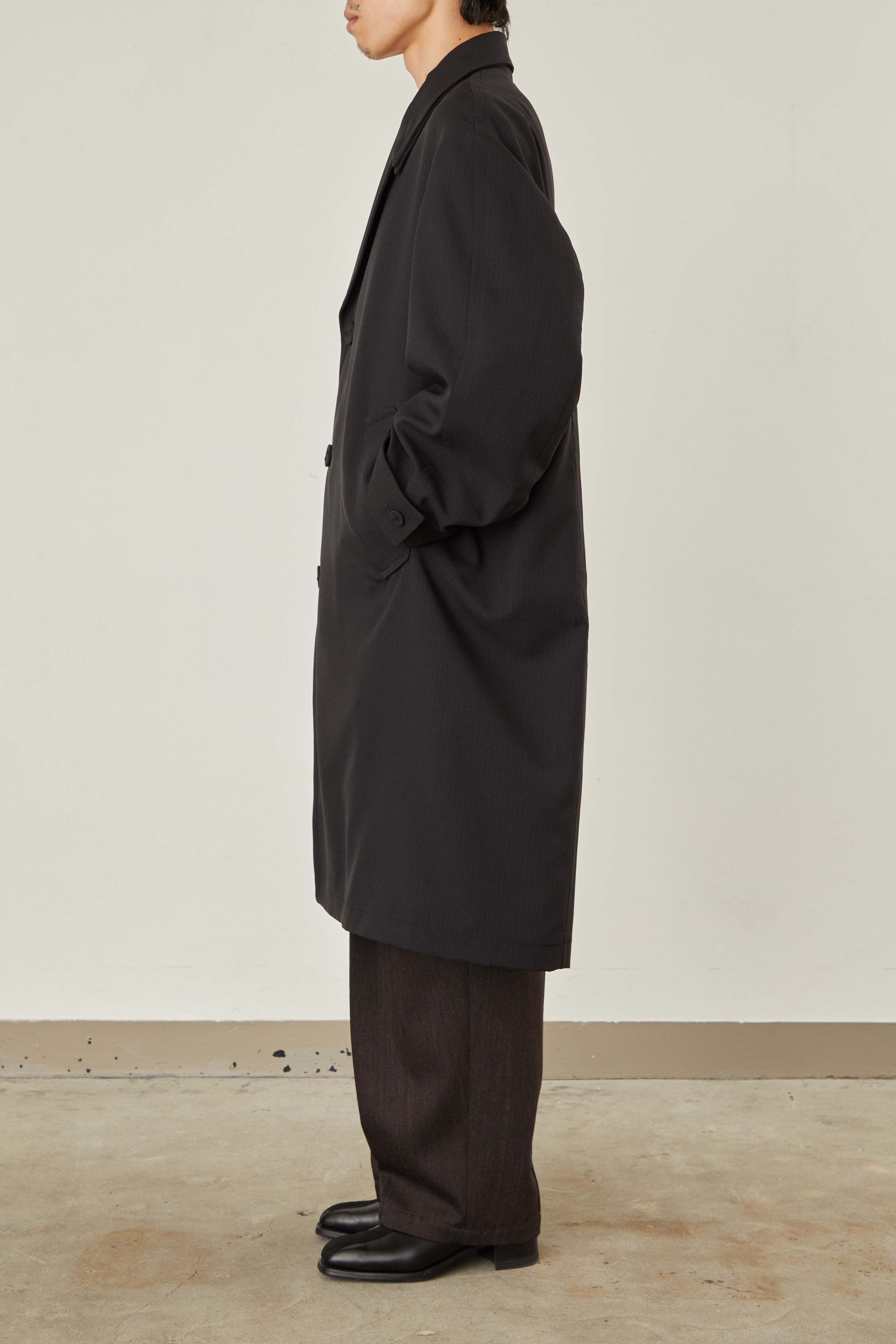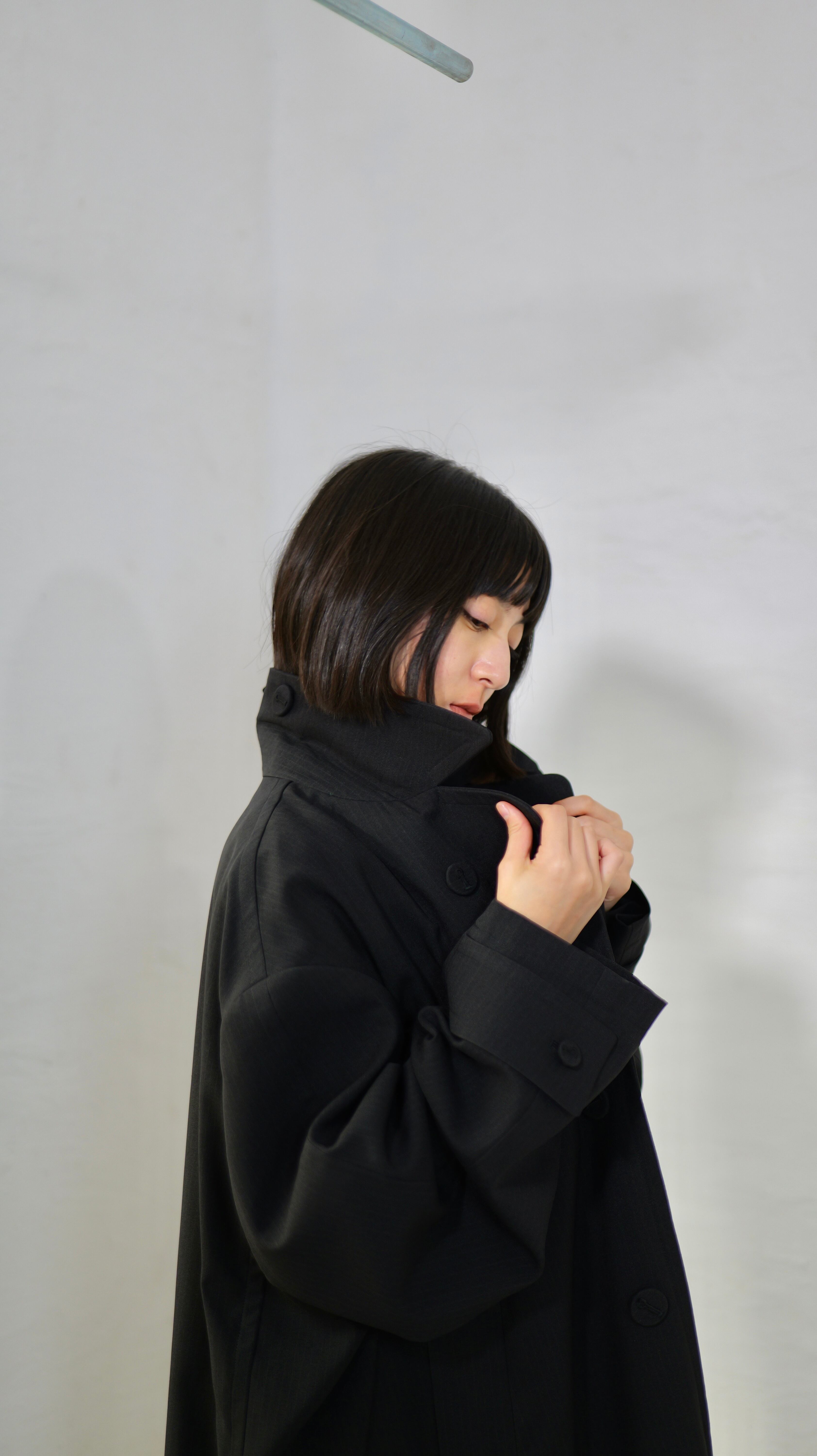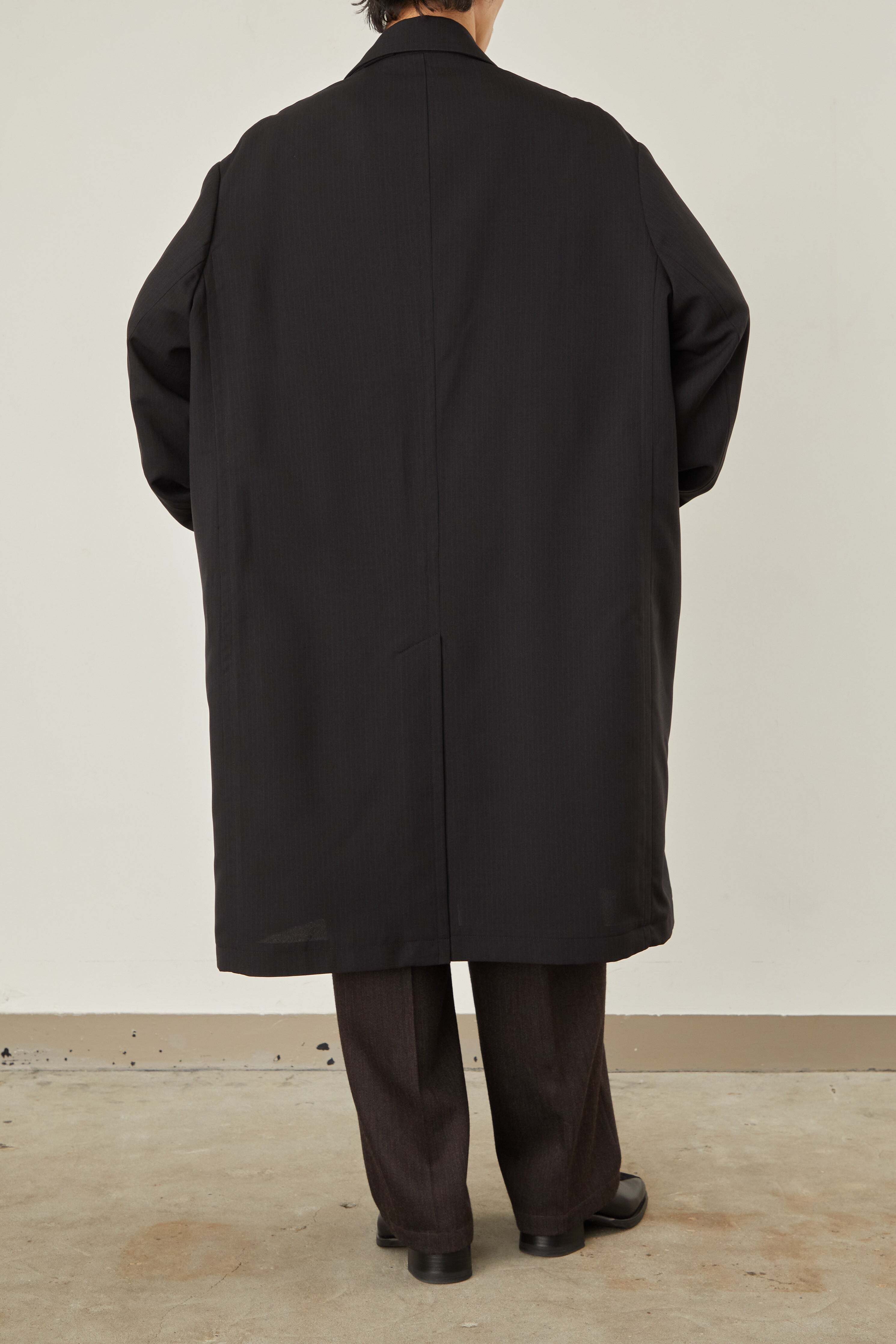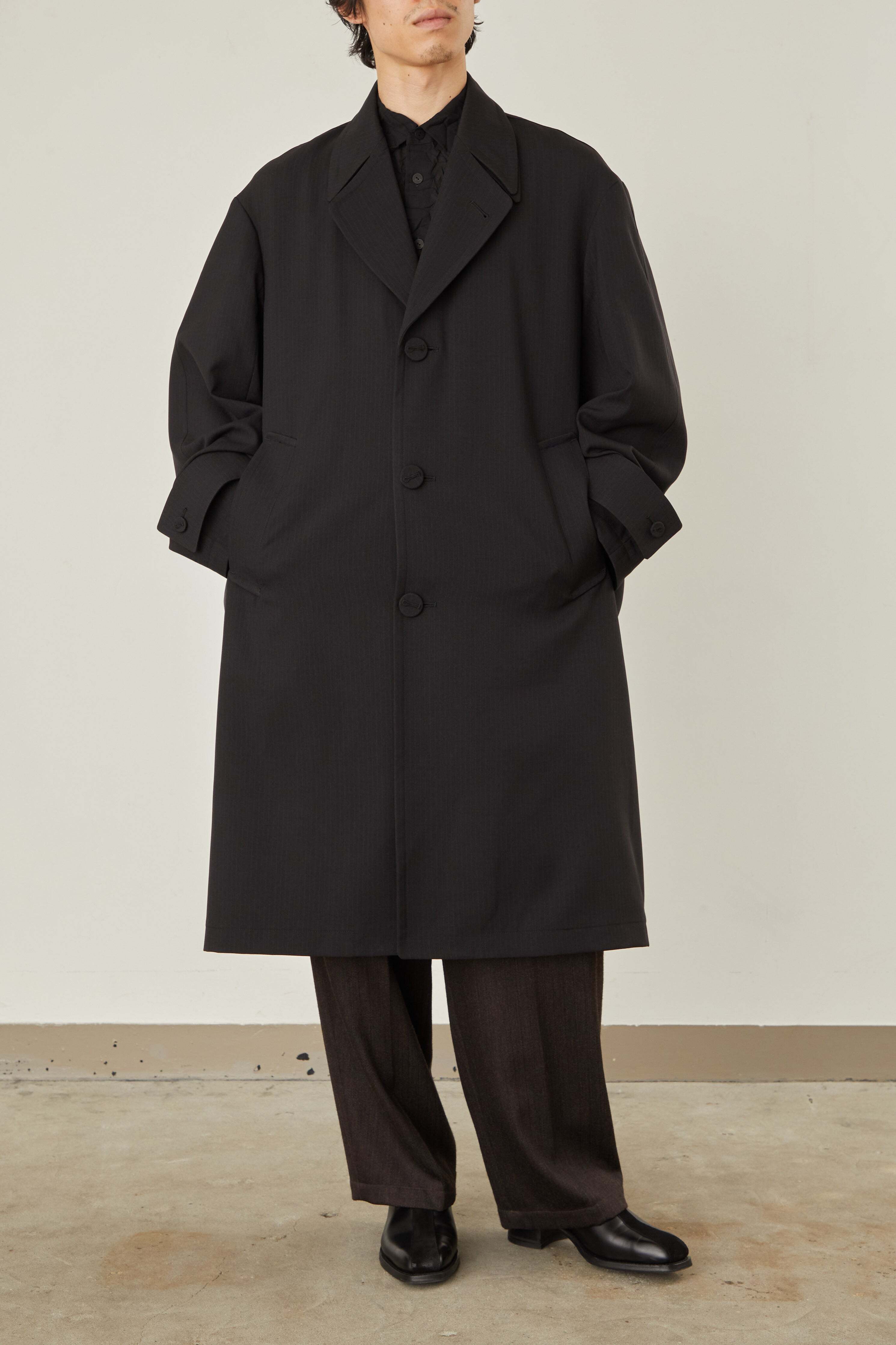 i’m here - GRANDPA COAT : 1 :Black|グランパコート/ロングコート/ユニセックス/ウールライクポリエステル(ストライプ見え)/トロンプルイユ刺繍