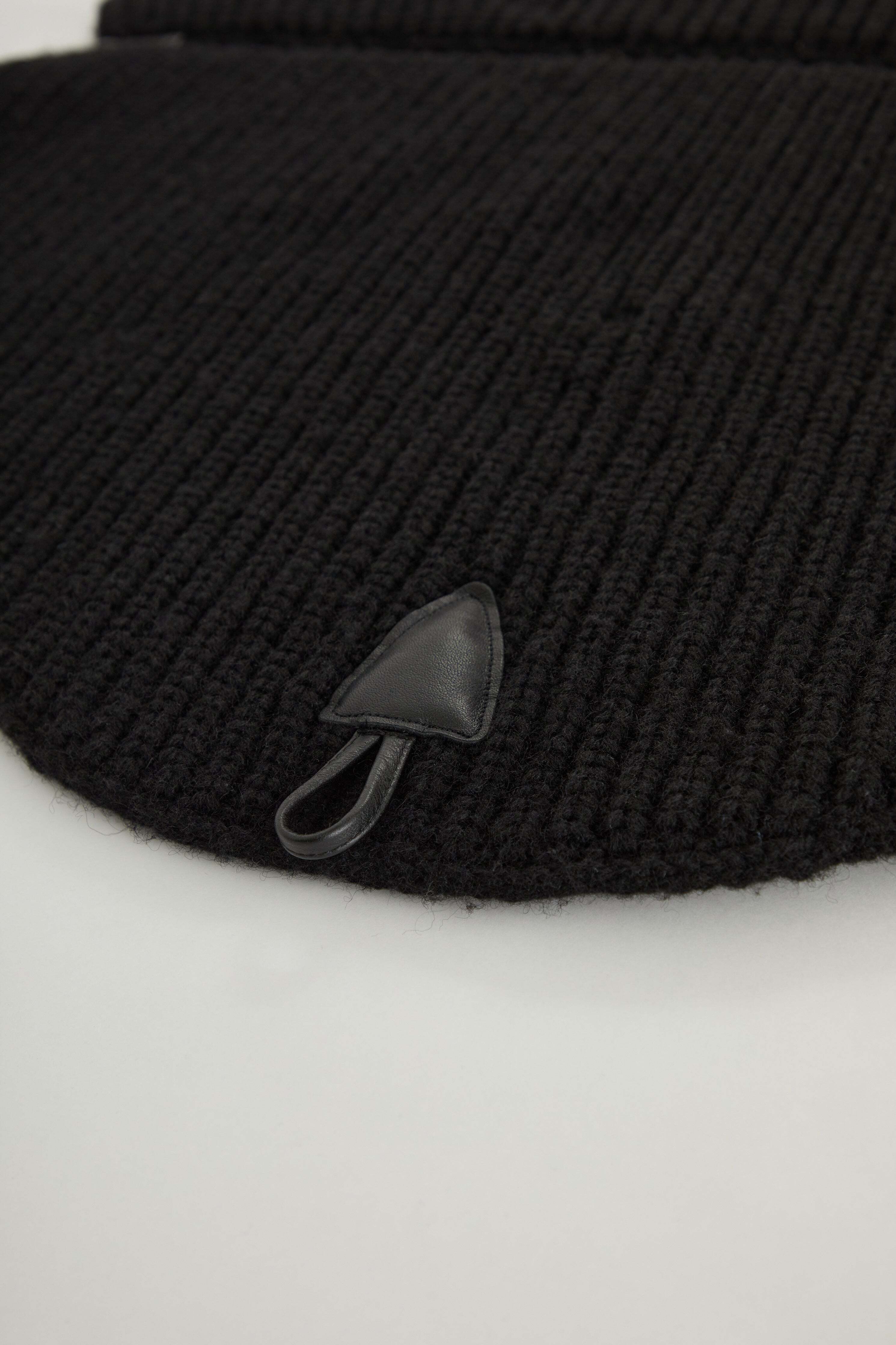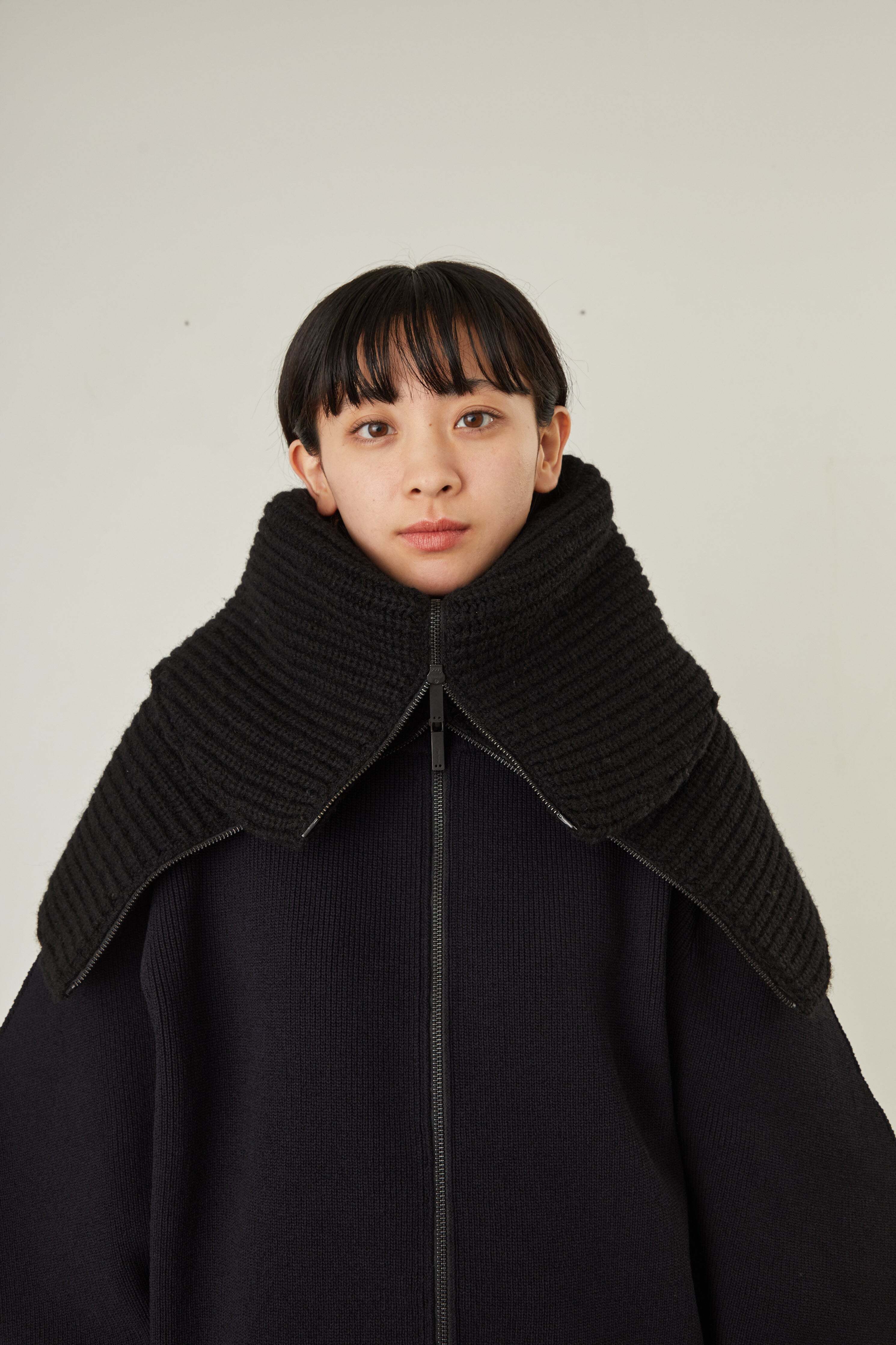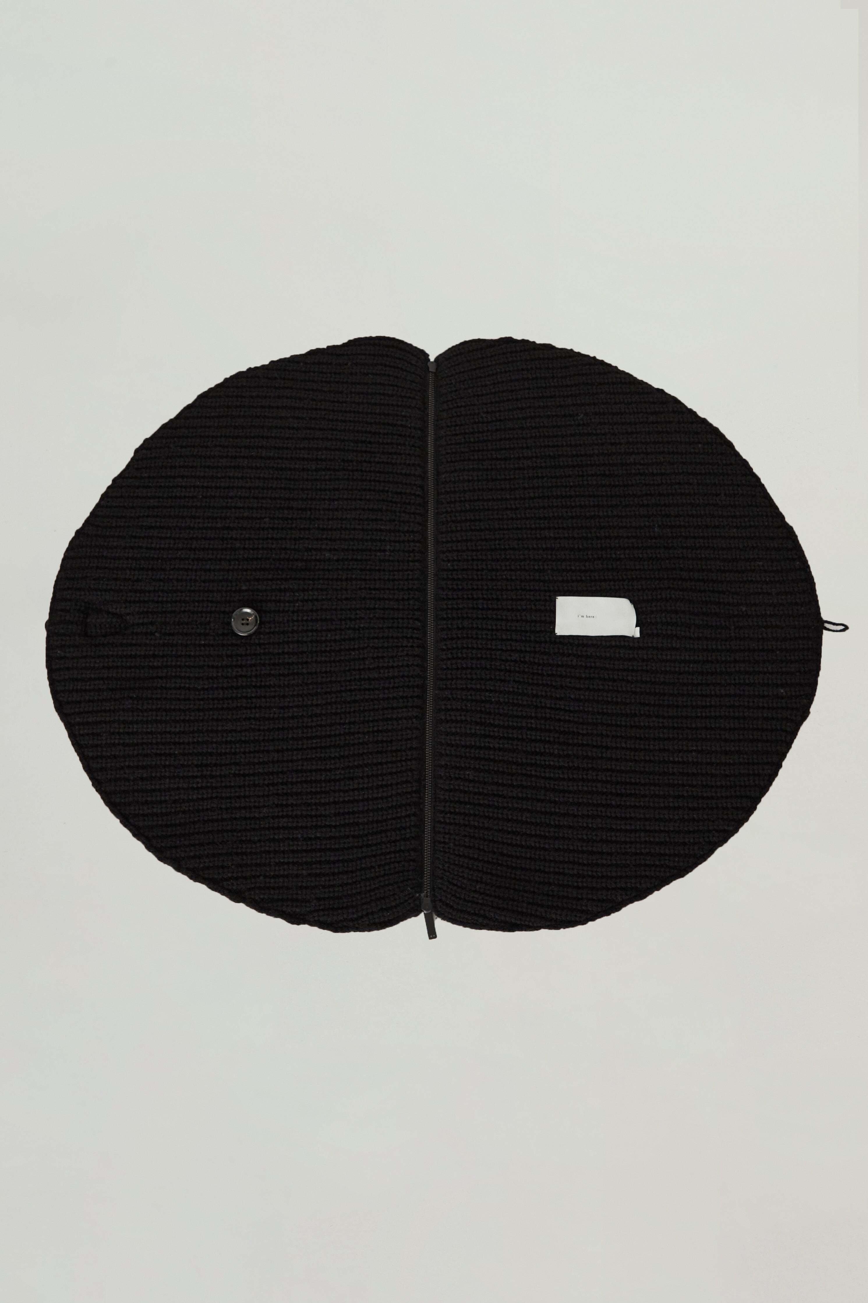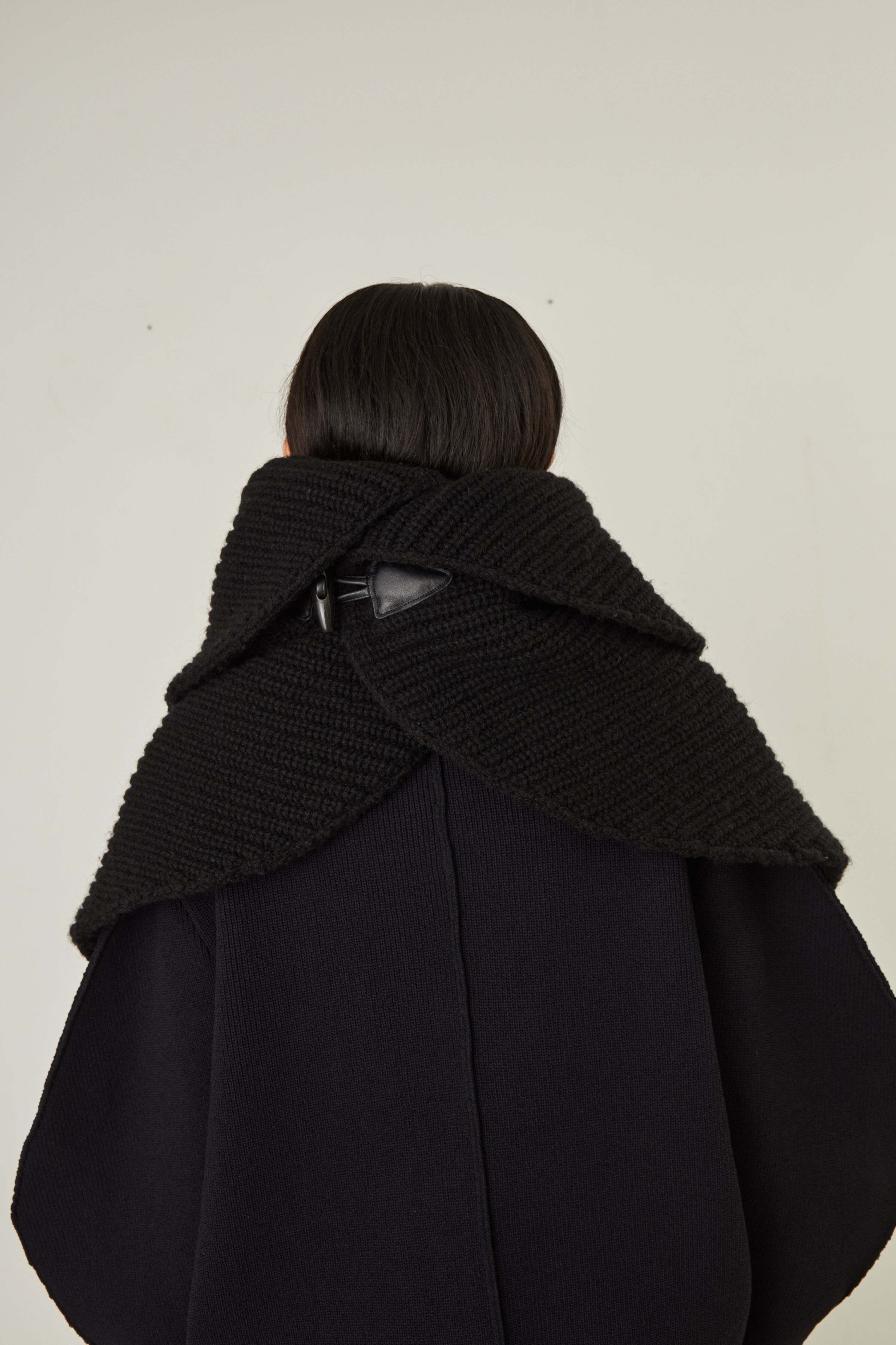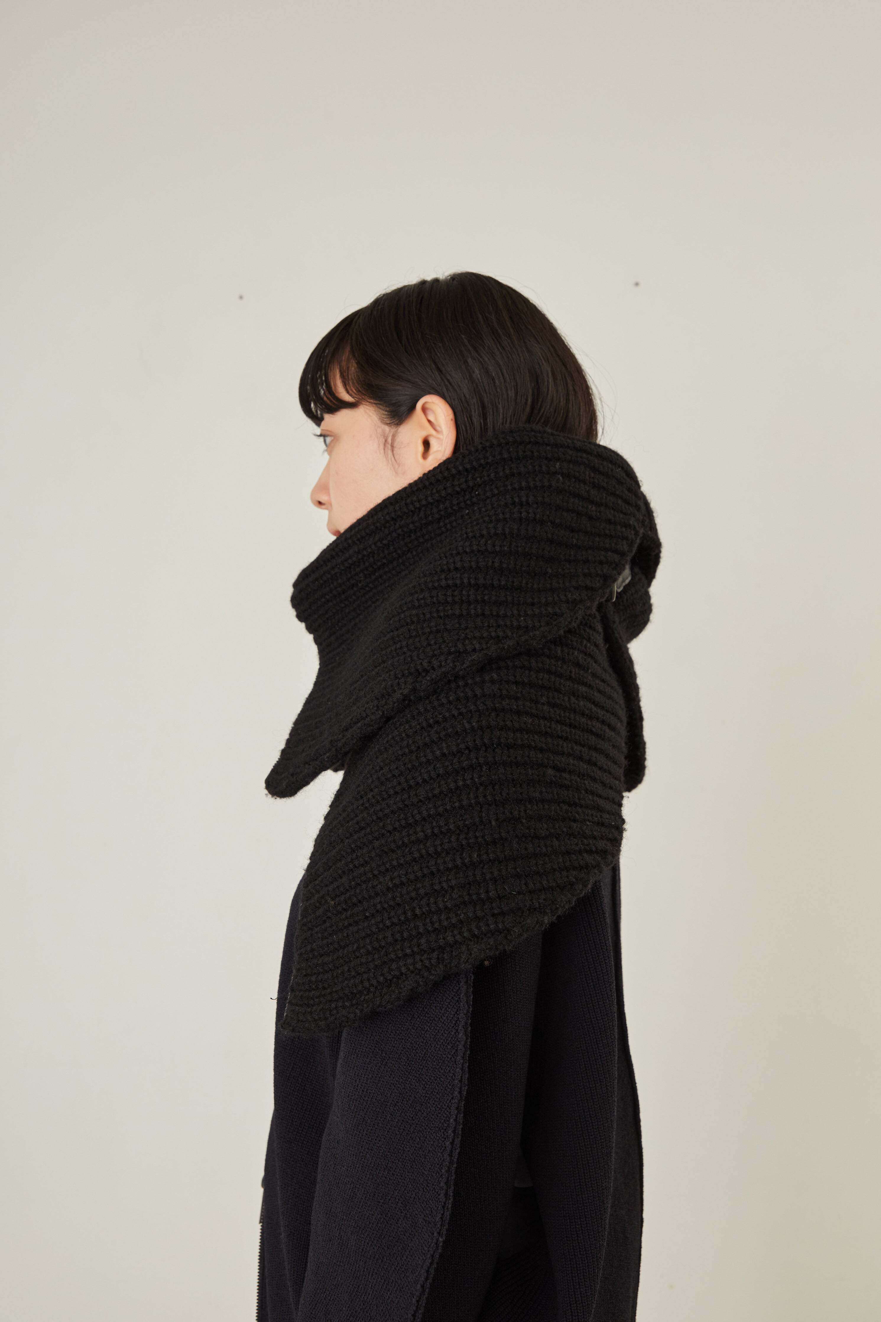 i’m here - Knit Snood(Crepe Wool-like) :Black|サークル状/片畦編み/ダブルジップ/ホーン・トグル/レザーパーツ
