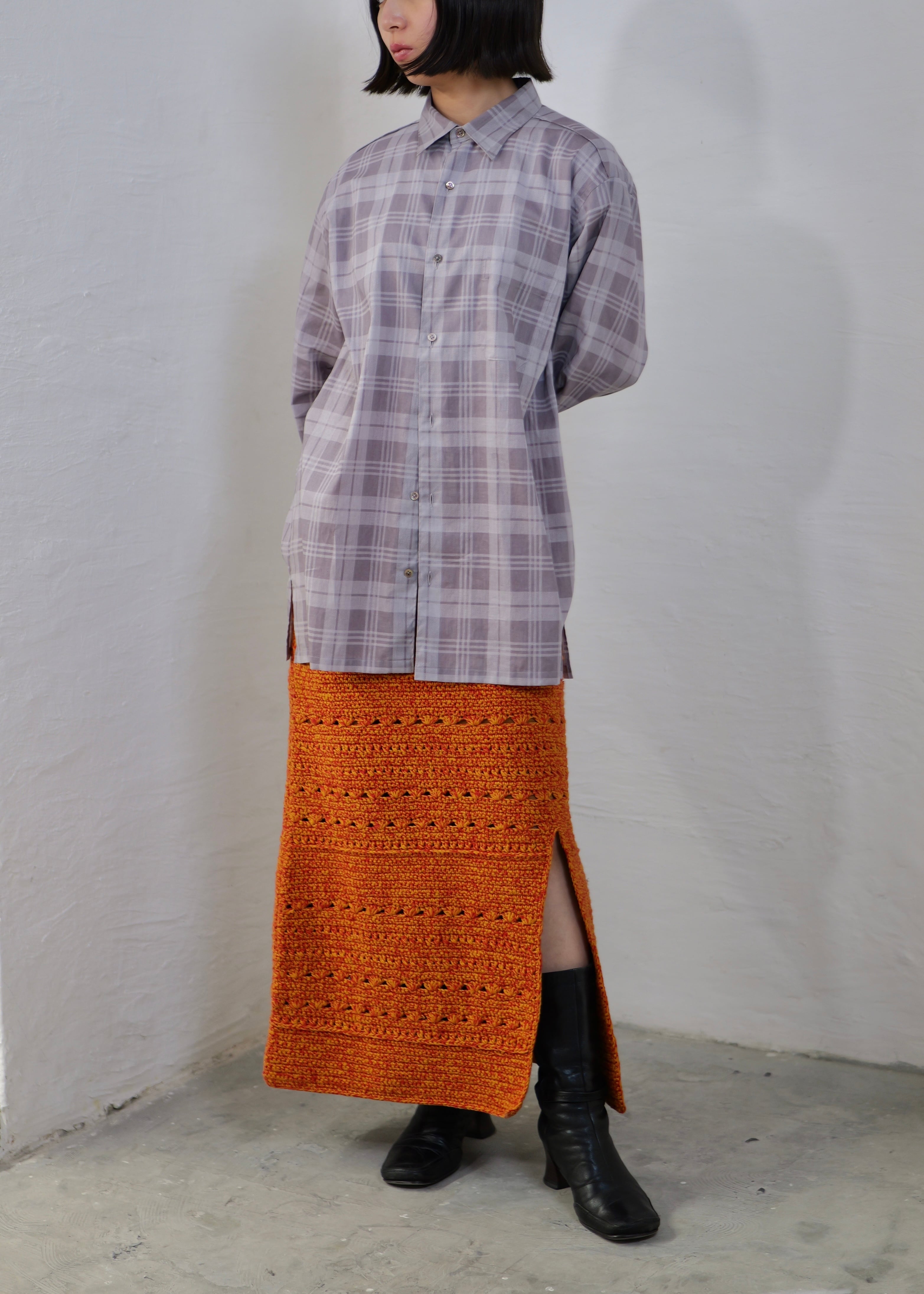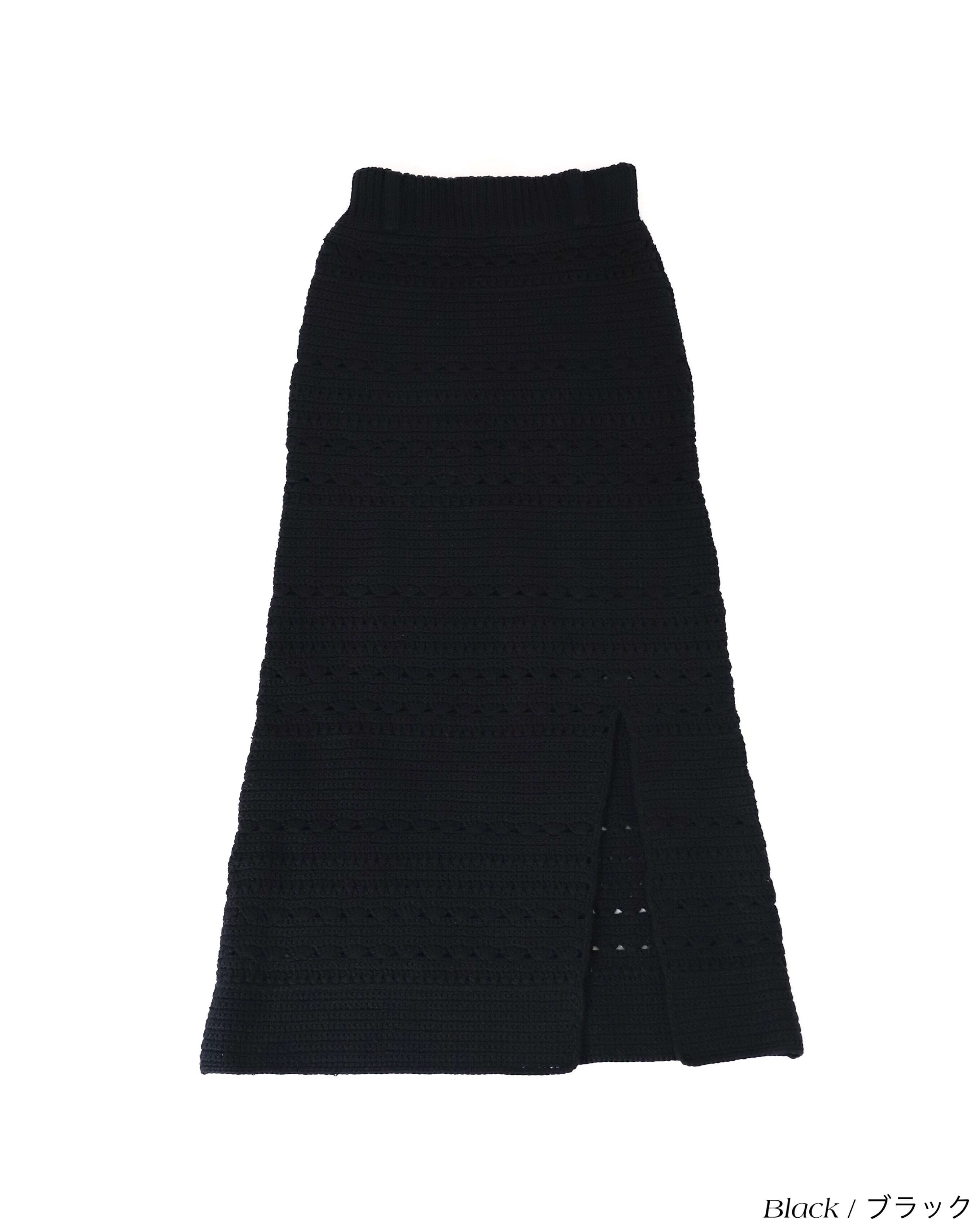 AMBERGLEAM - Hand Crochet Skirt :black|手編みクロシェ/可変スリット/裏地付き/綿100%