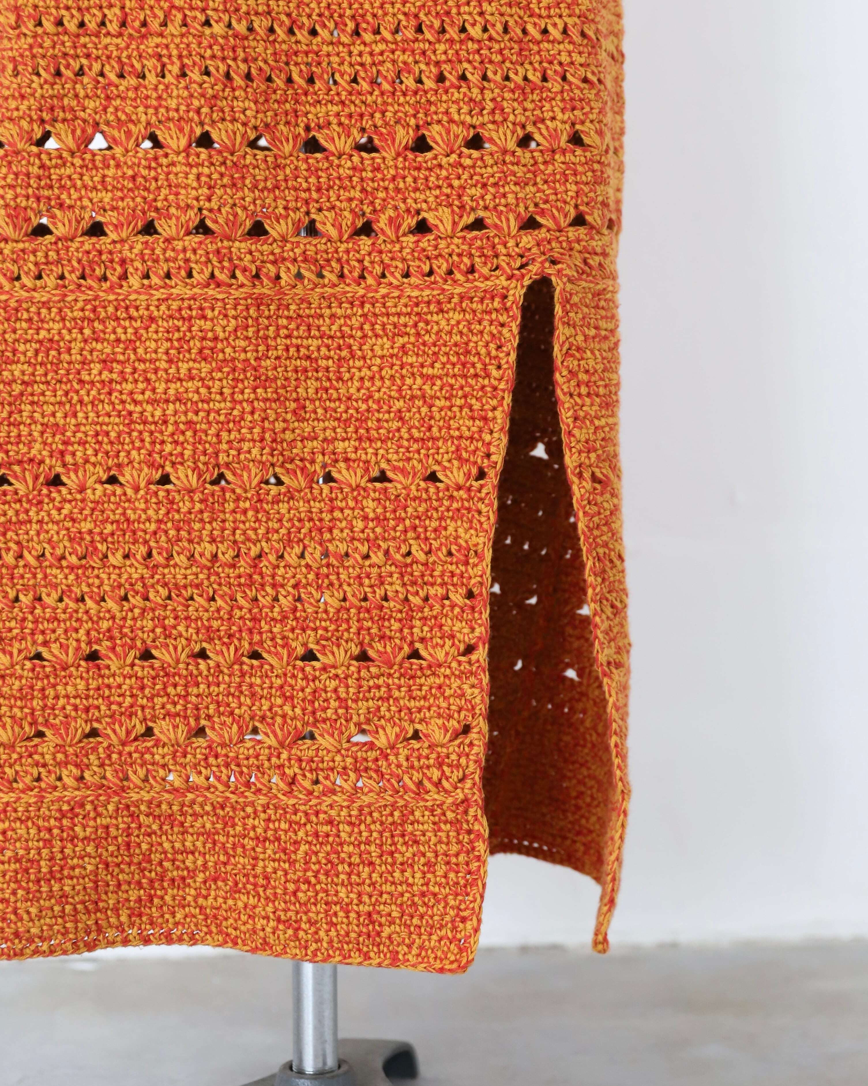 Artisan hand-crochet; belt loops; adjustable slit (front/back/sides); all-round elastic waist with anti-twist stitching; secured lining for stress-free wear.