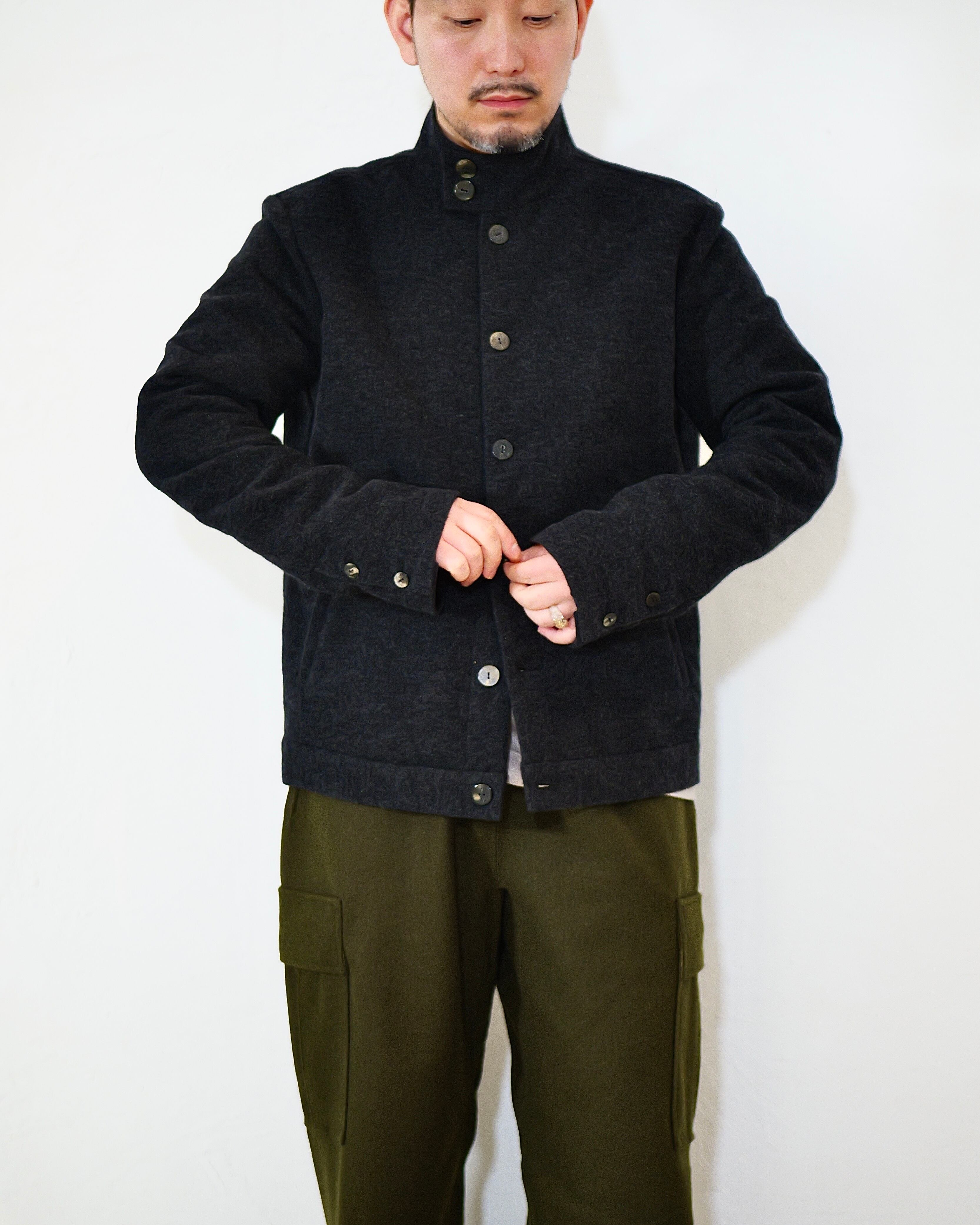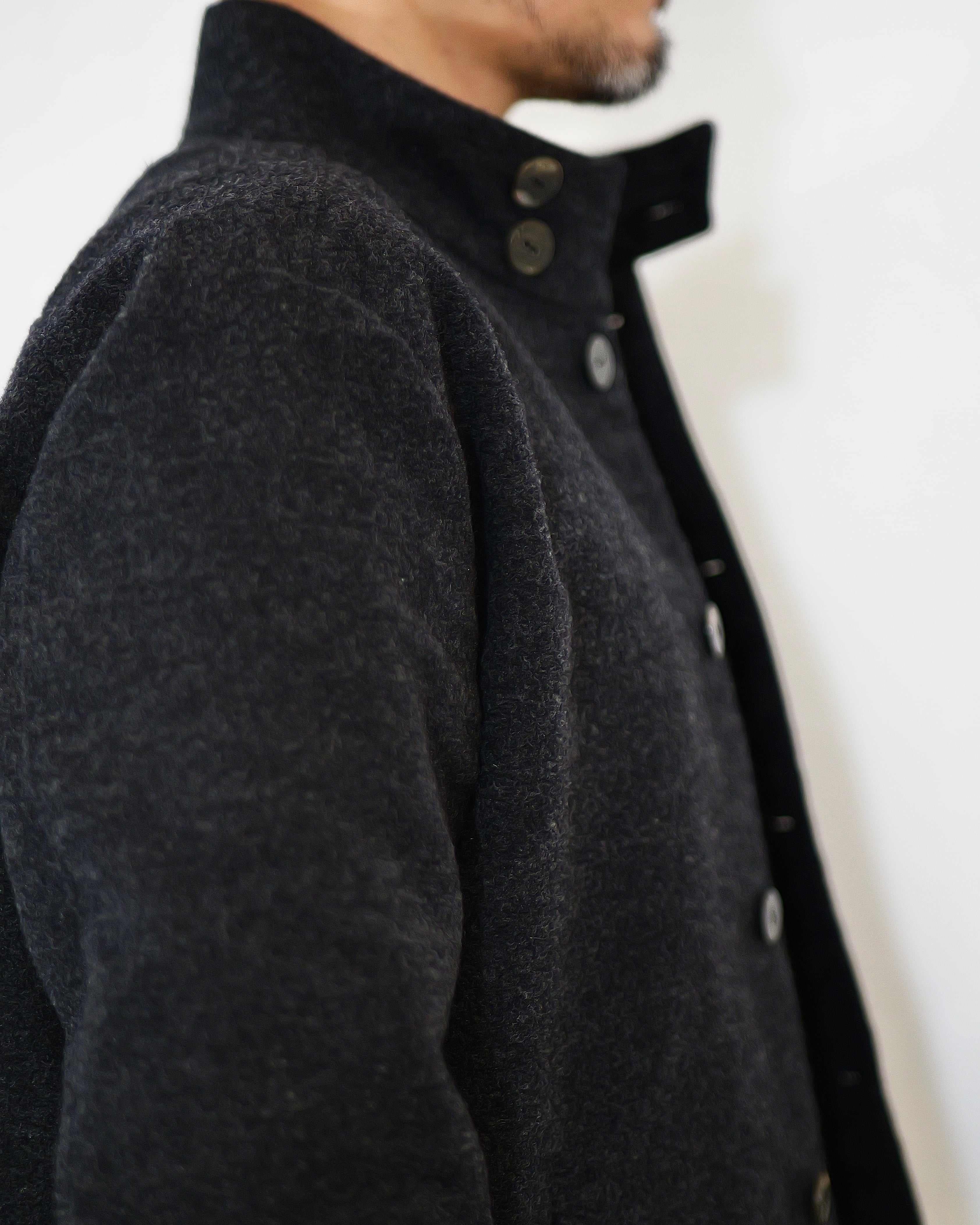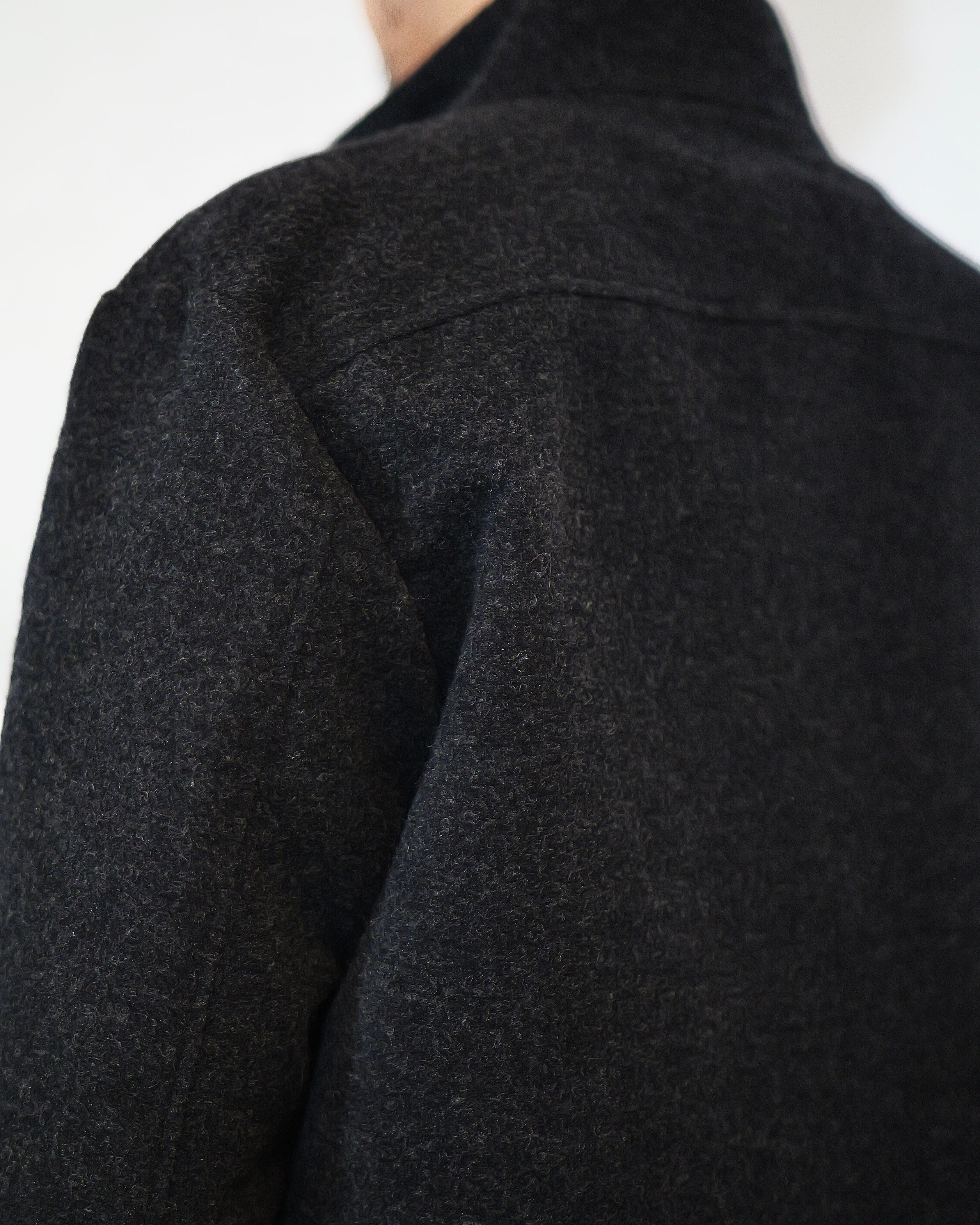 kujaku - Box Silhouette Wool Jacket :Black|二重織り/裏起毛“表使い”/バイオウォッシュ