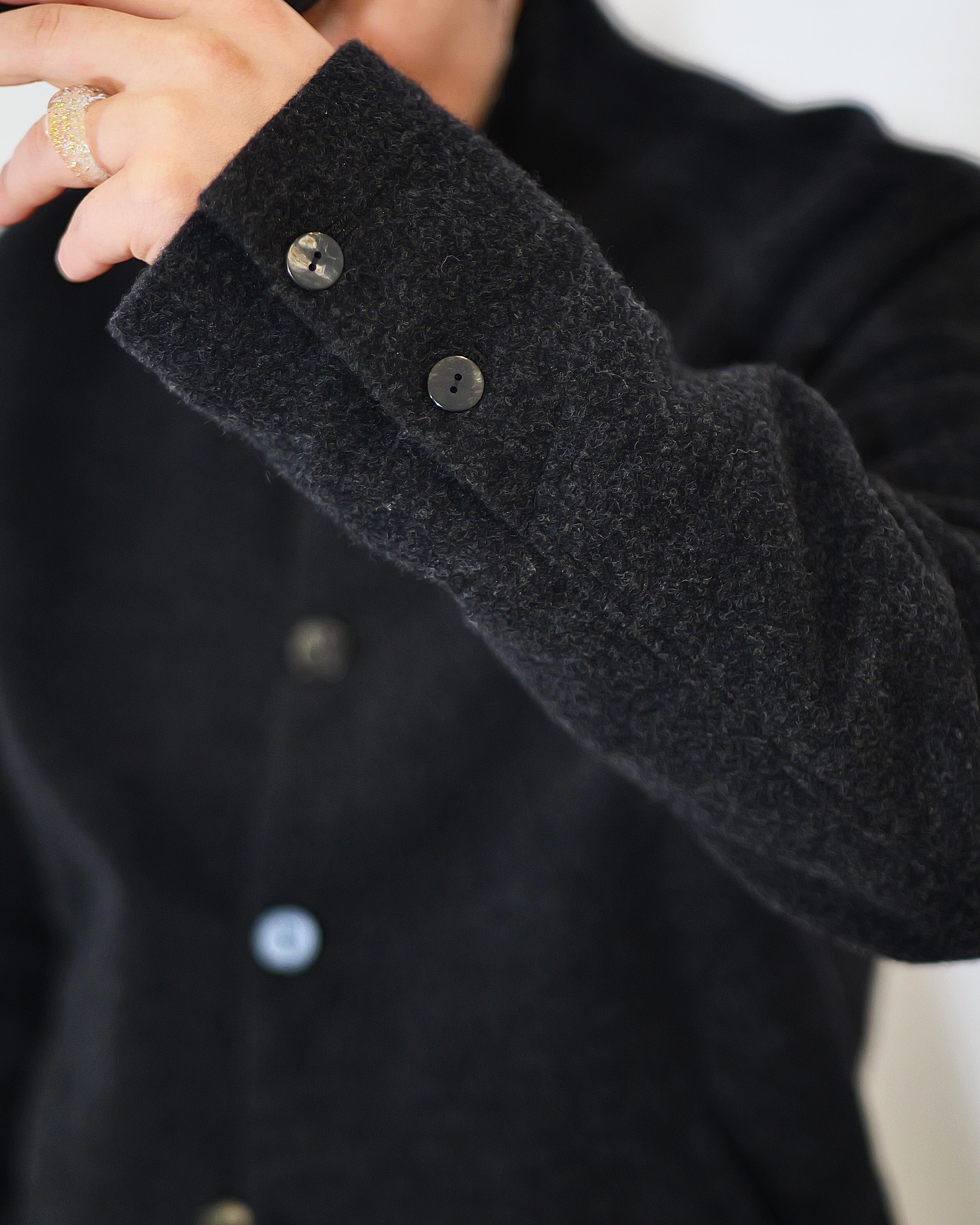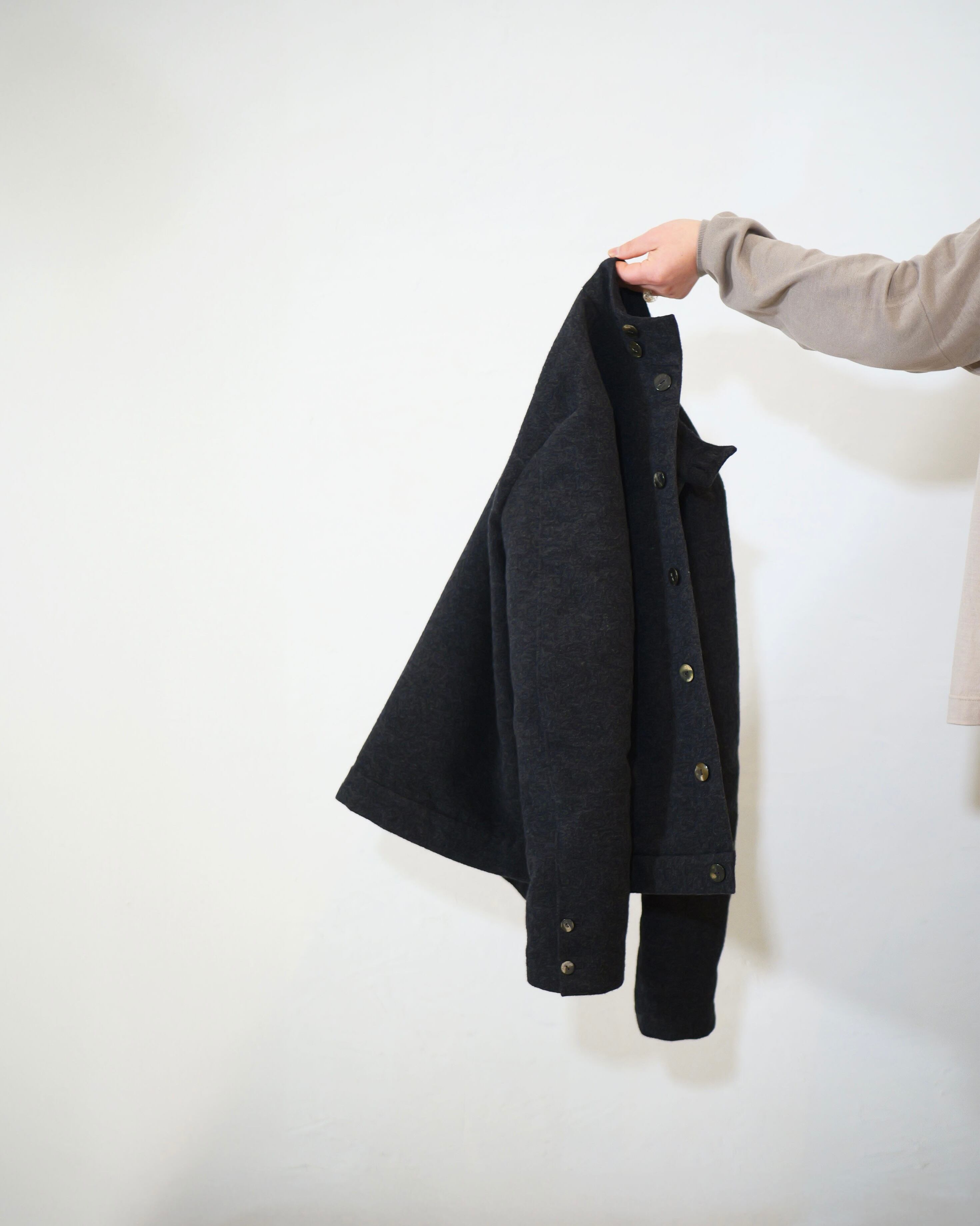 kujaku - Box Silhouette Wool Jacket : Black | Double Weave / Brushed-Reverse Face / Bio-washed