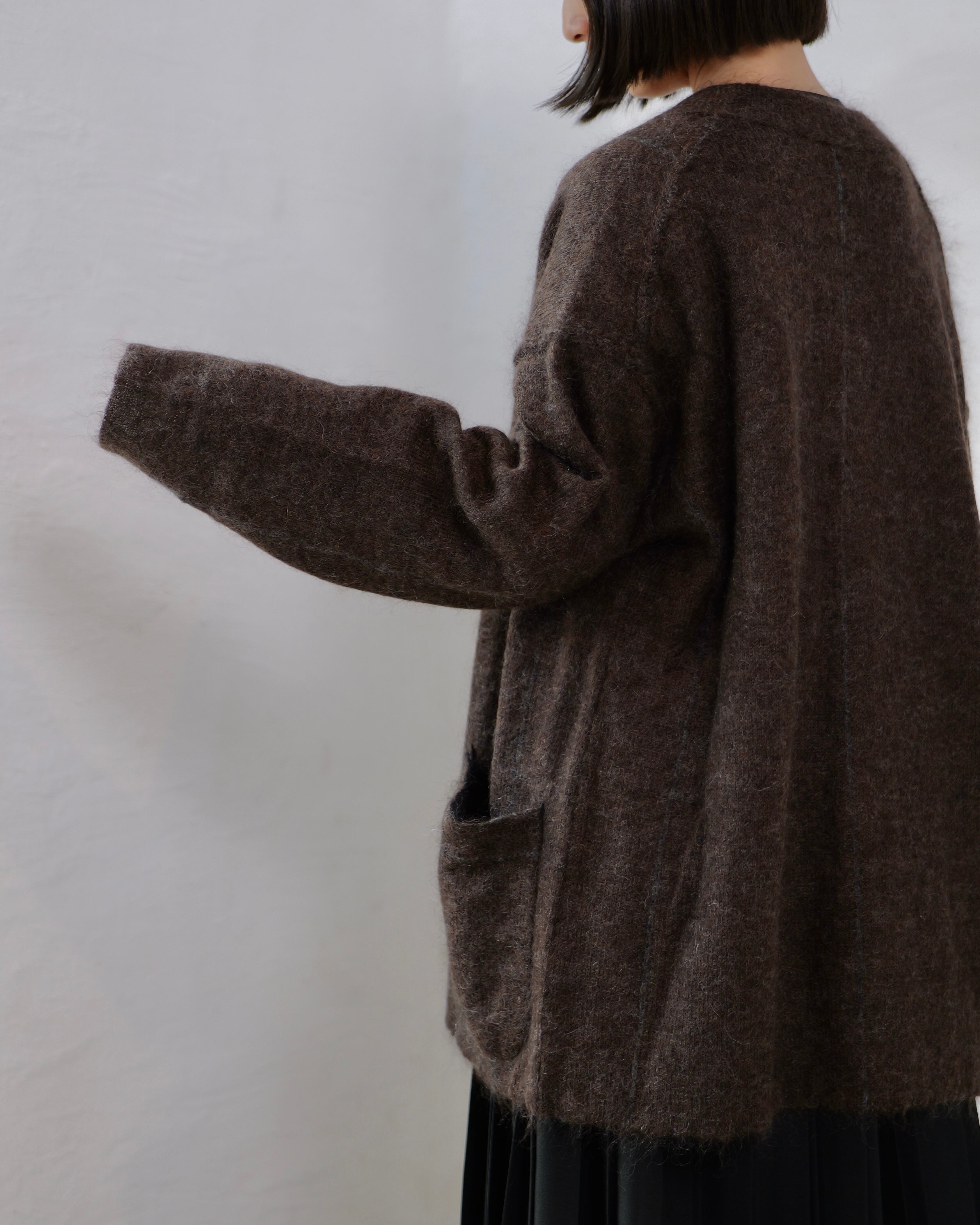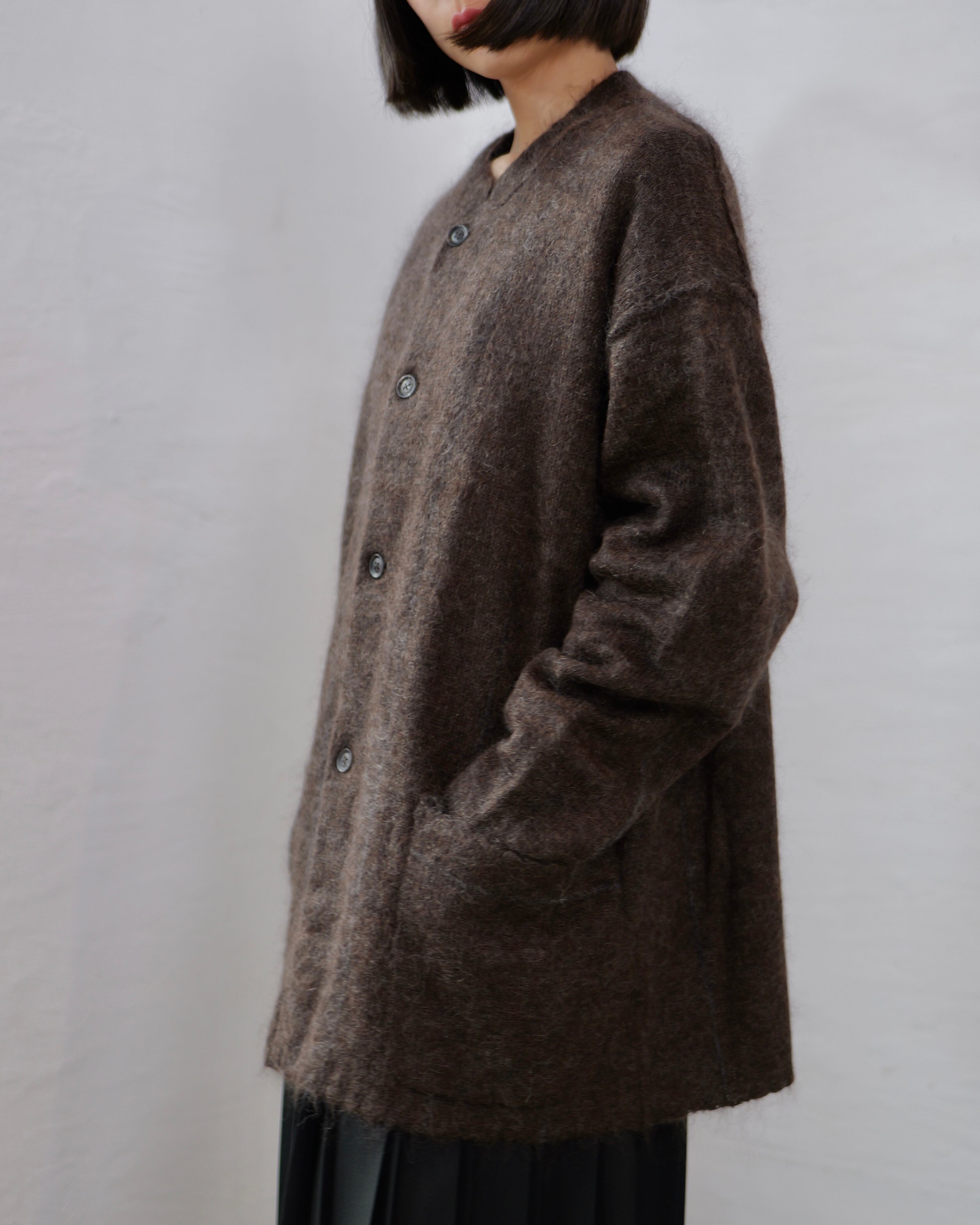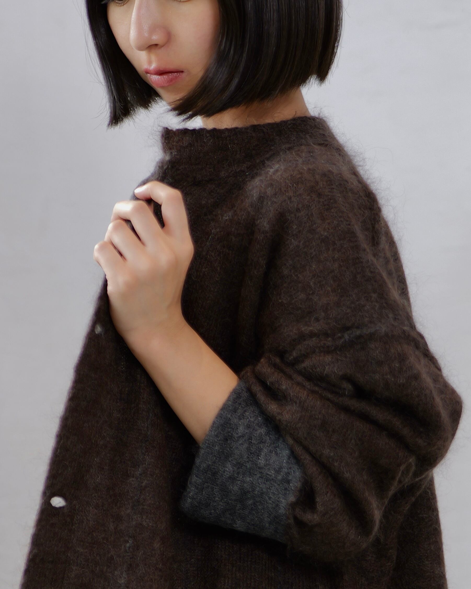 MAYKAM - MOHAIR STAND COLLAR JACKET :BROWN|キッドモヘア/二重袋編みスタンドカラー