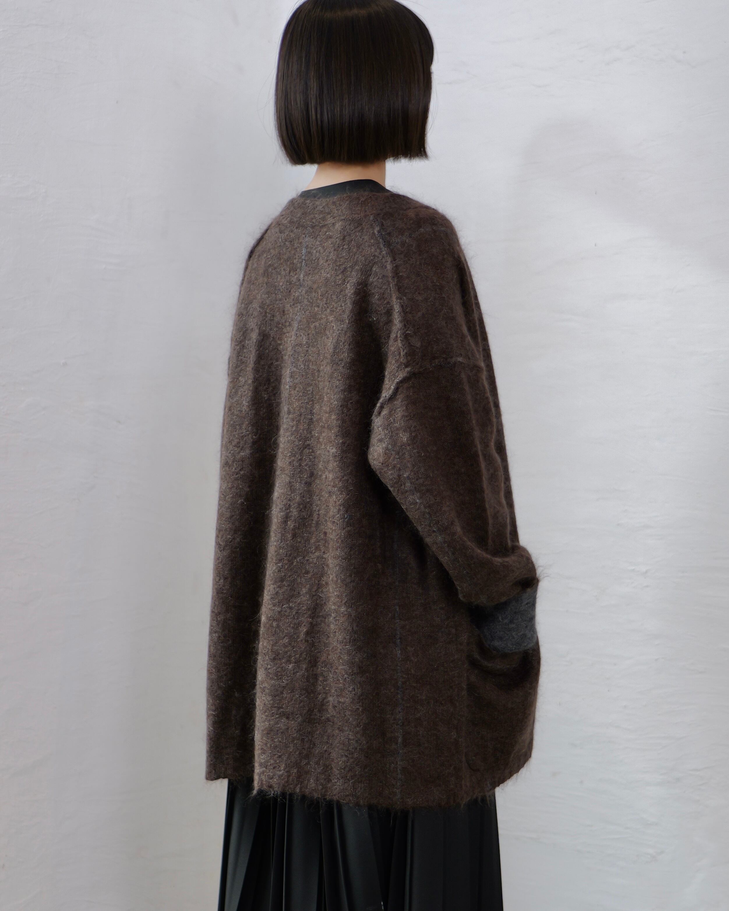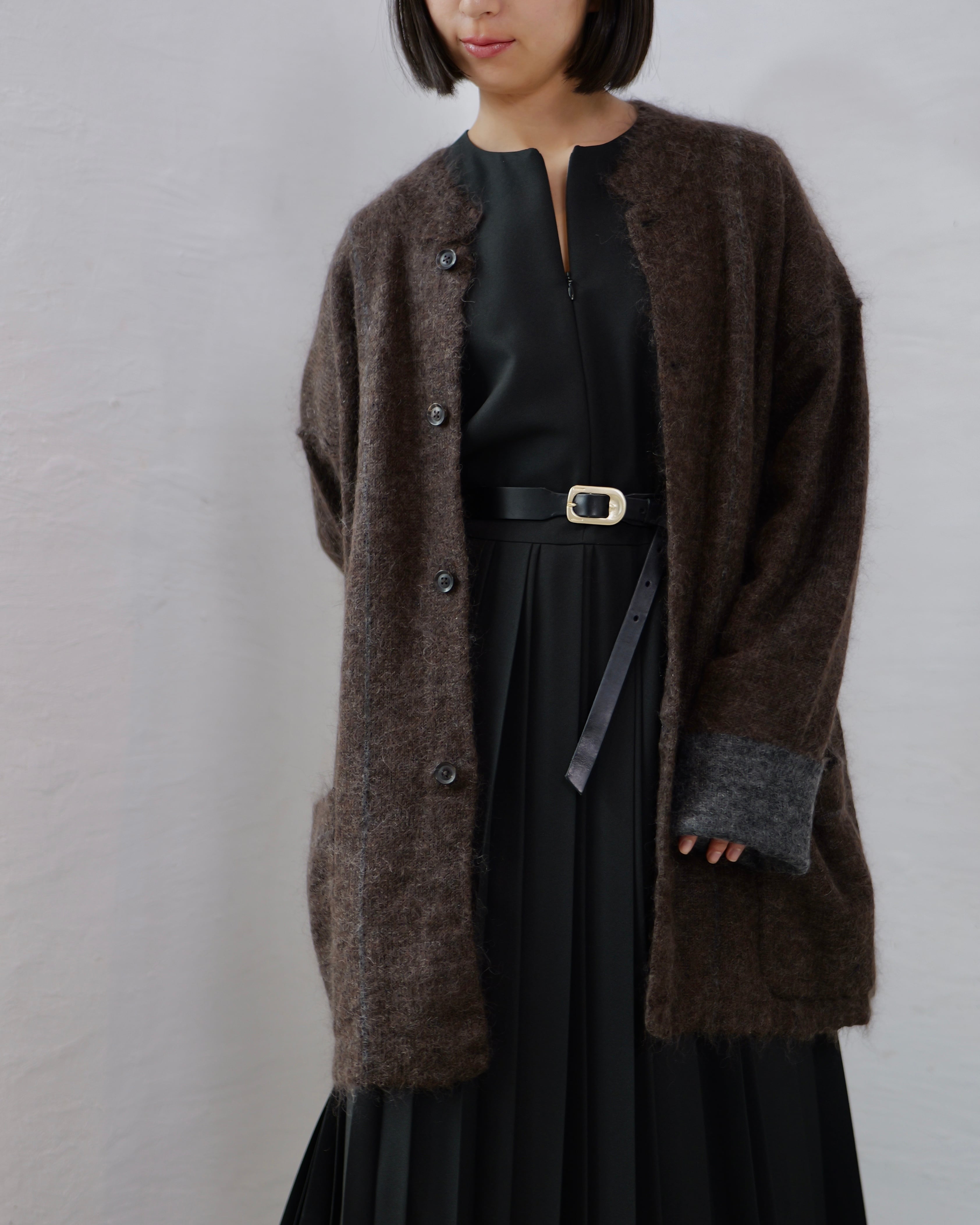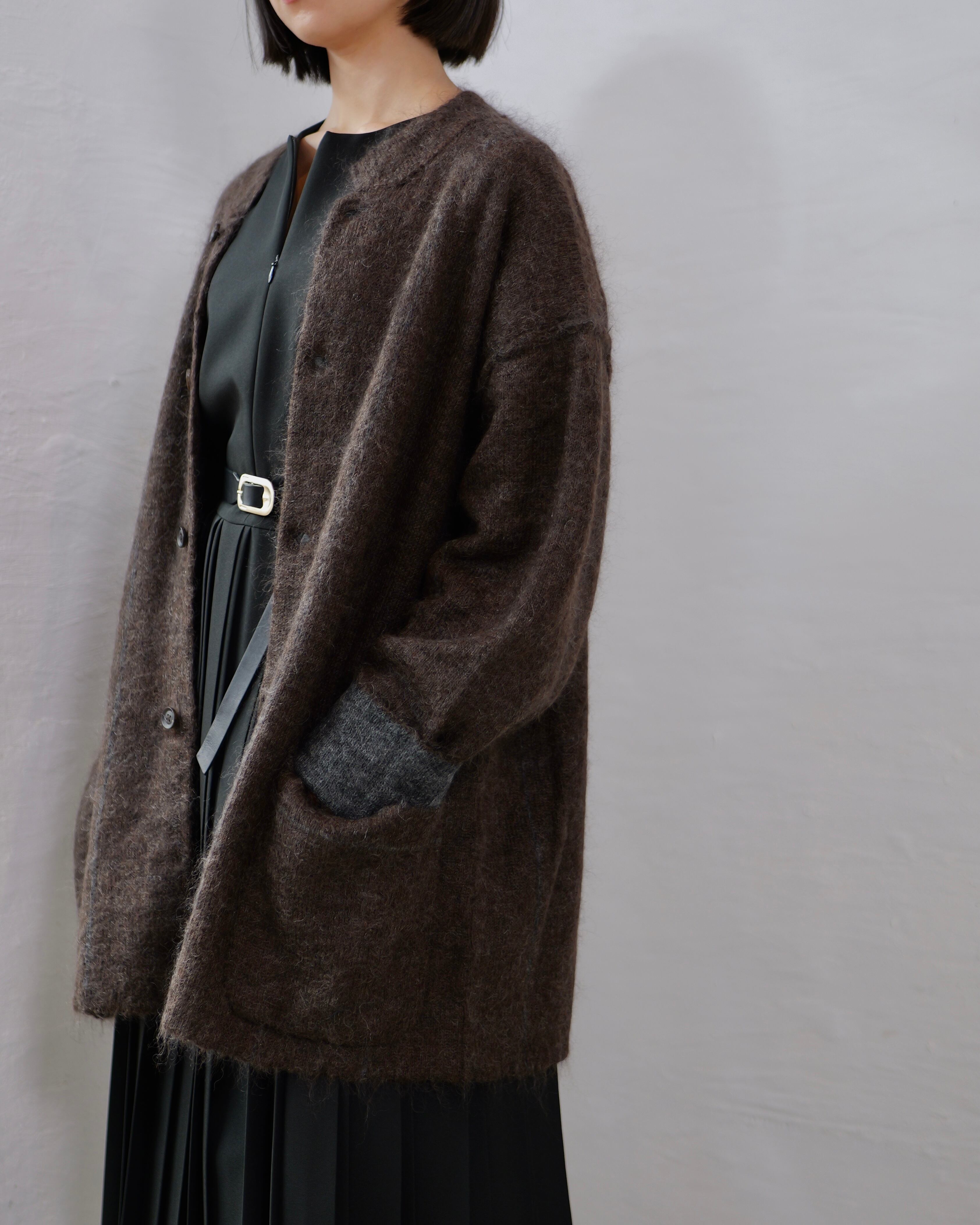 MAYKAM - MOHAIR STAND COLLAR JACKET :BROWN|キッドモヘア/二重袋編みスタンドカラー