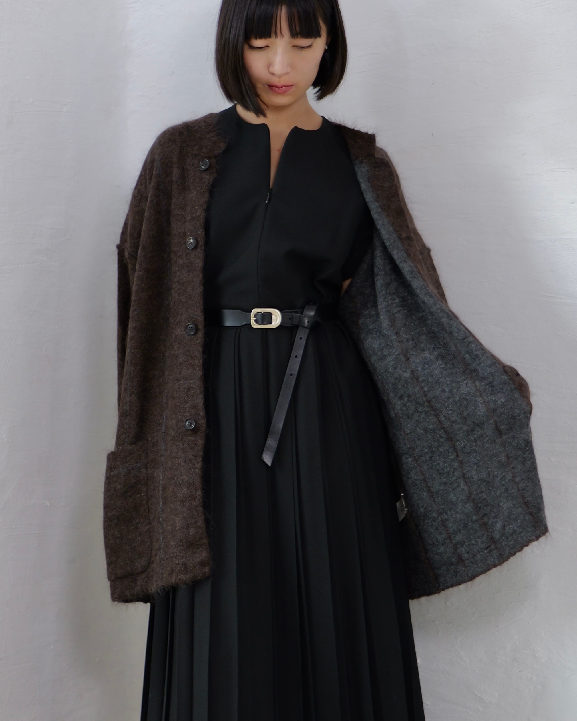 毛足の長いキッドモヘアを使用し、軽やかさと上品なボリューム感を両立。
