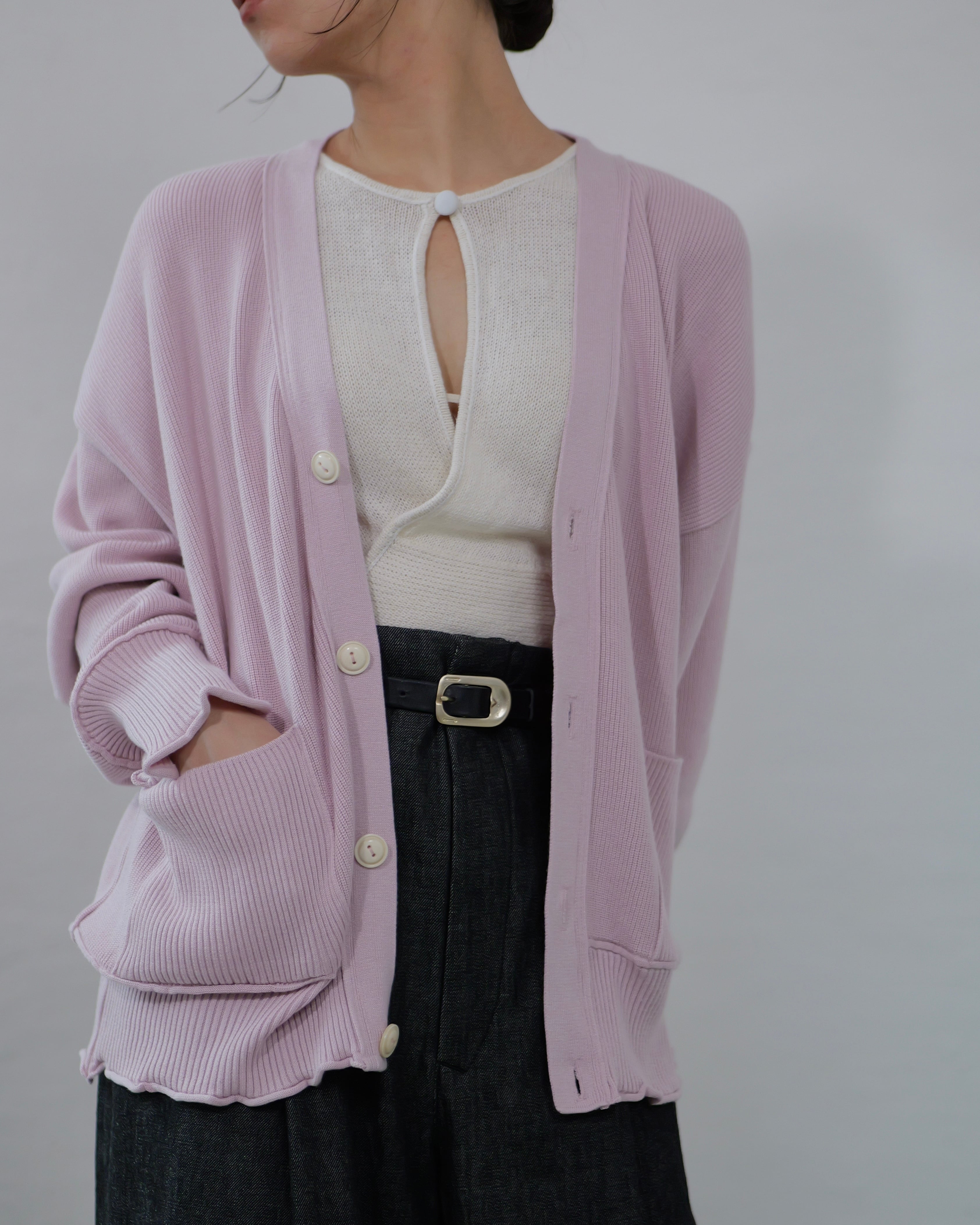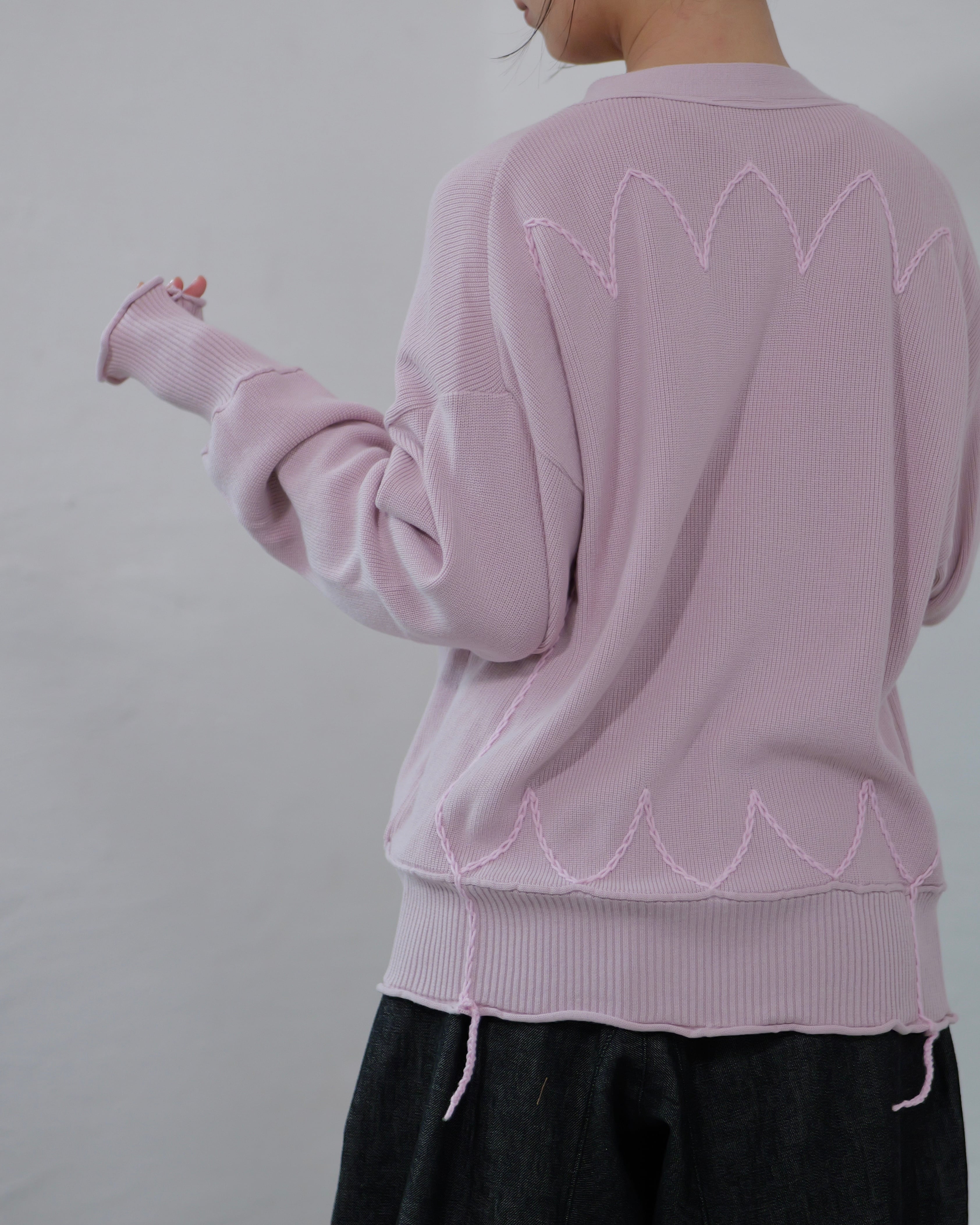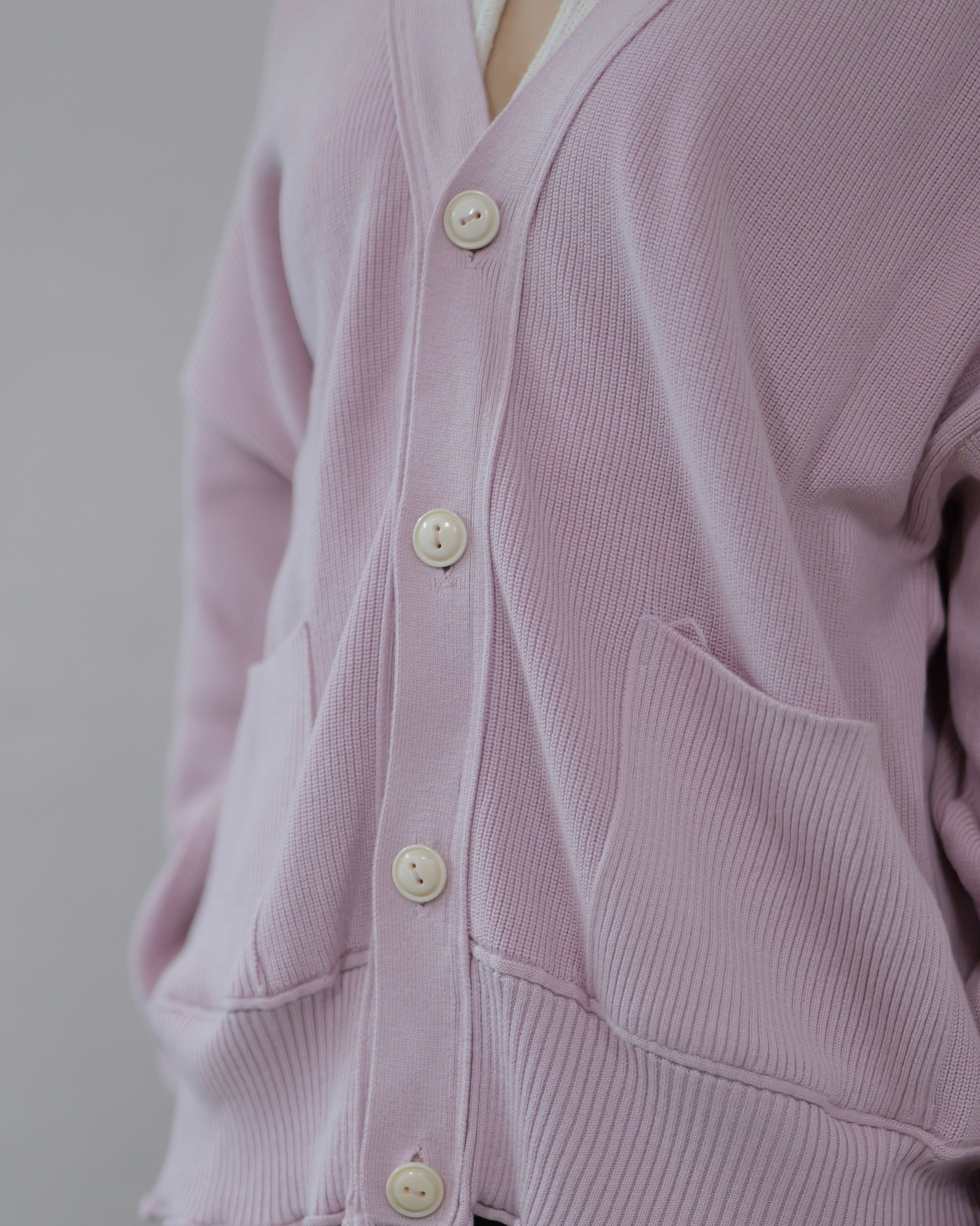 METHO - Outline Stitch Cardigan :apollo Pink|背面ハンドステッチ/背中カットで“帽子”に/水牛ボタン