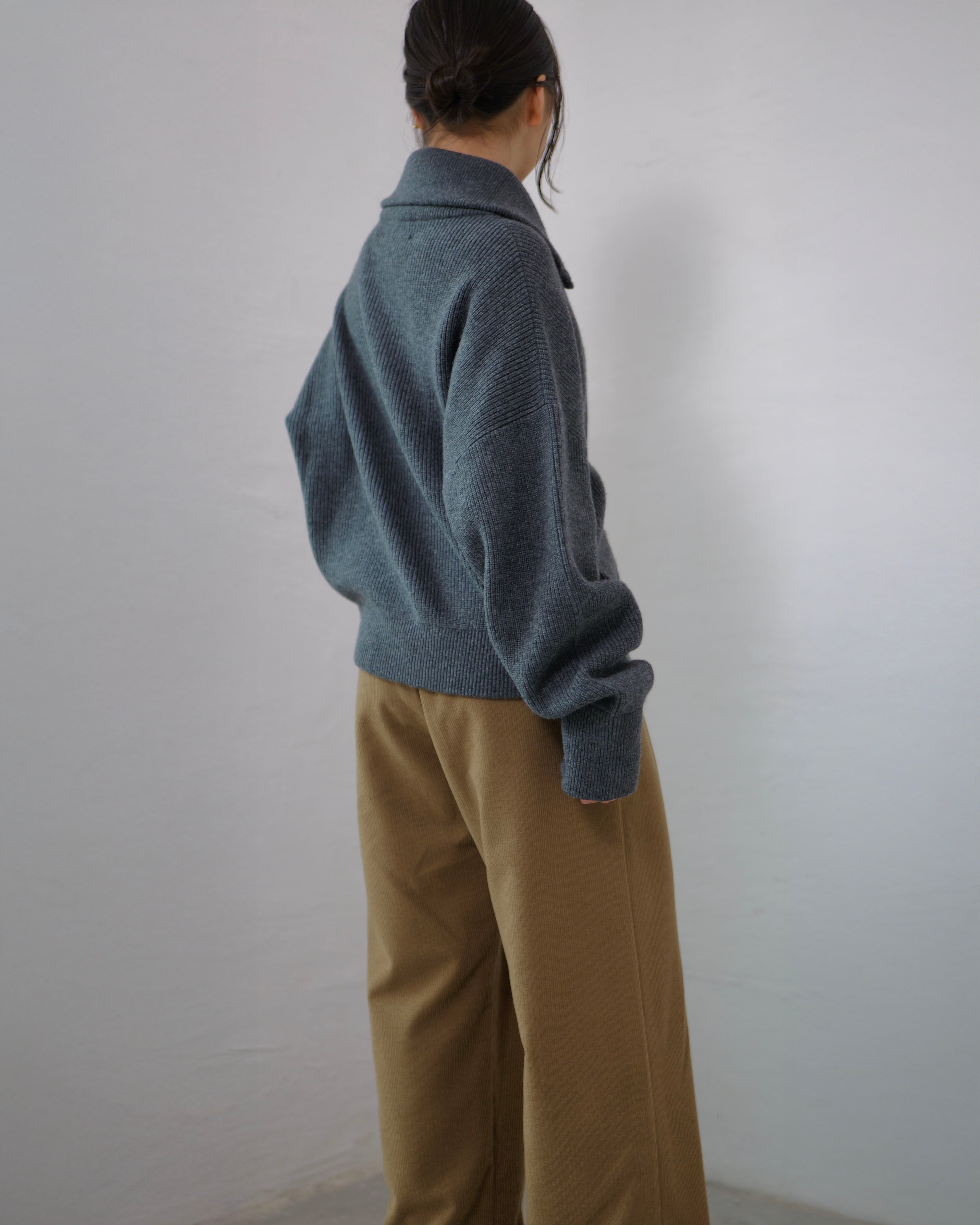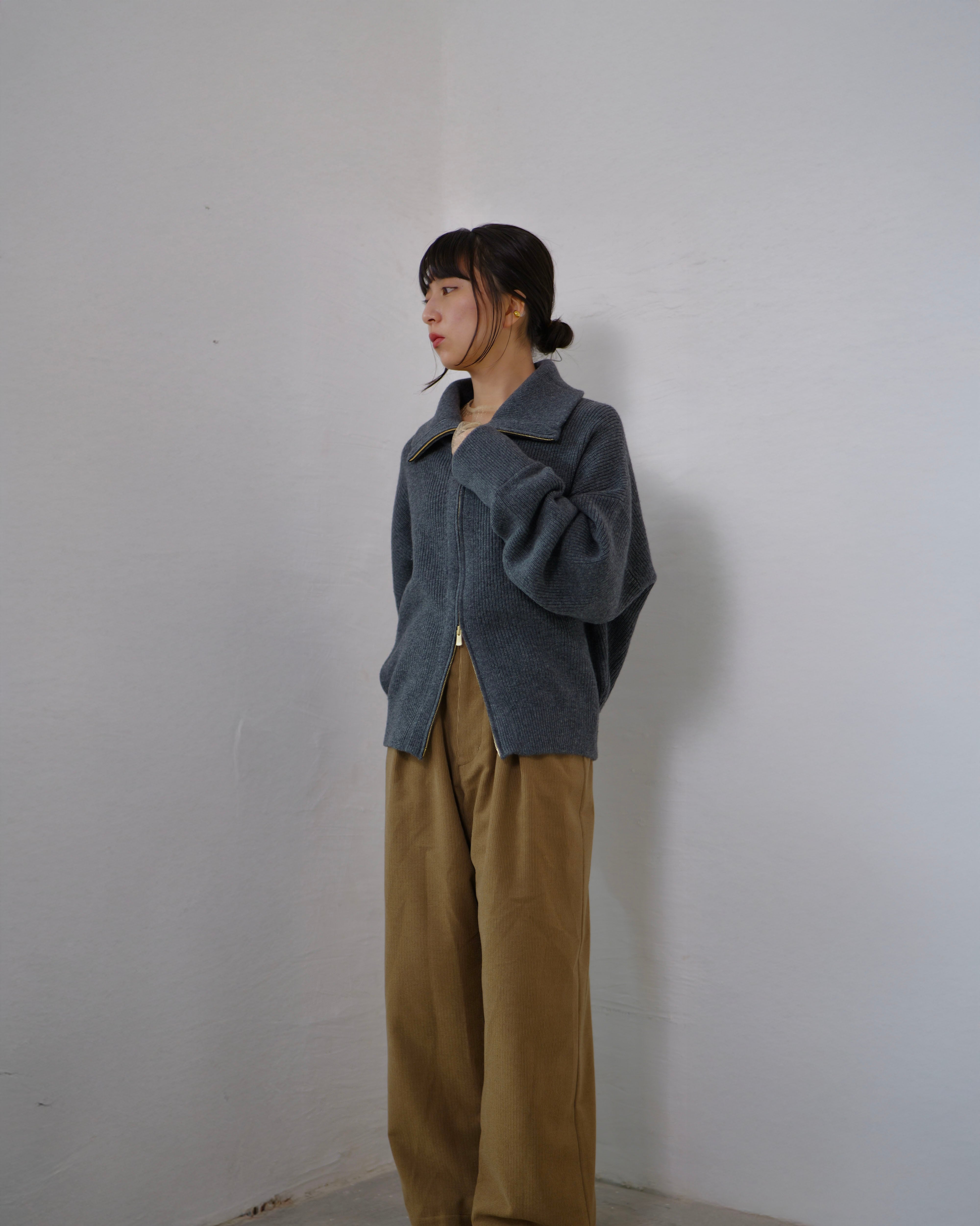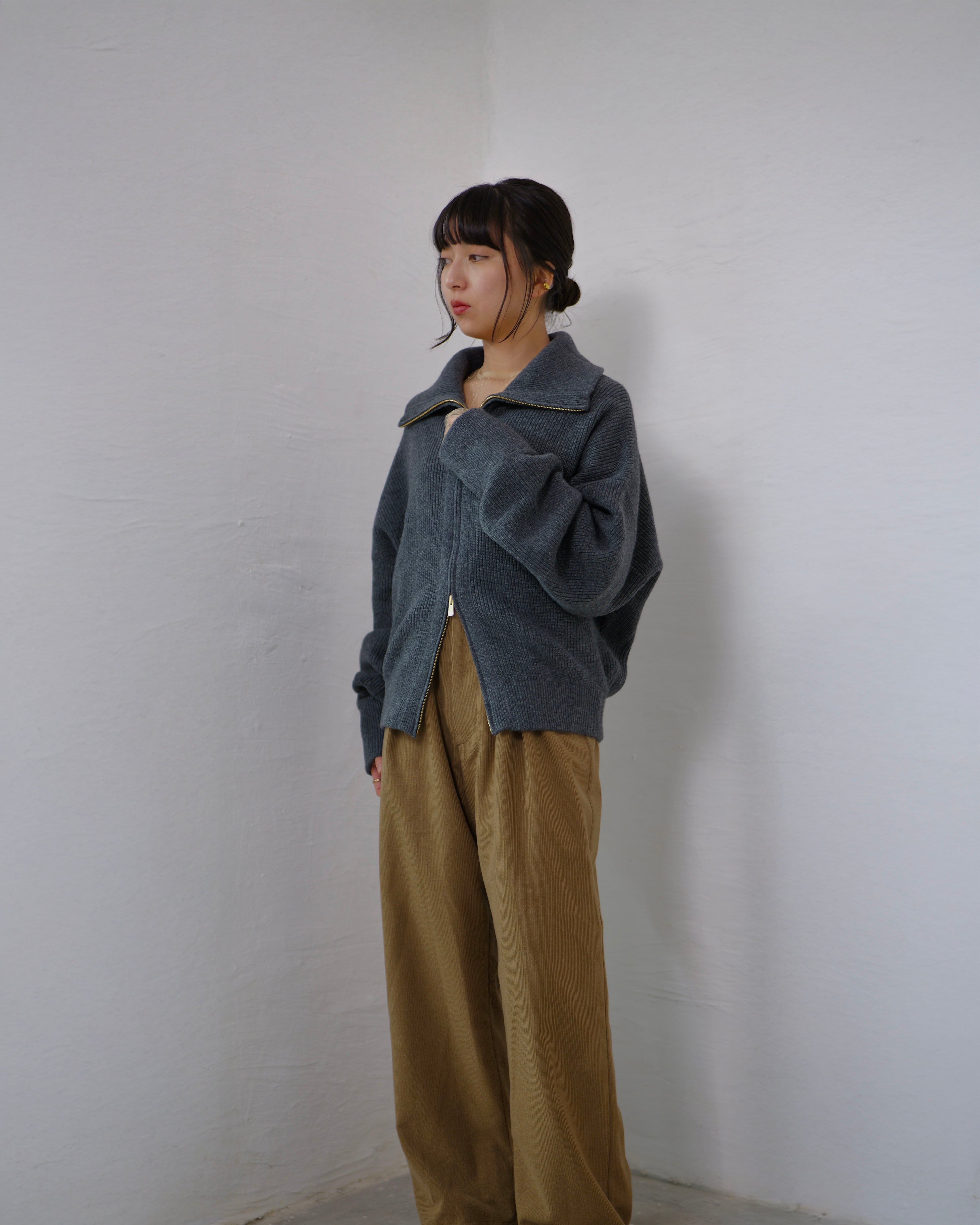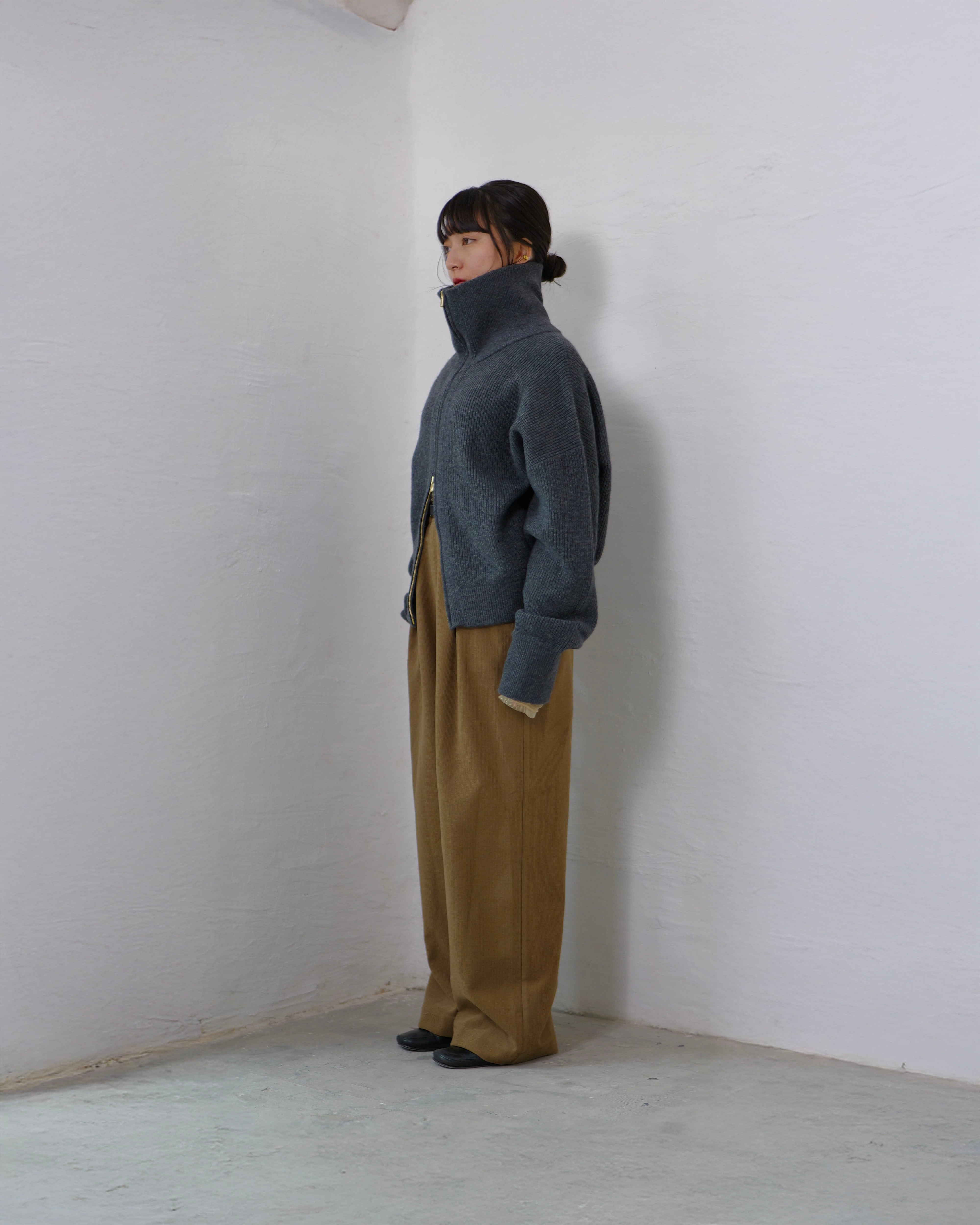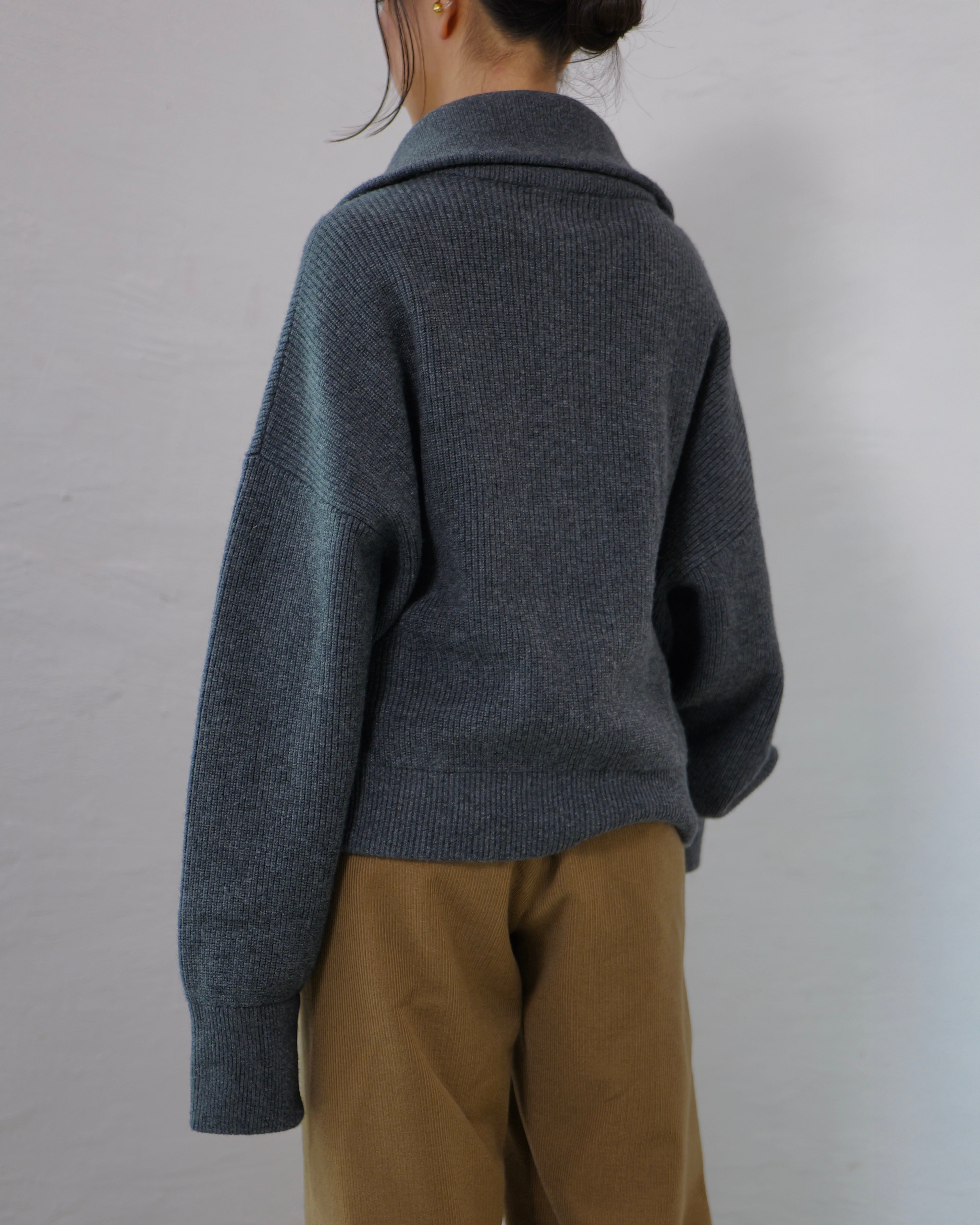 Driver’s Knit - Long Rib Neck : Gray | Long-rib collar / EXCELLA® two-way zip