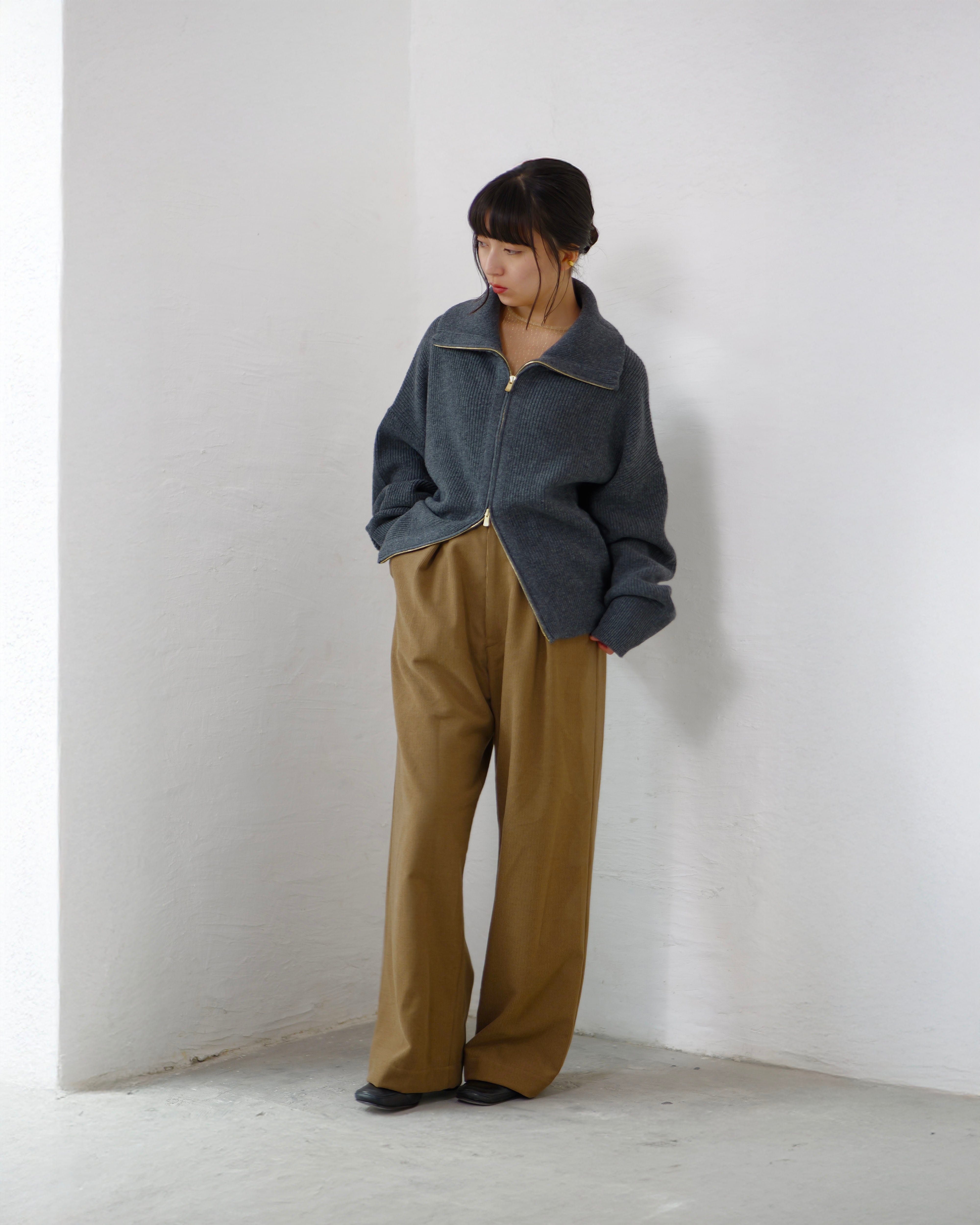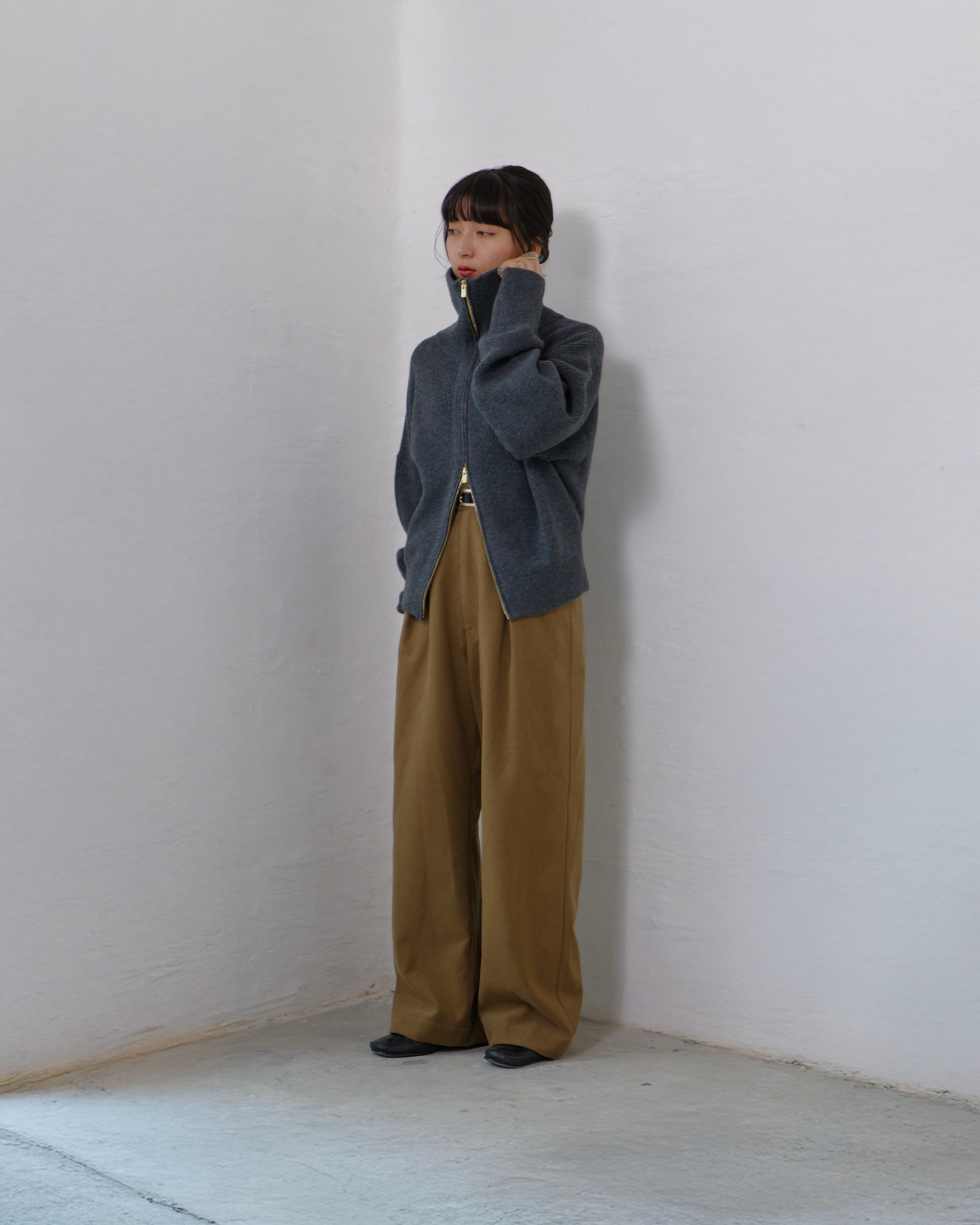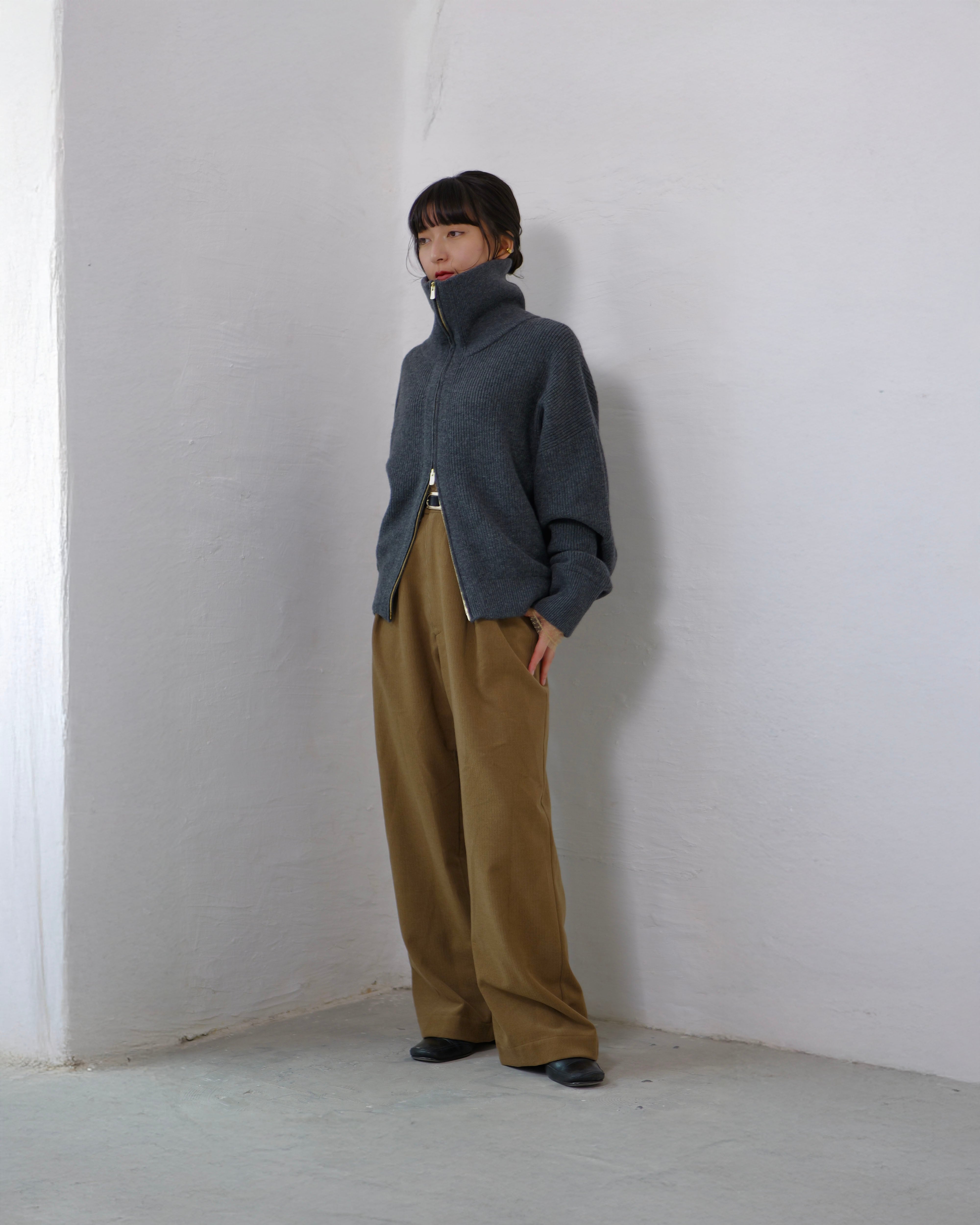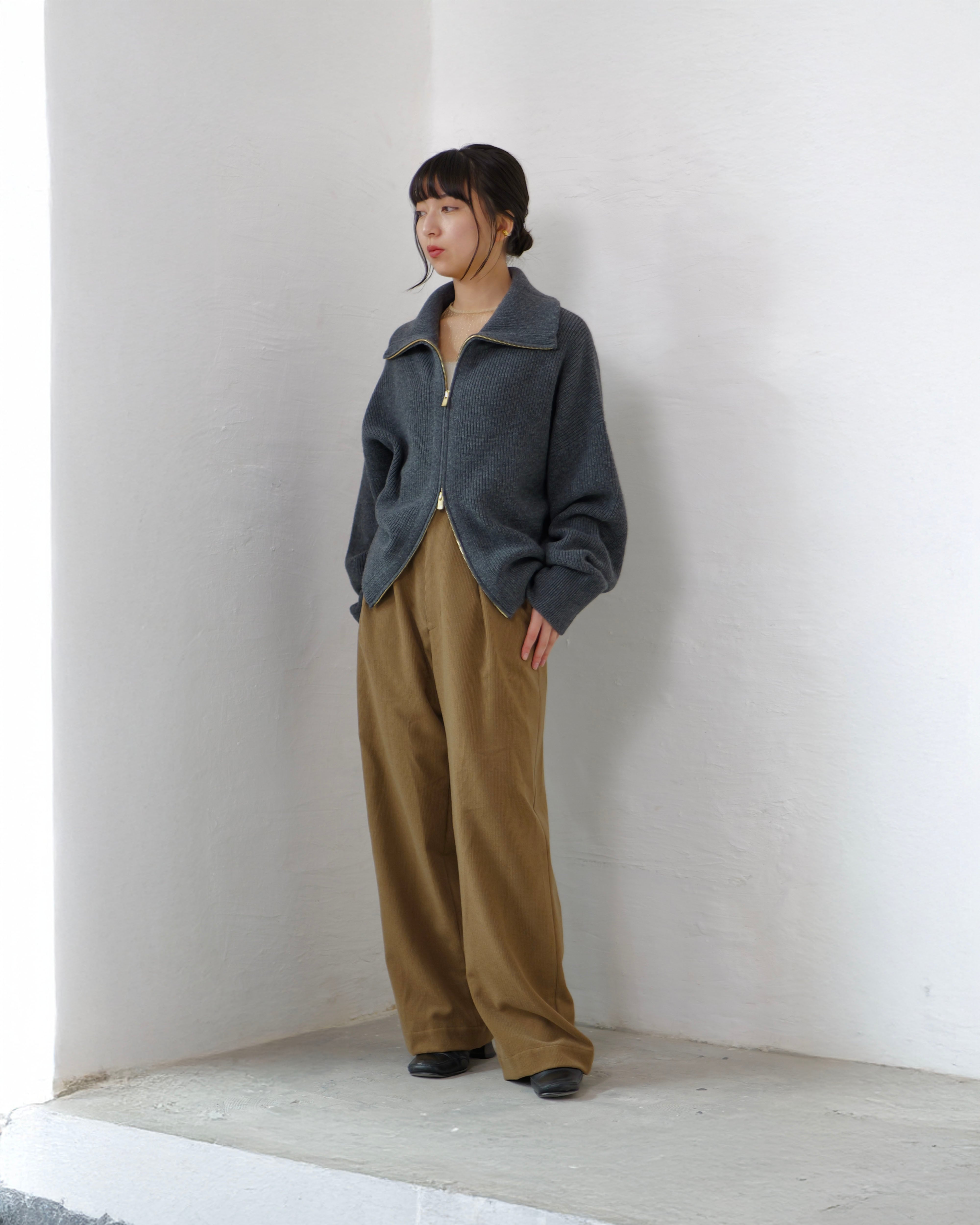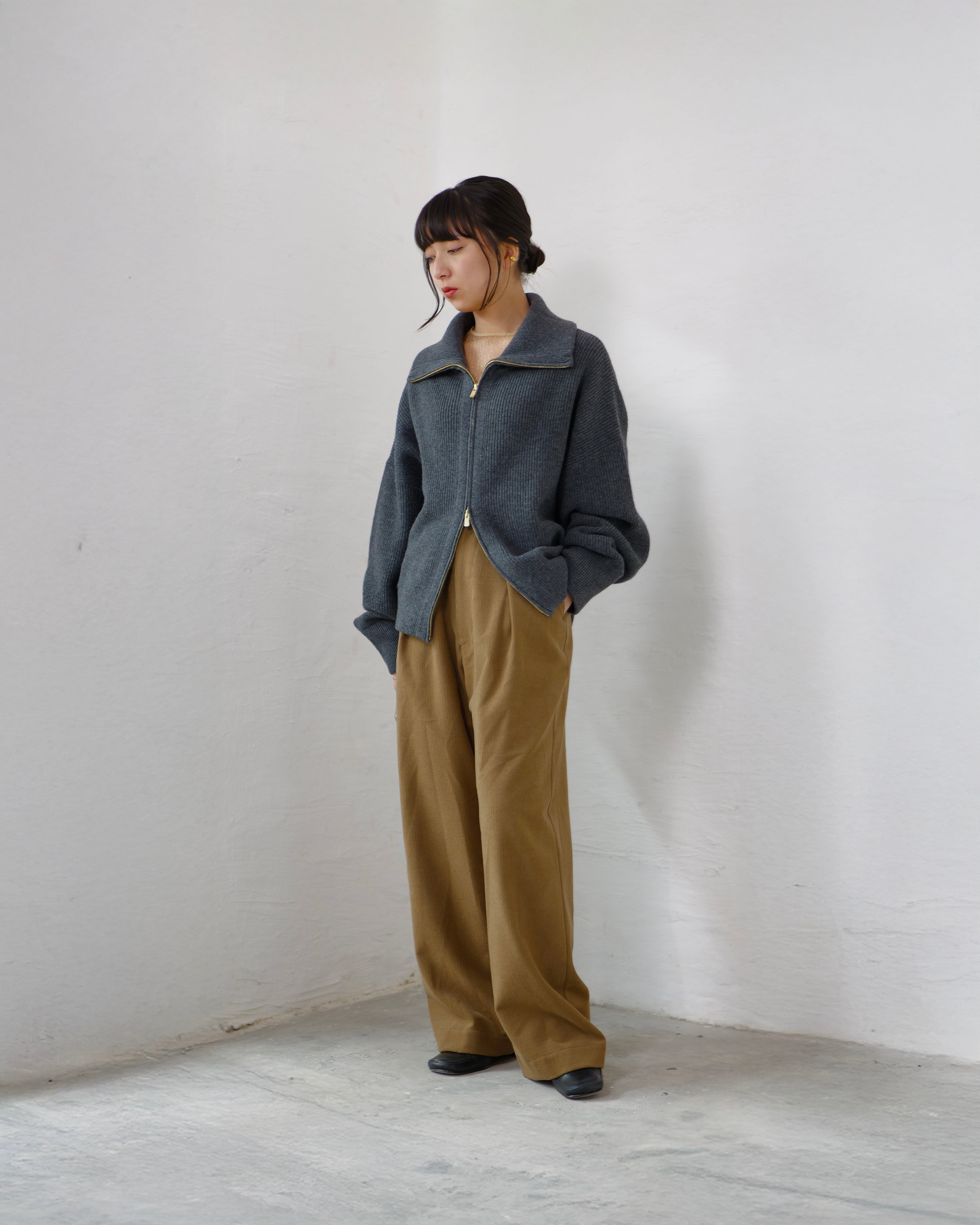 Driver’s Knit - Long Rib Neck : Gray | Long-rib collar / EXCELLA® two-way zip
