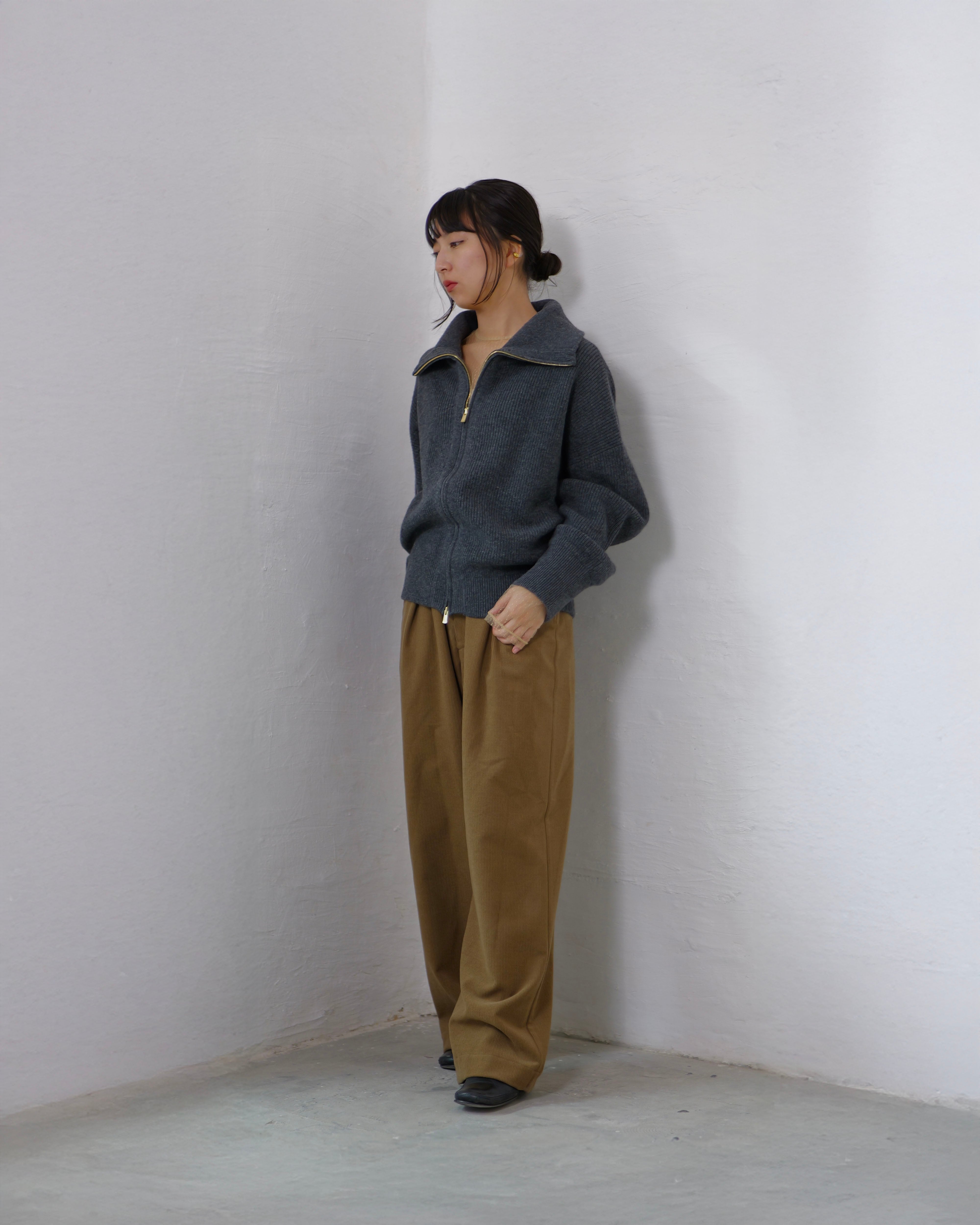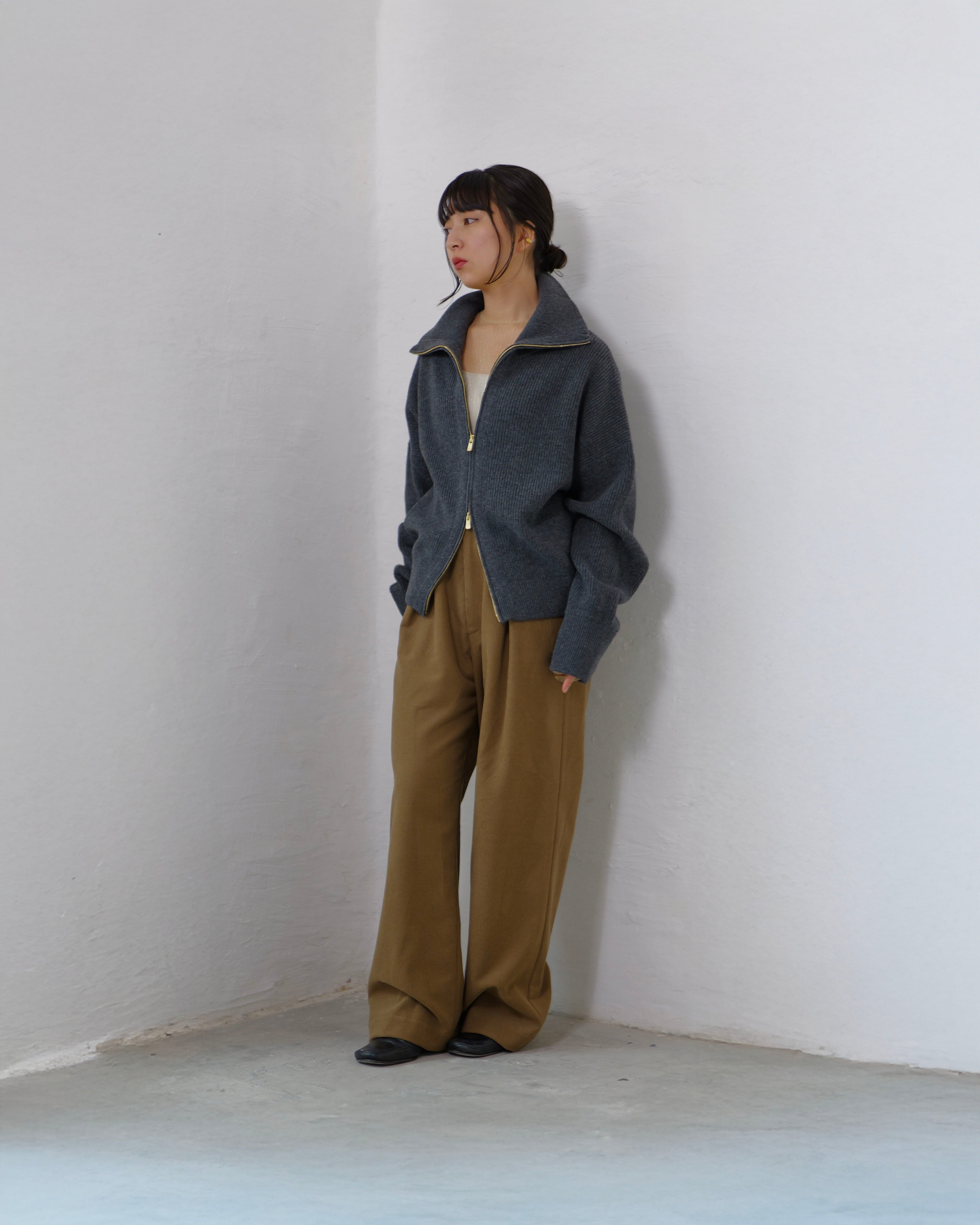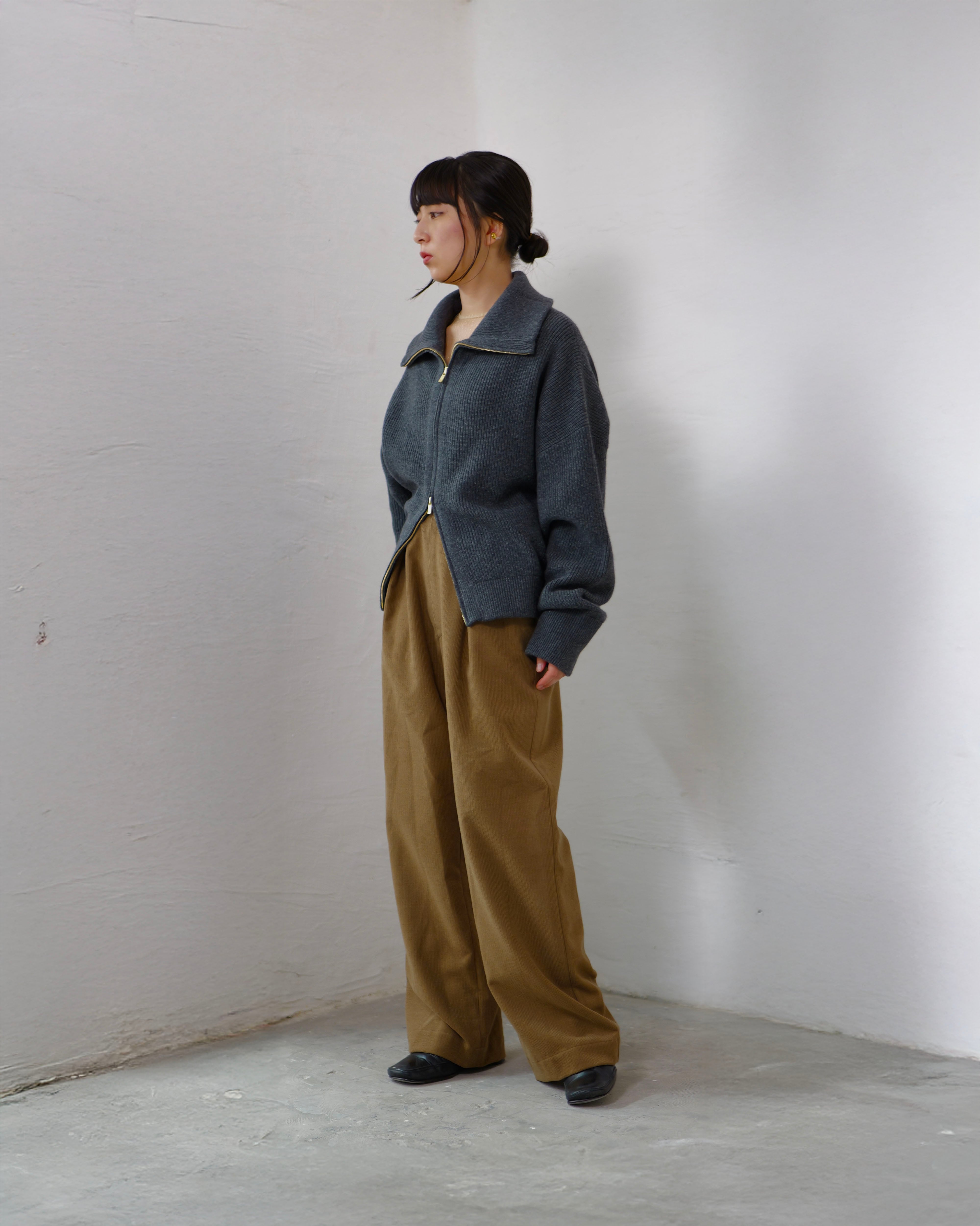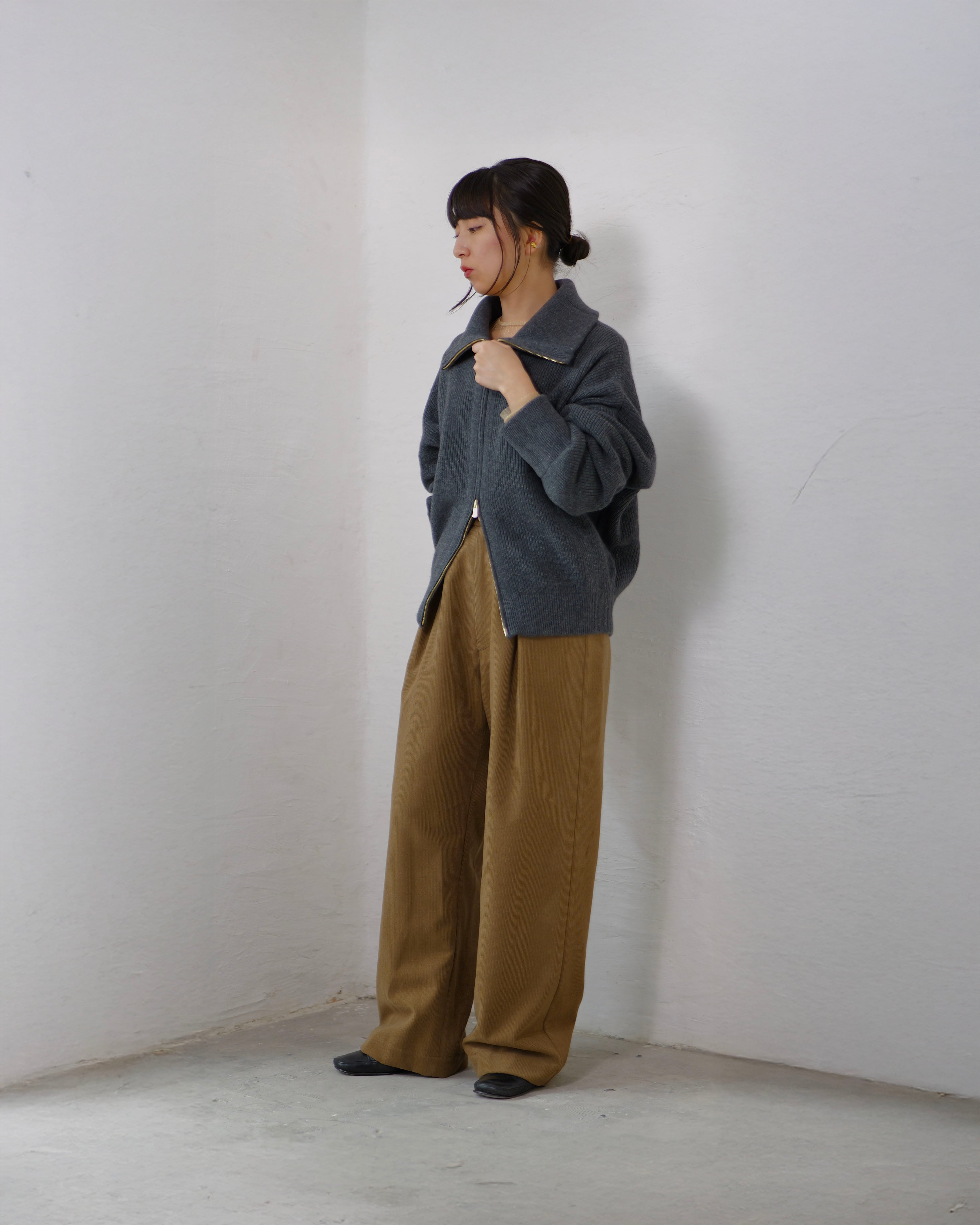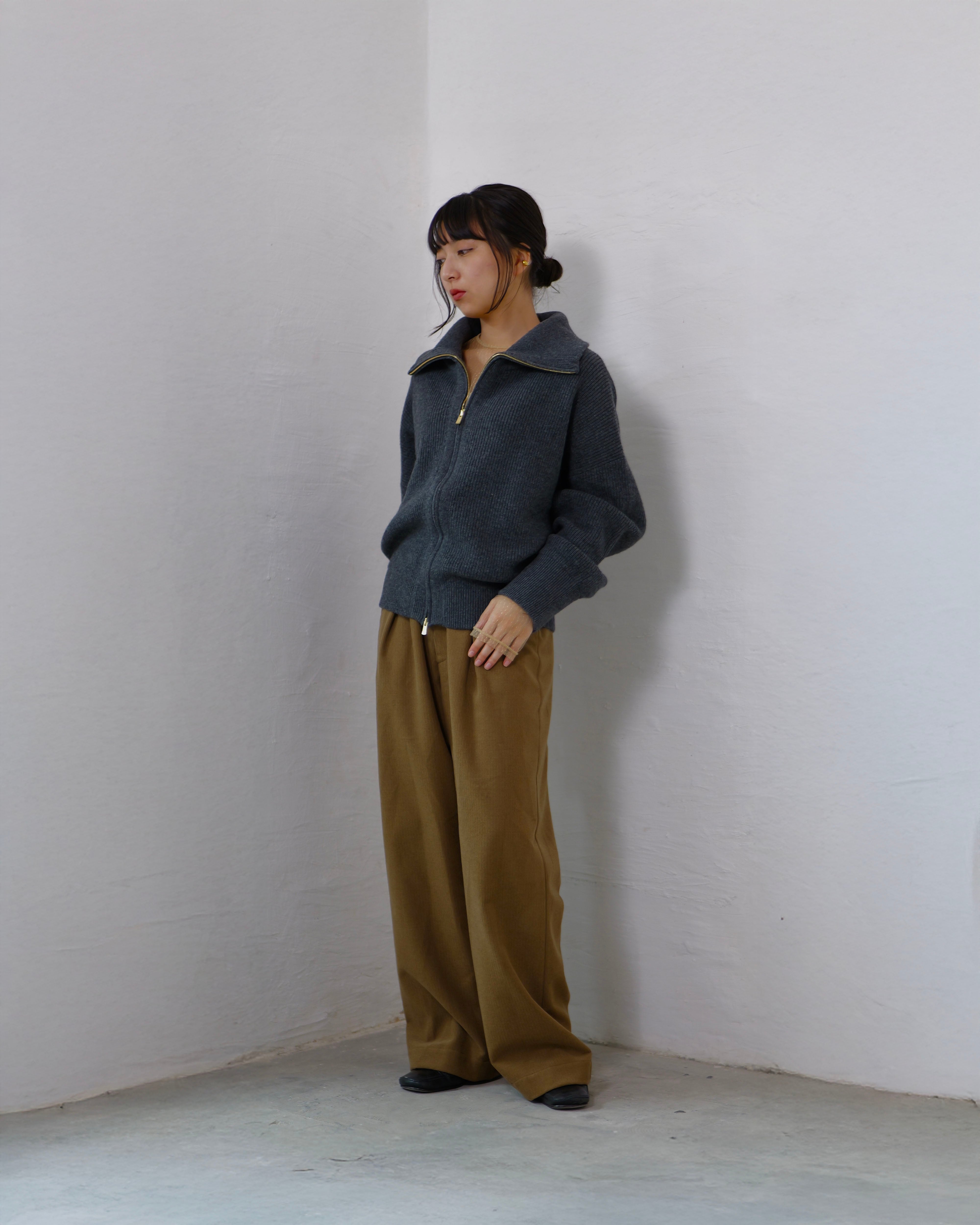 Driver’s Knit - Long Rib Neck : Gray | Long-rib collar / EXCELLA® two-way zip