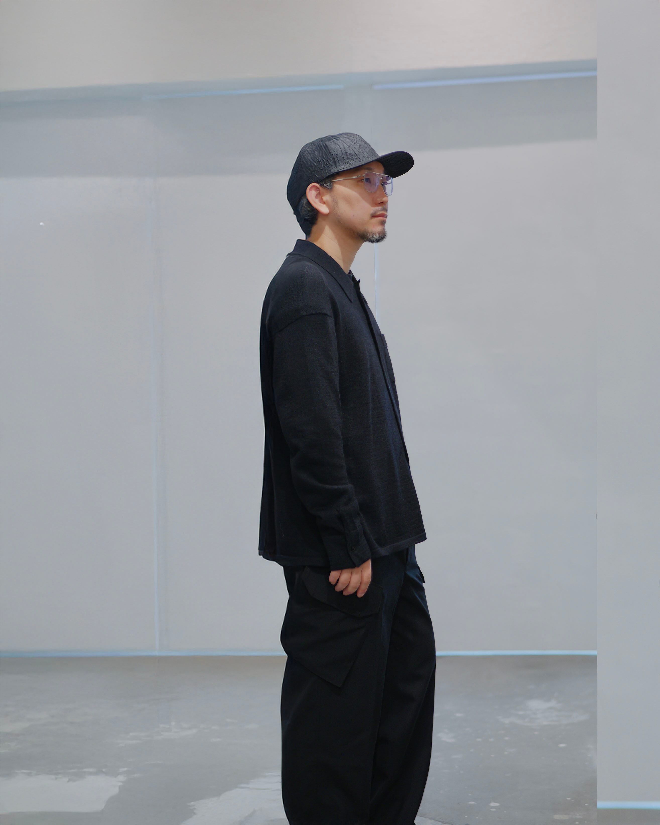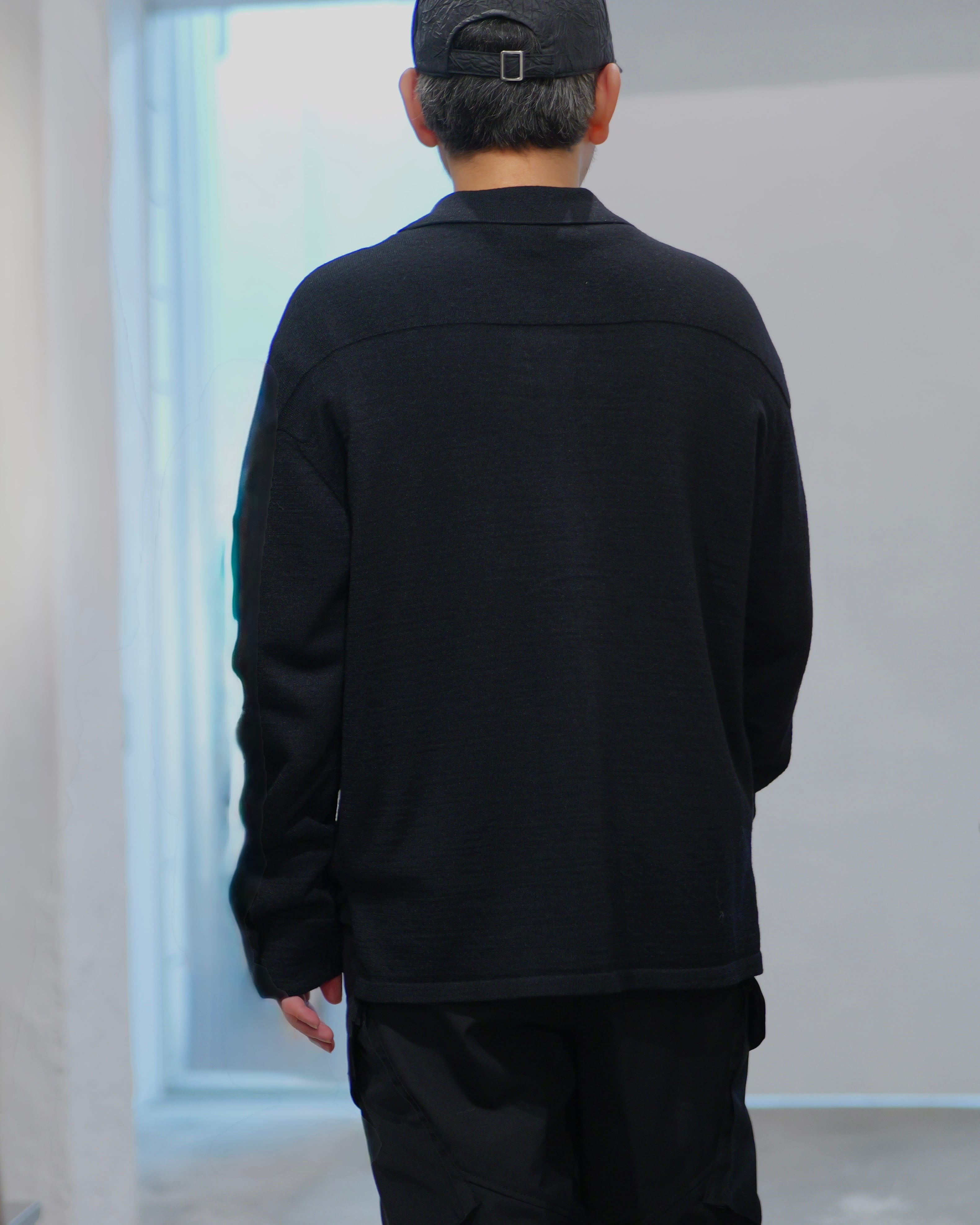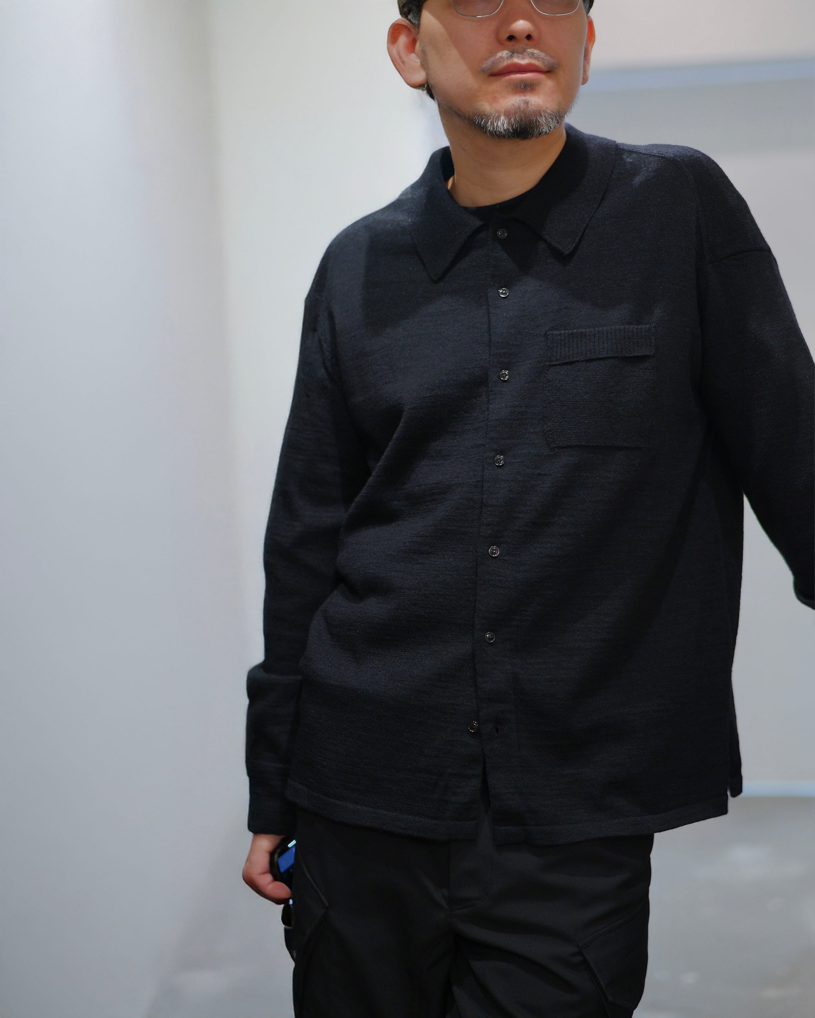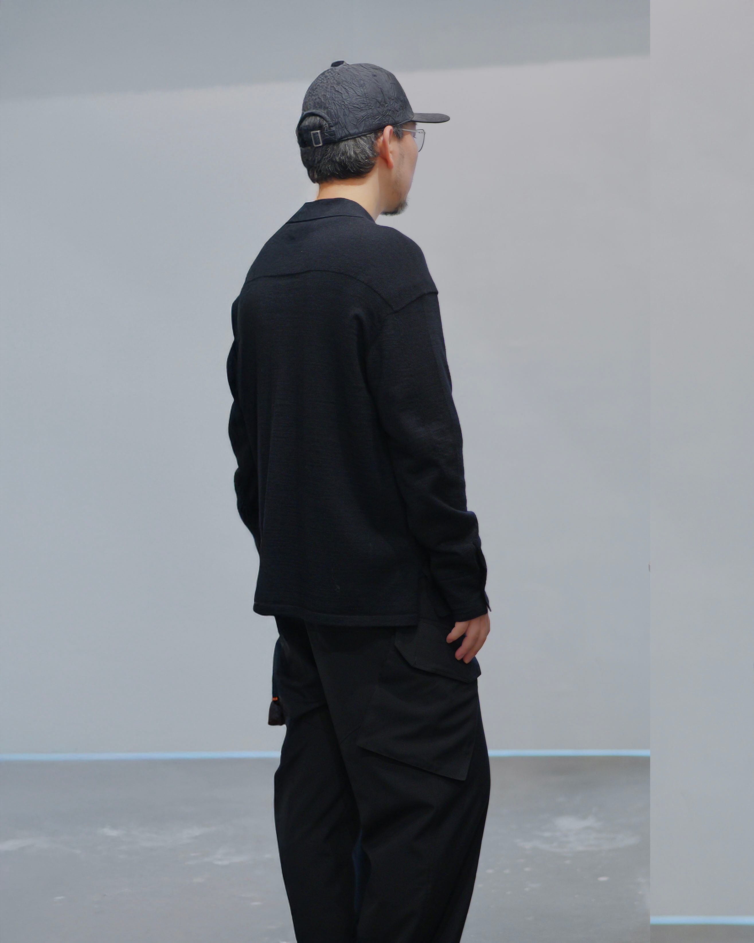 MAYKAM - Knit Shirt :Black|ワイルドシルク混/度詰め編み/ヨーク&カフス編地切替/立体袖