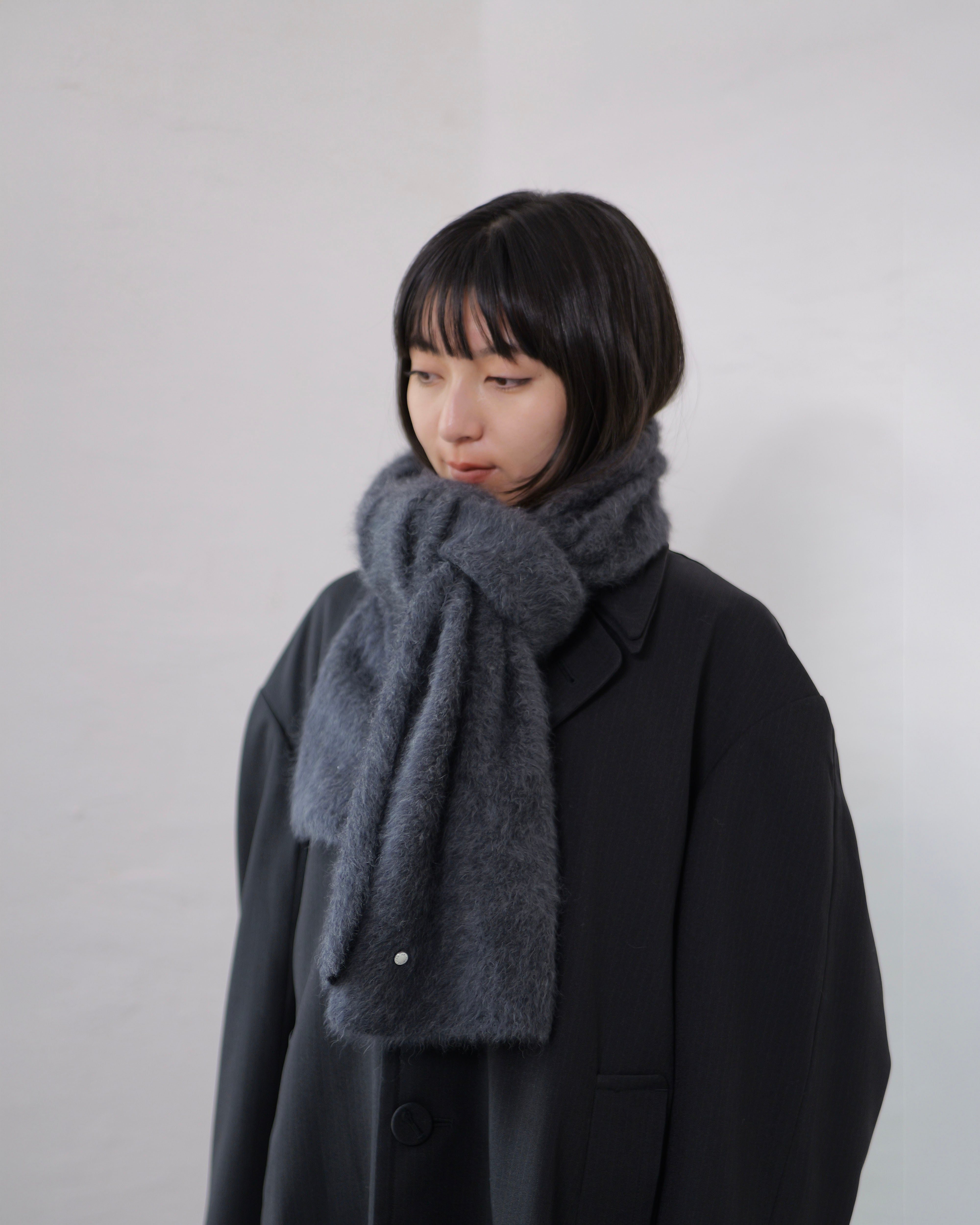 FOURAM - Fox Cashmere Muffler :Gray|ロゴ入りシルバーのピンブローチ/フォックス×カシミヤ