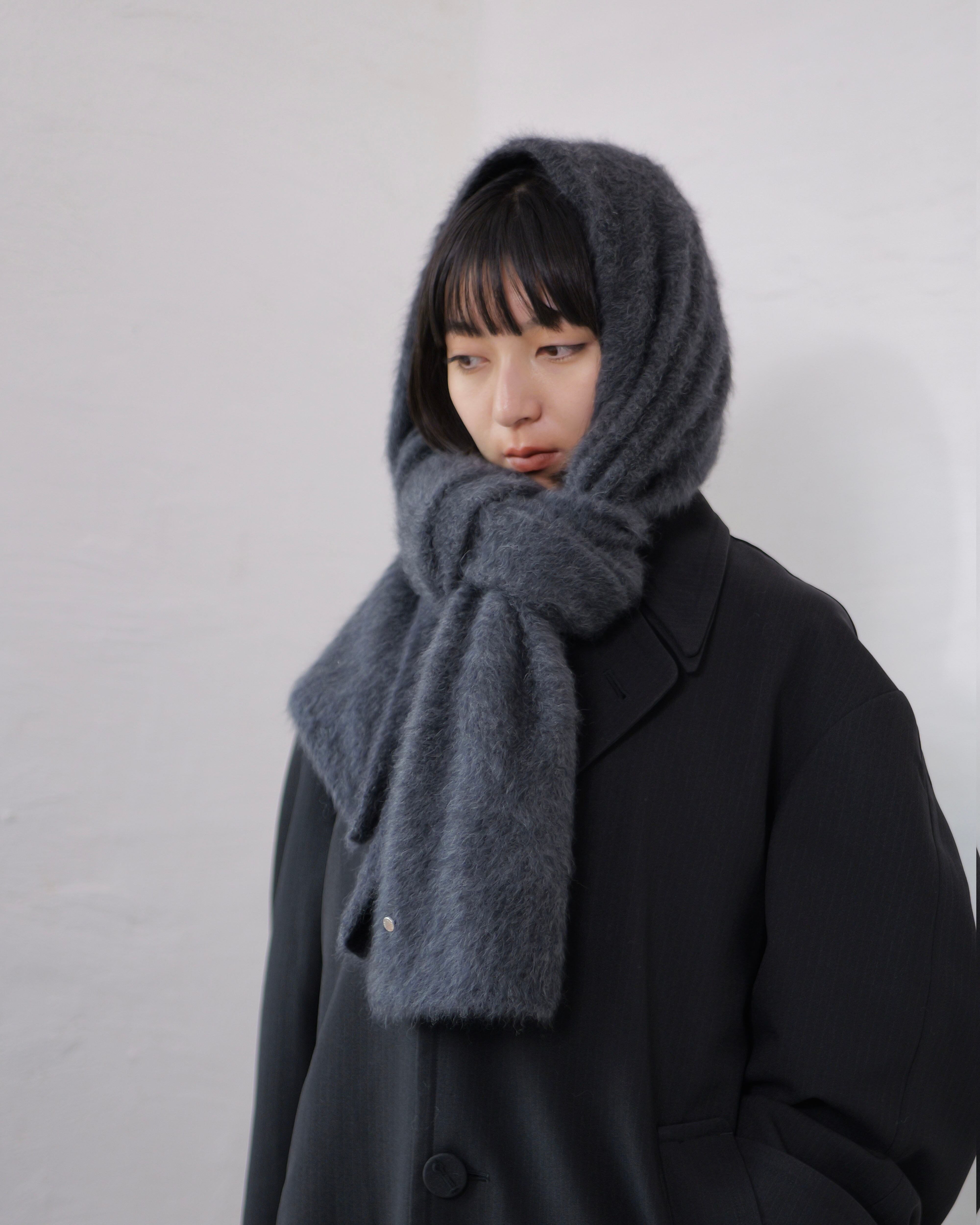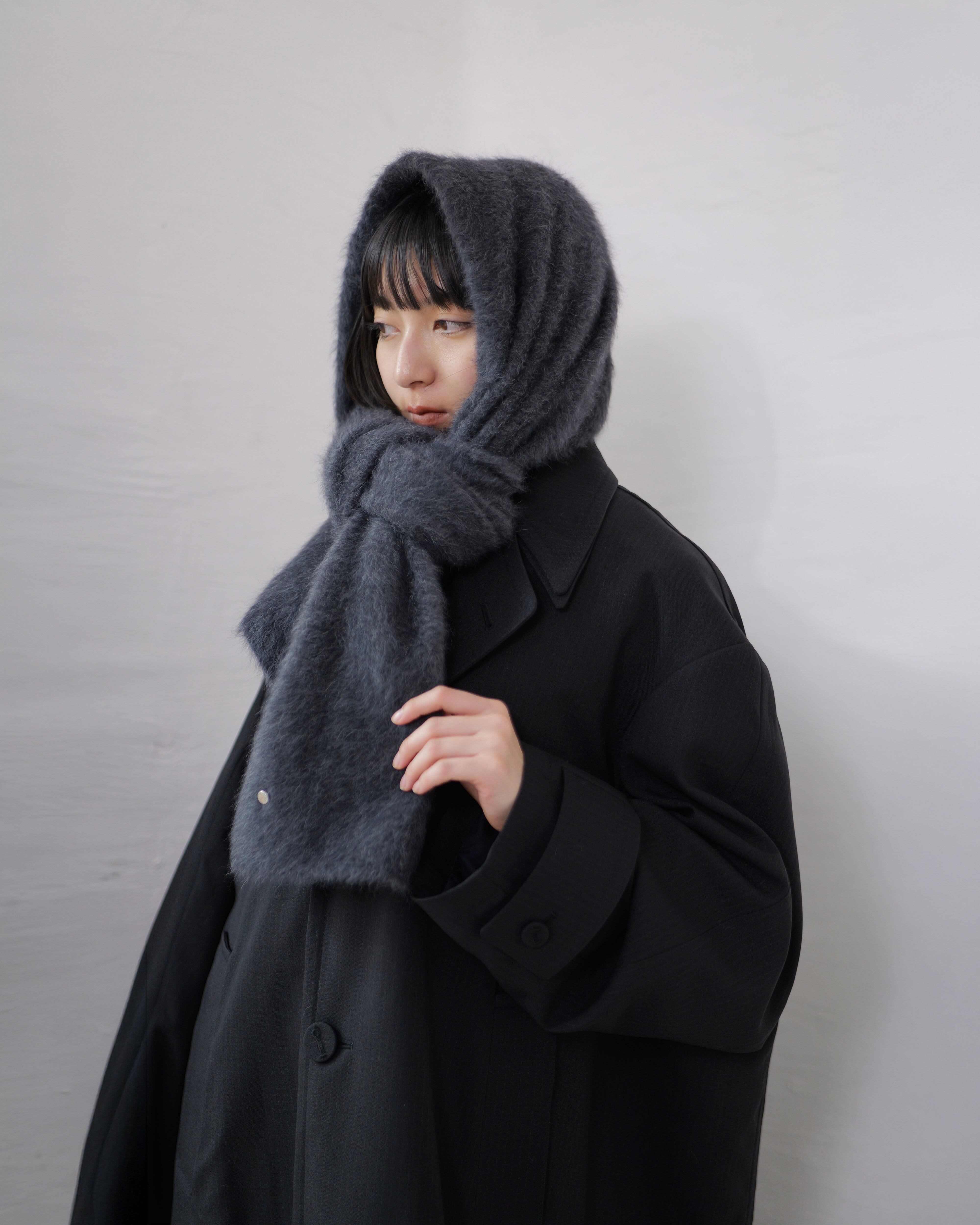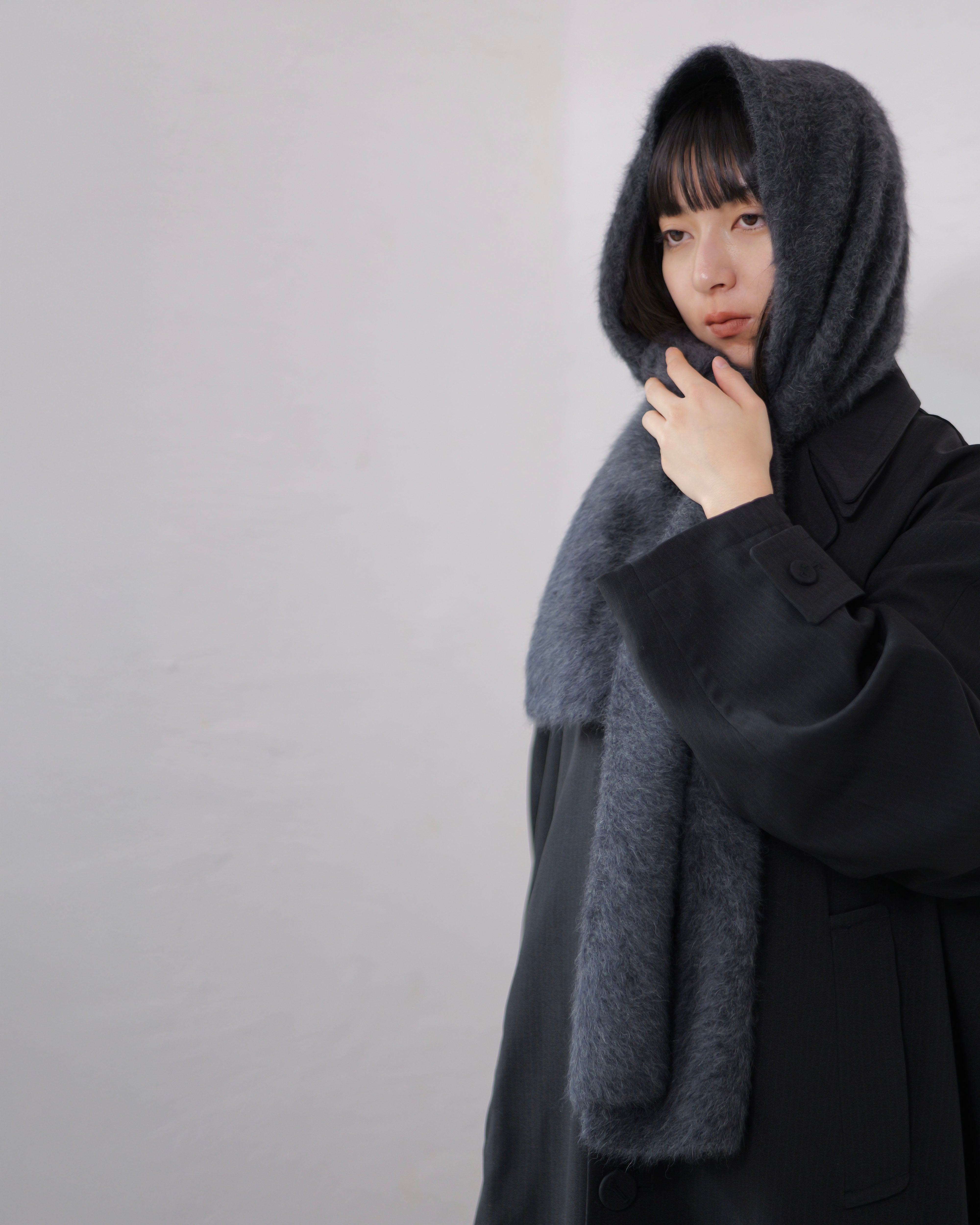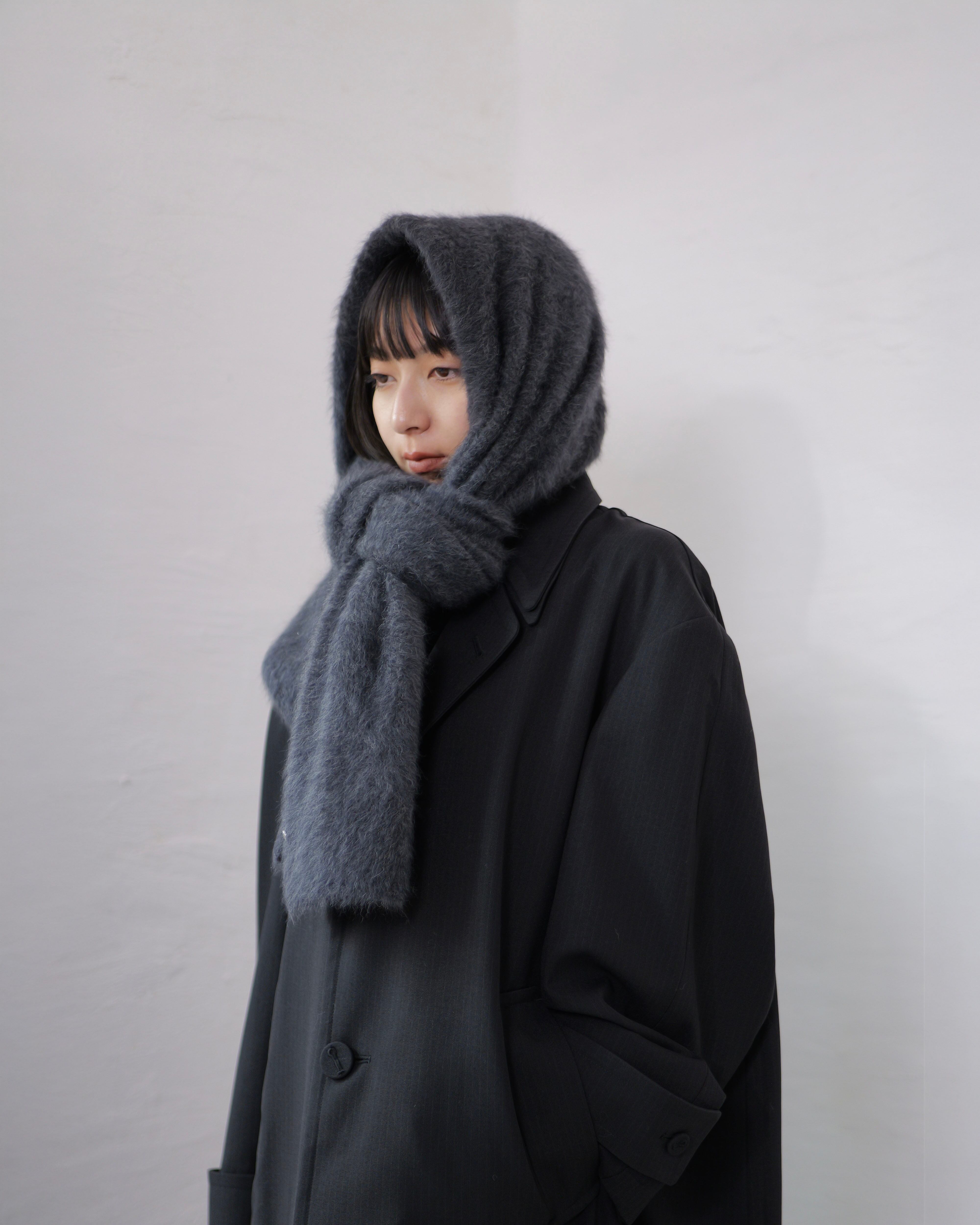頭からすっぽりとかぶると、フードのようなシルエットに。