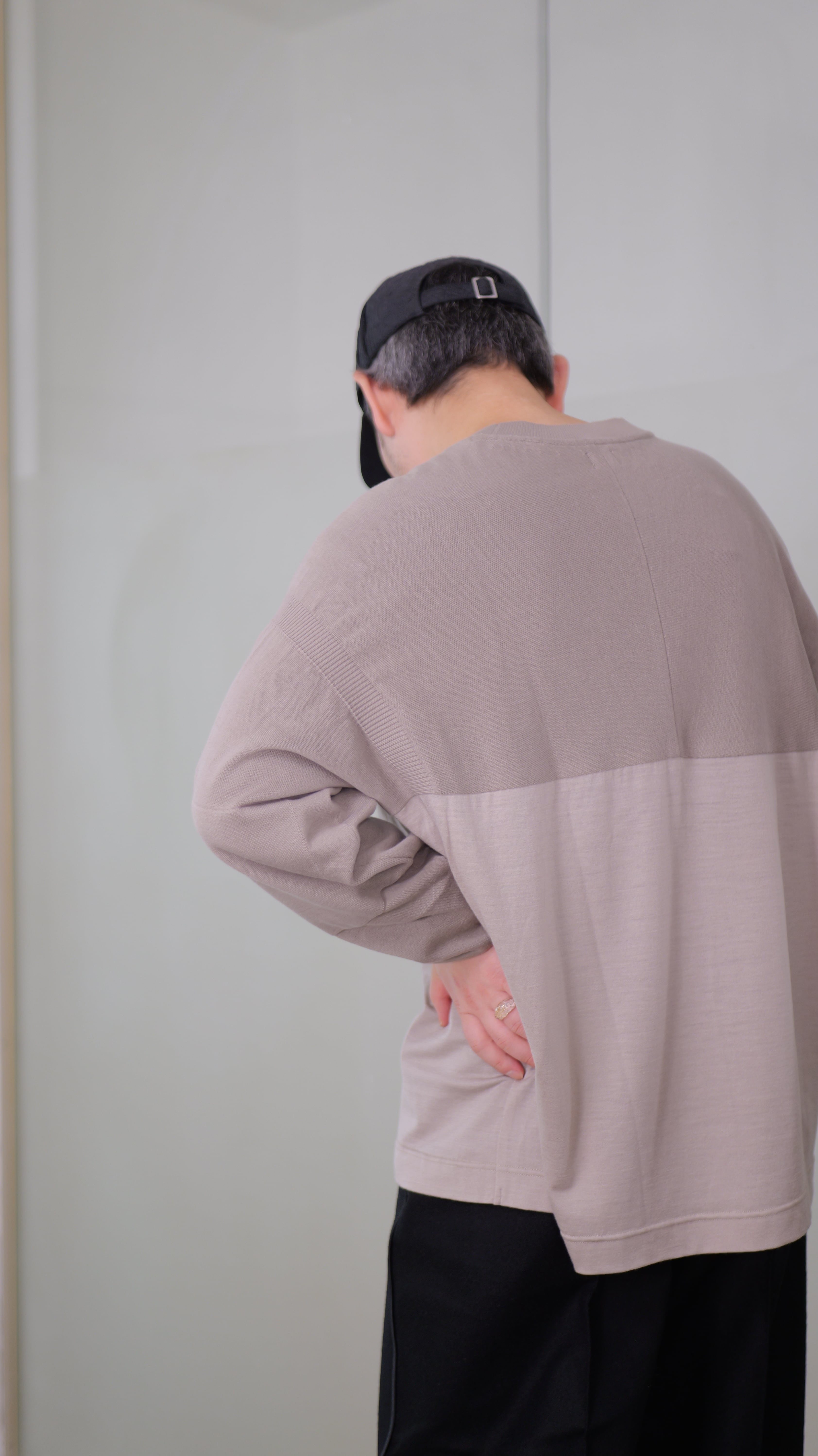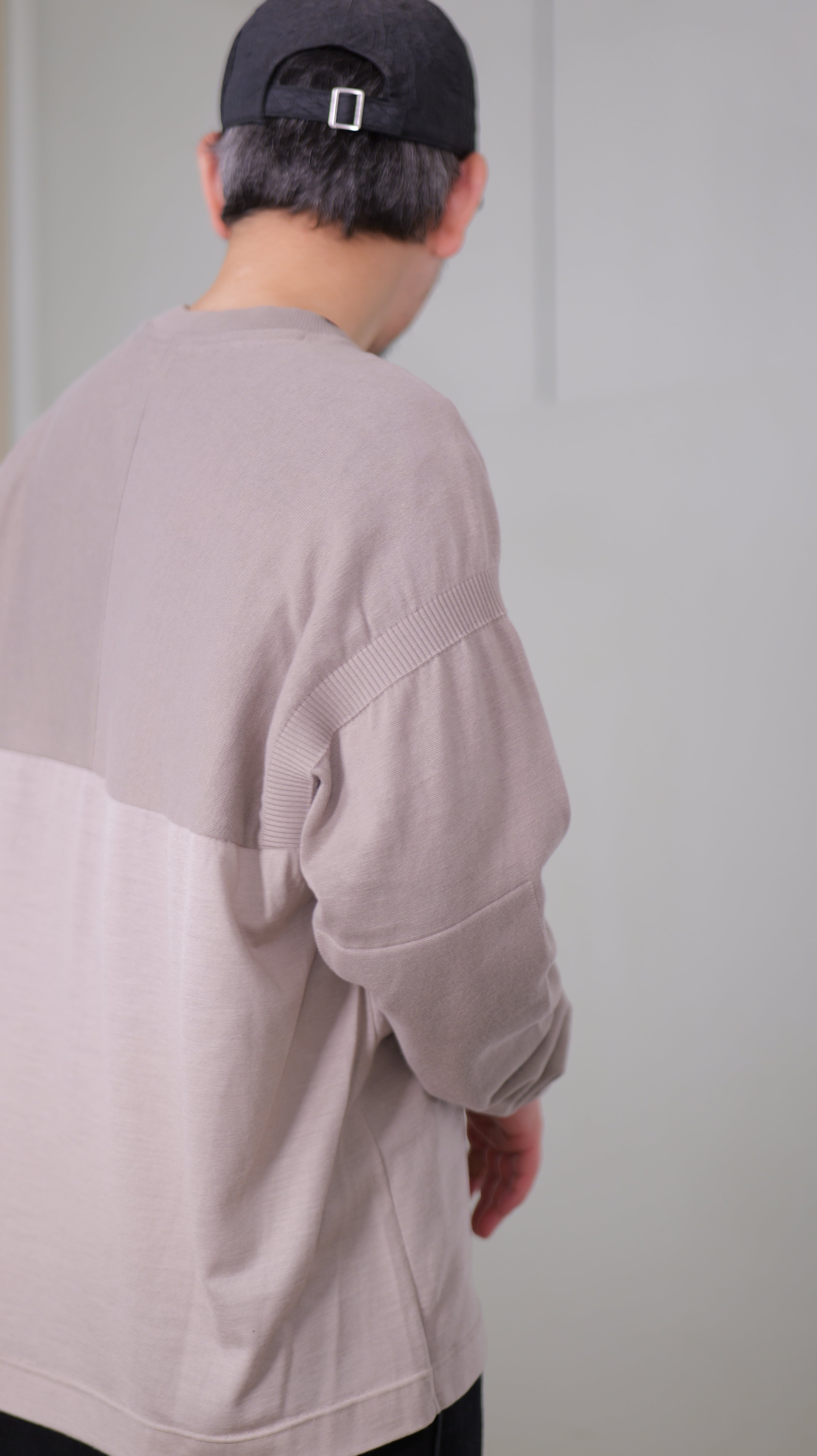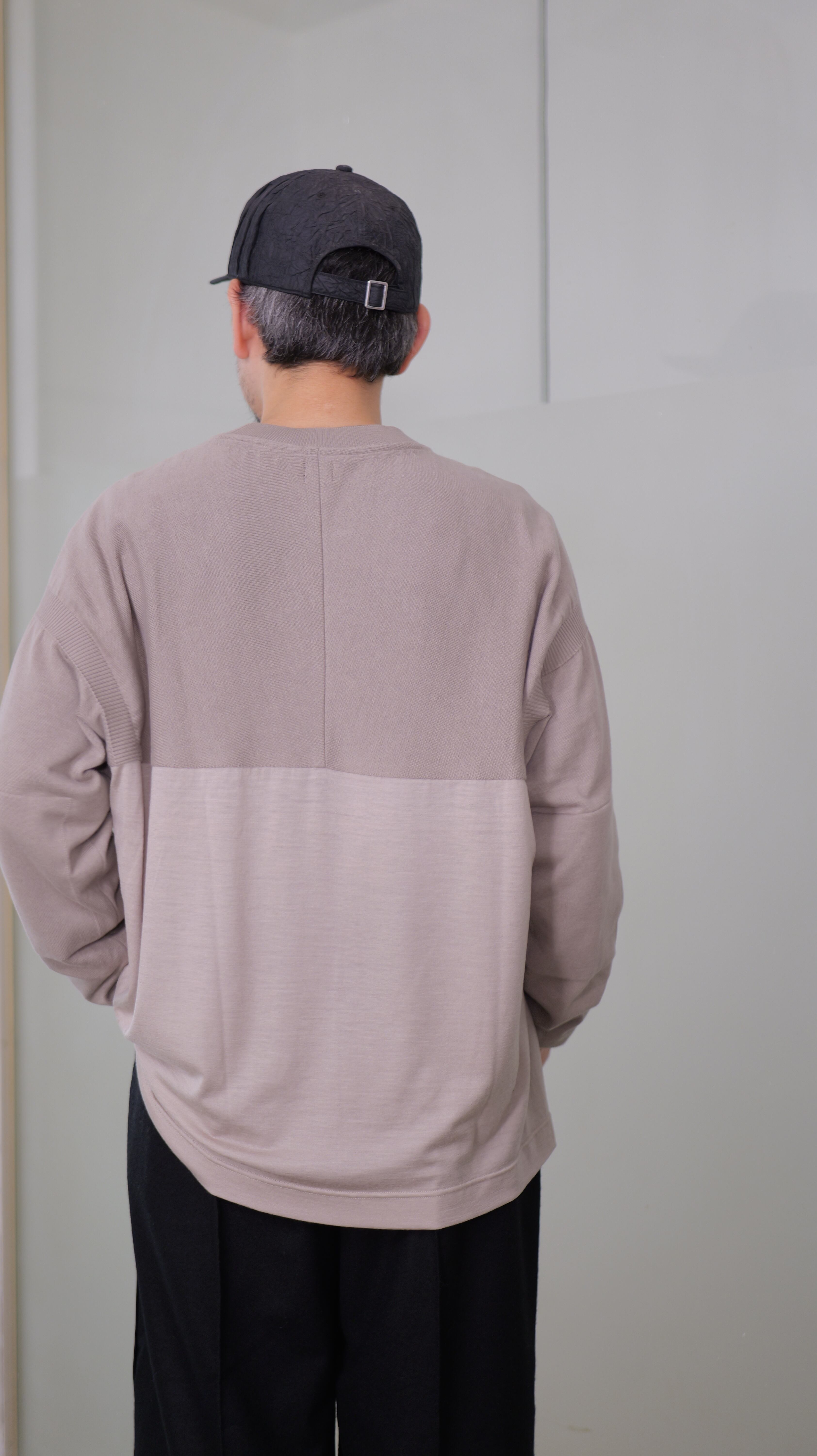 MAYKAM - Wool/Cotton Pullover :Beige|ウール100%×コットン100%切替