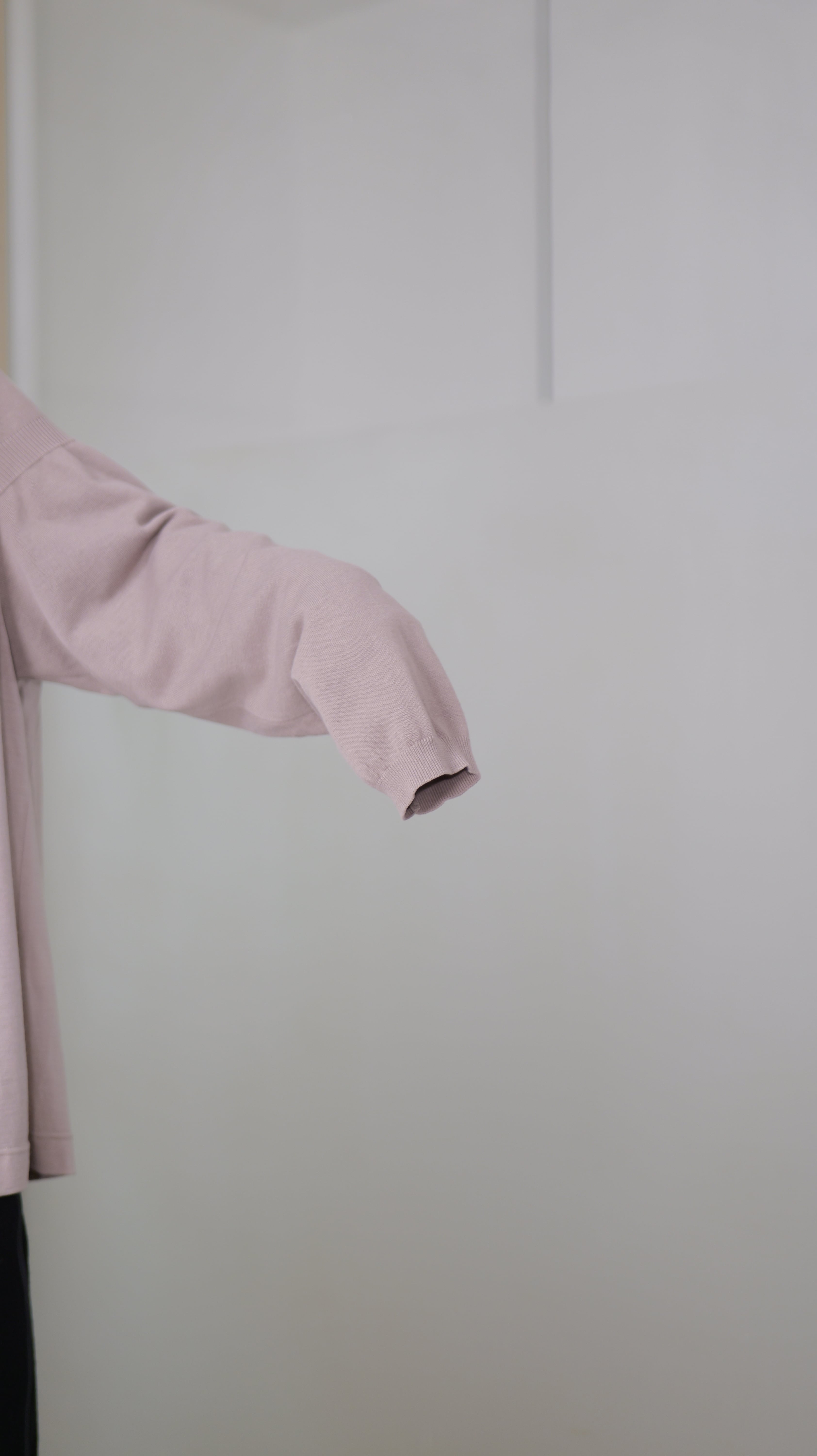 身幅にゆとりがあり、前後で丈に差があるため、前は軽く、後ろは包むように落ち着きます。