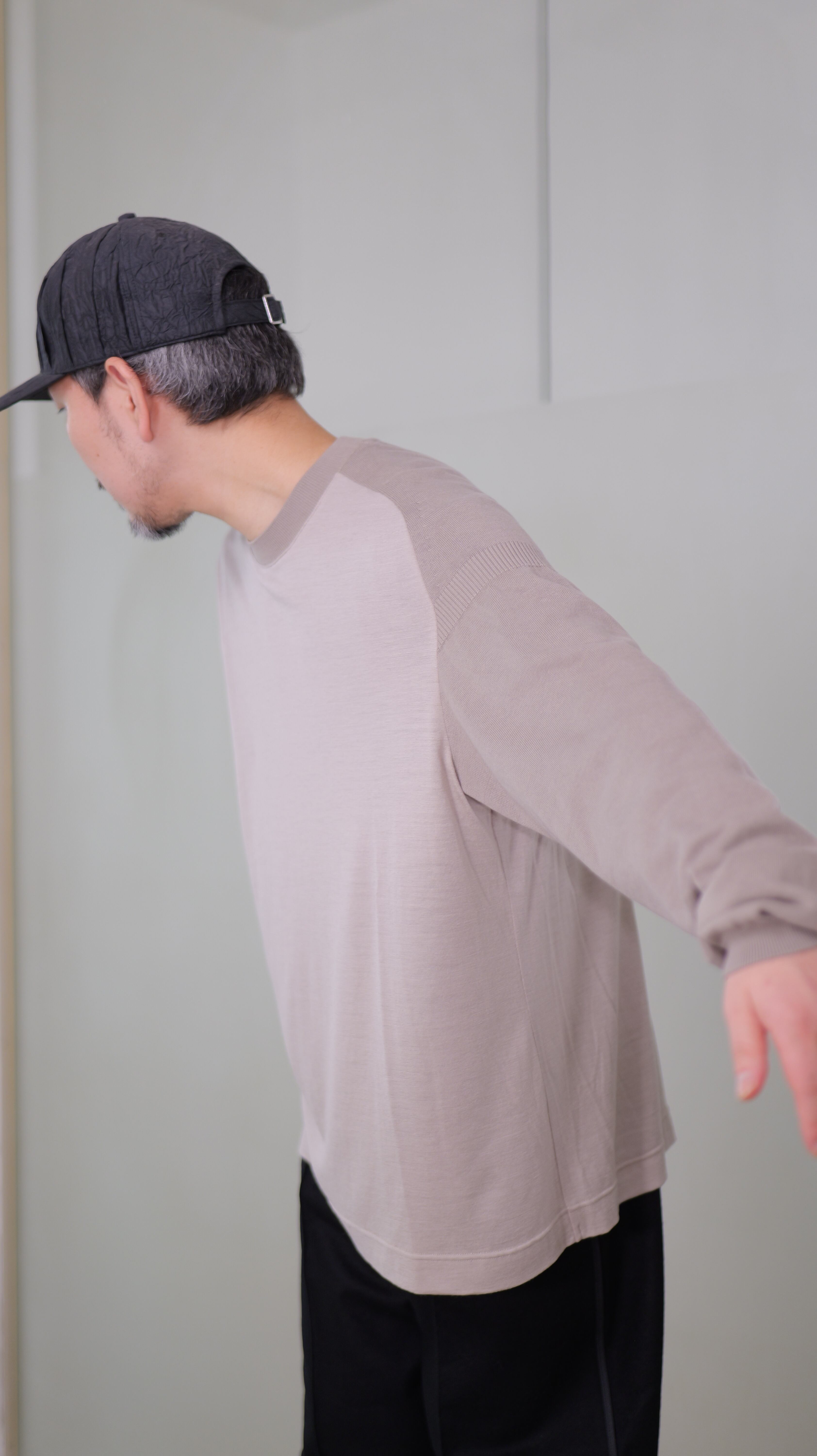 本作は、生地ごとにウール100%とコットン100%を切り替えたニットソーです。