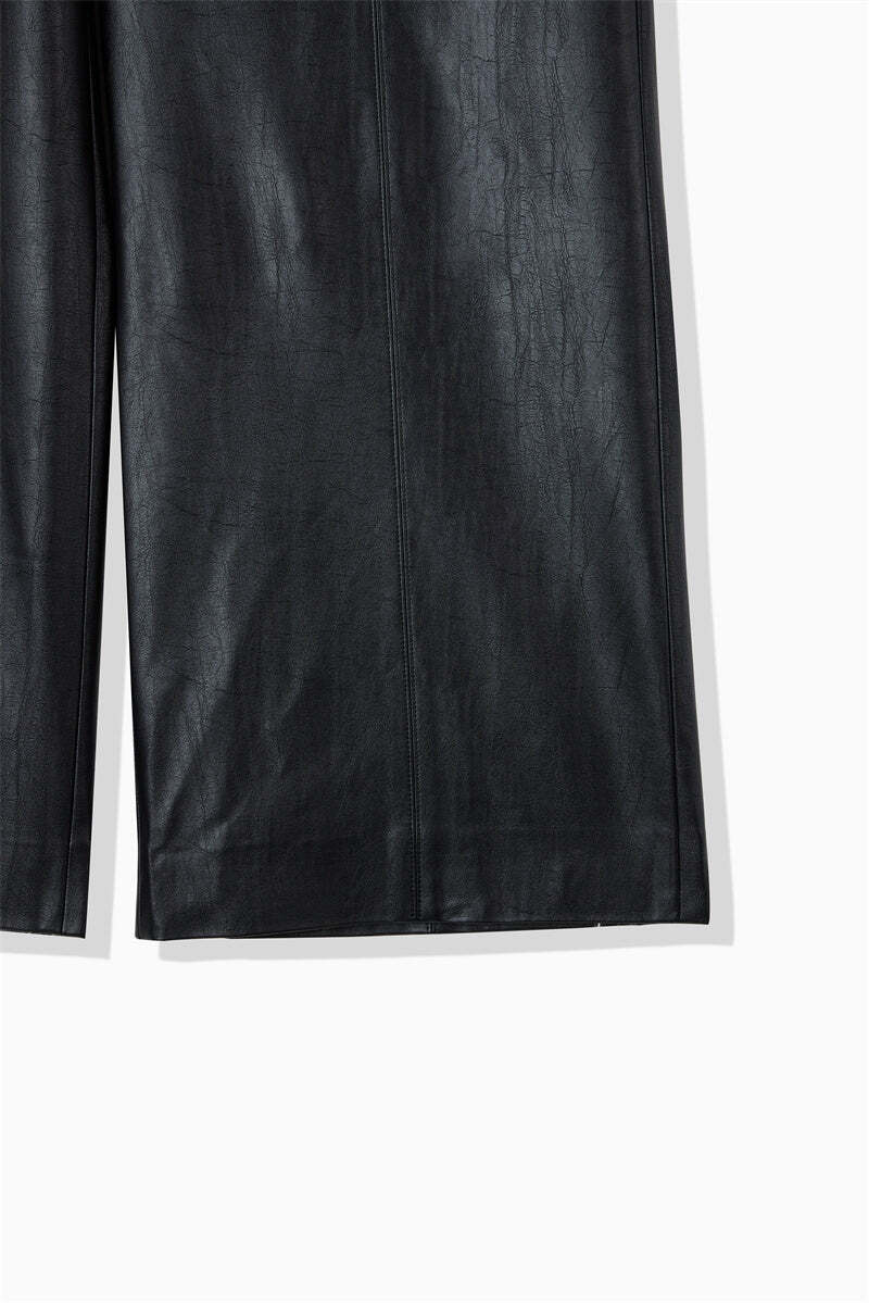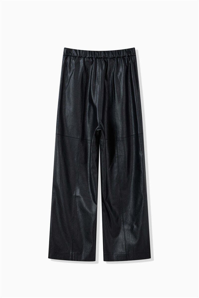 FOURAM - EMBOSS ECO LEATHER PANTS :Black|エンボスエコレザー/リラックスストレート/後ろゴムウエスト