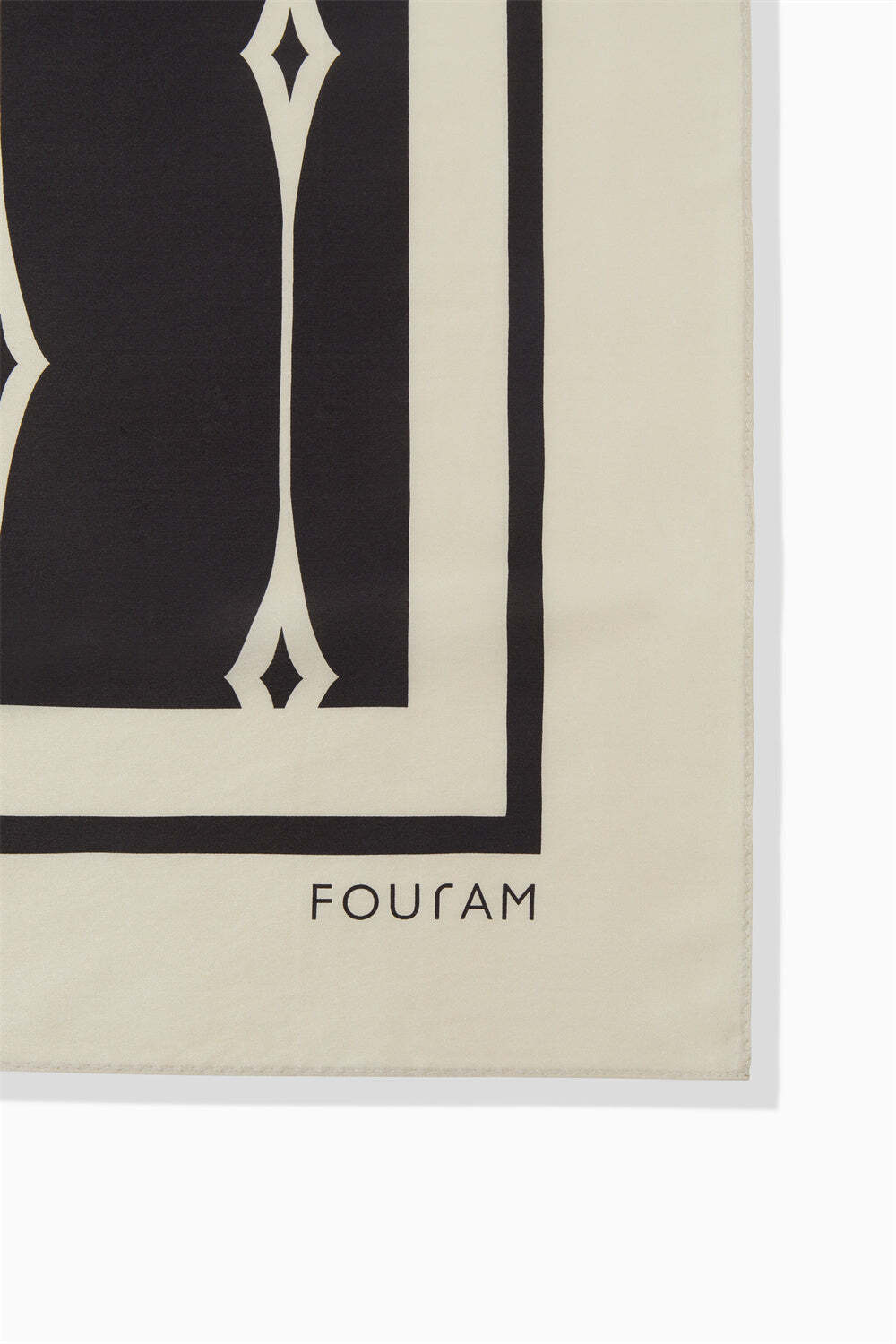 A 100% silk scarf with an original pattern created each season—one of FOURAM’s brand icons.
