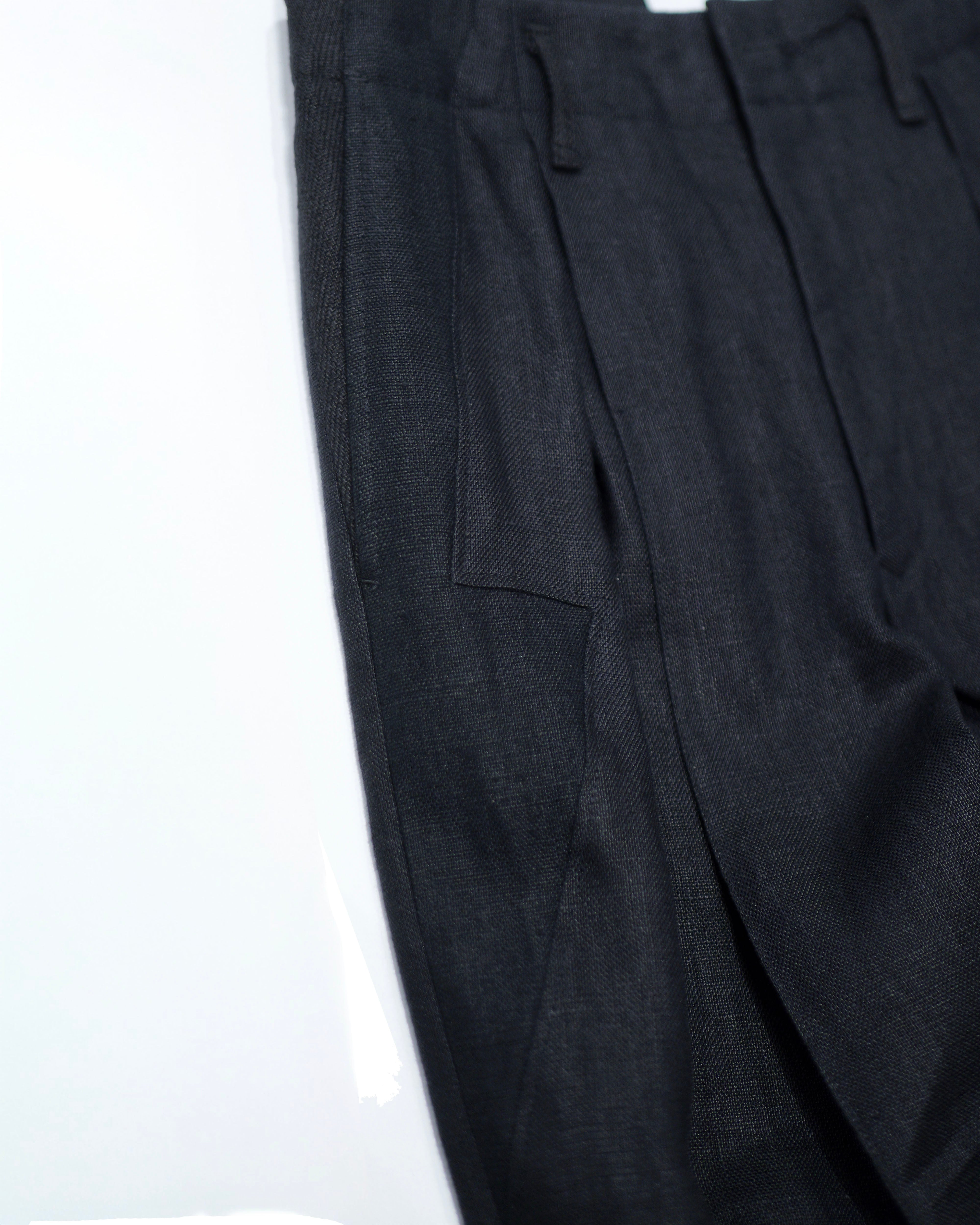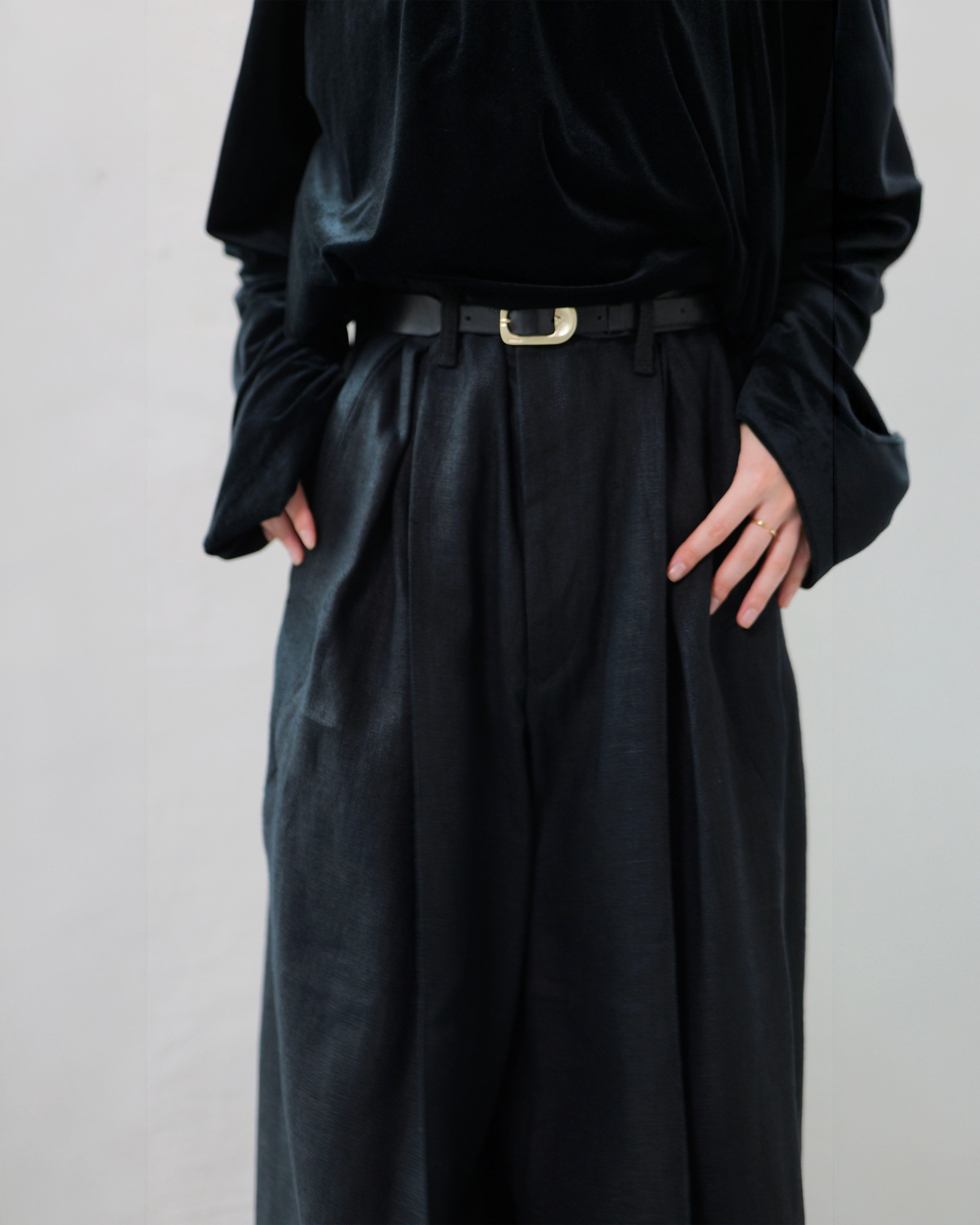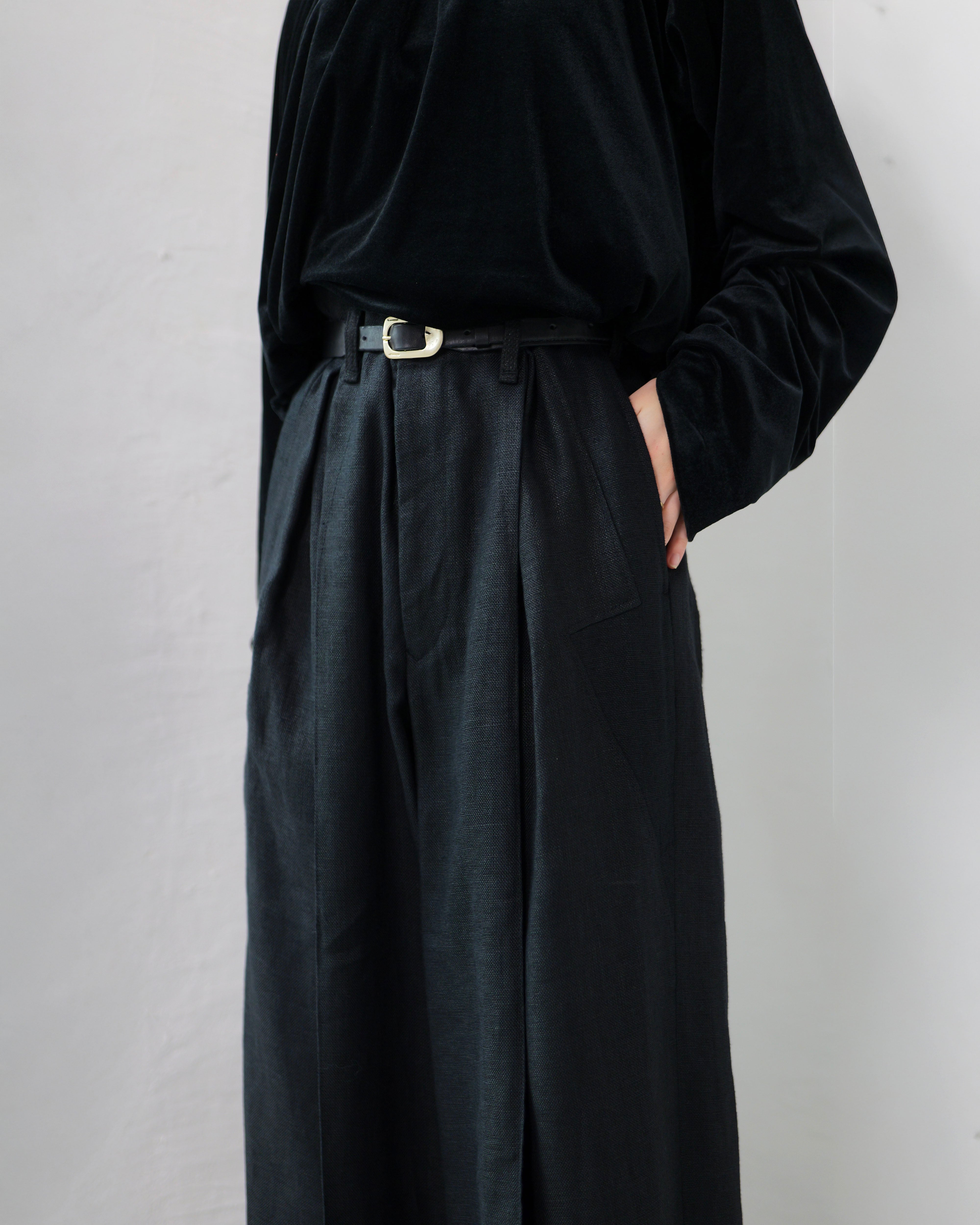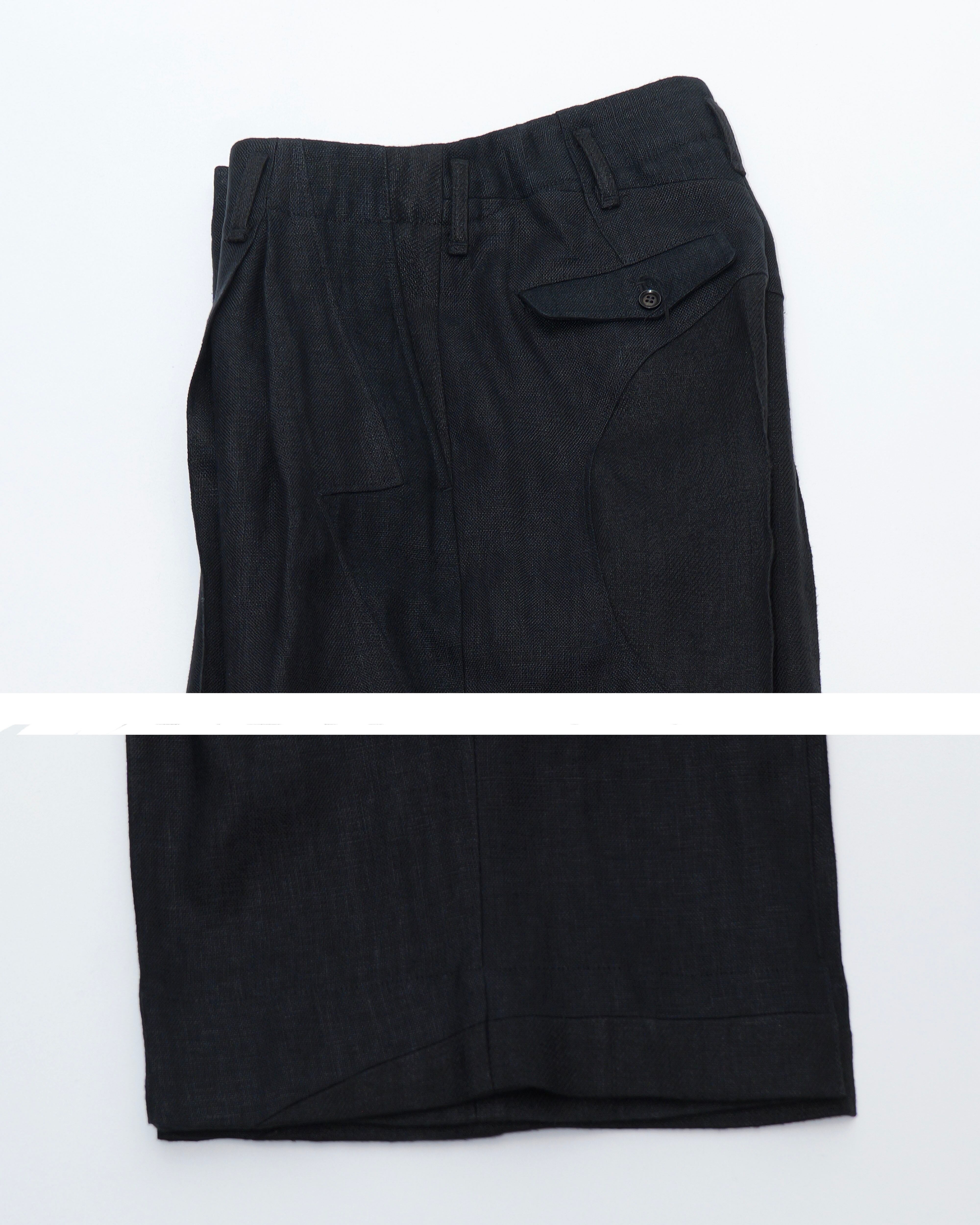 i’m here - Linen Wide Pants :Black|3種リネン切替/ワイド/“だまし絵”前立て
