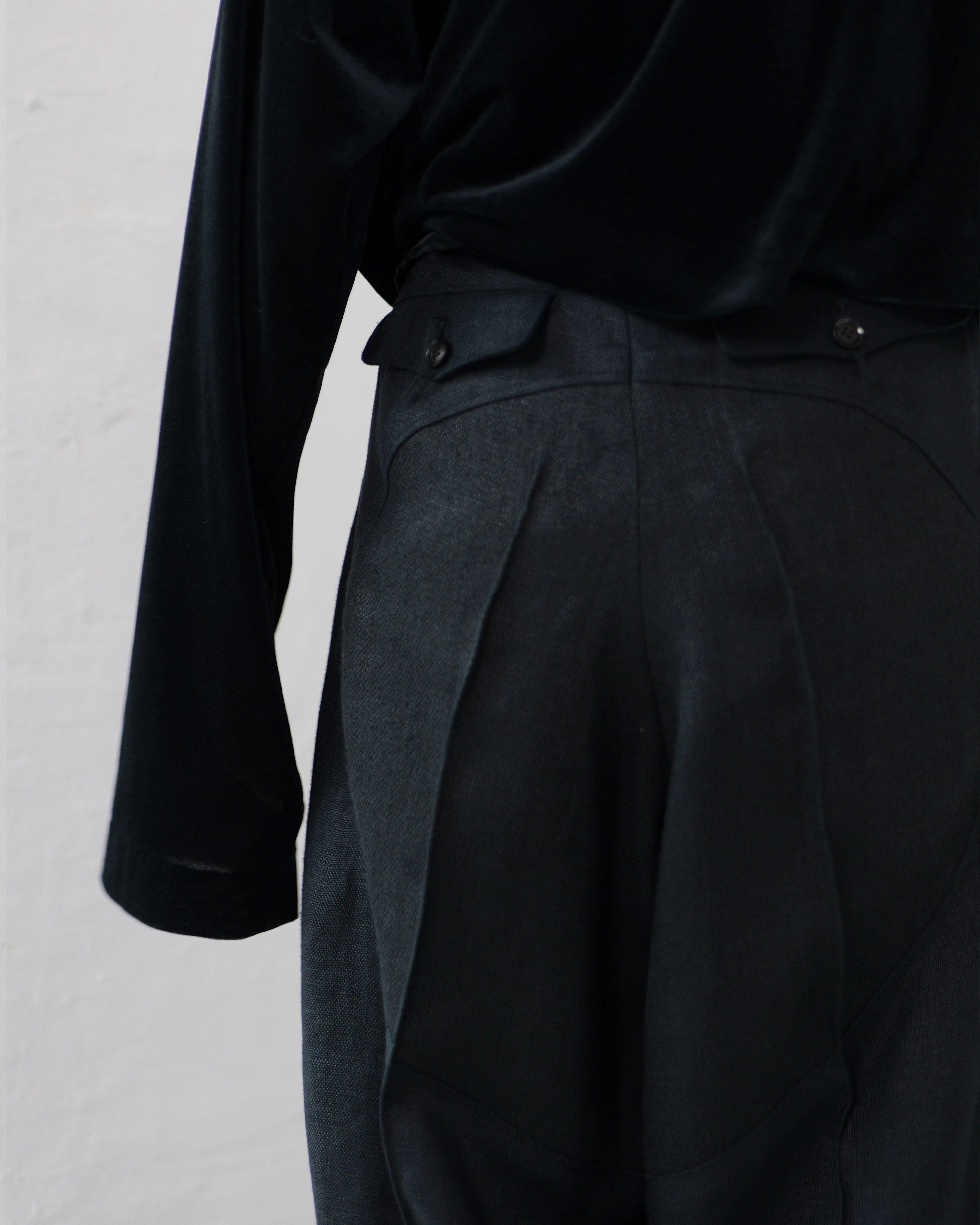 Cutting transitions gently from the front to the hip, giving security around the waist and negative space toward the hem.