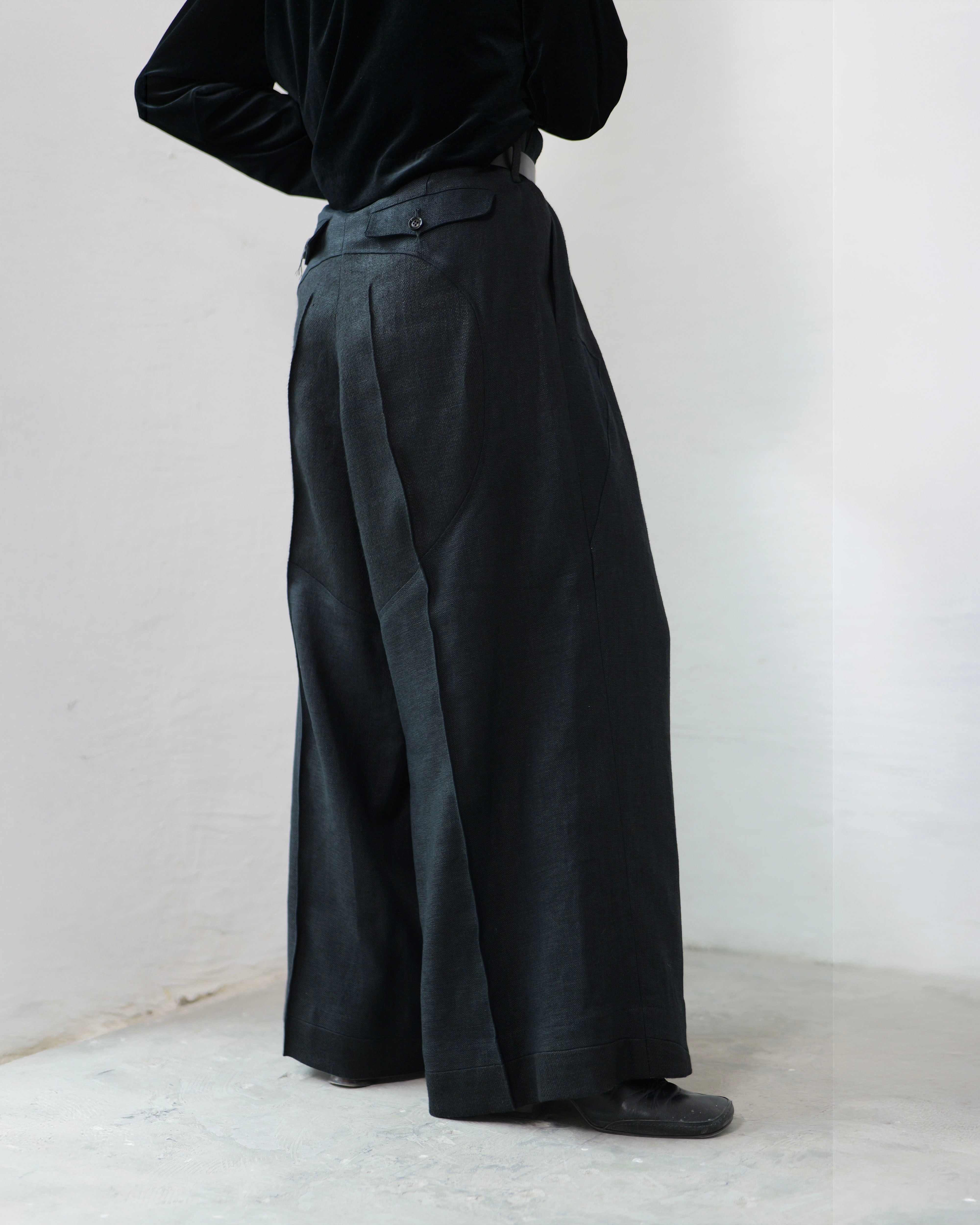 These wide pants quietly embed linen’s “expression differences” as design.