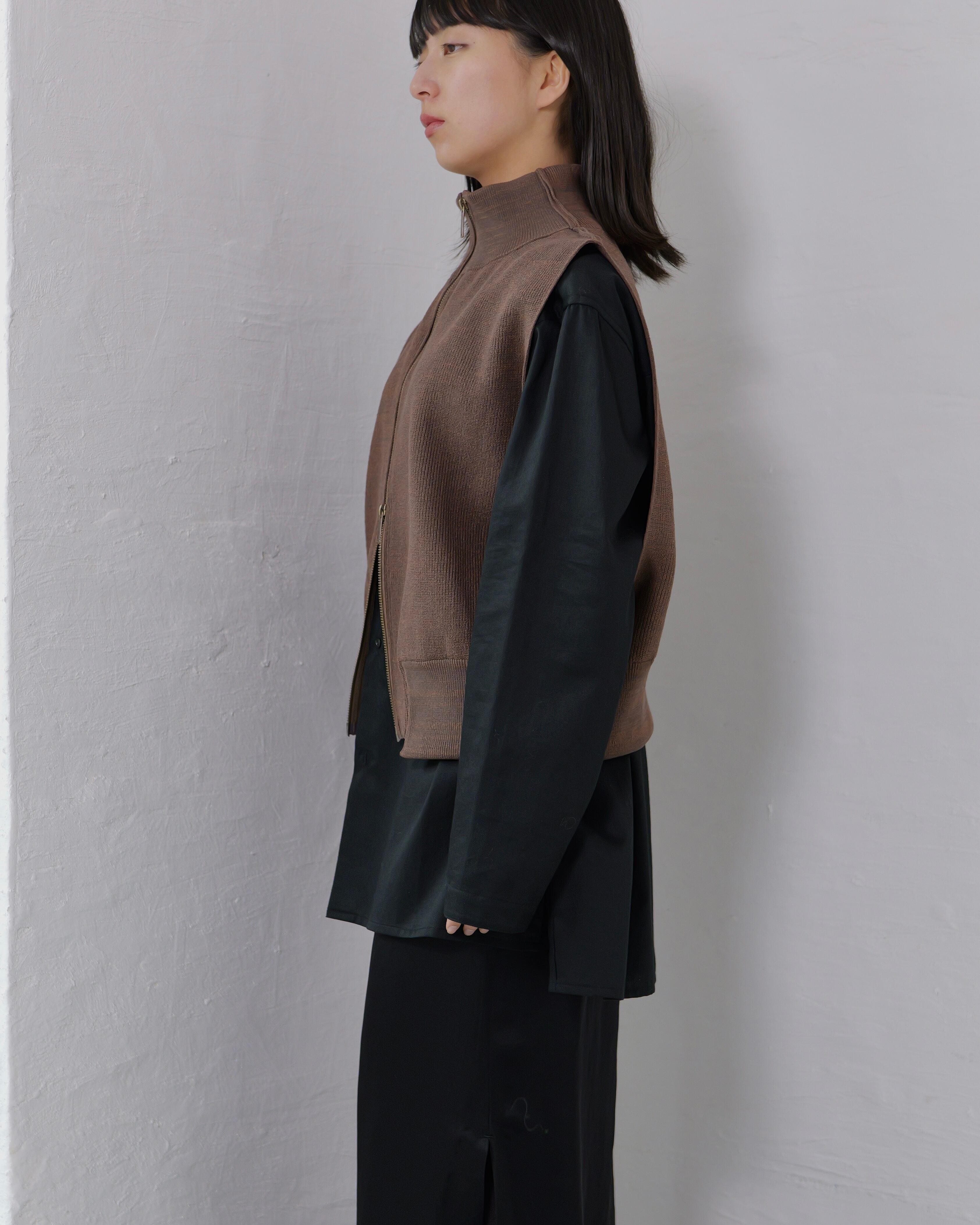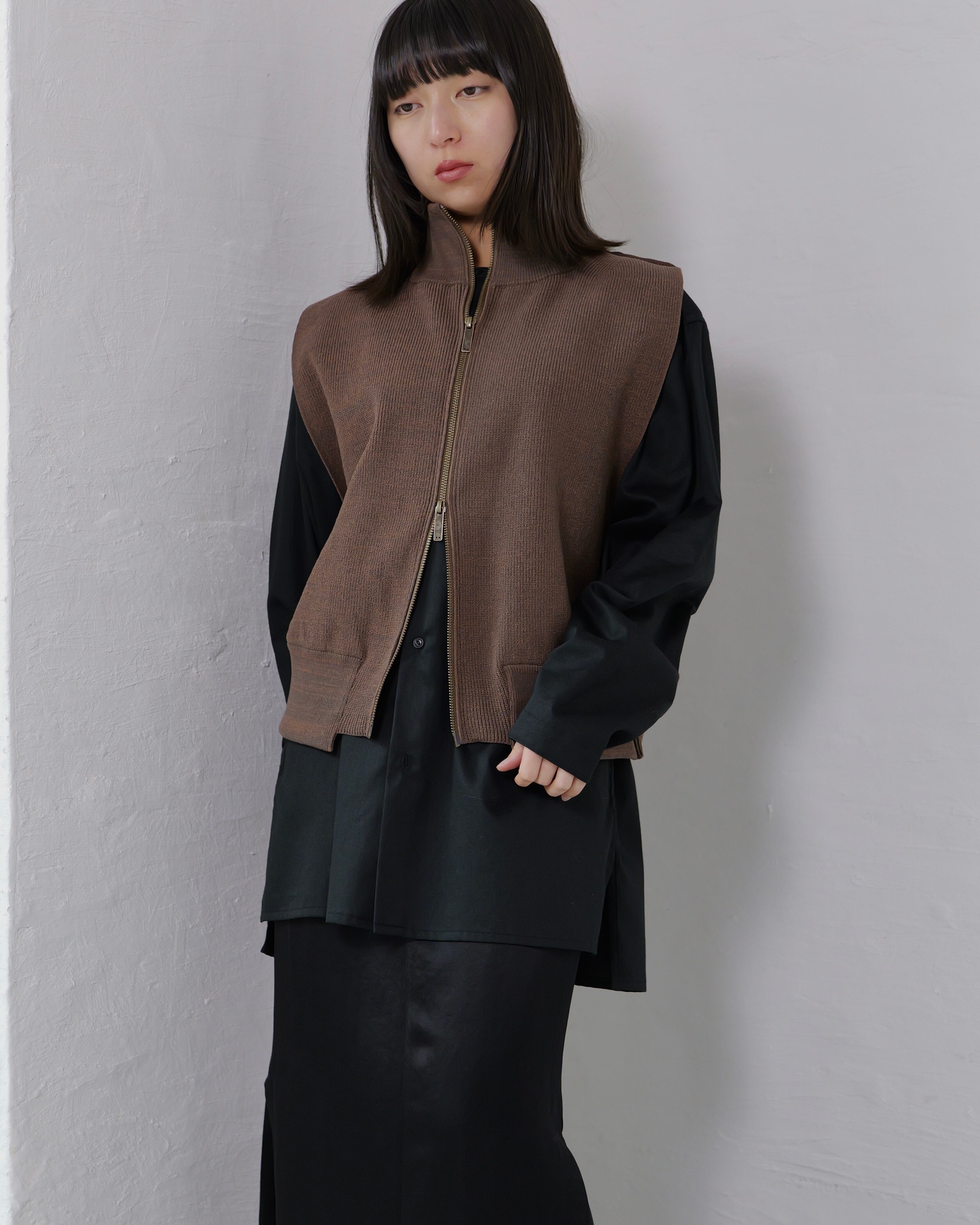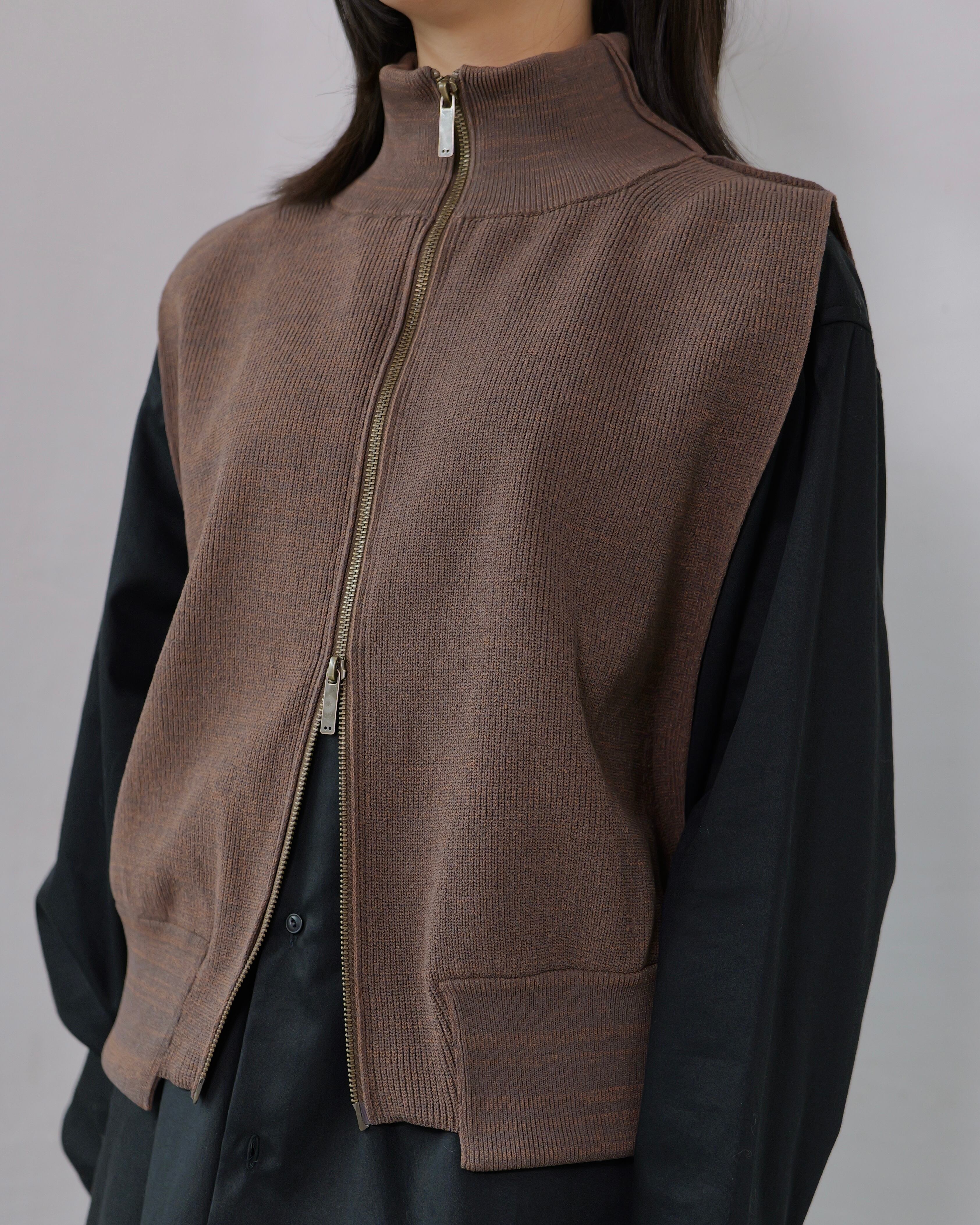 i’m here - Driver’s Knit Vest :Brown|前後スイッチ/ダブルファスナー/立体リンクス