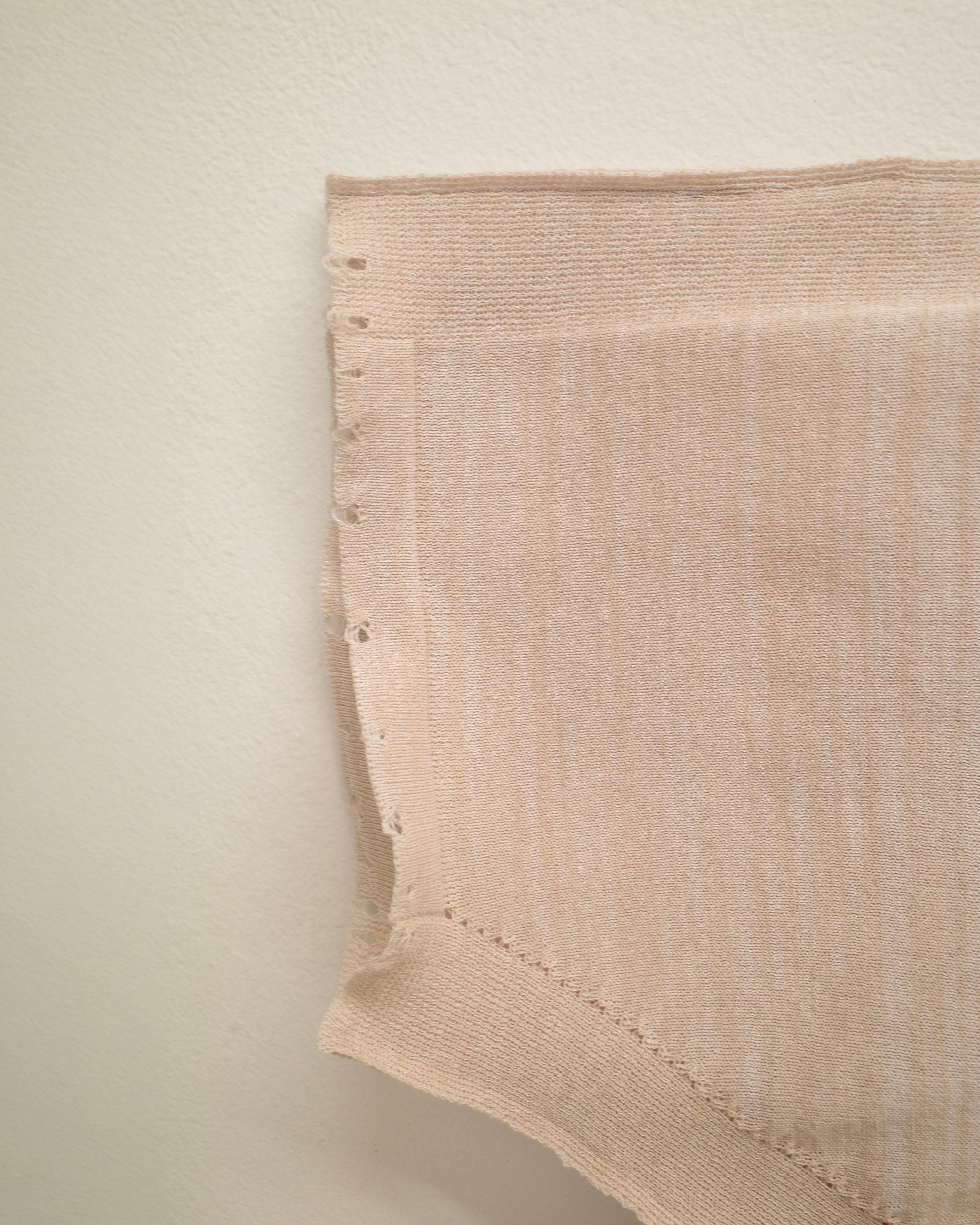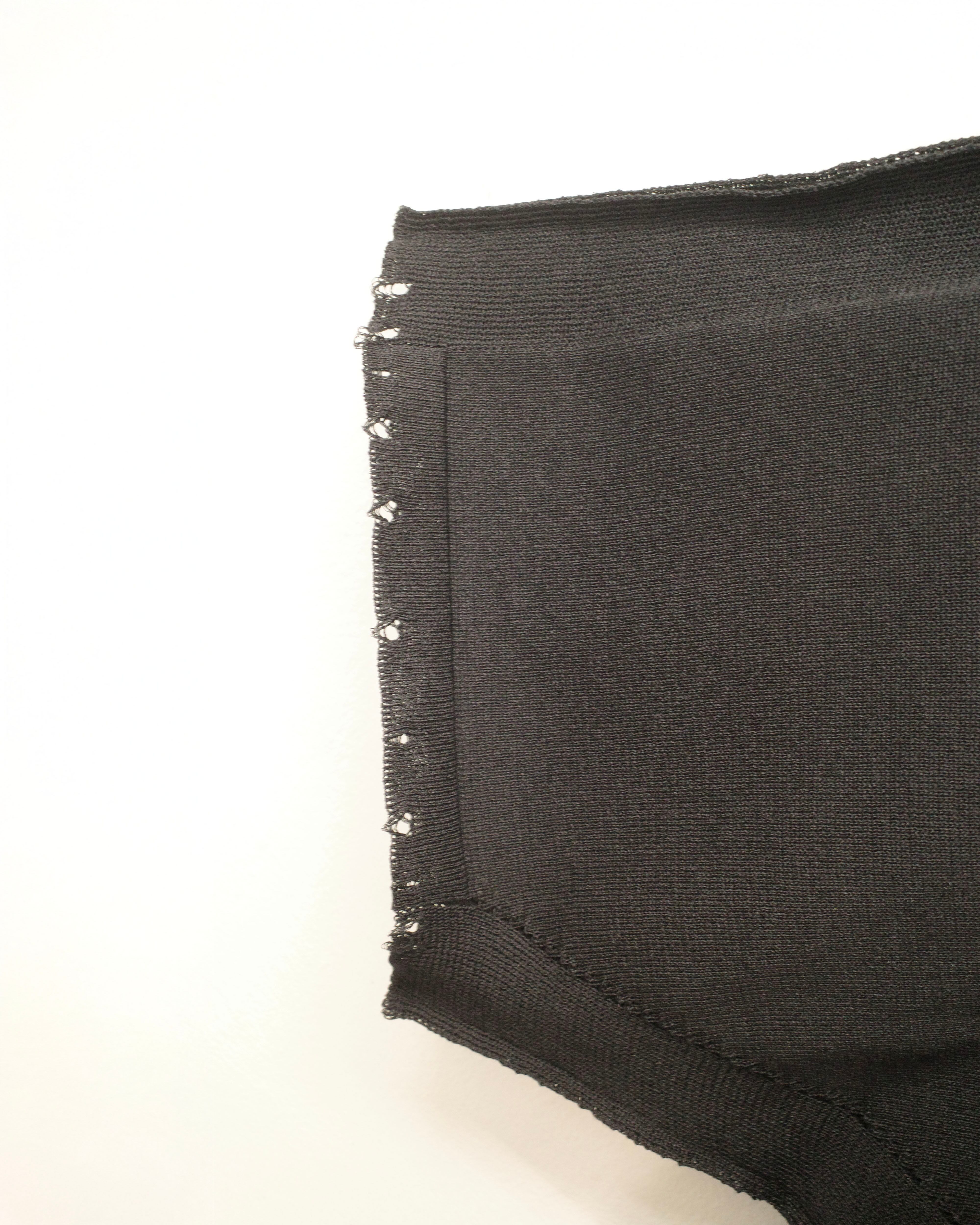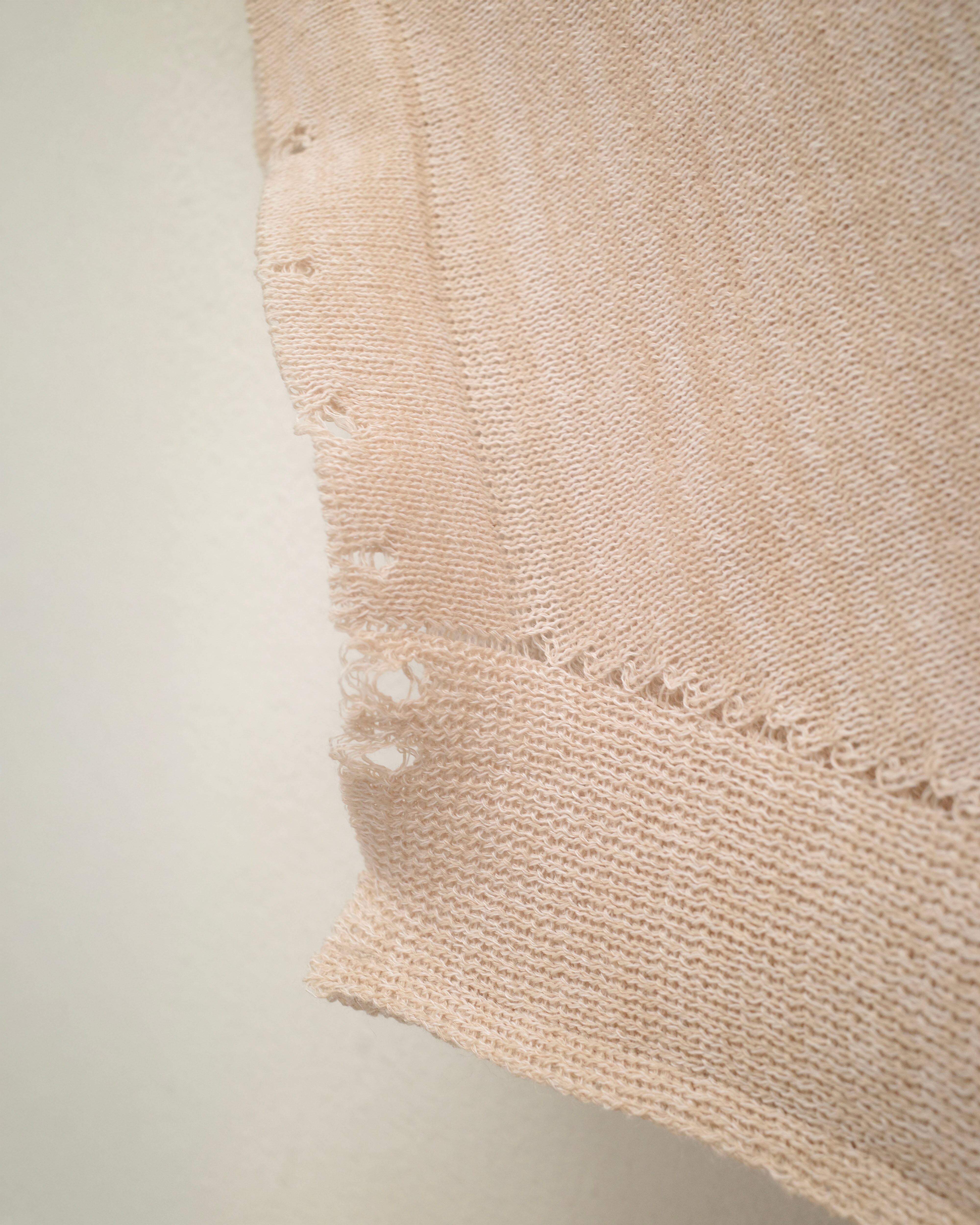 ・袖口は編み表現によるダメージ加工(ほつれをアクセントに)
