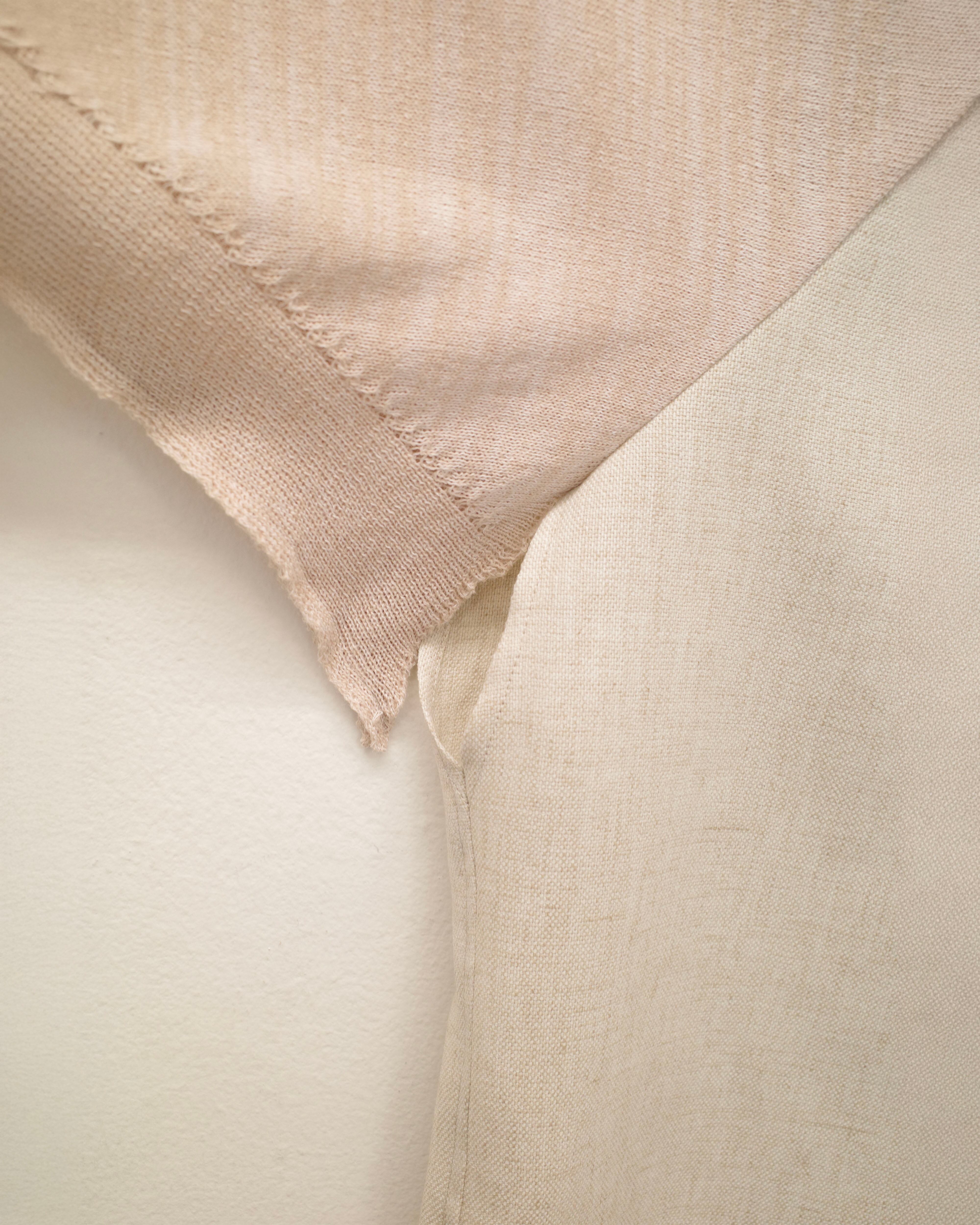 同じくリネン×ポリエステルの糸で編み立てた袖は、