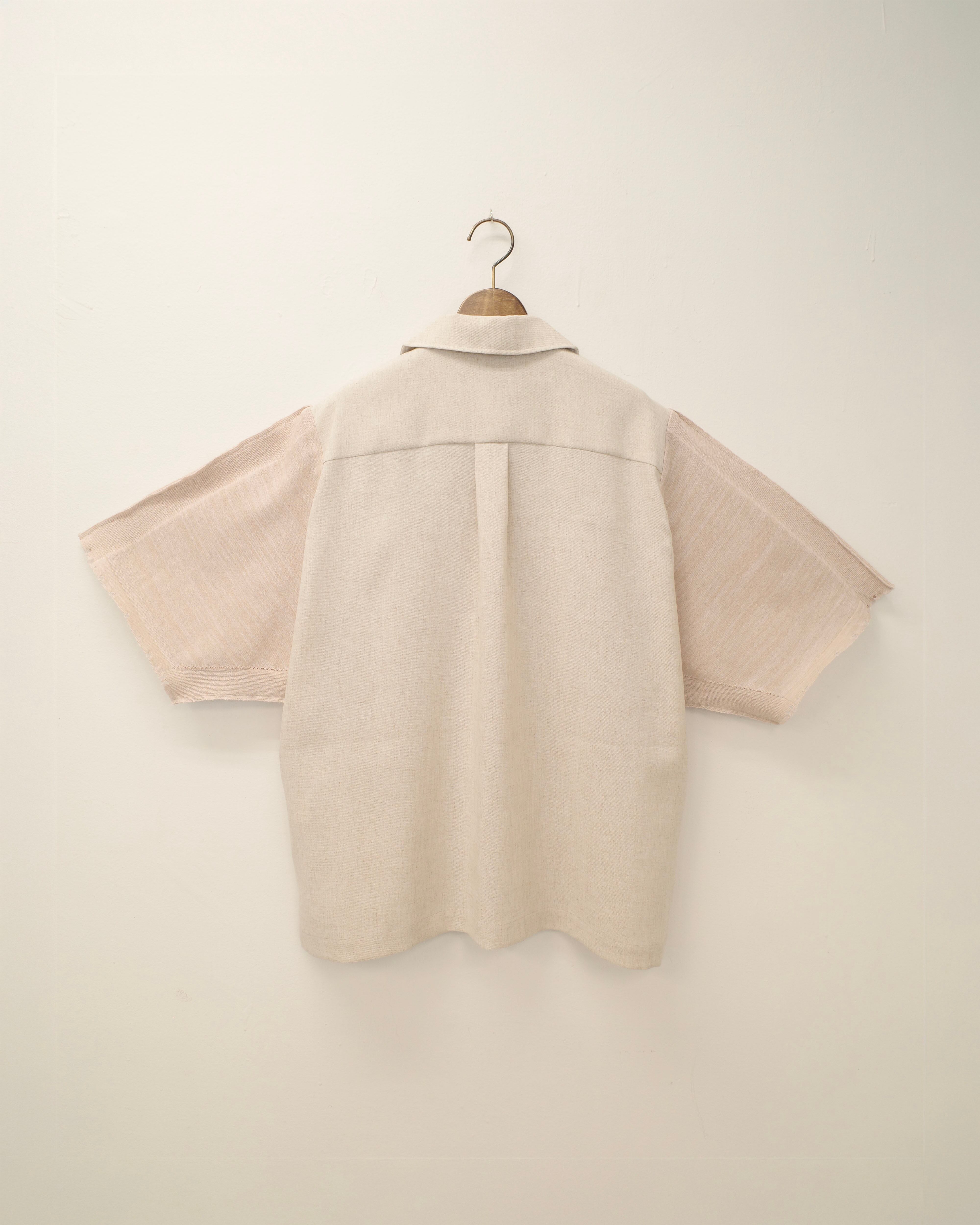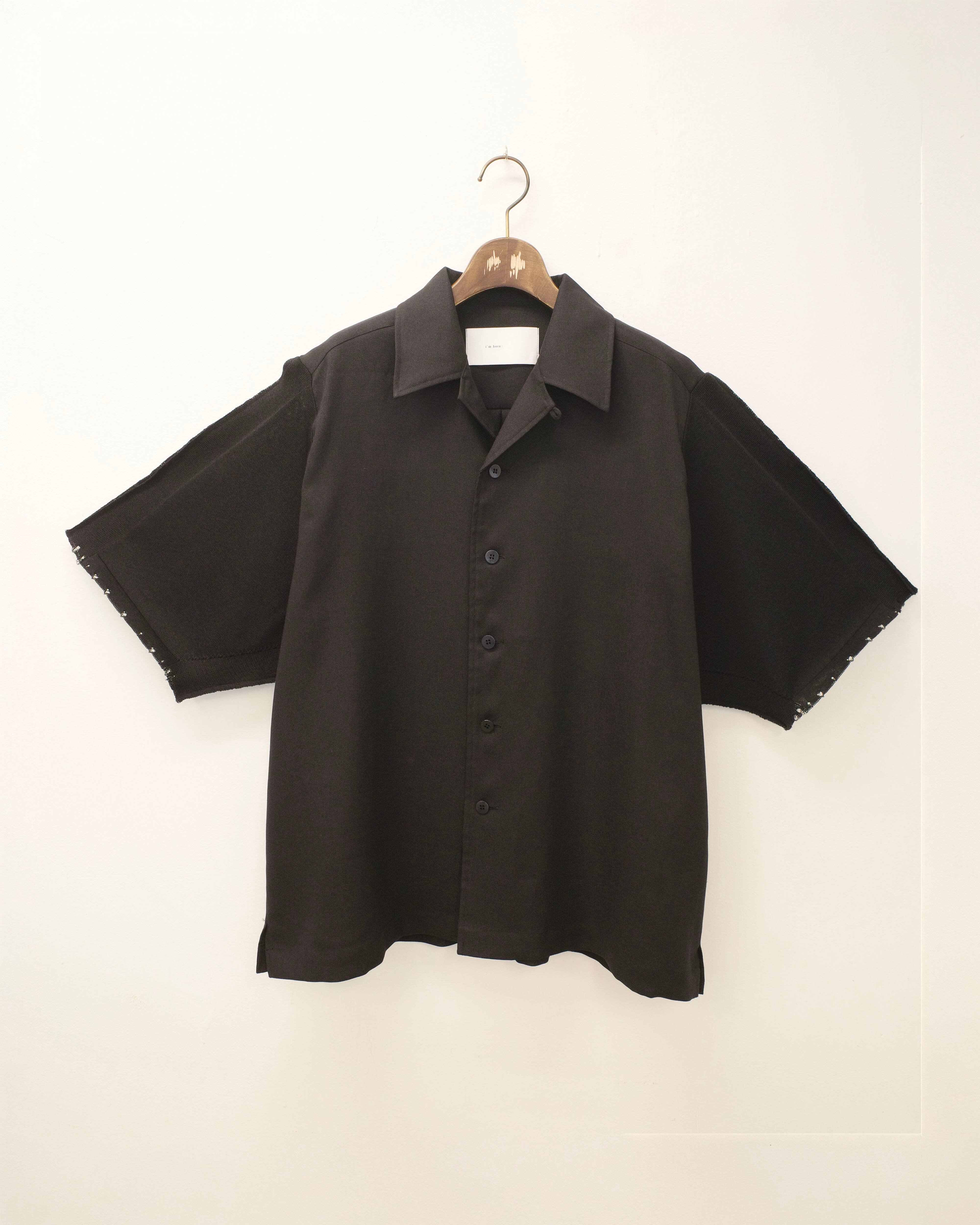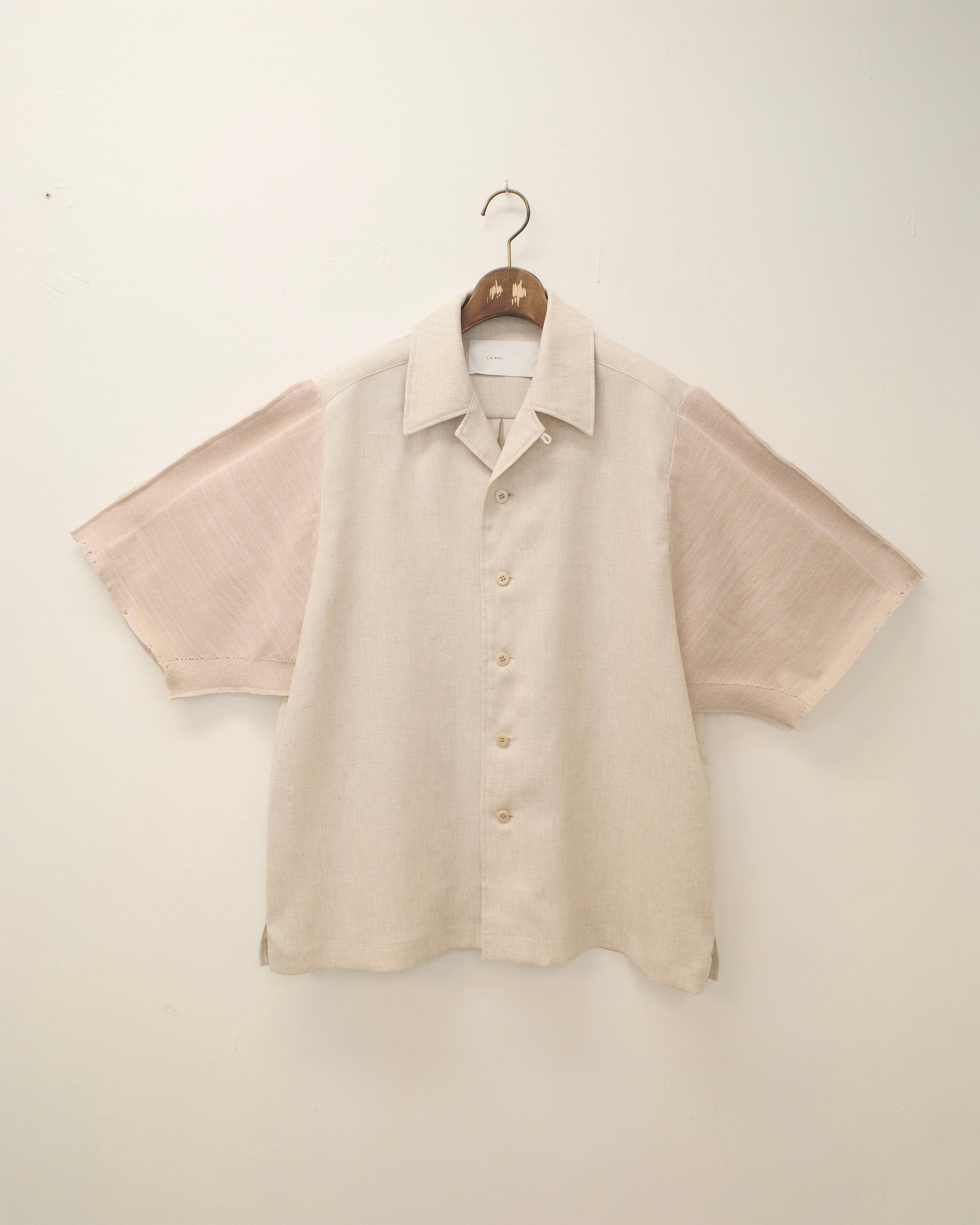 i’m here - Knit Short Sleeve Docking Shirts :Beige|オープンカラー/ニット袖ドッキング/袖口ダメージ