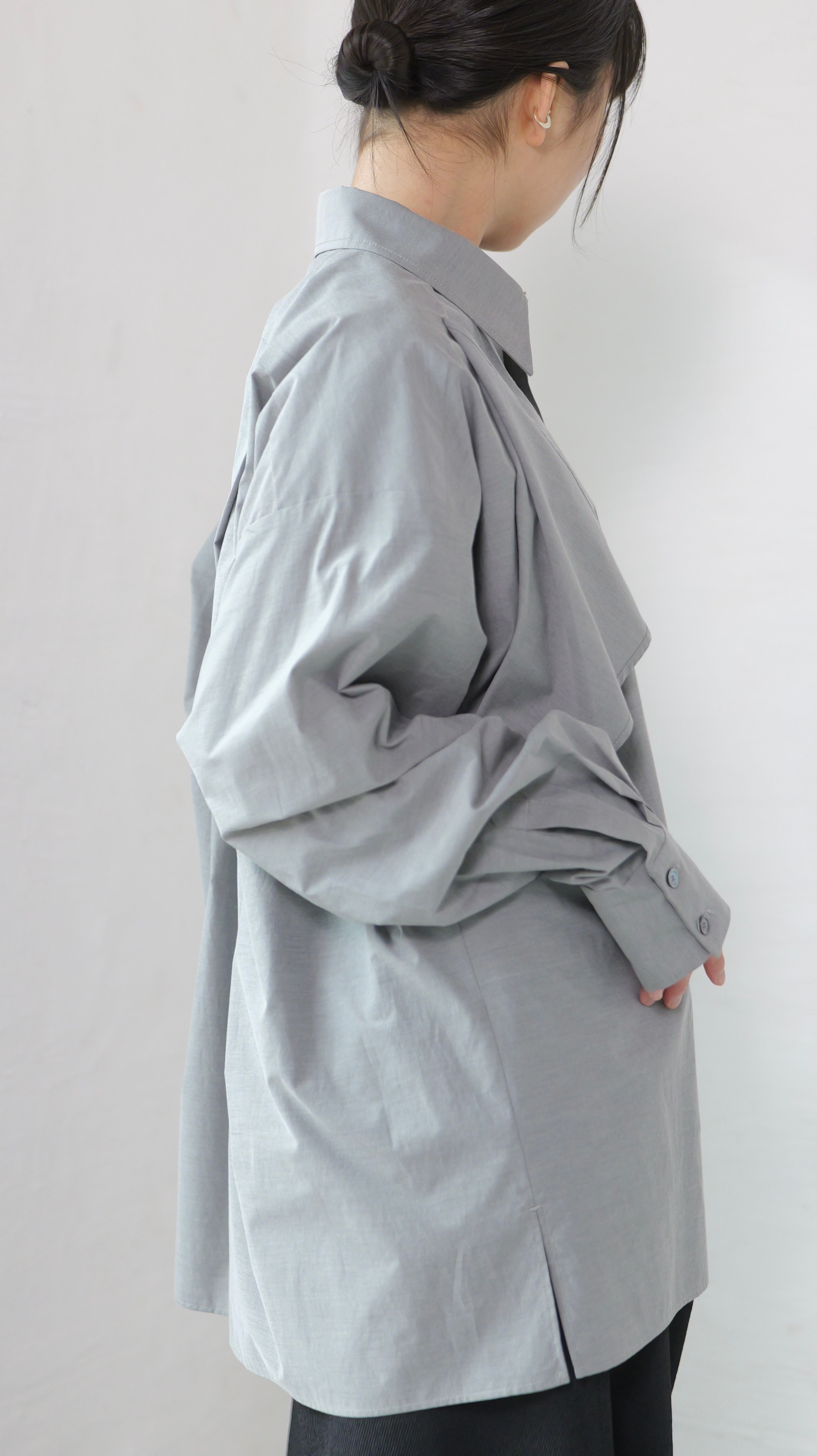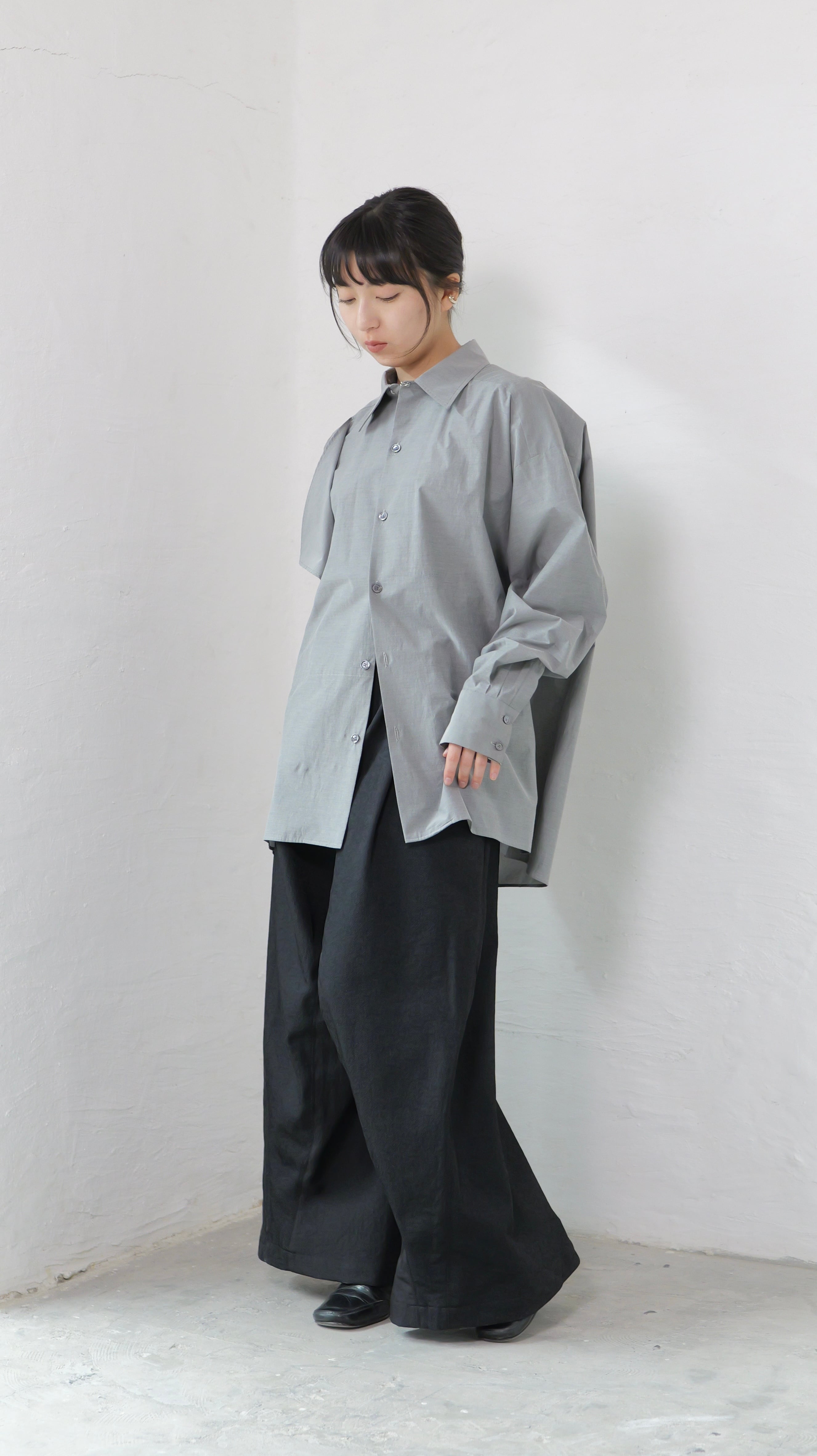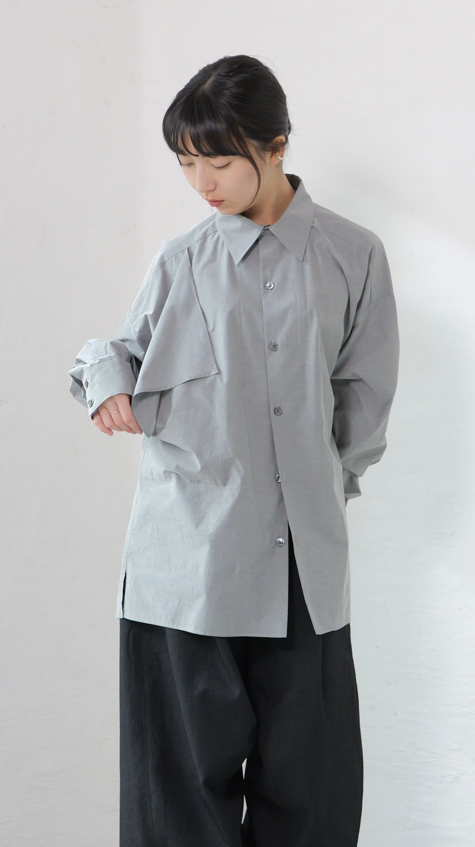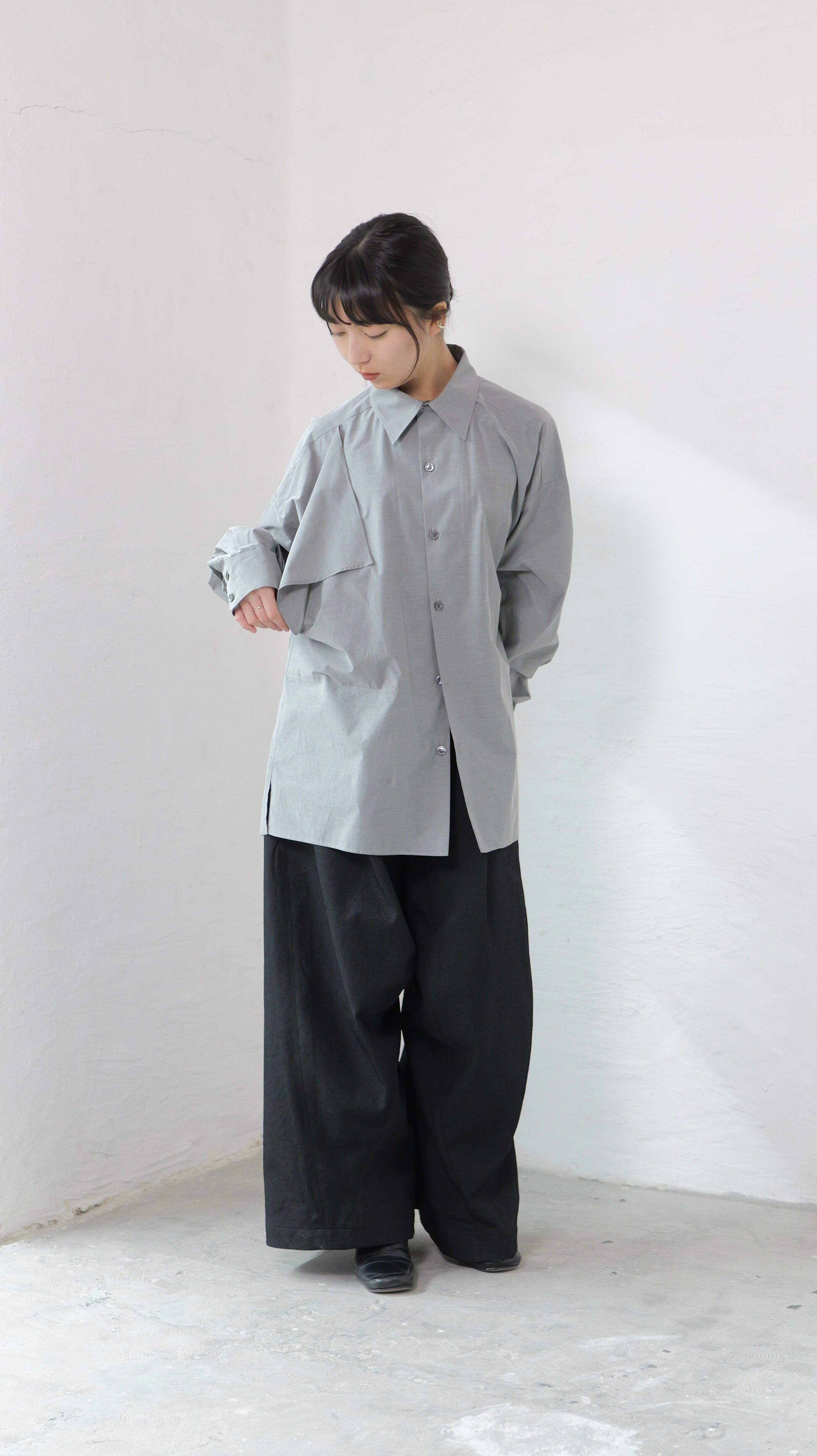 RITSUKO KARITA - 〔plain〕Drooping box shirts・unisex :Gray|障子の“垂れ”/ポケット一体