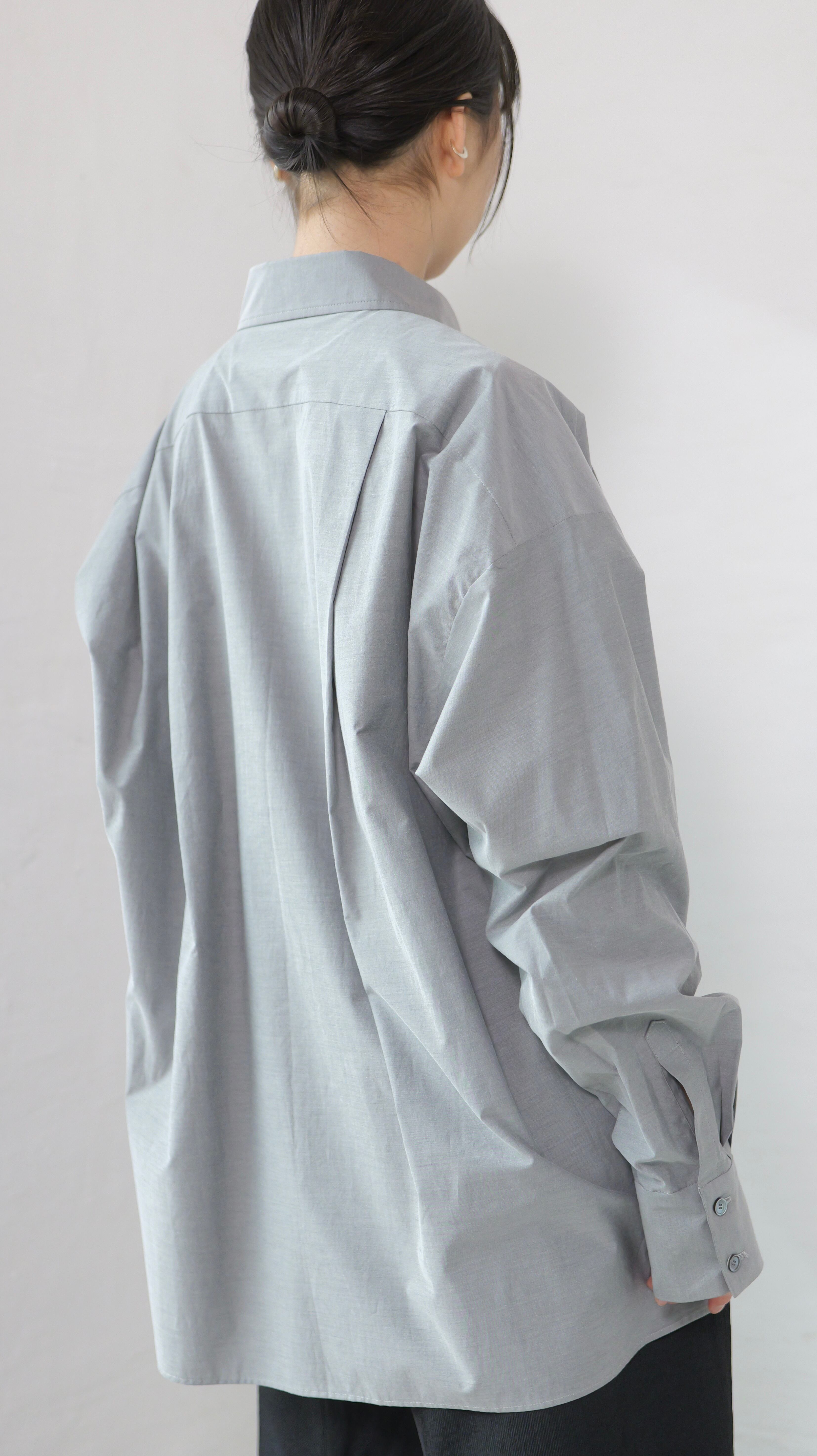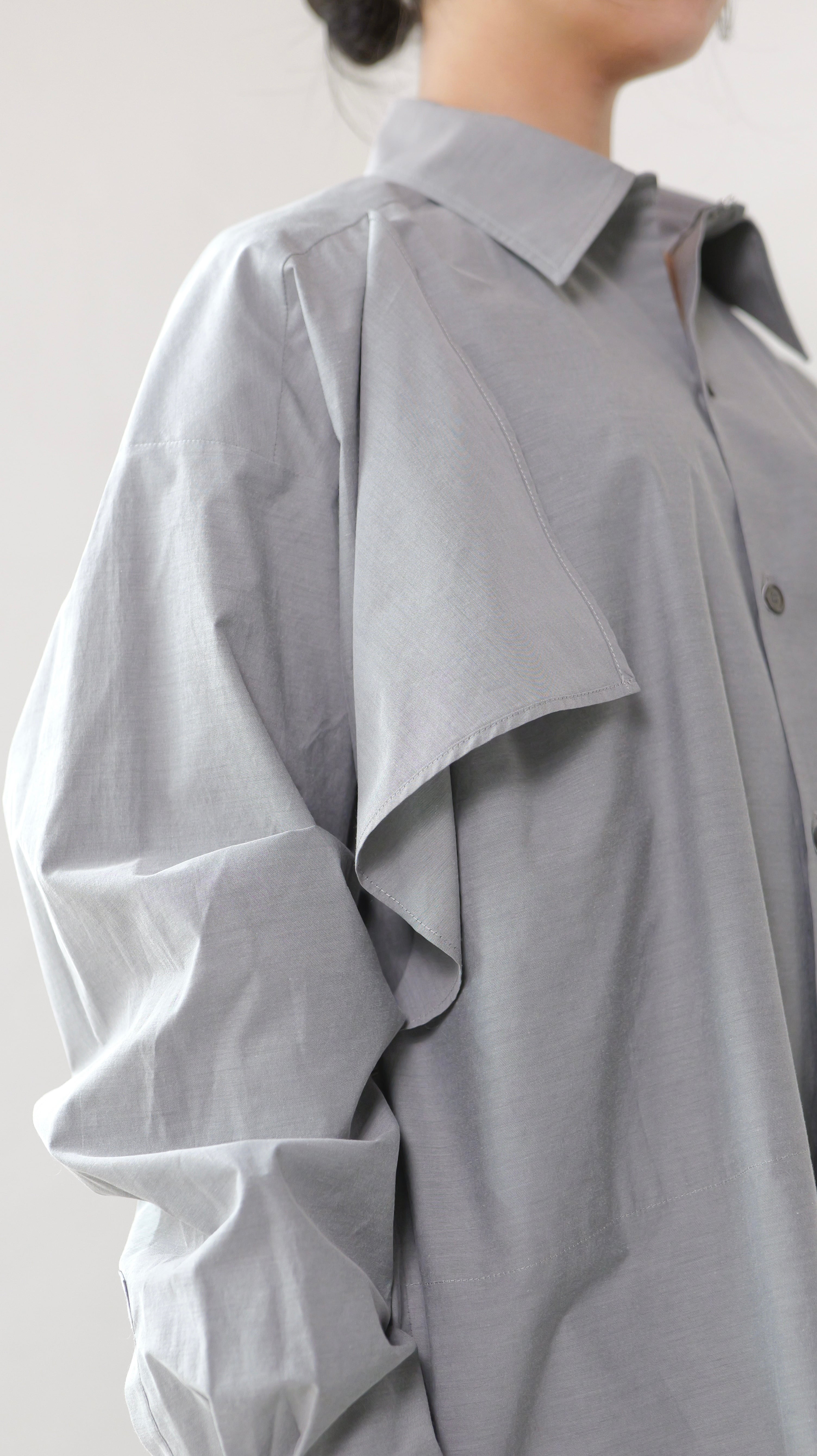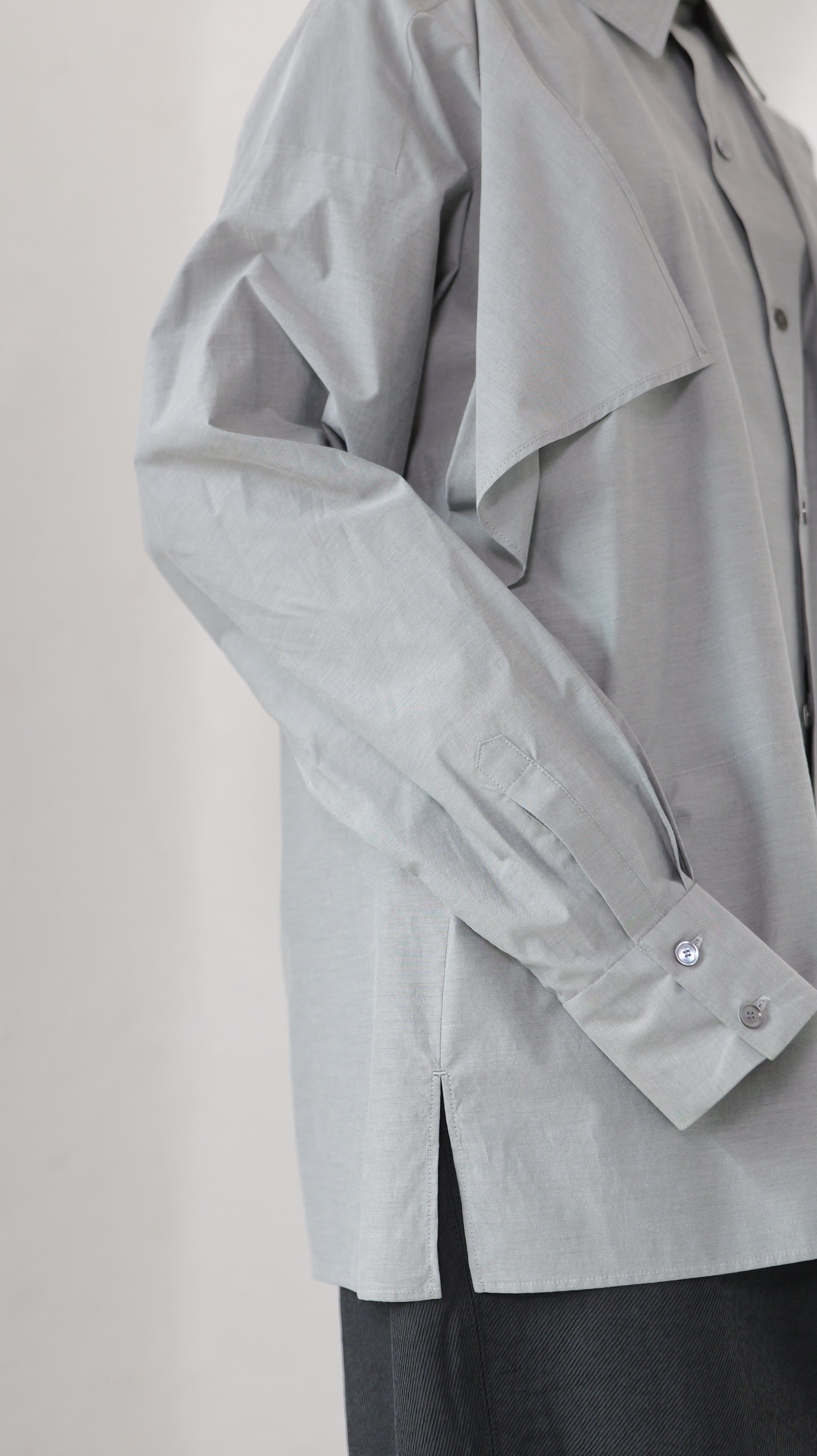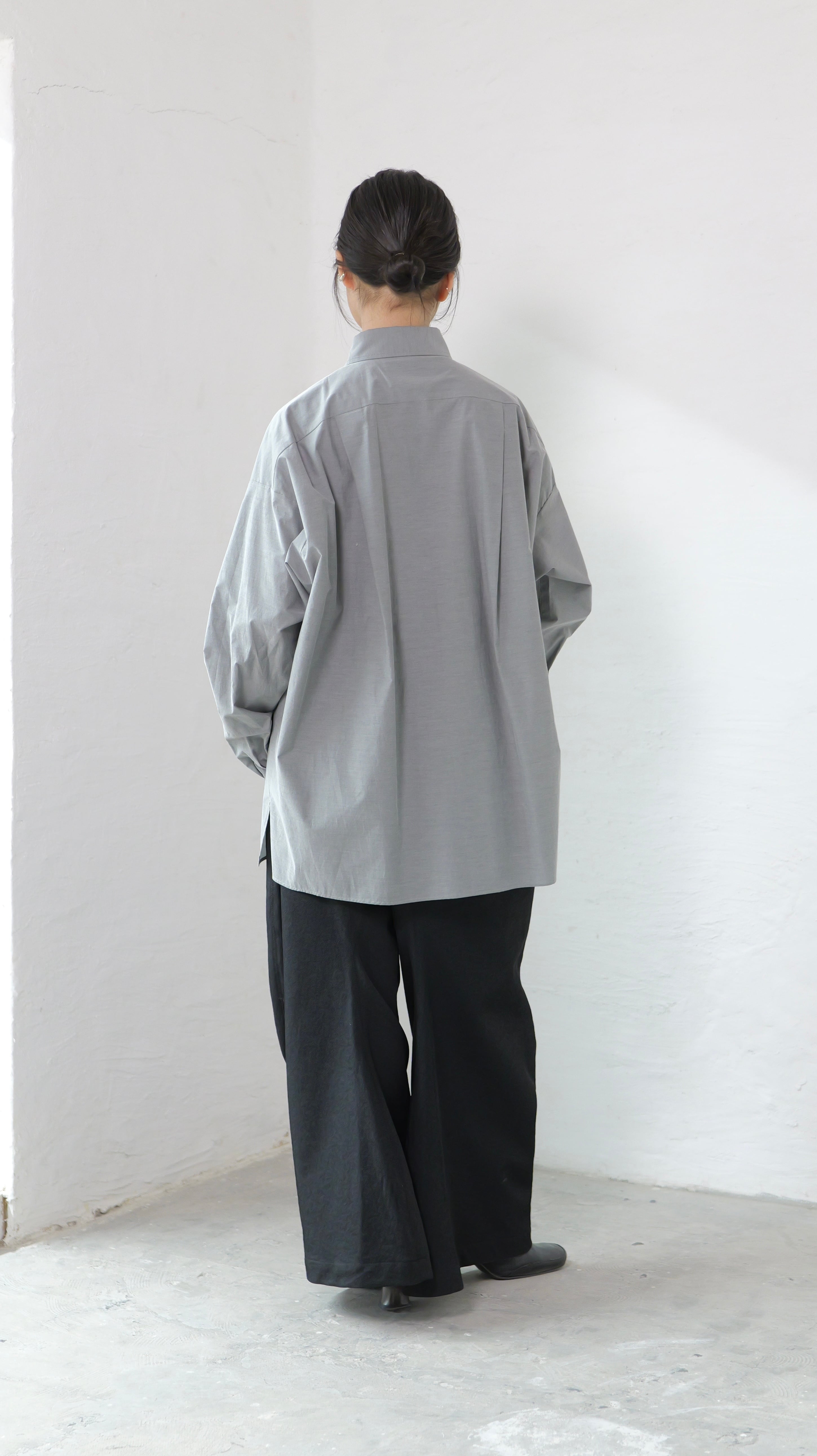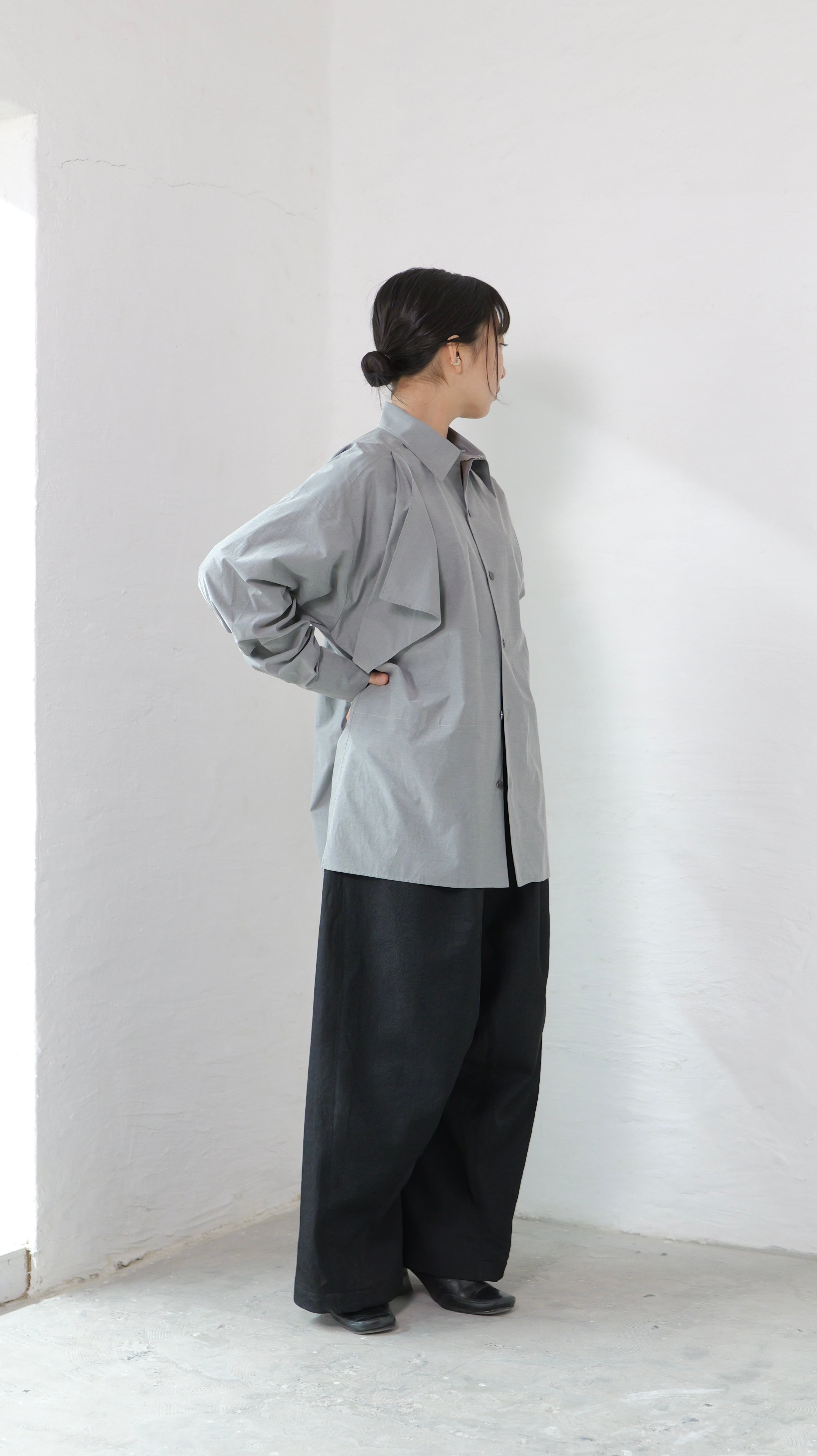 RITSUKO KARITA - 〔plain〕Drooping box shirts・unisex :Gray|障子の“垂れ”/ポケット一体