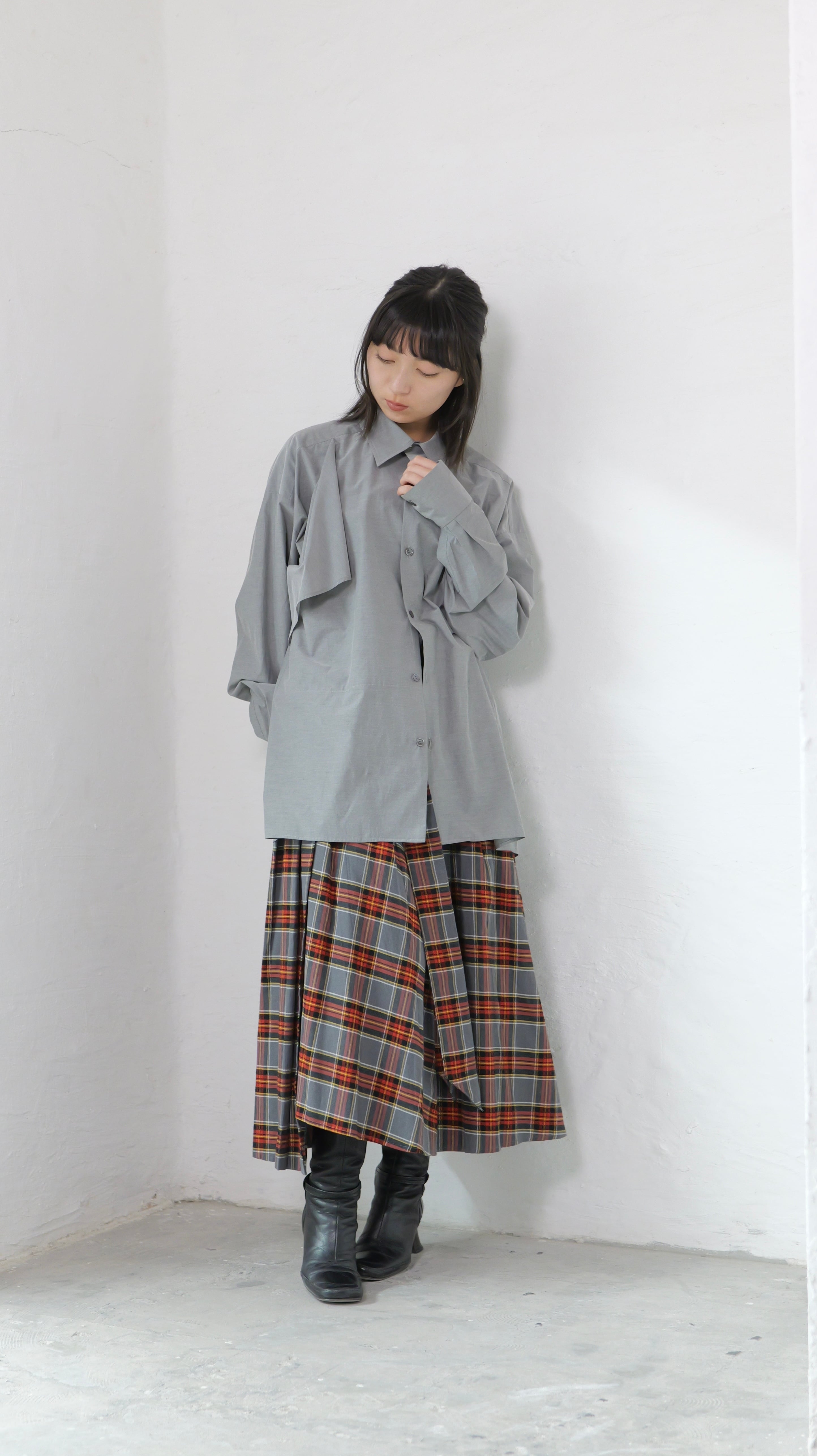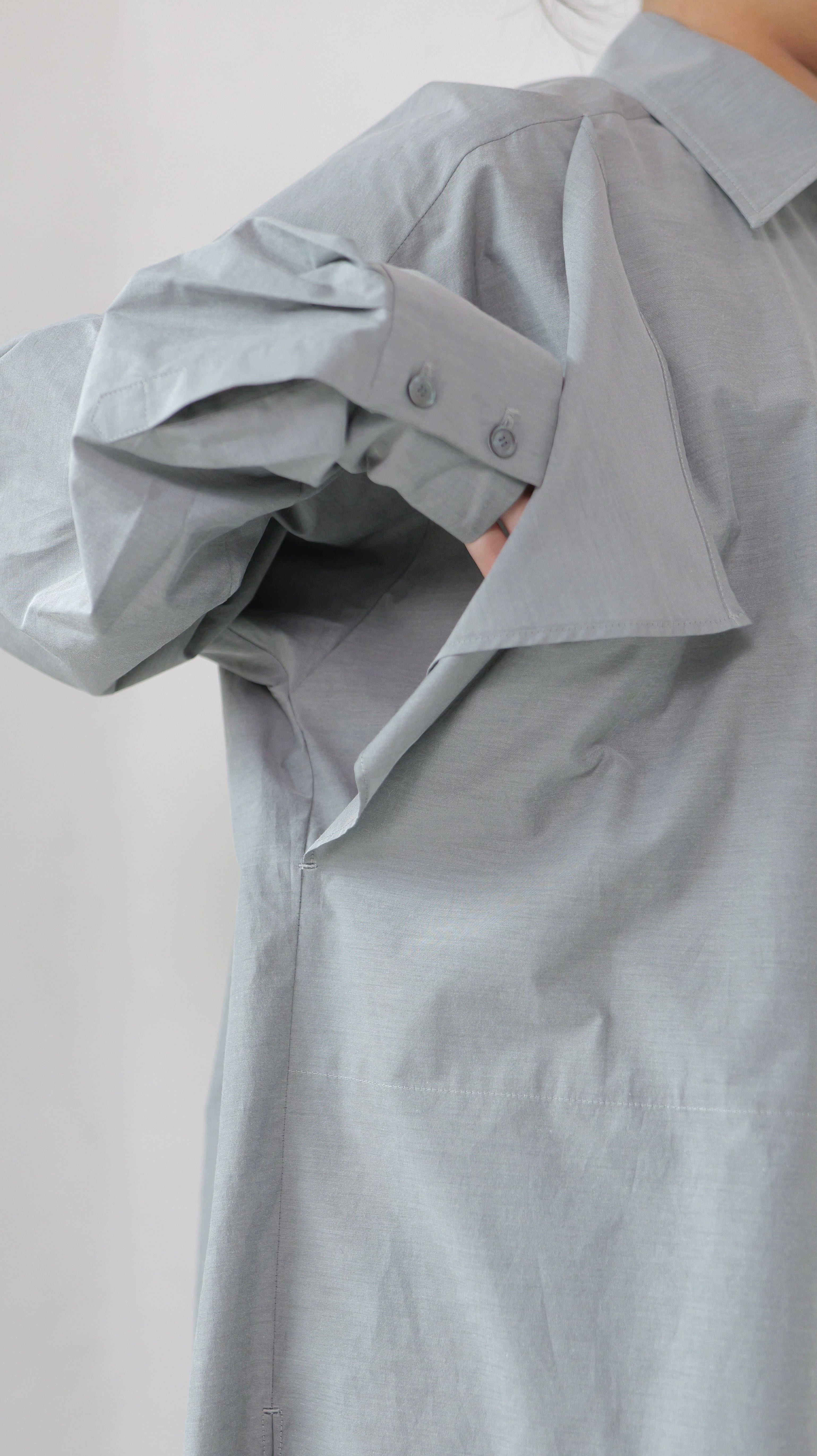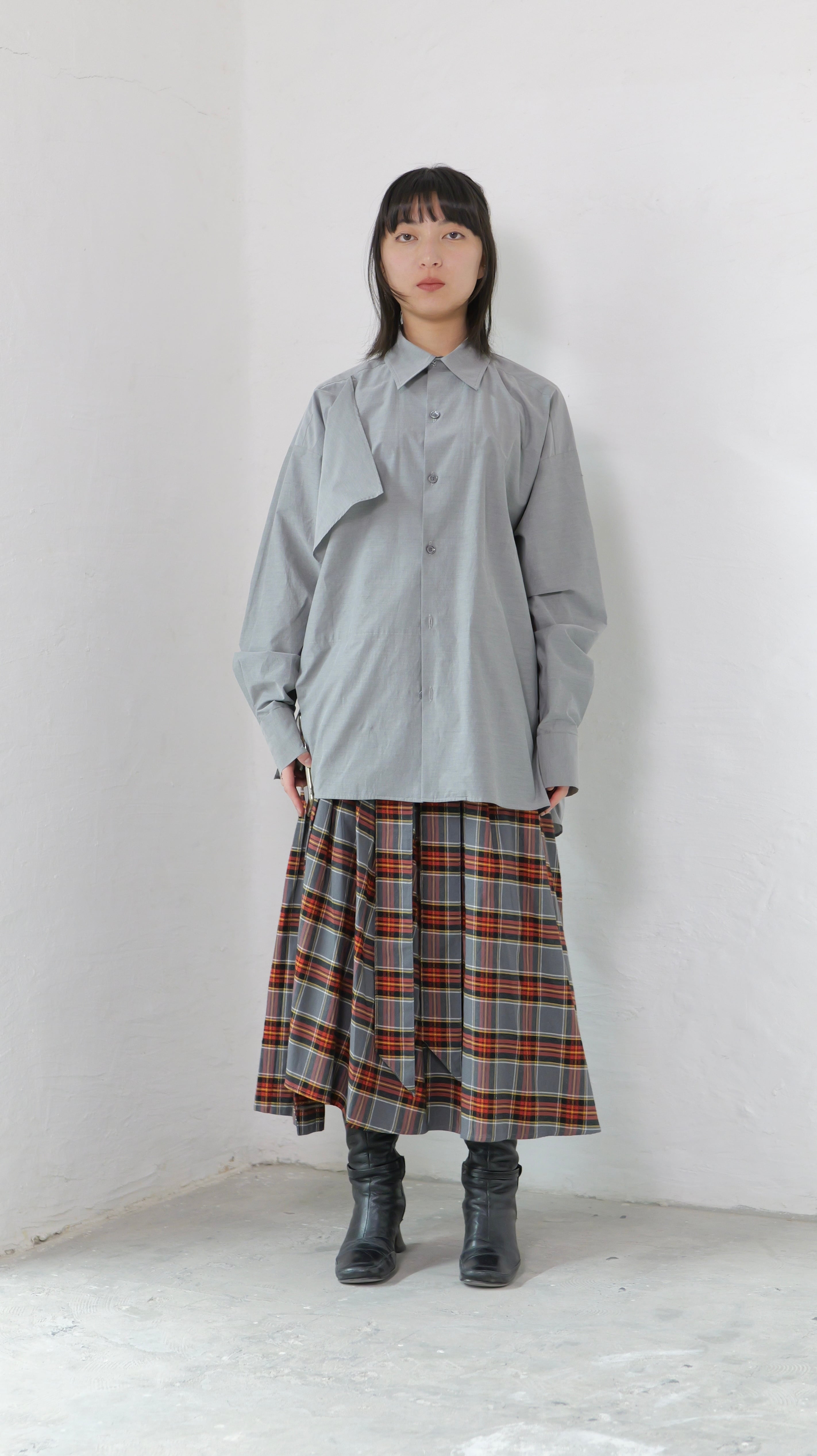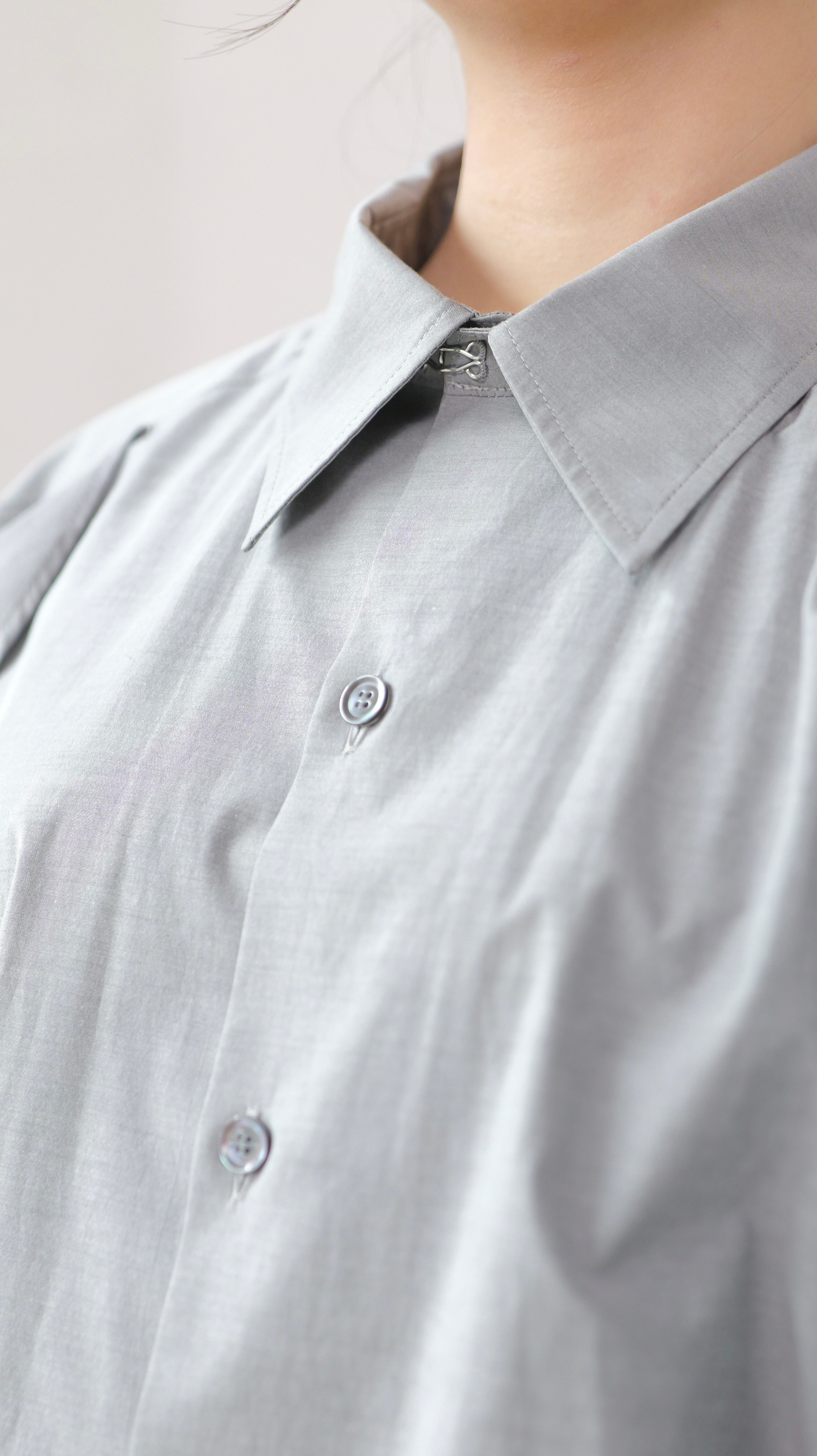 RITSUKO KARITA - 〔plain〕Drooping box shirts・unisex :Gray|障子の“垂れ”/ポケット一体