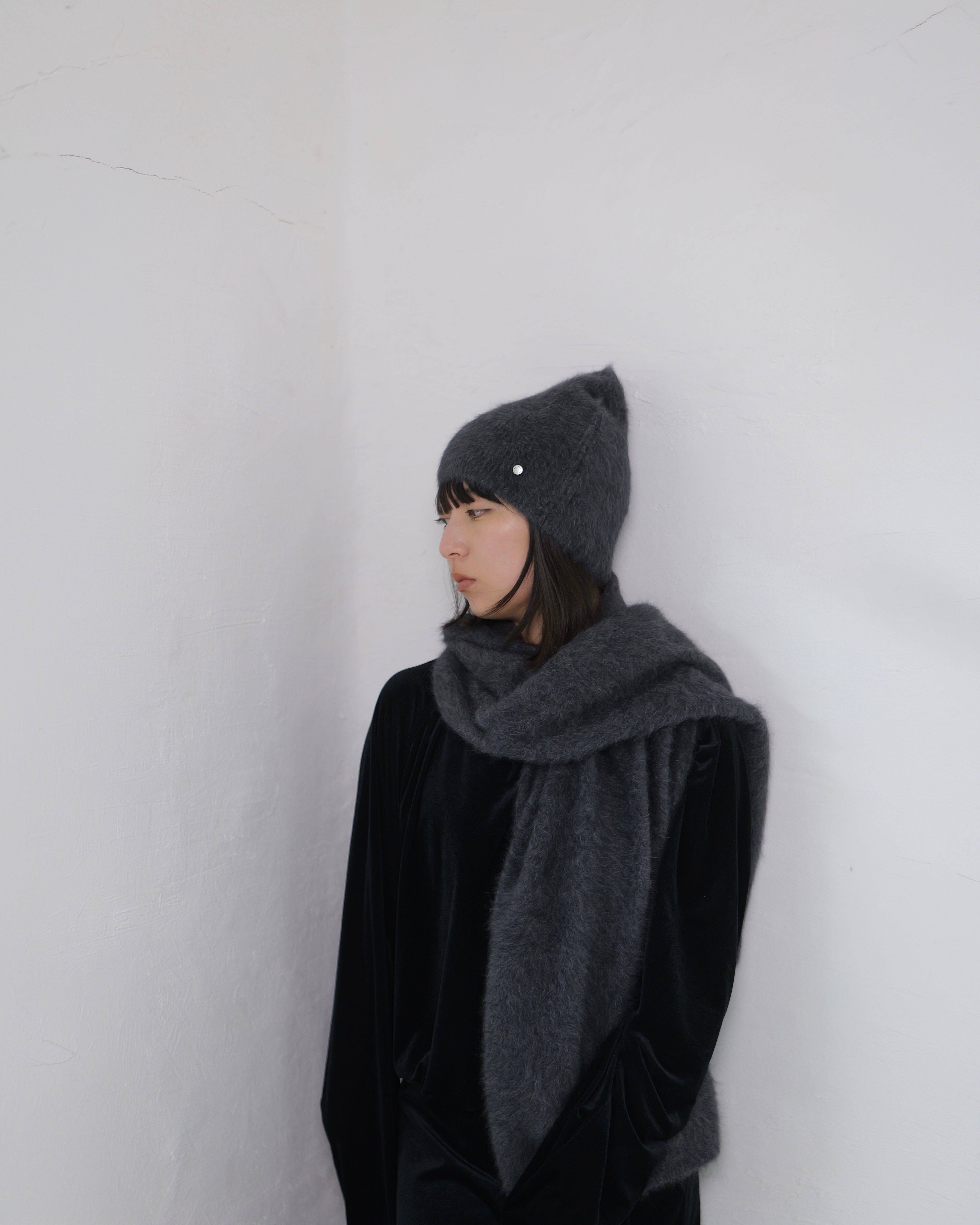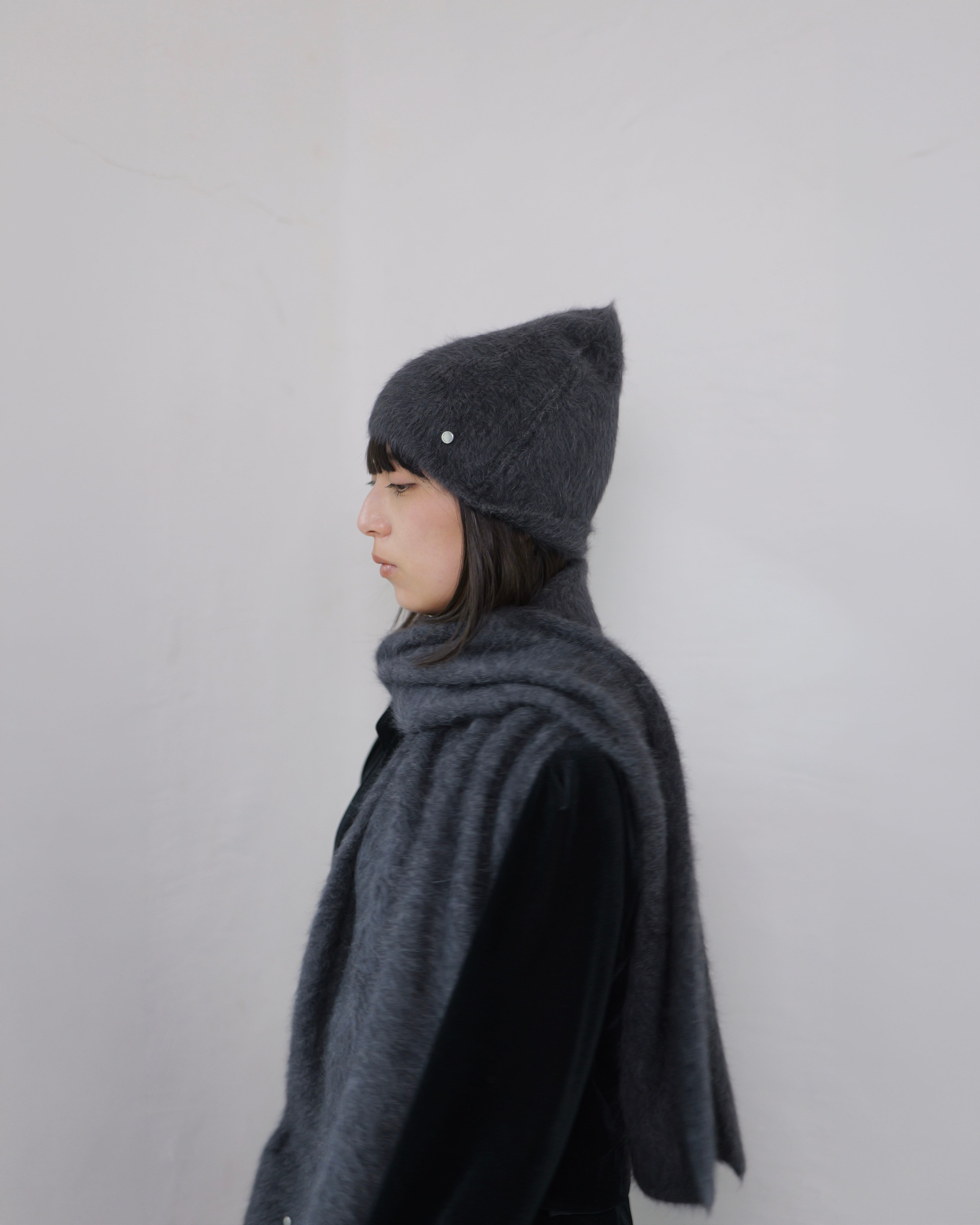 • マフラーと同素材(Fox 90% / Cashmere 10%)のニットキャップ