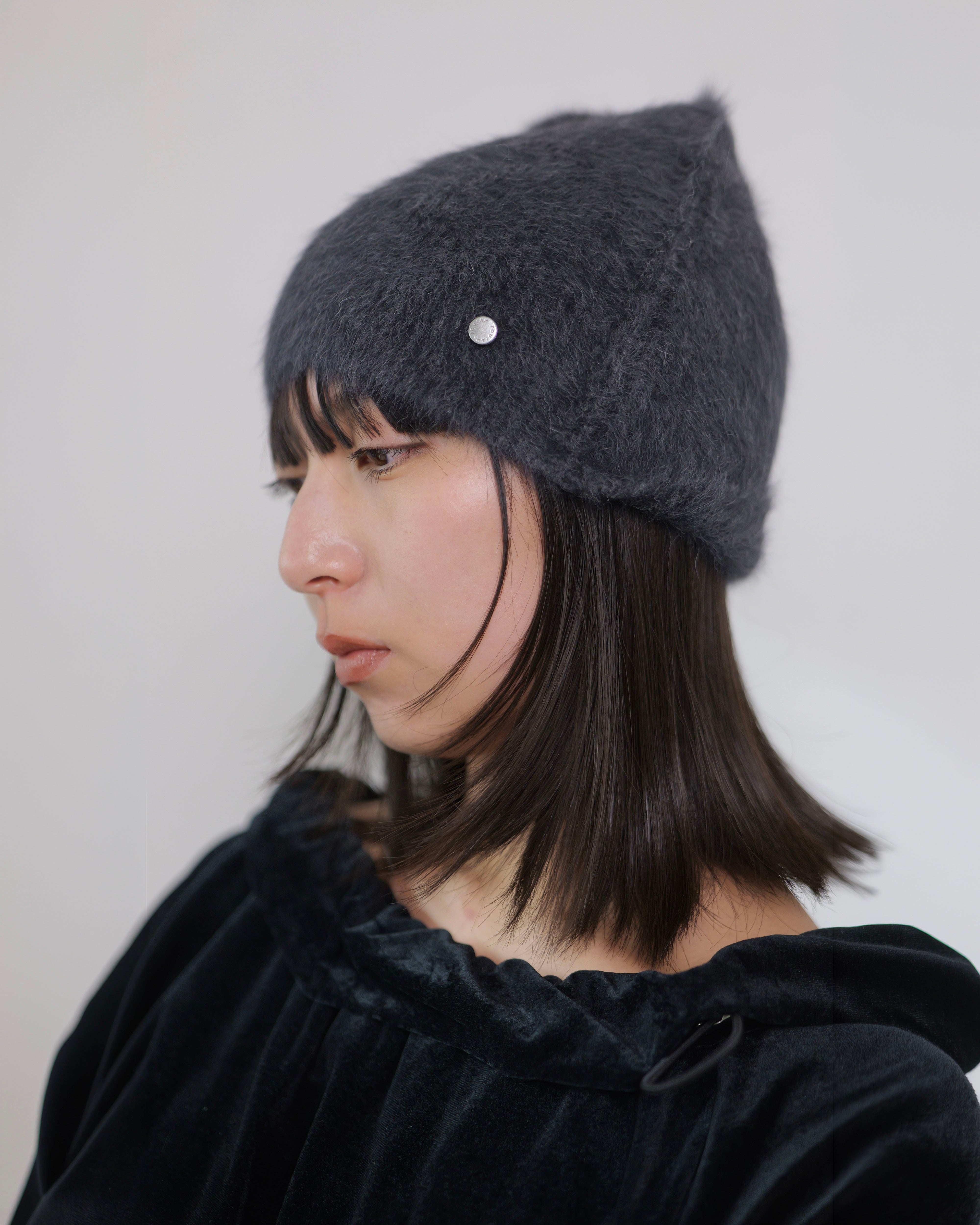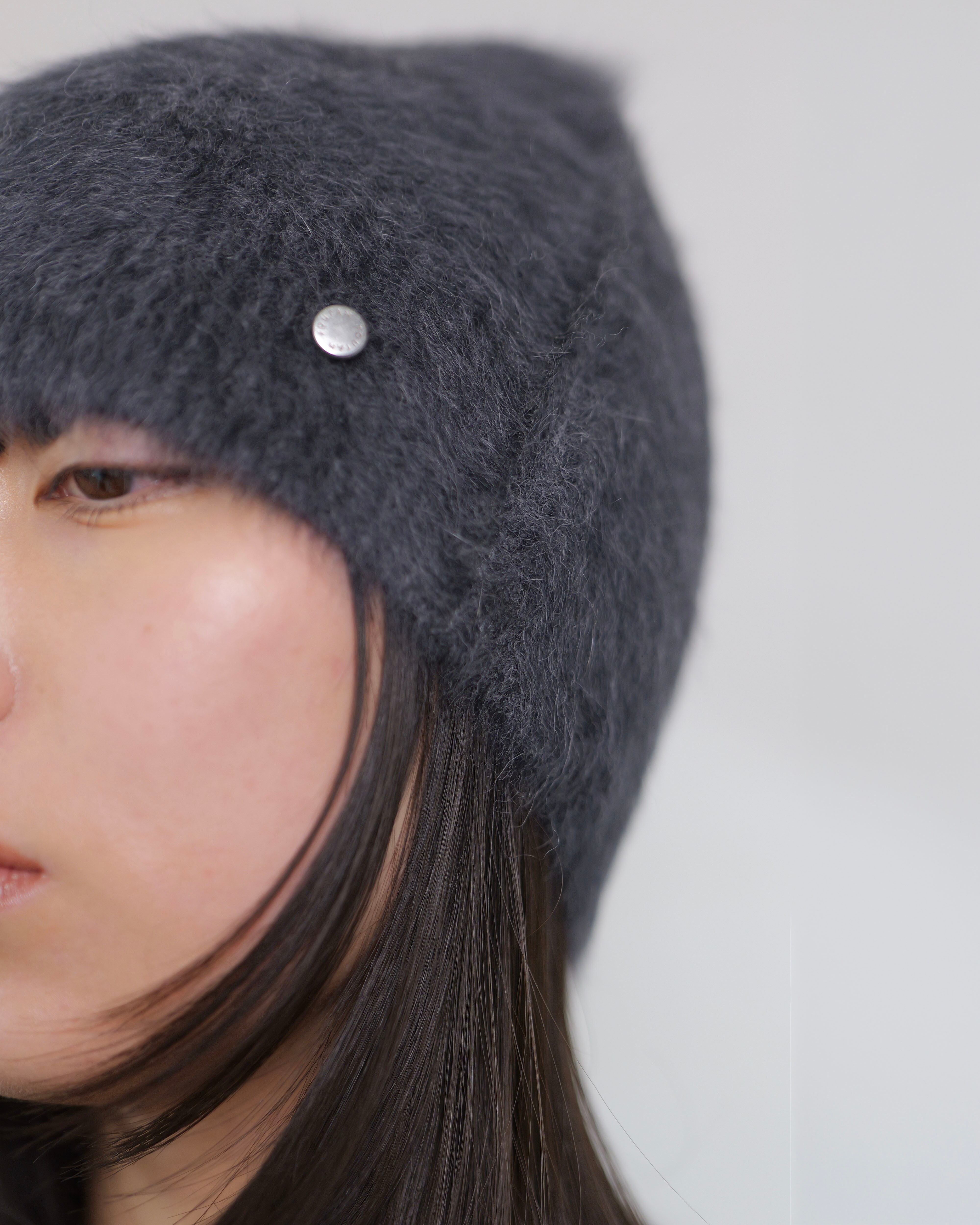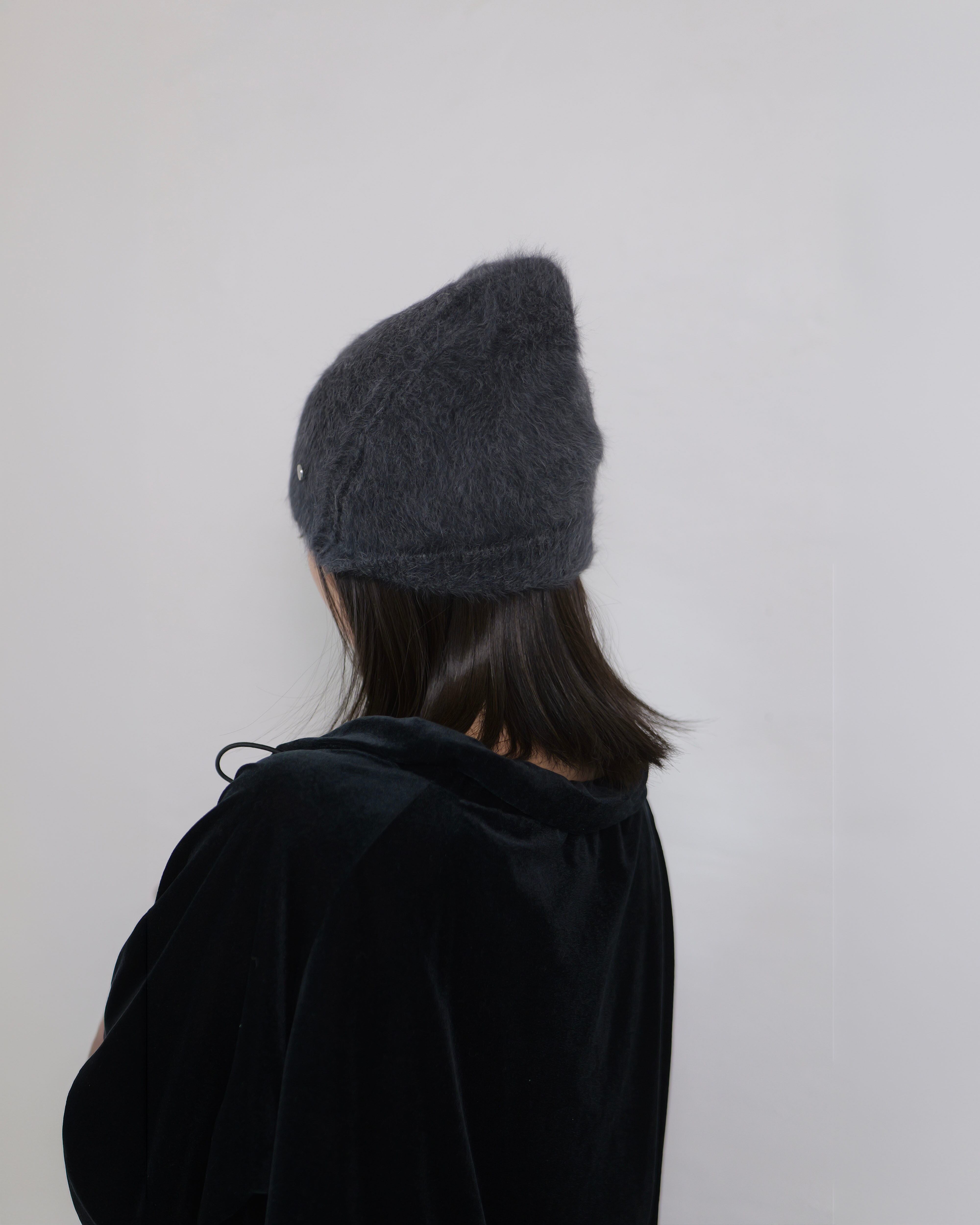 FOURAM - Fox Cashmere Knit Cap :Gray|固定ピンブローチ/起毛の陰影