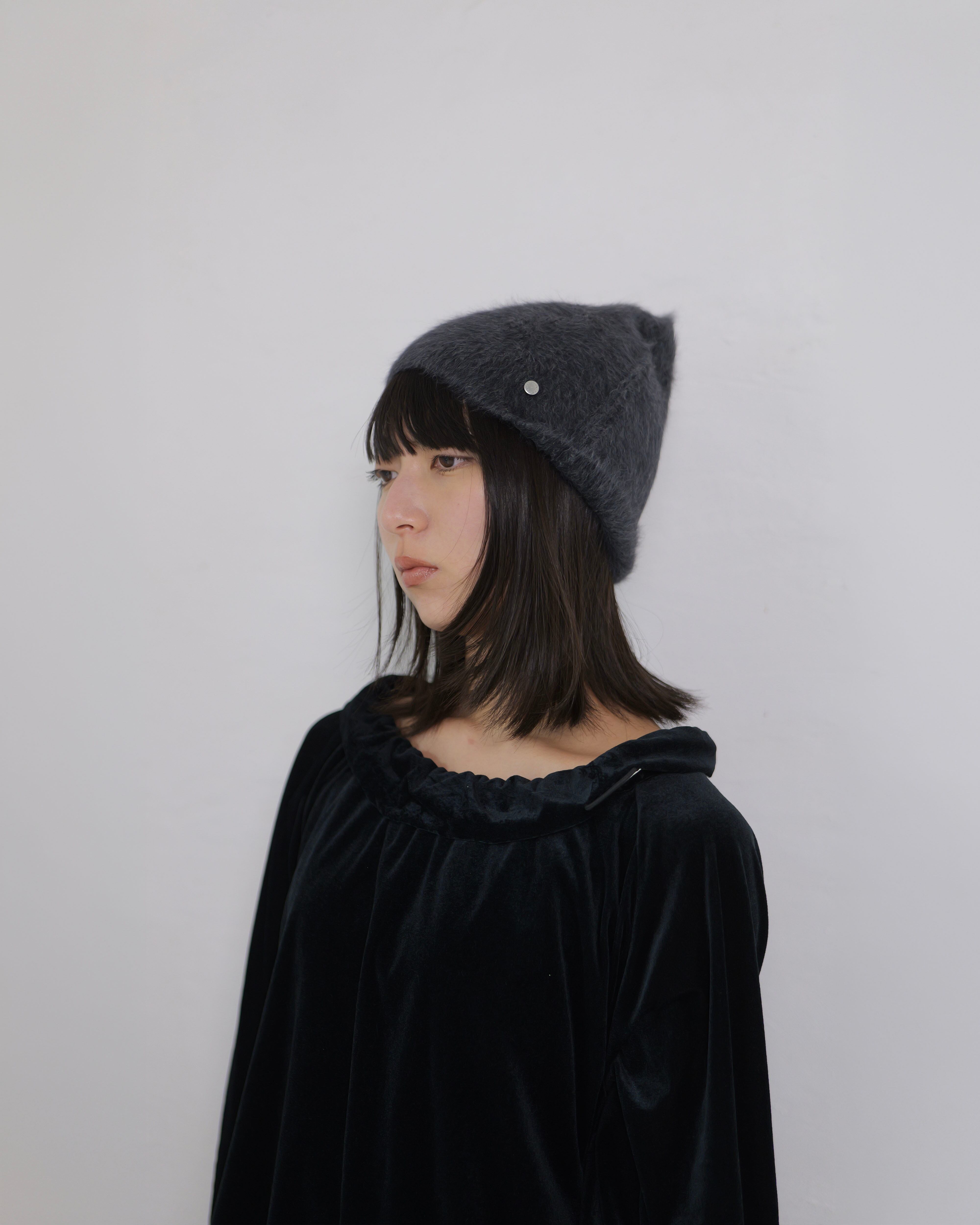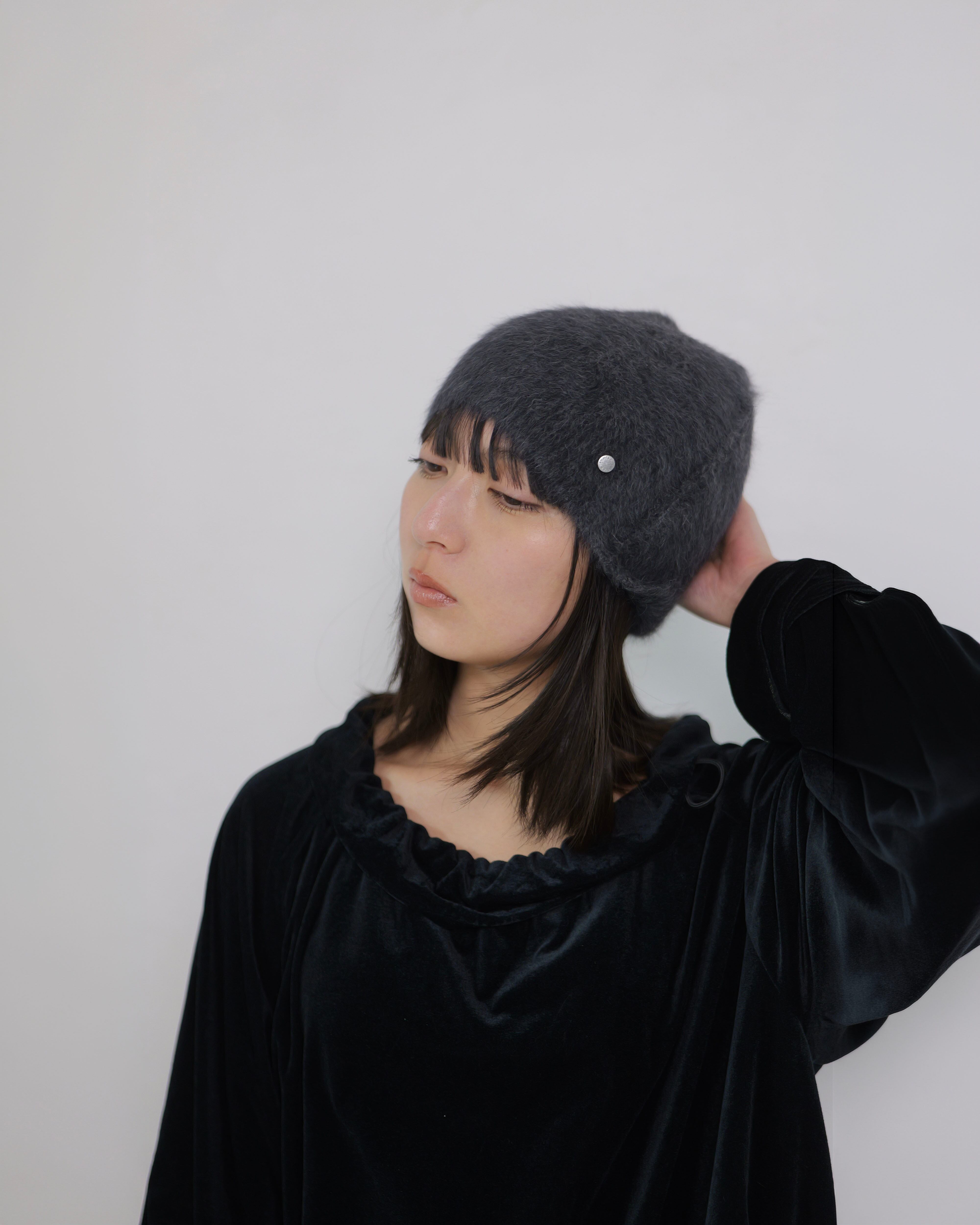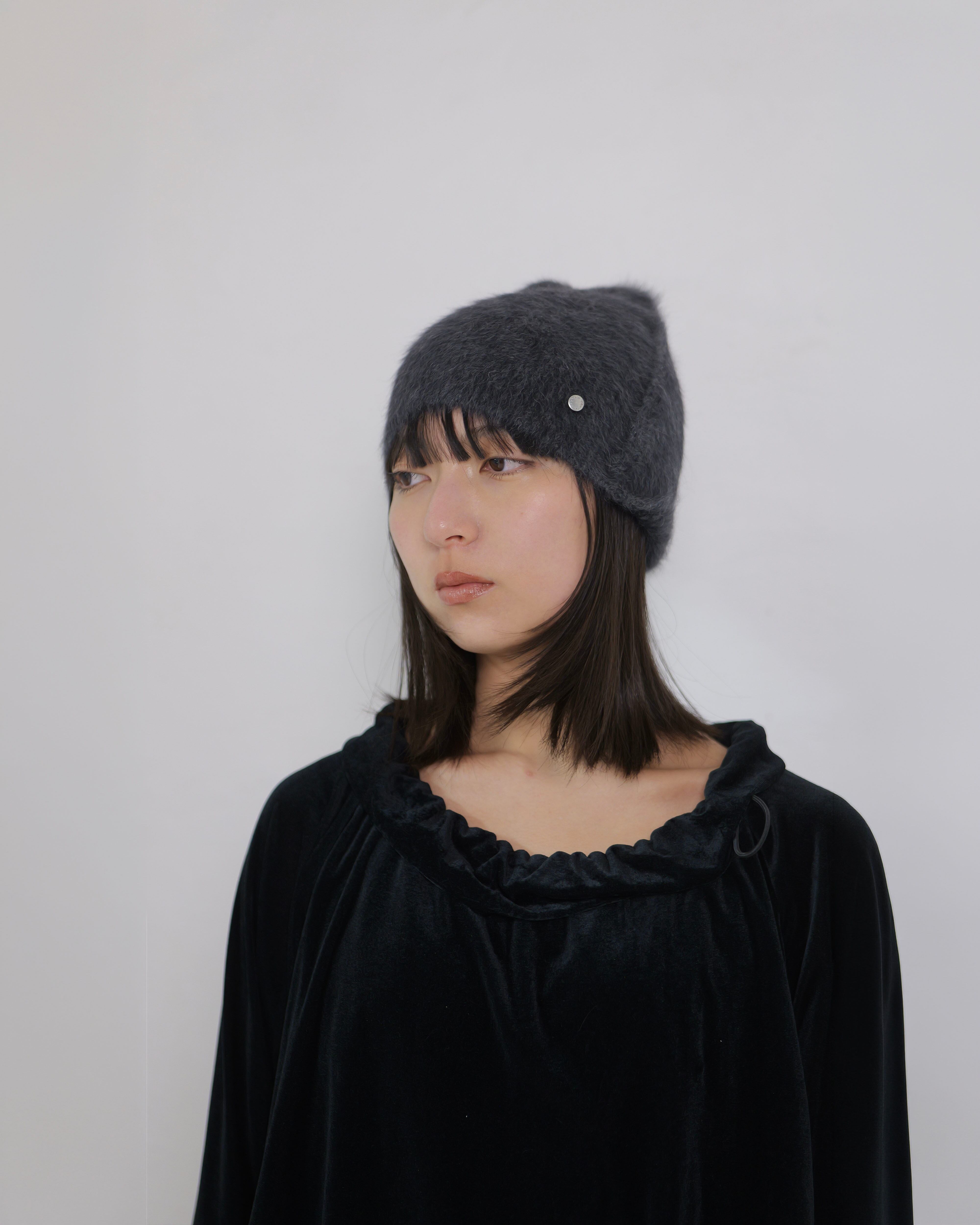 FOURAM - Fox Cashmere Knit Cap :Gray|固定ピンブローチ/起毛の陰影