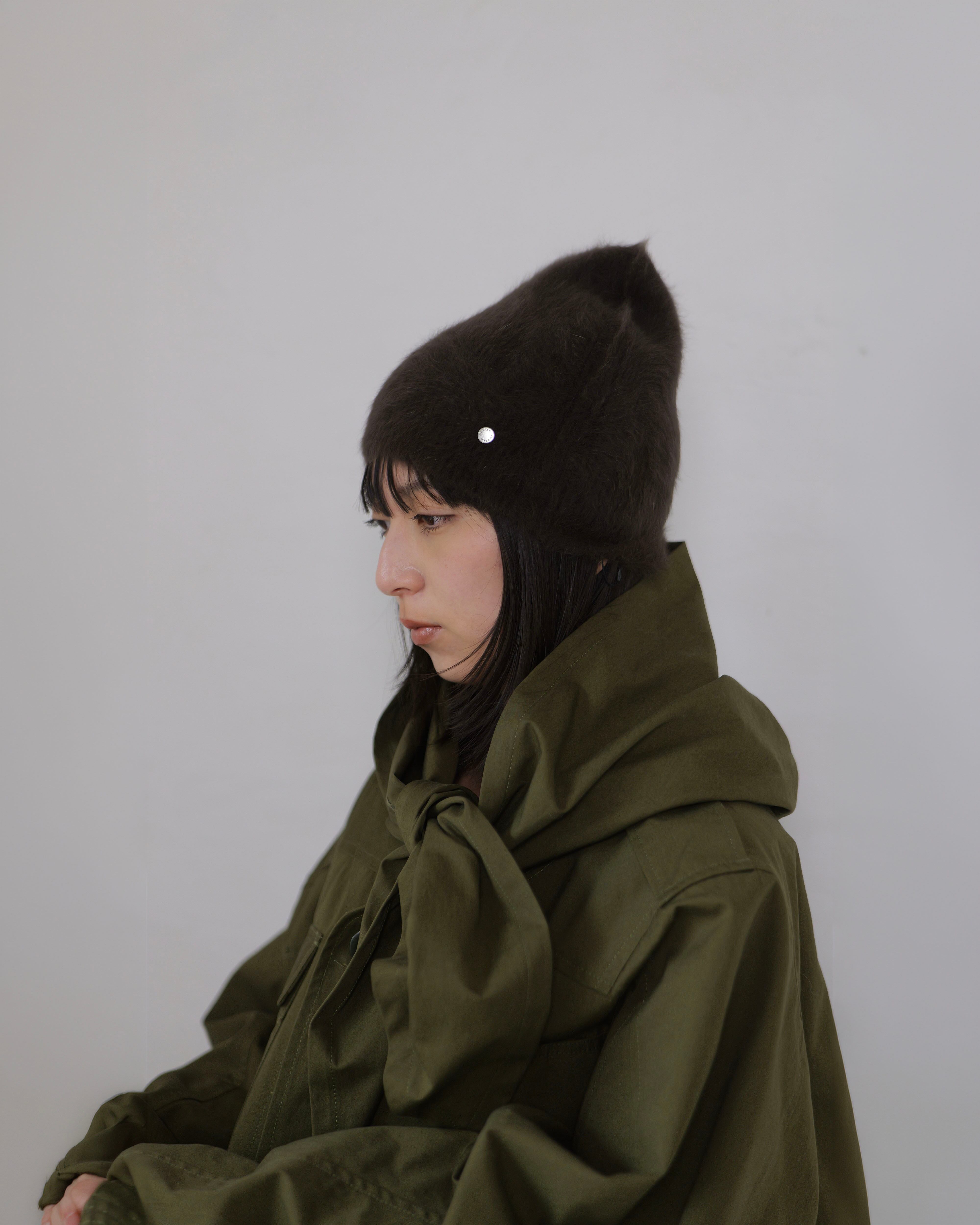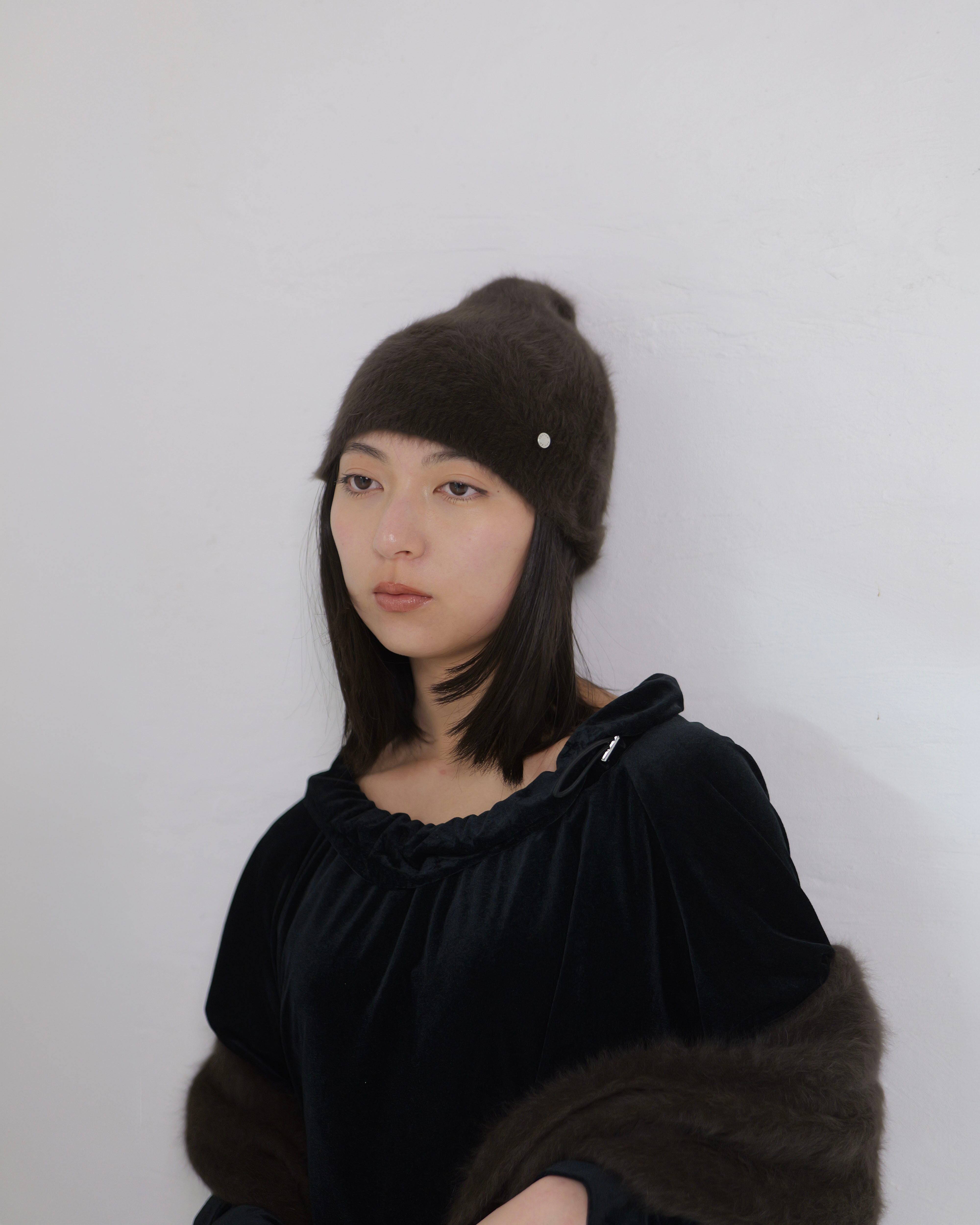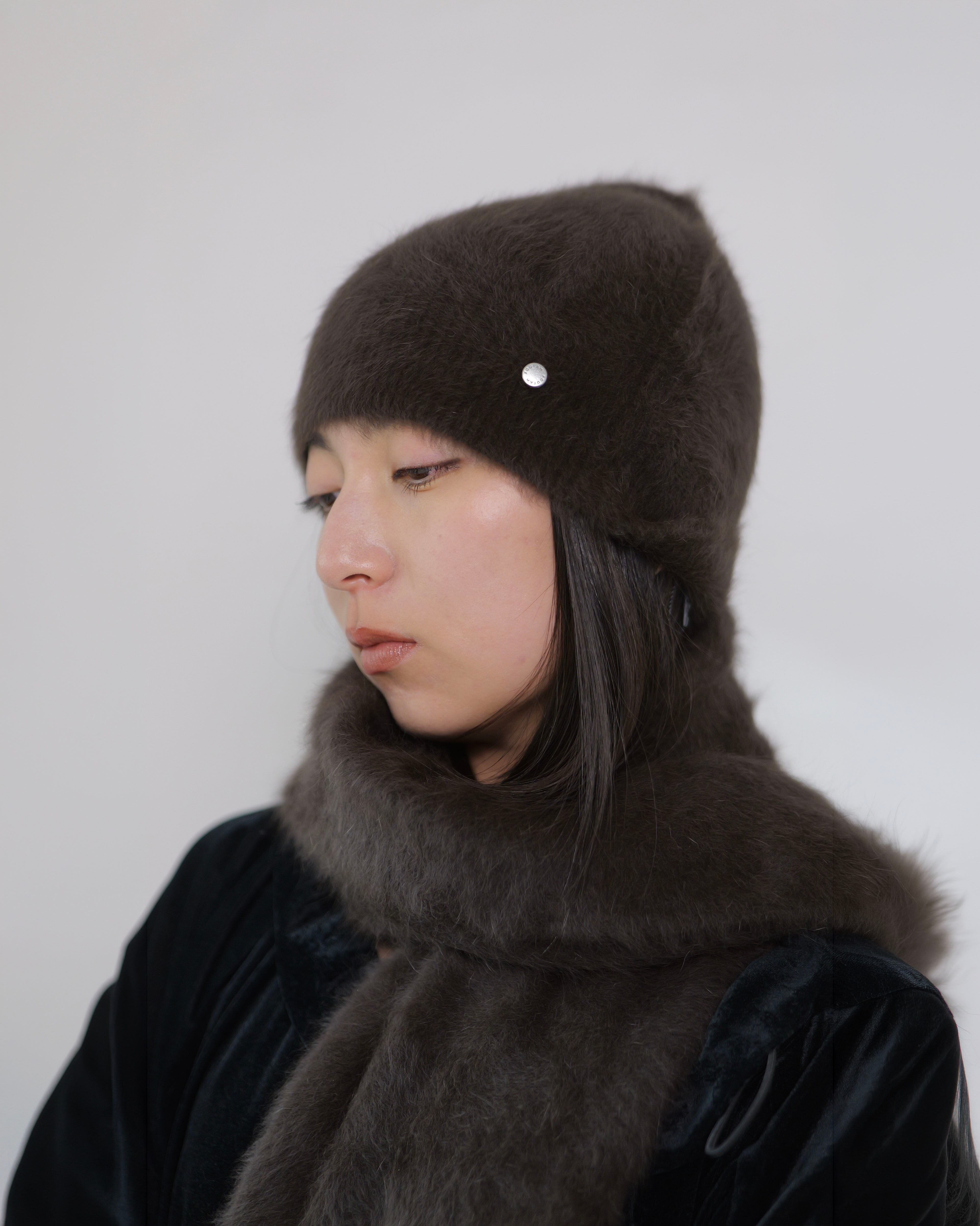 FOURAM - Fox Cashmere Knit Cap :Brown|固定ピンブローチ/起毛の陰影