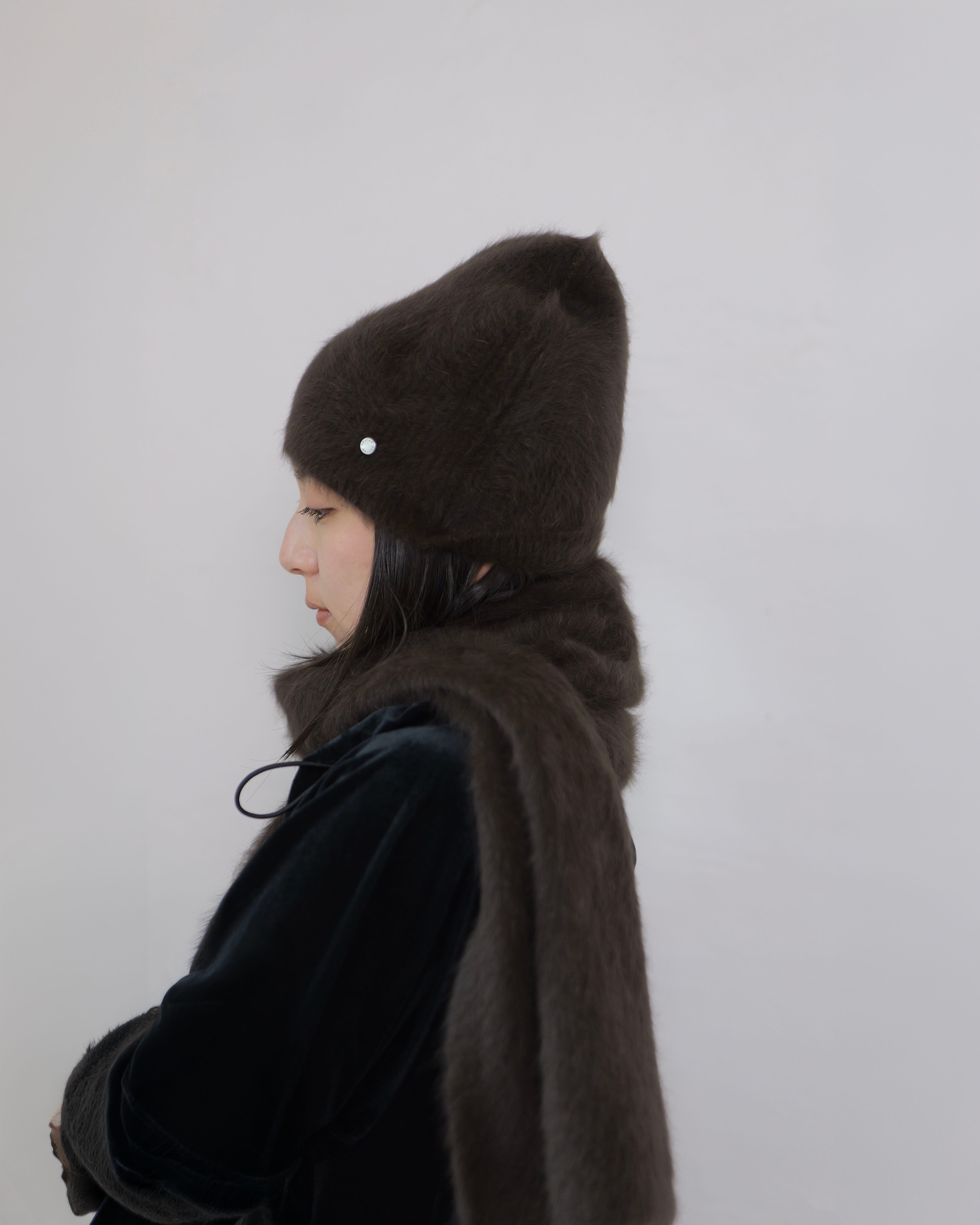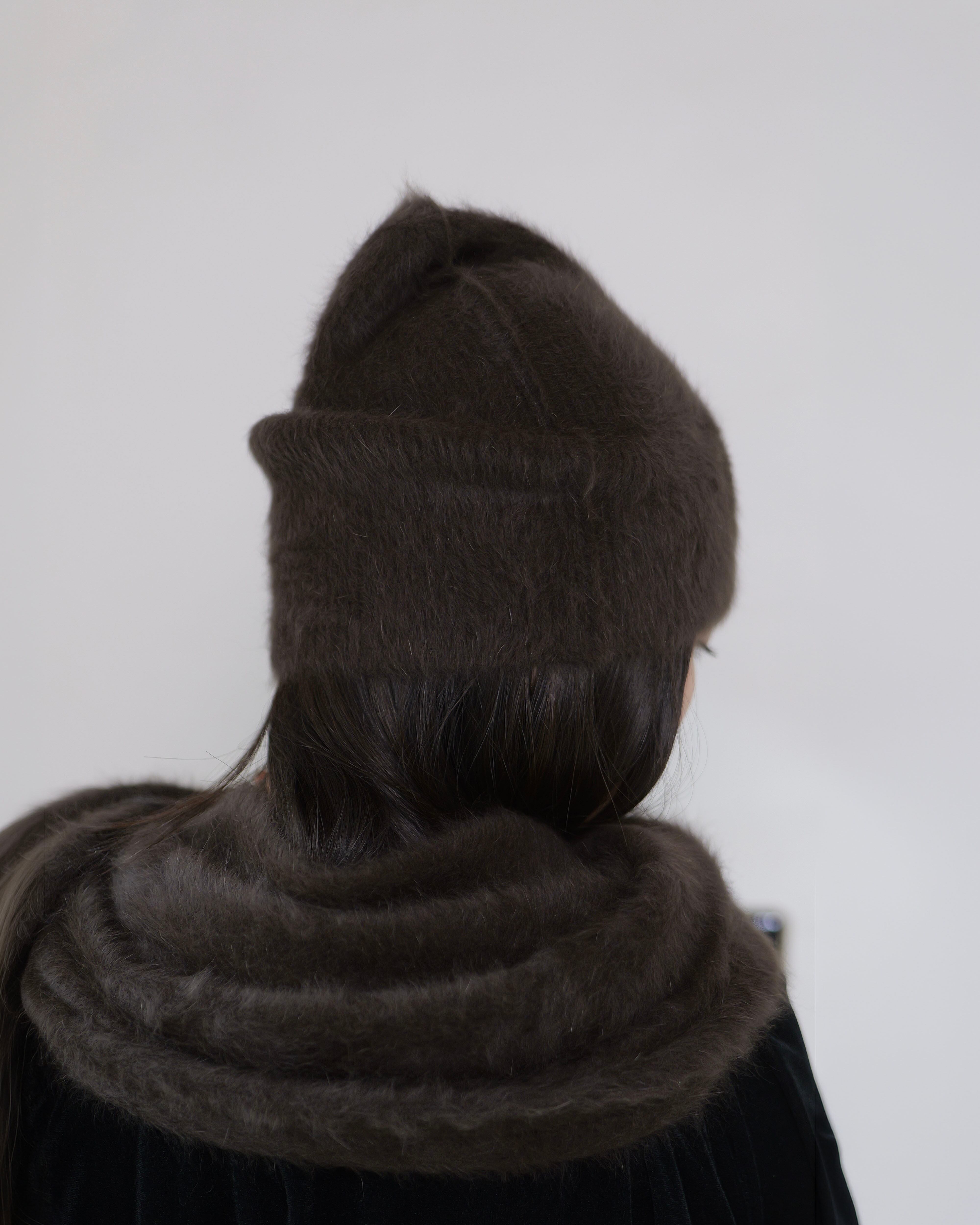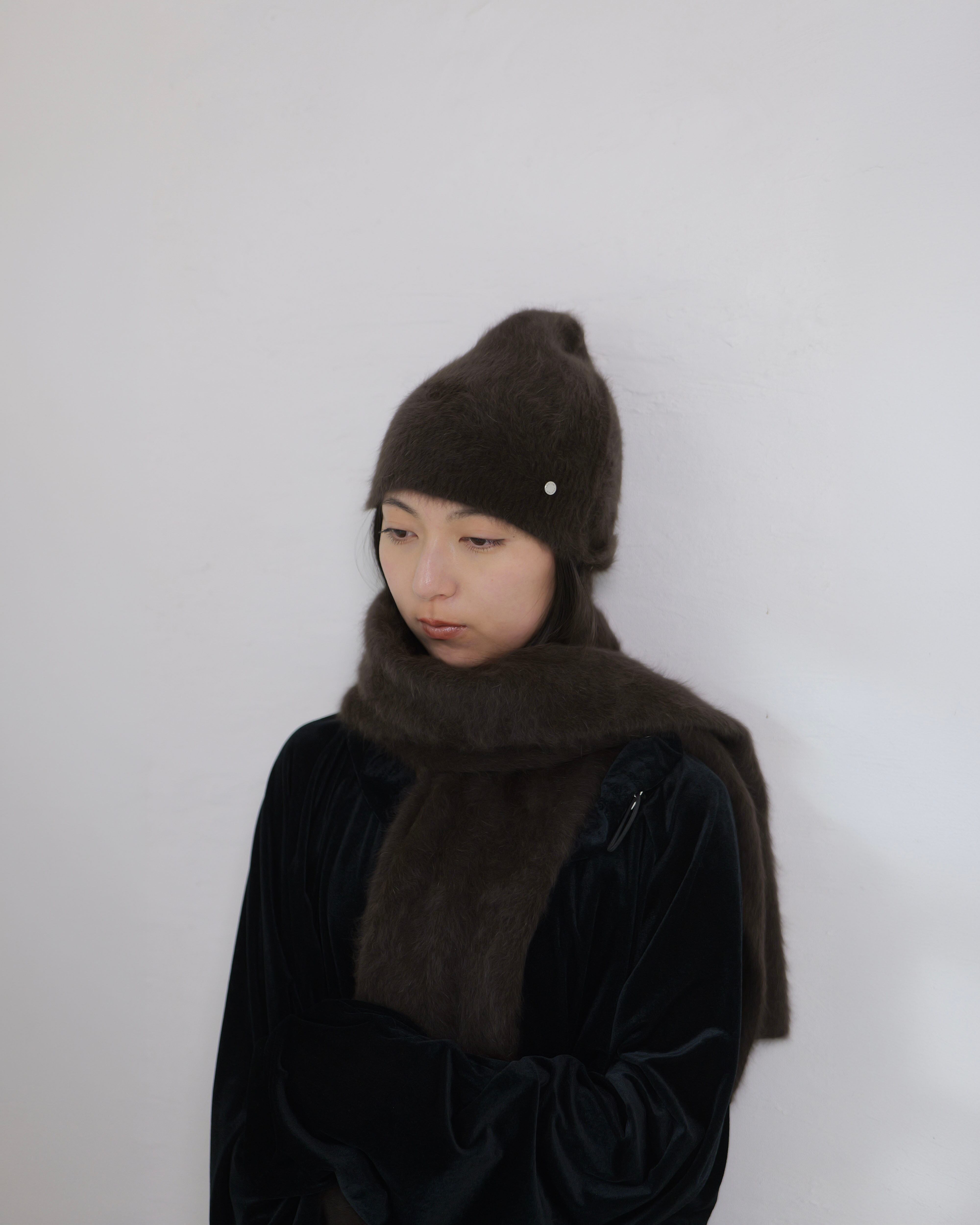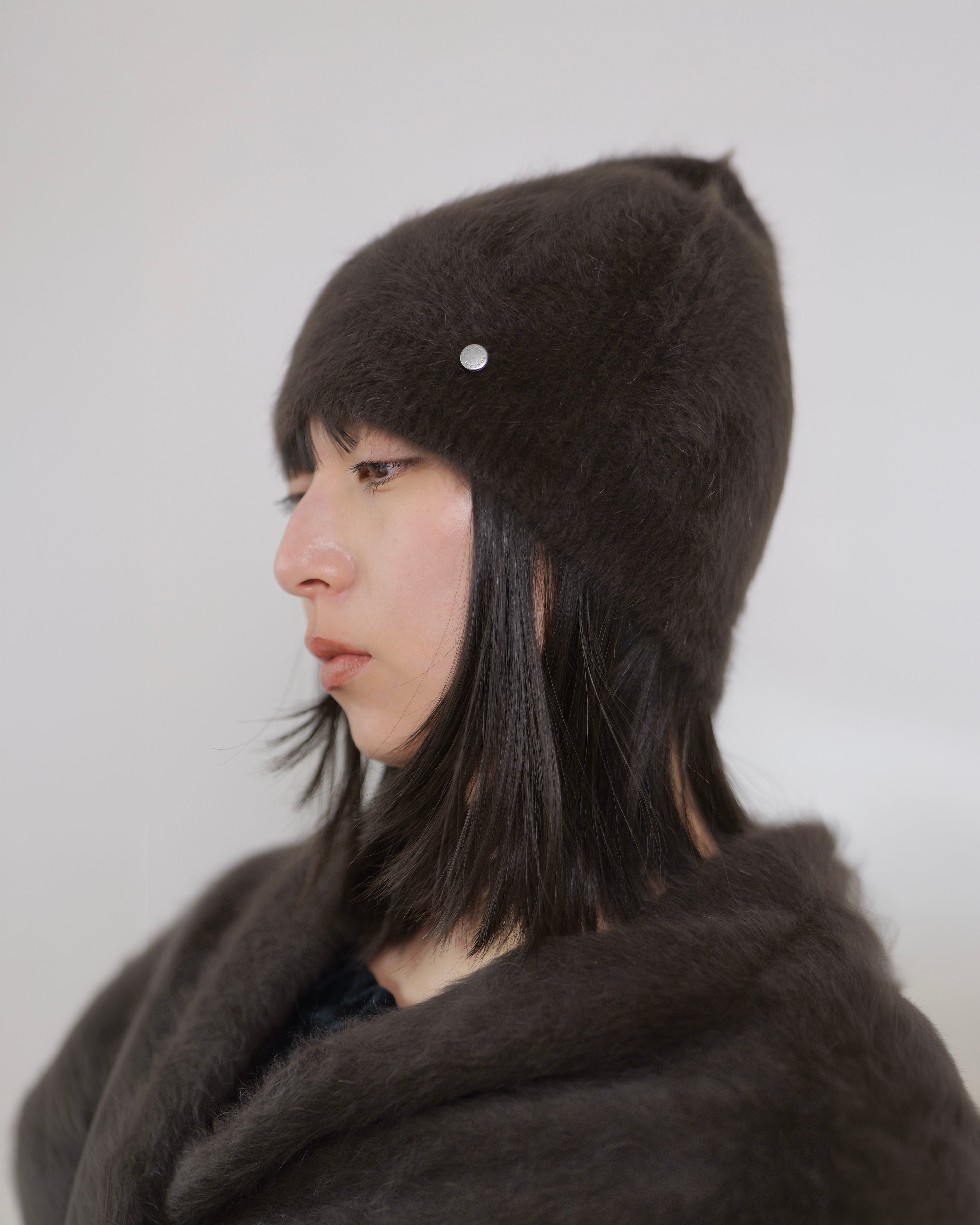 FOURAM - Fox Cashmere Knit Cap :Brown|固定ピンブローチ/起毛の陰影