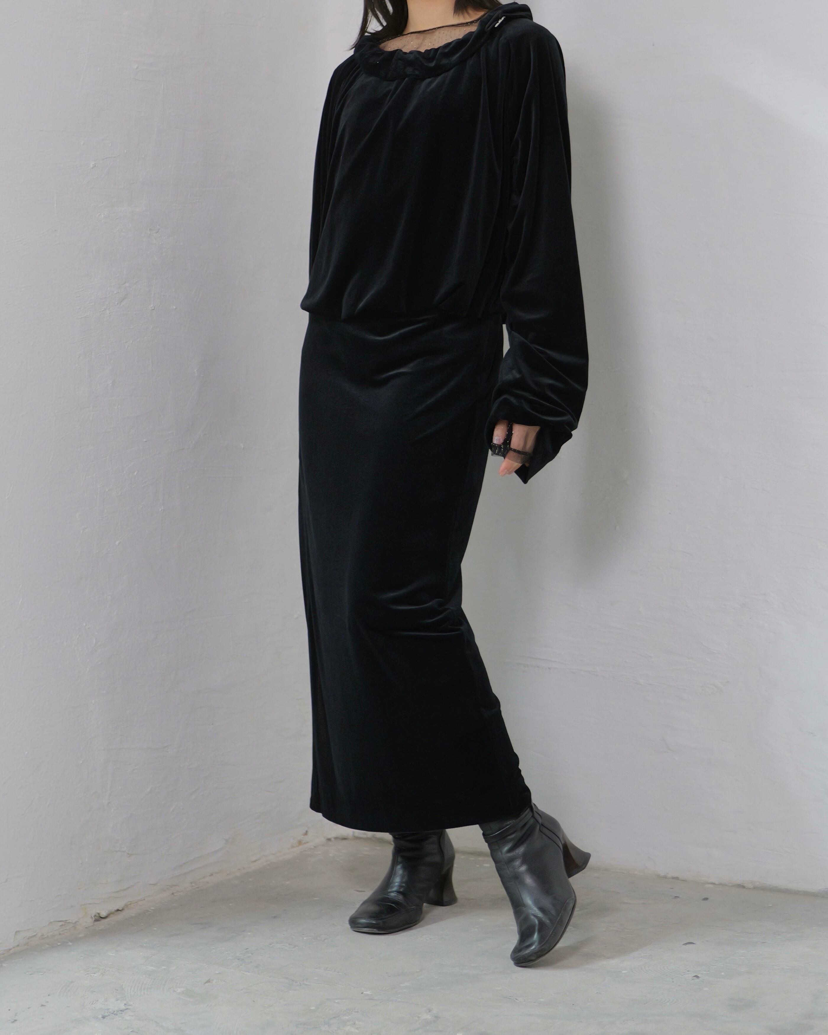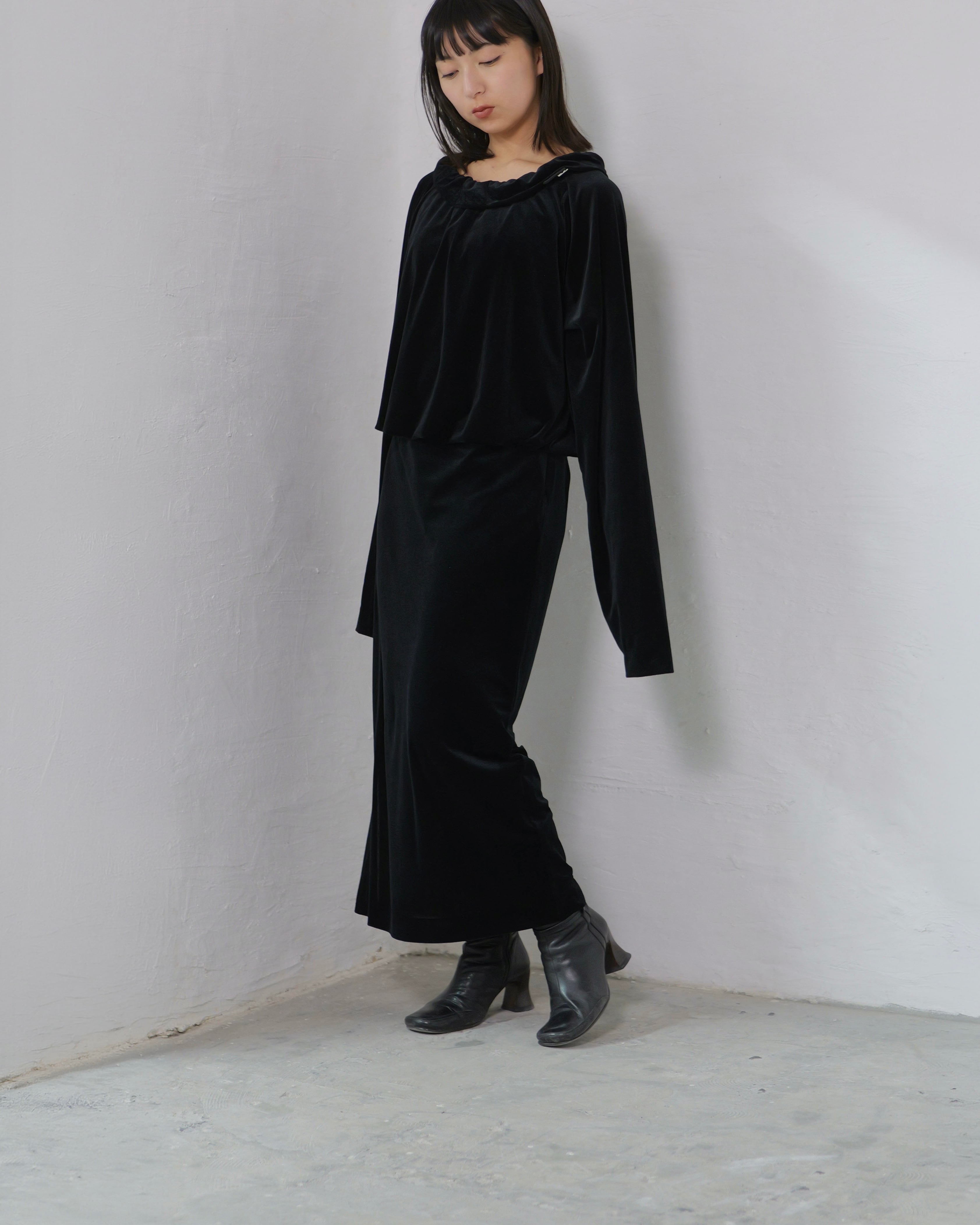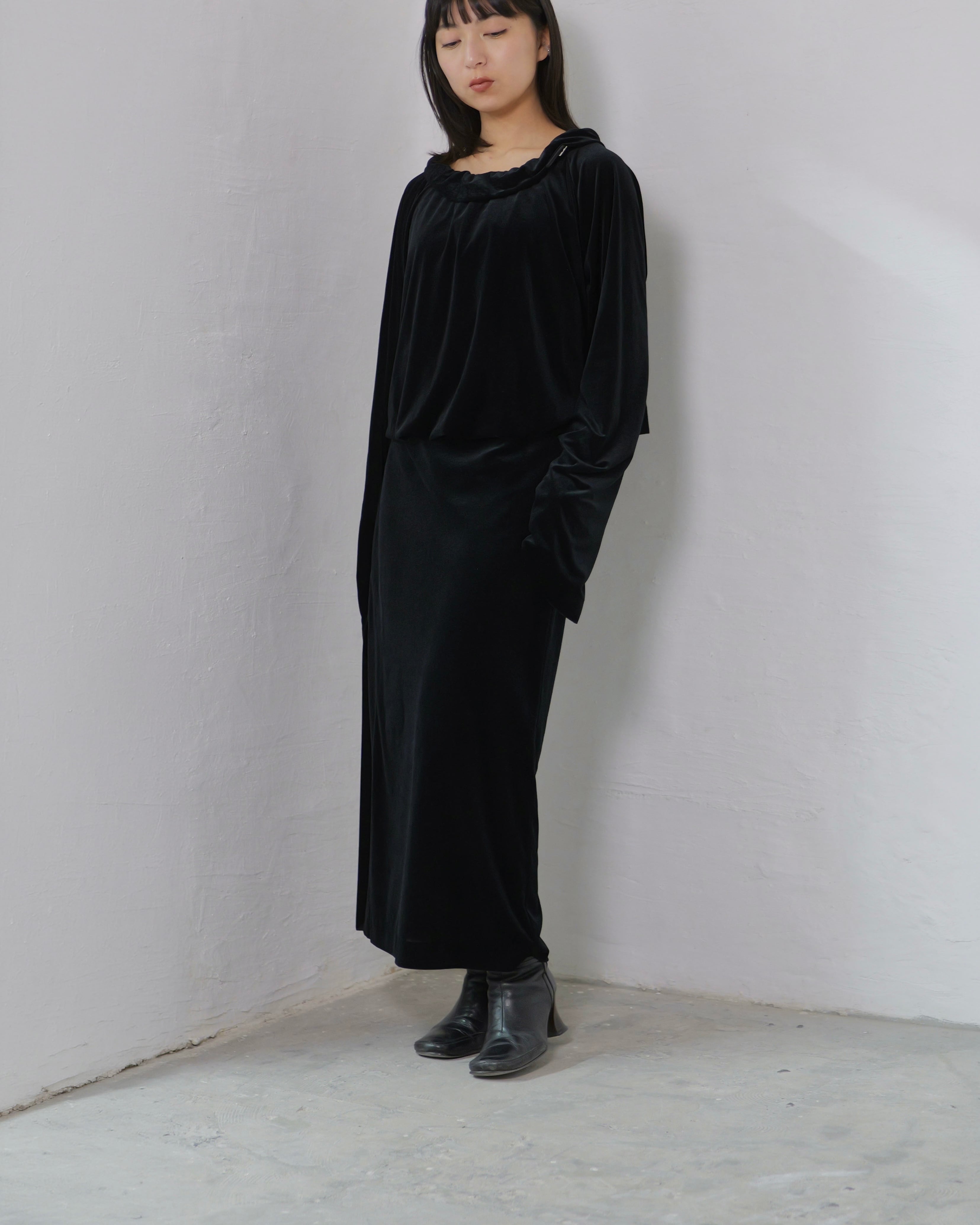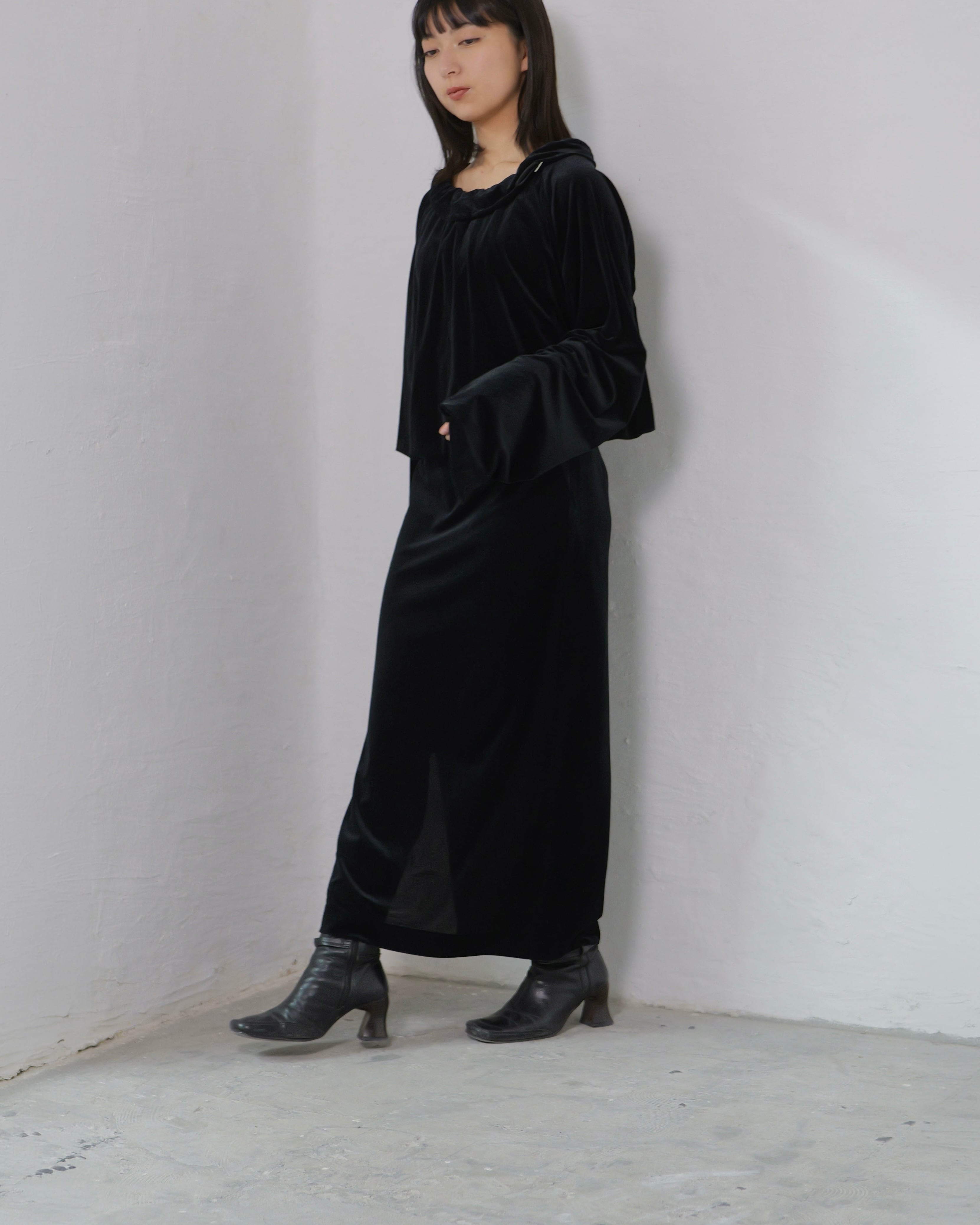 Made from delicately semi-sheer velour, it balances fluid drape with subtle translucency.