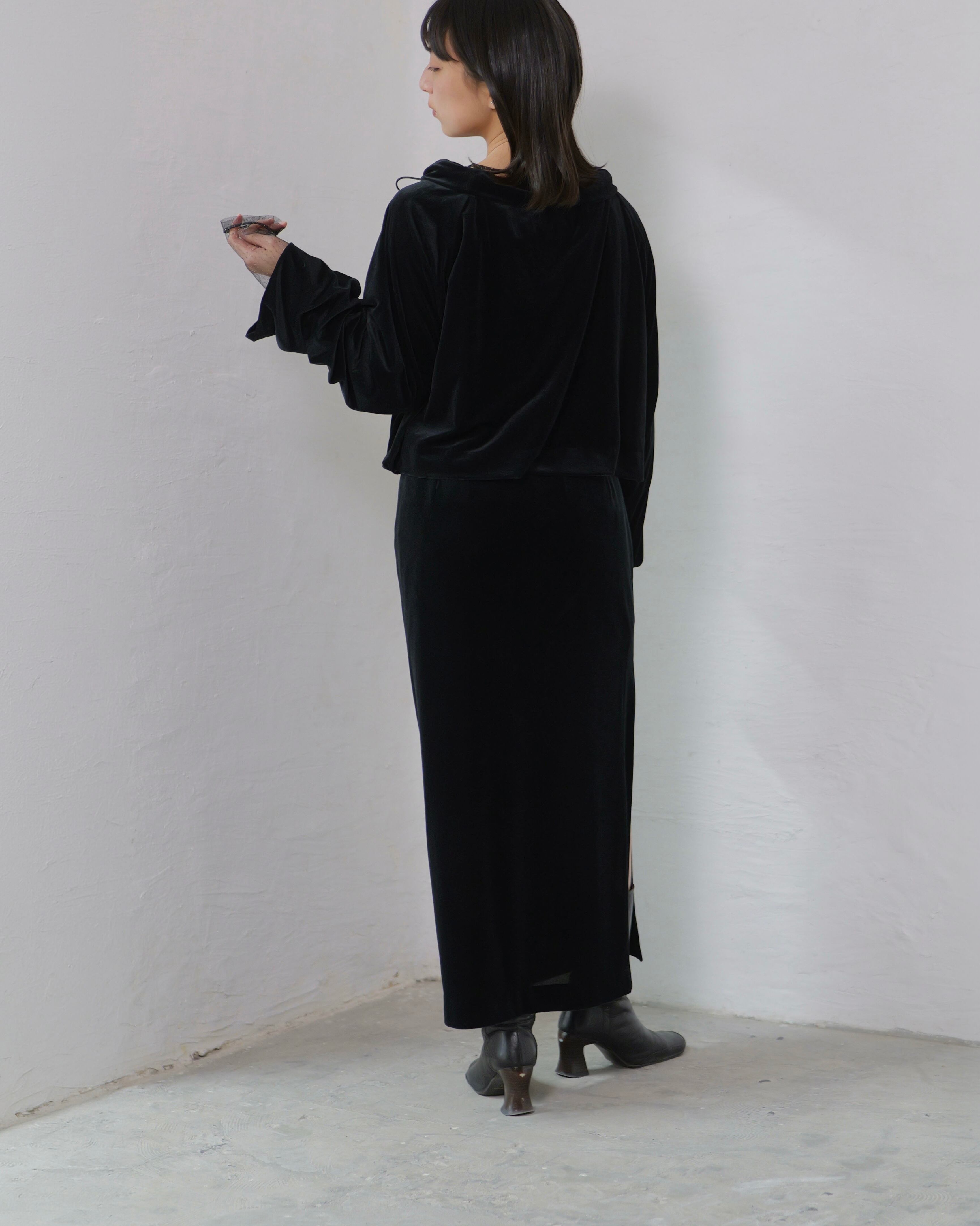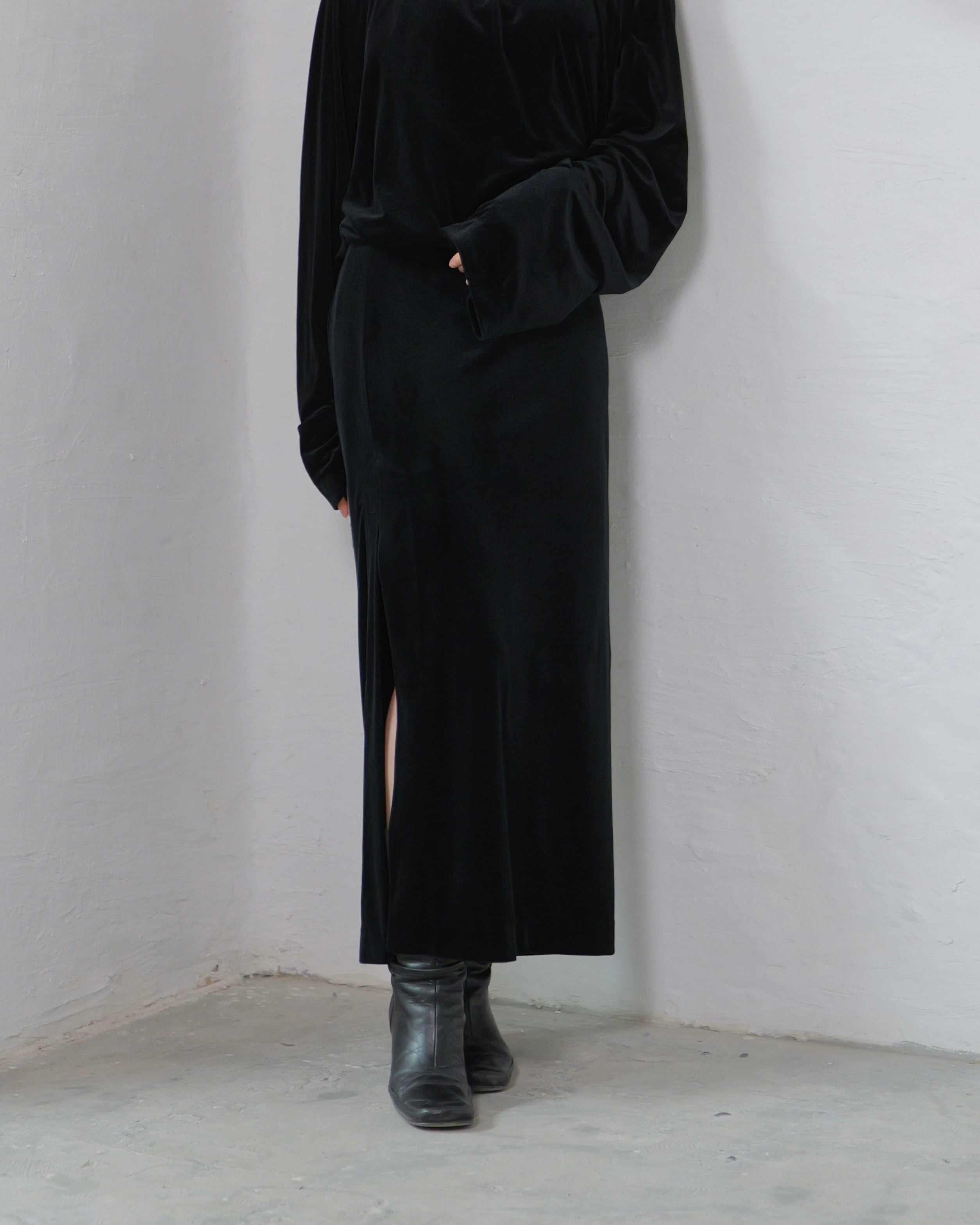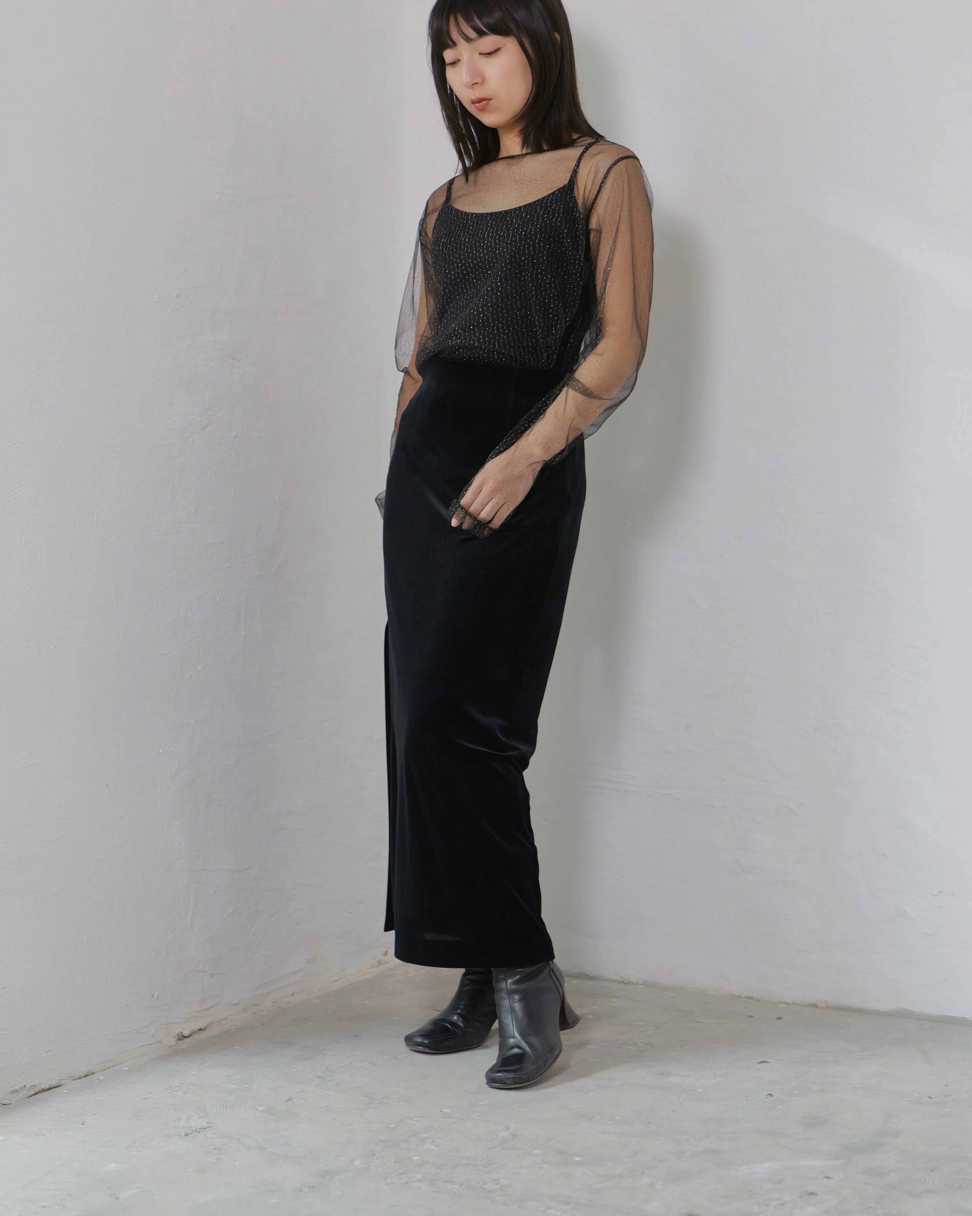 RITSUKO KARITA - Sheer Velour Slit Skirt :Black|透けベロア/サイドスリット