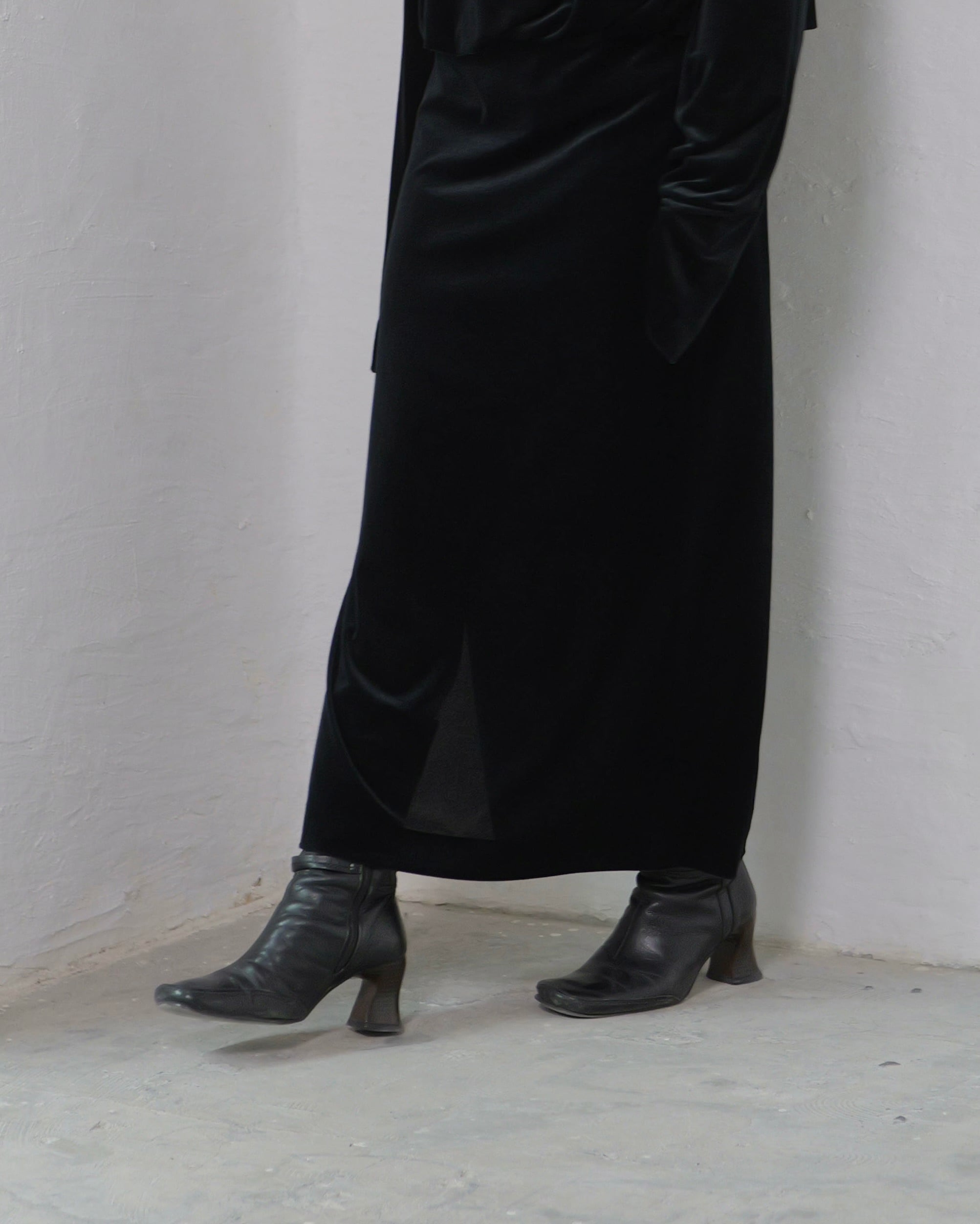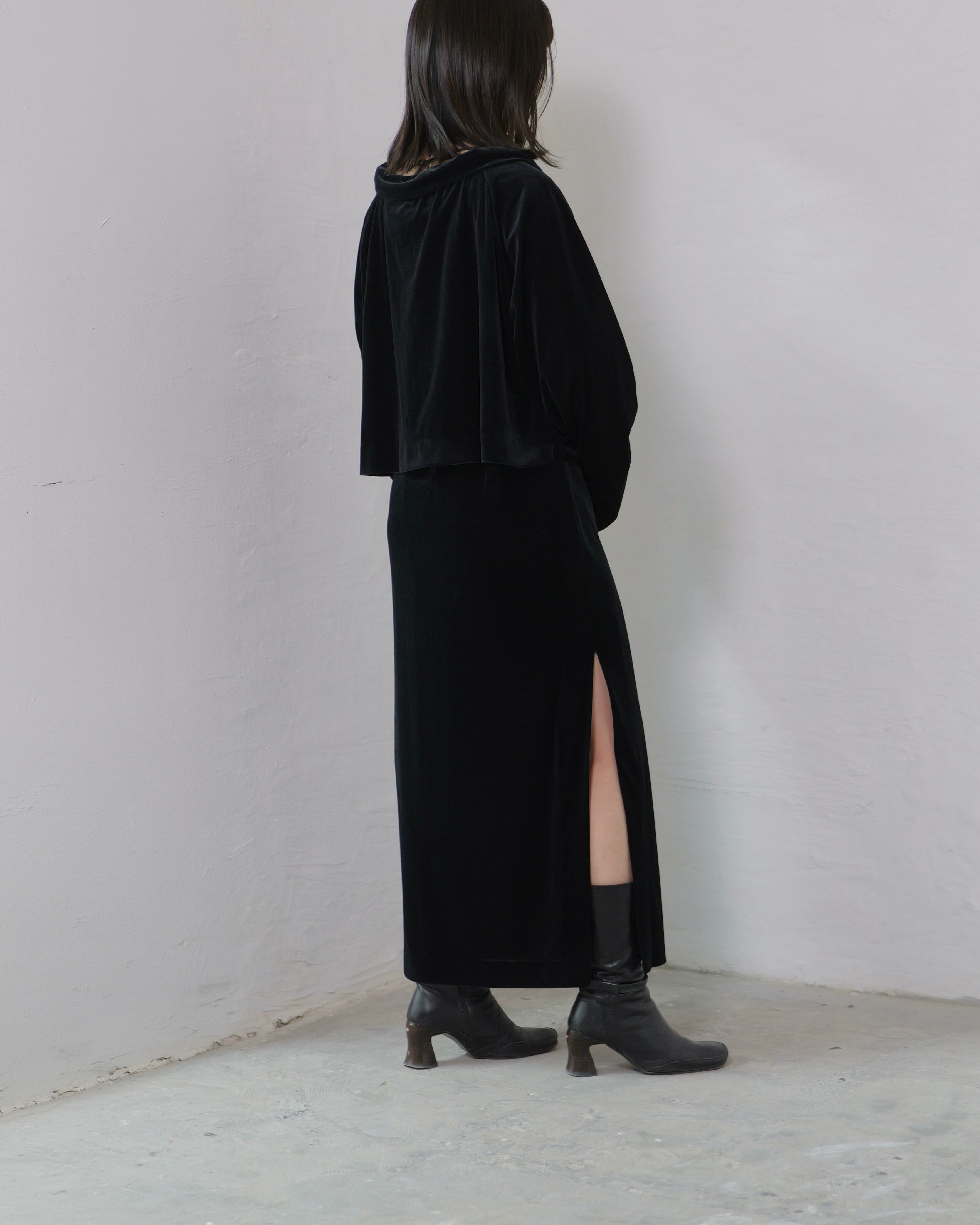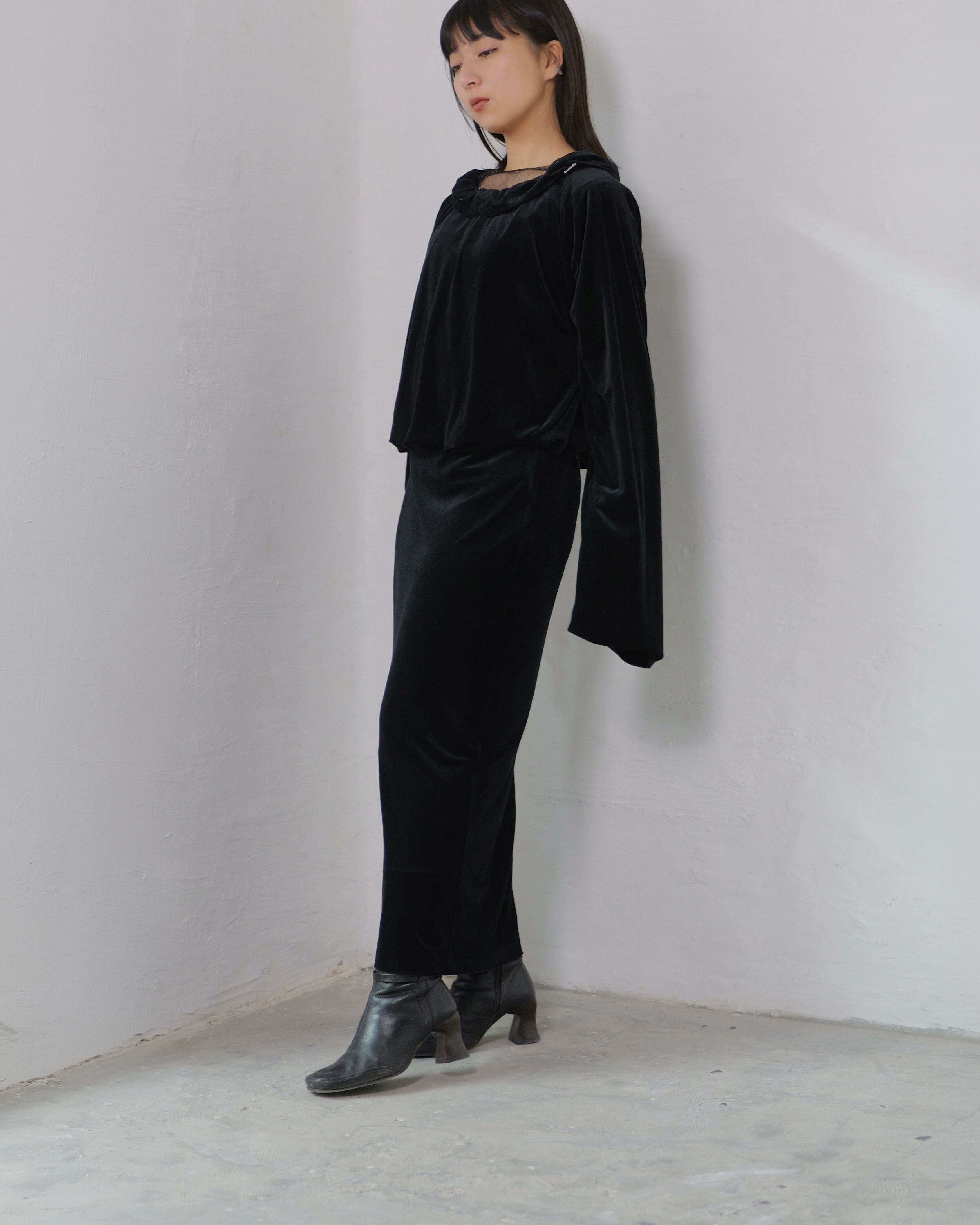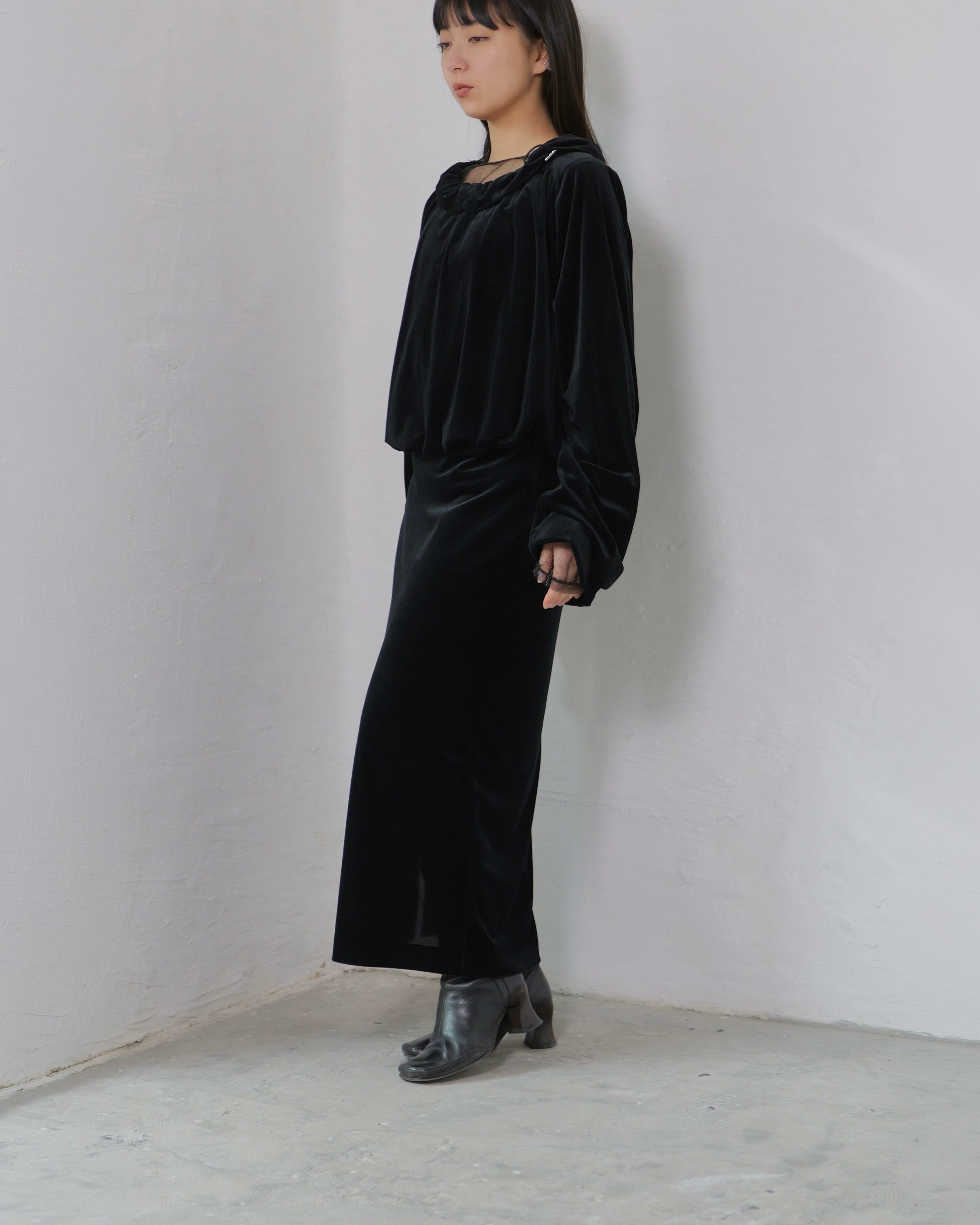 RITSUKO KARITA - Sheer Velour Slit Skirt :Black|透けベロア/サイドスリット