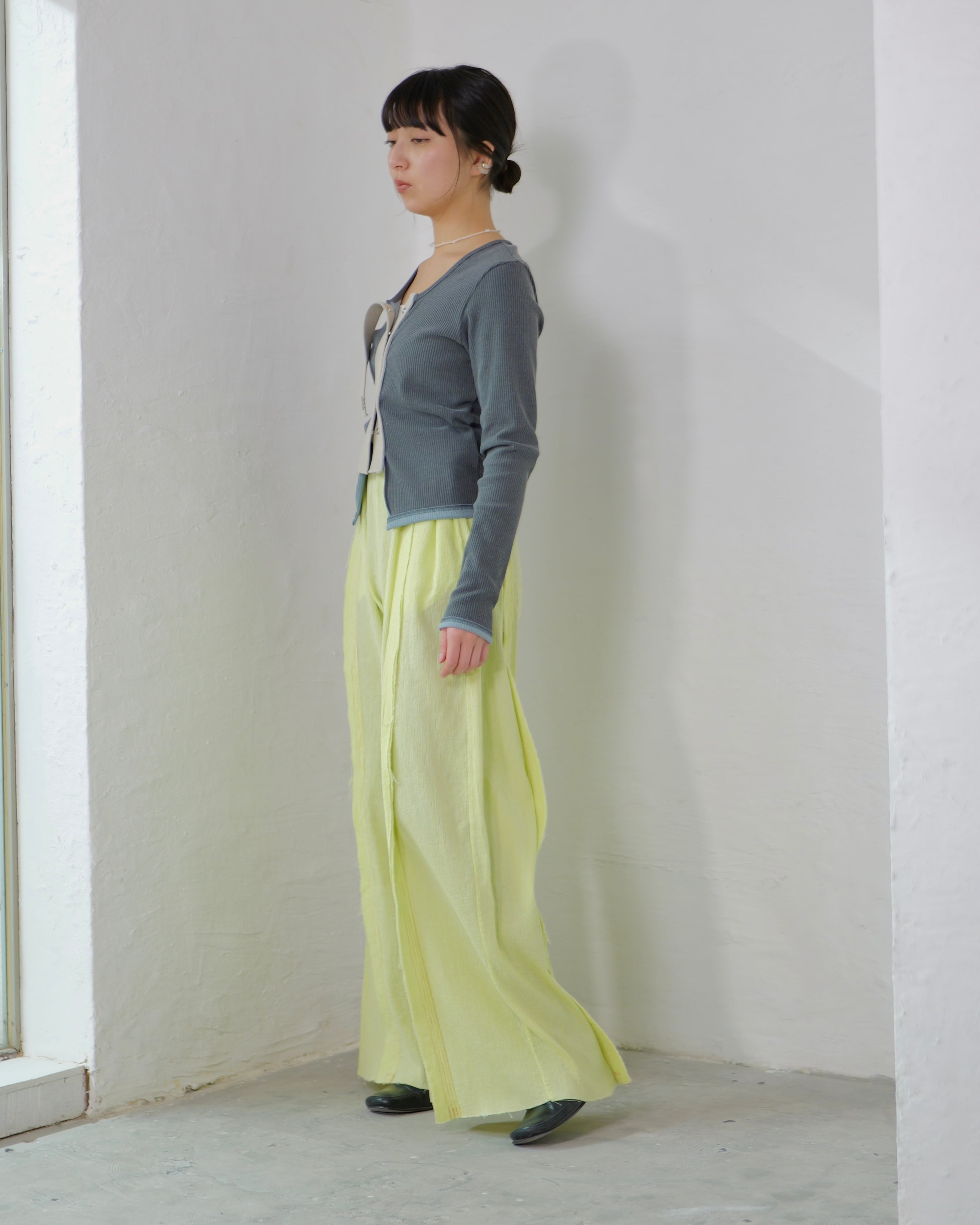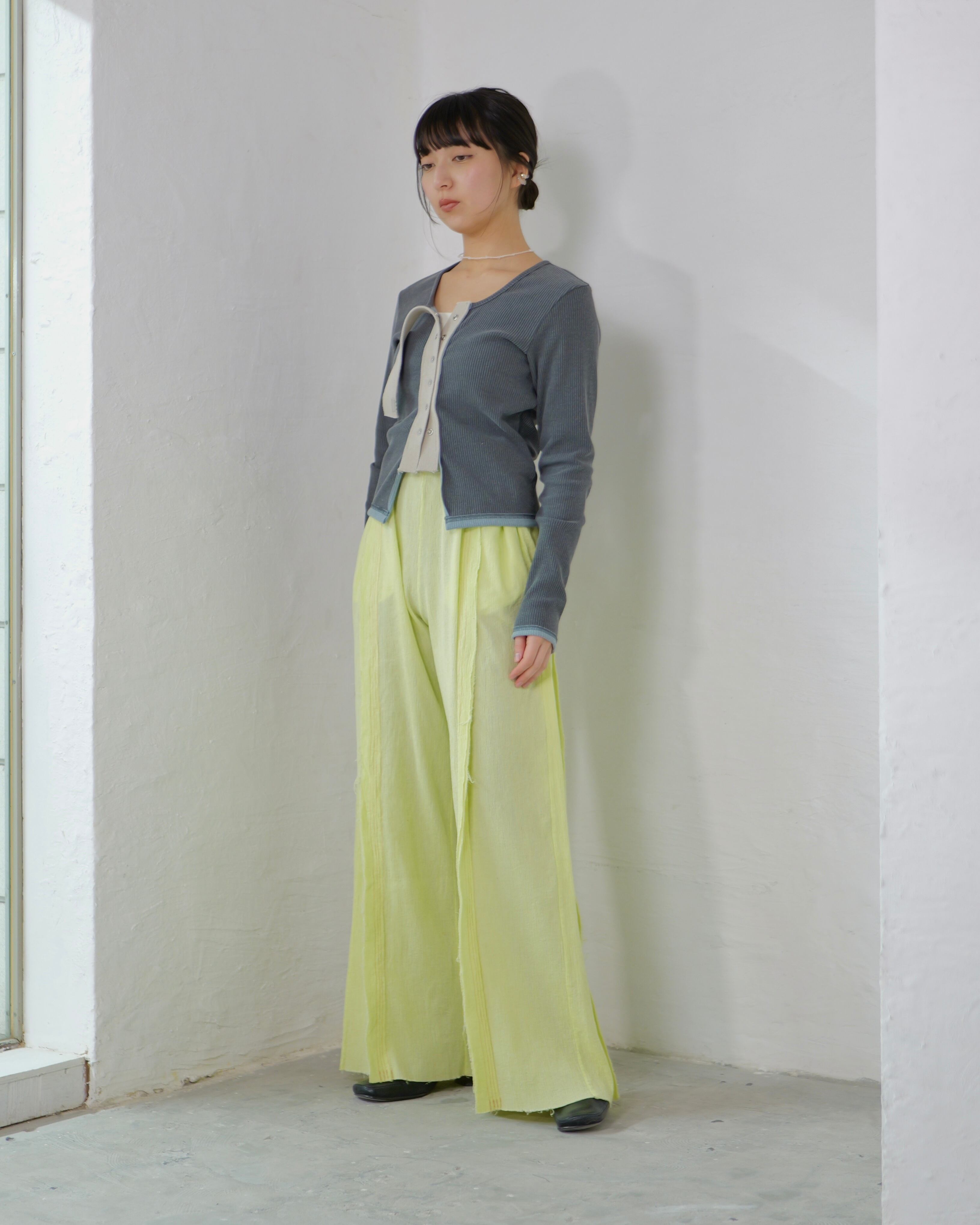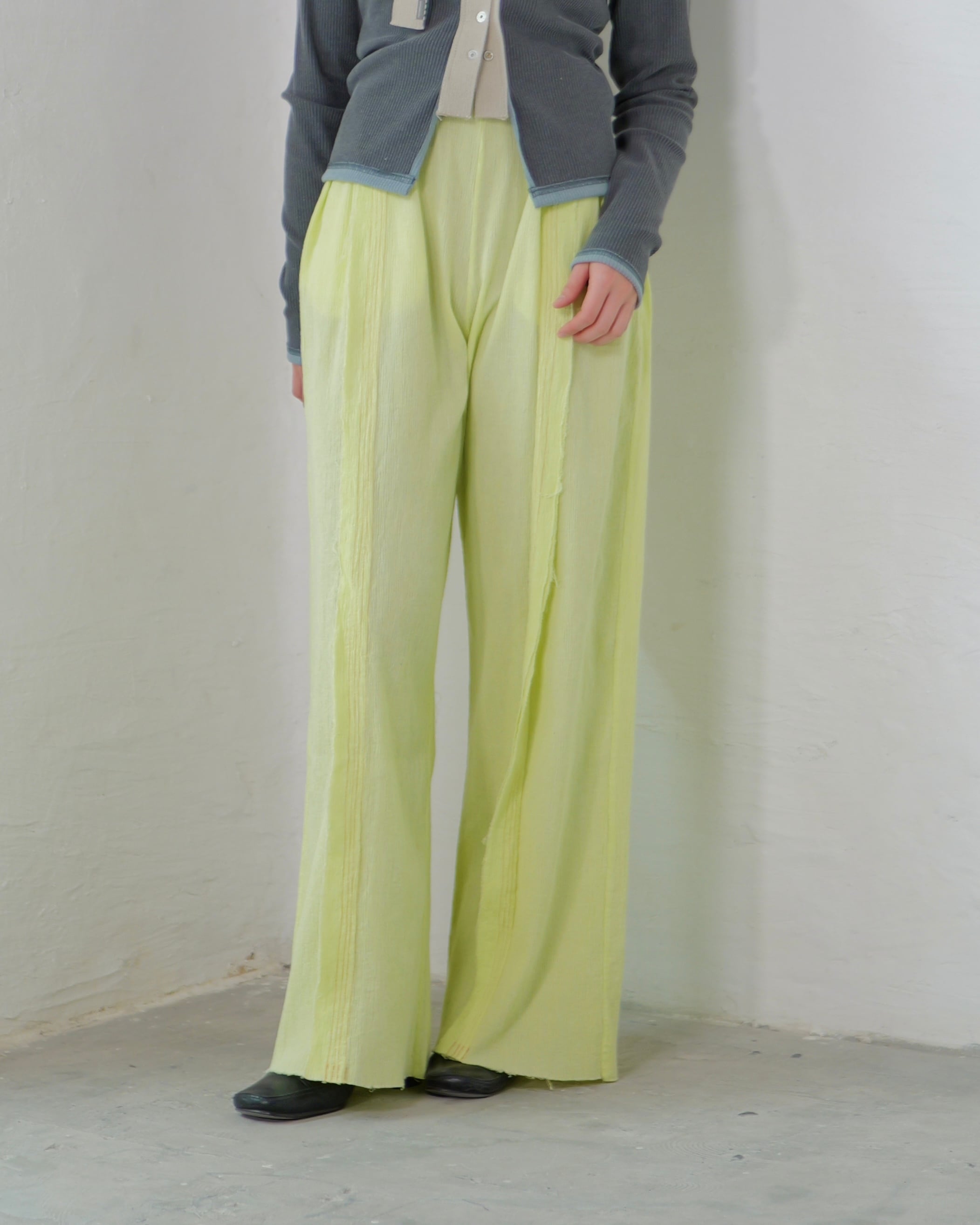 kotoha yokozawa - Azumadaki Yoryu Pants :Lime|東炊き製品染め/楊柳コットン/ステッチディテール
