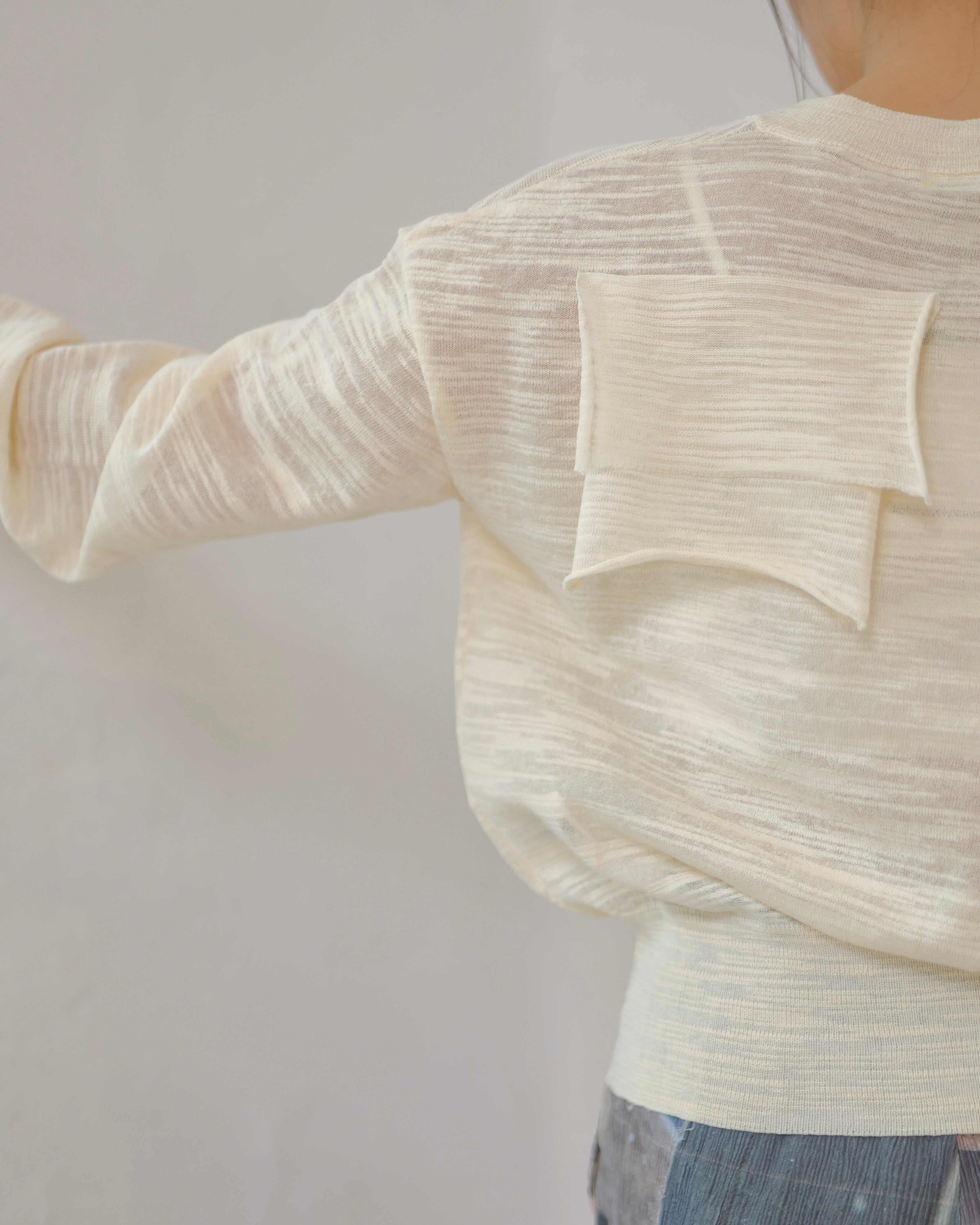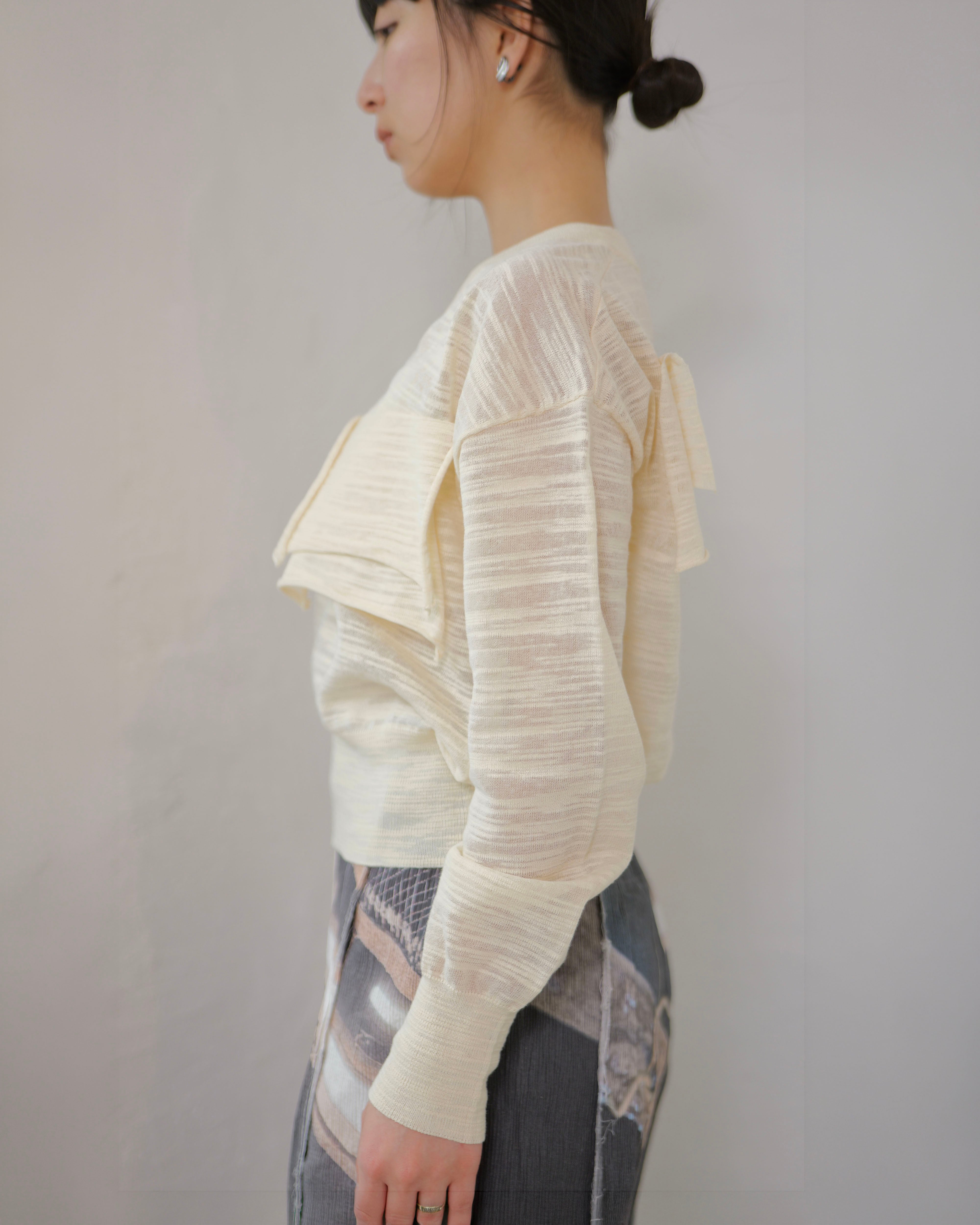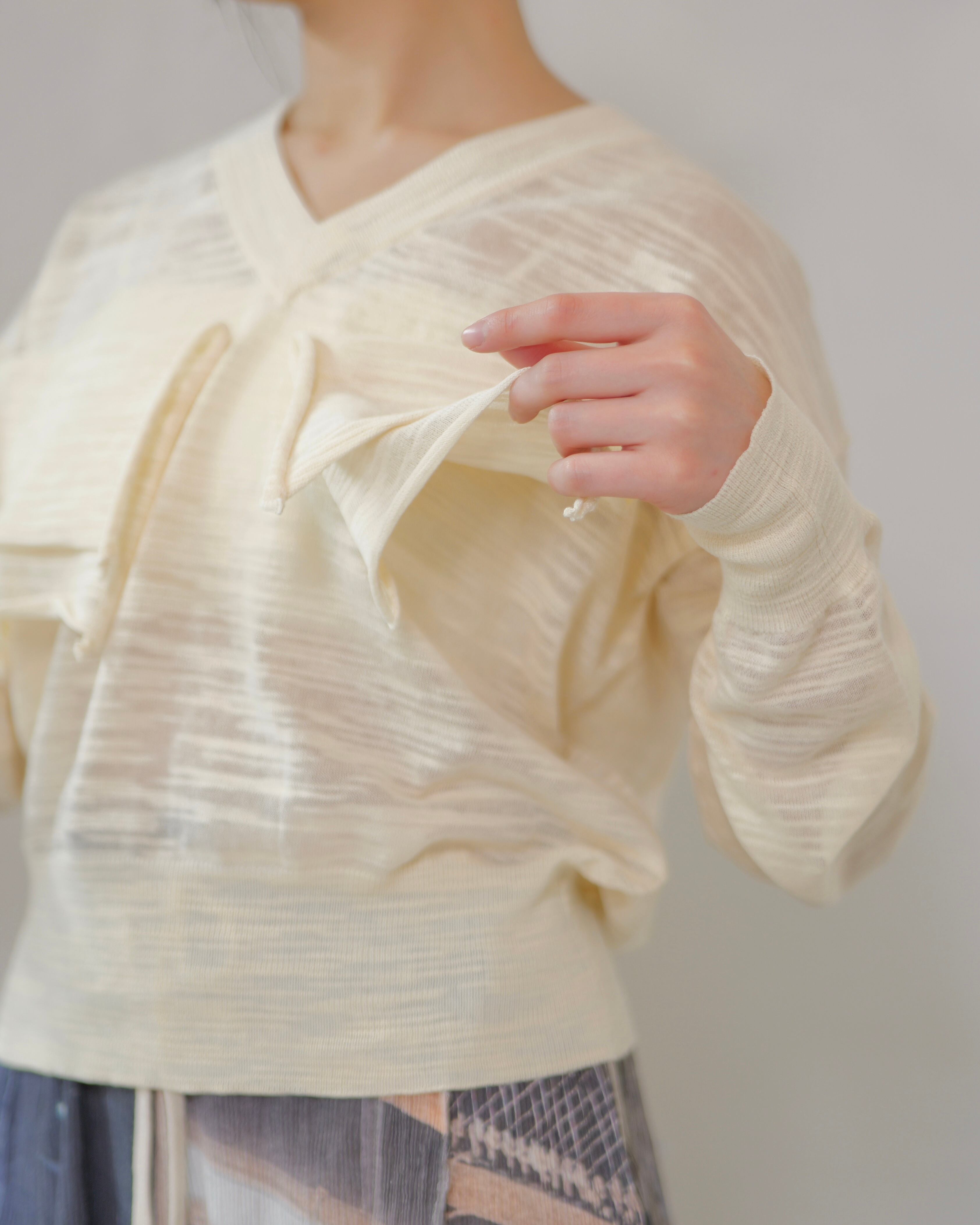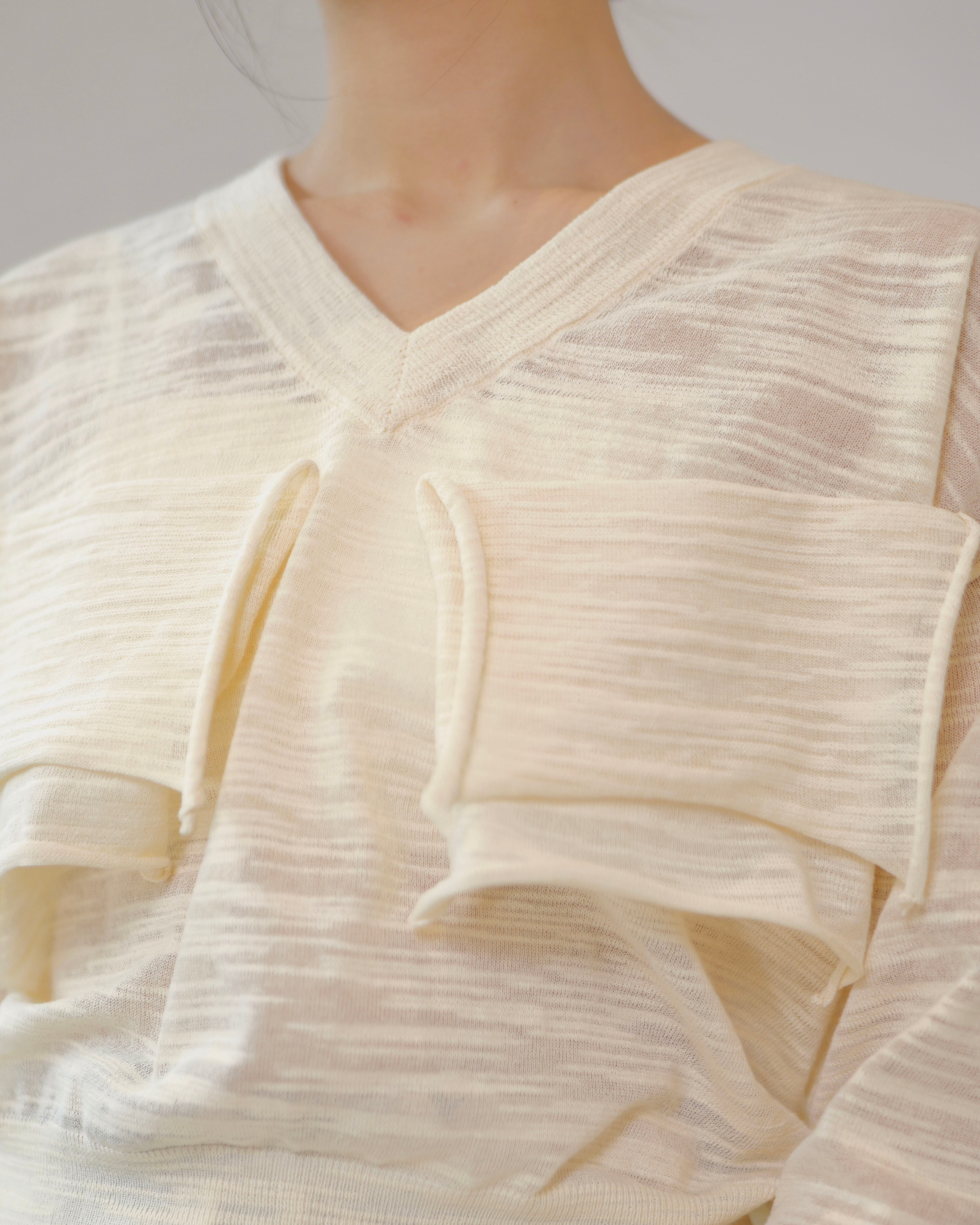 A sheer V-neck knit shaped by todo’s signature “decoration.”