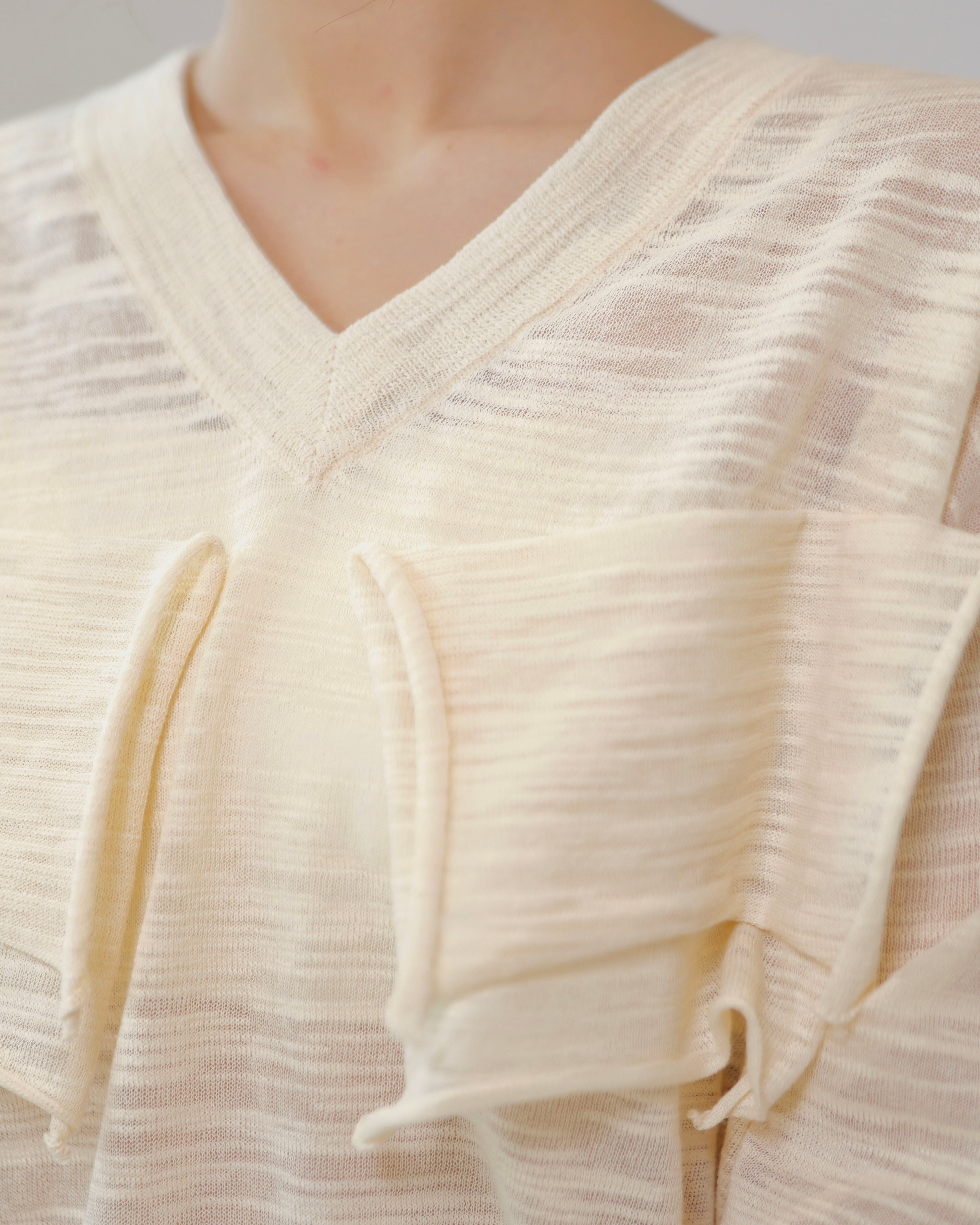 • 透け感のあるVネックで、抜けと軽さをつくる