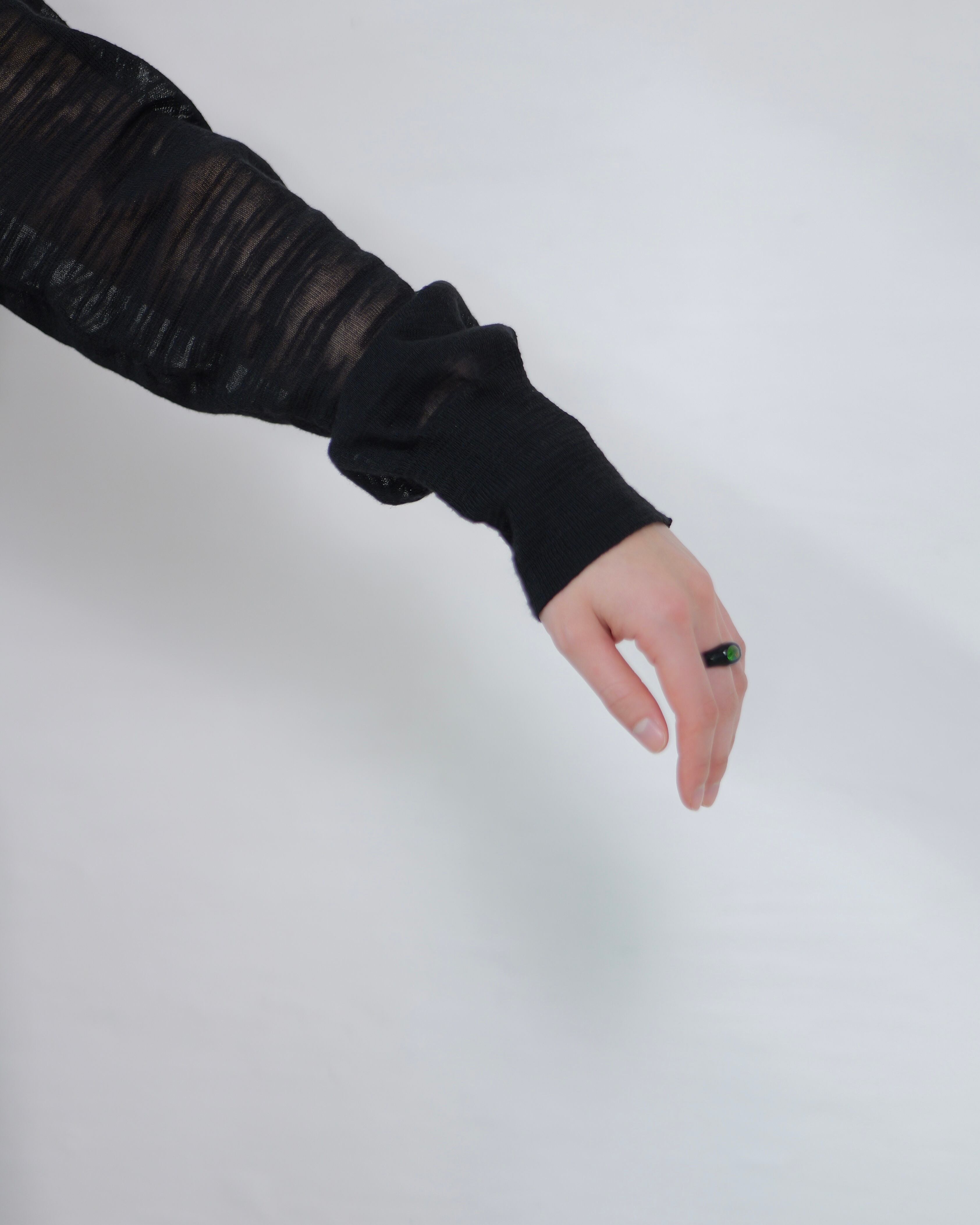 透け感の中に陰影が生まれて、インナーの輪郭が控えめに浮かぶ黒です。