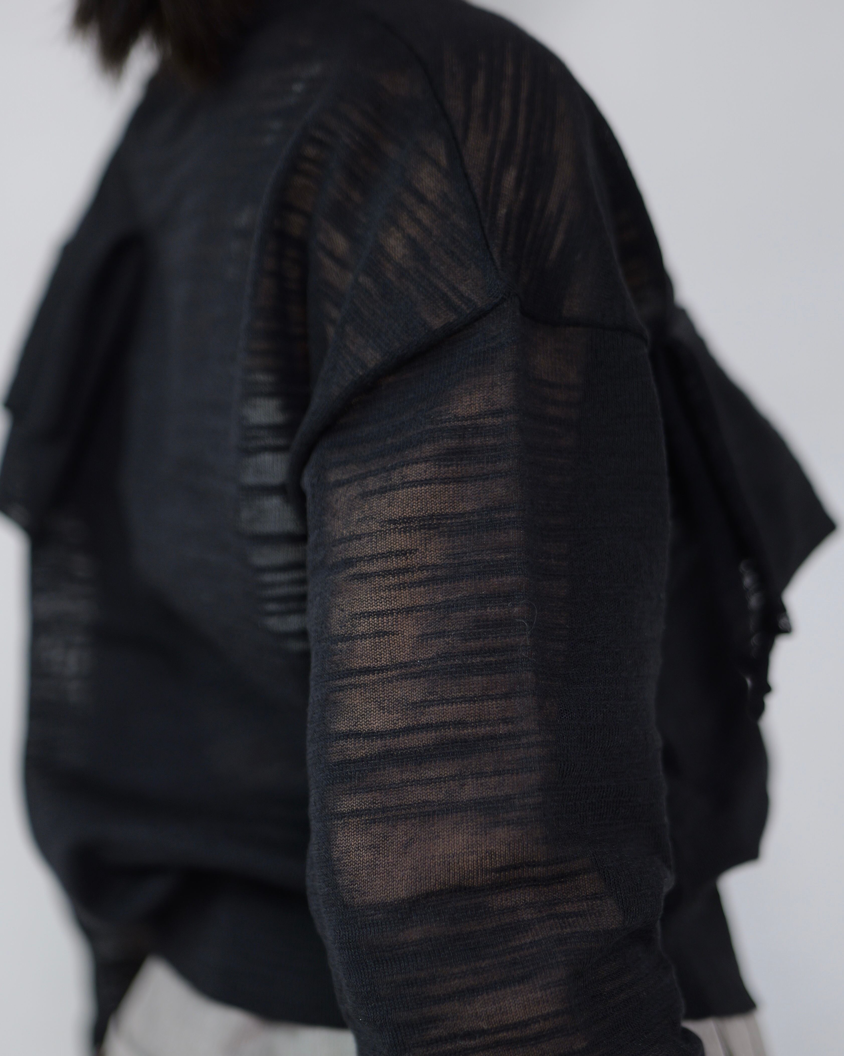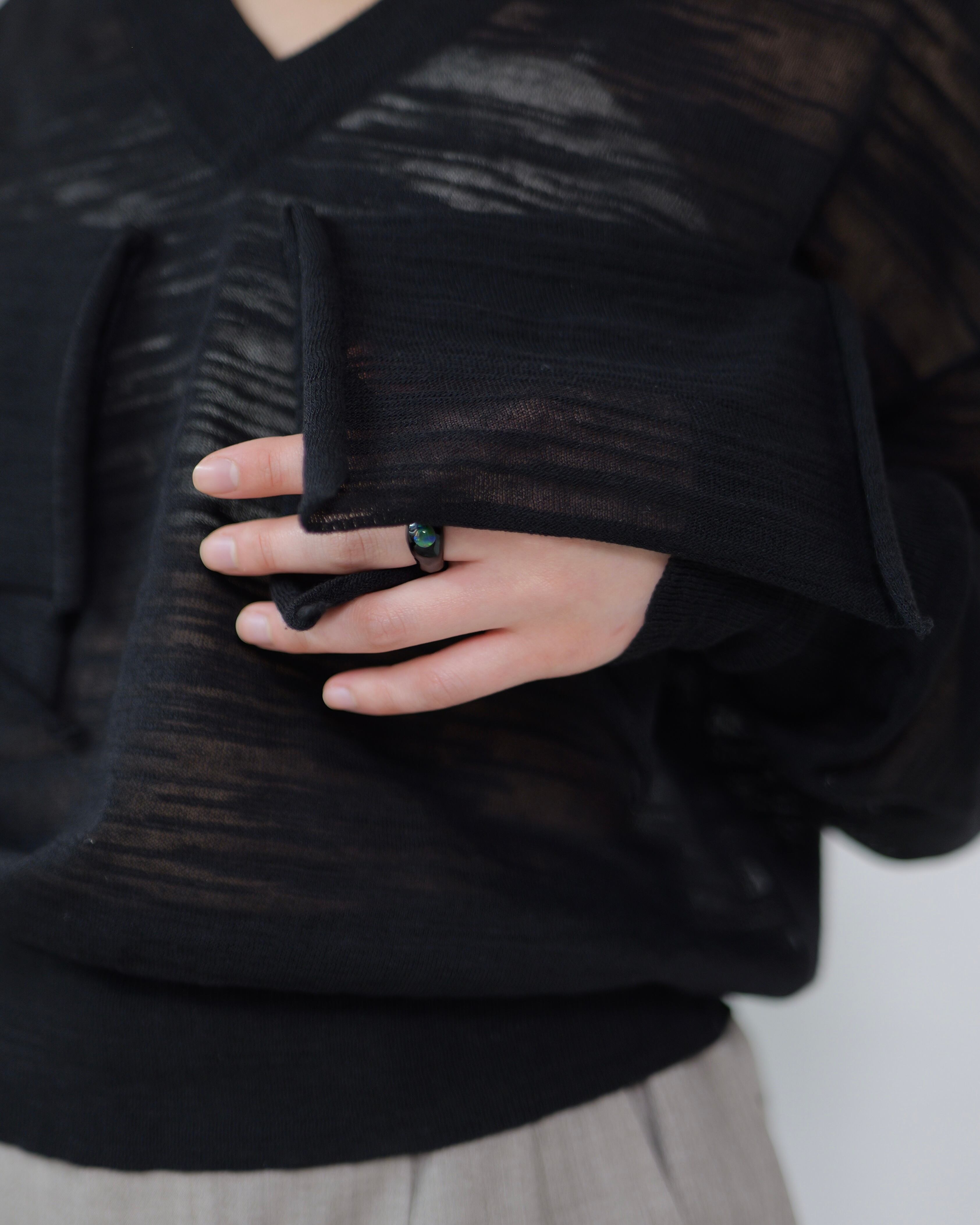 kotohayokozawa - TD V-NECK SHEER KNIT :Black|シアー/Vネック/デコレーション