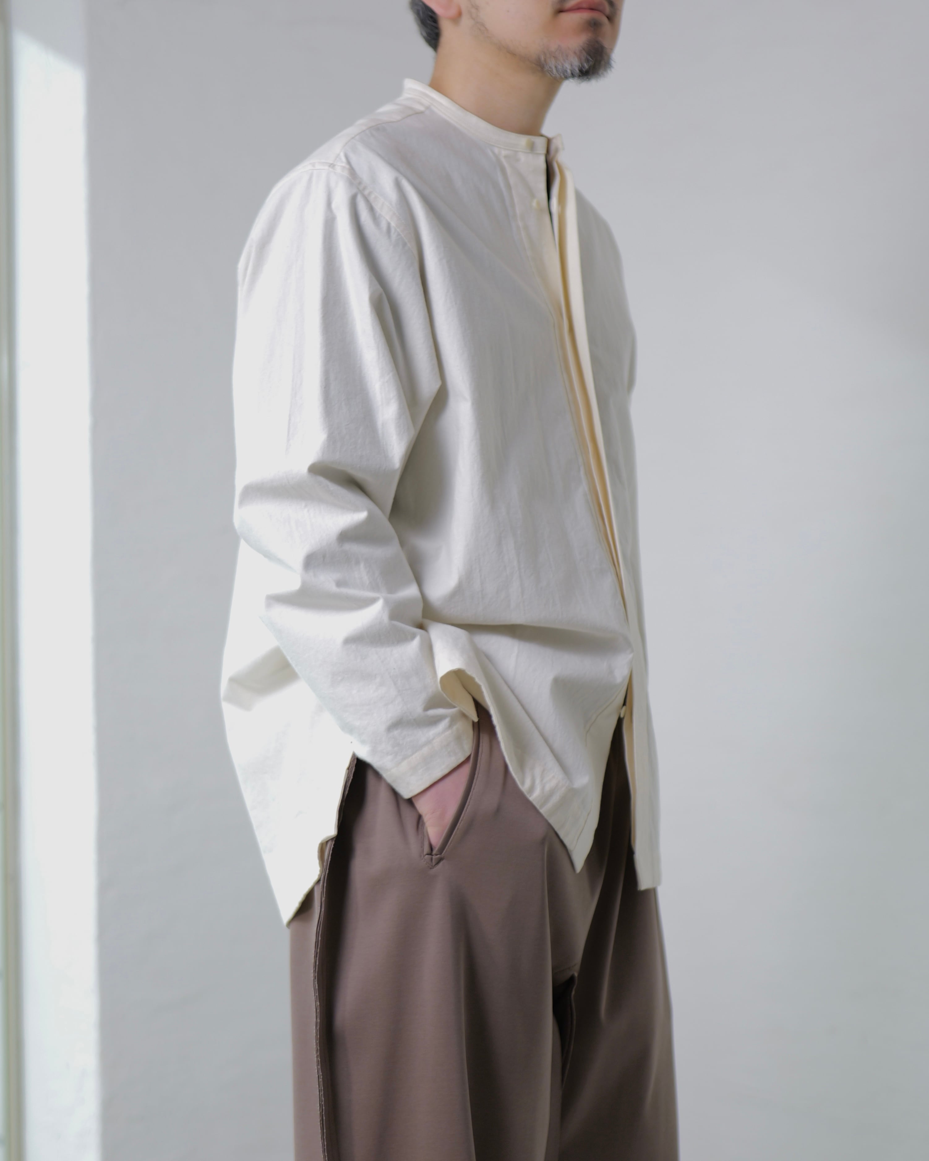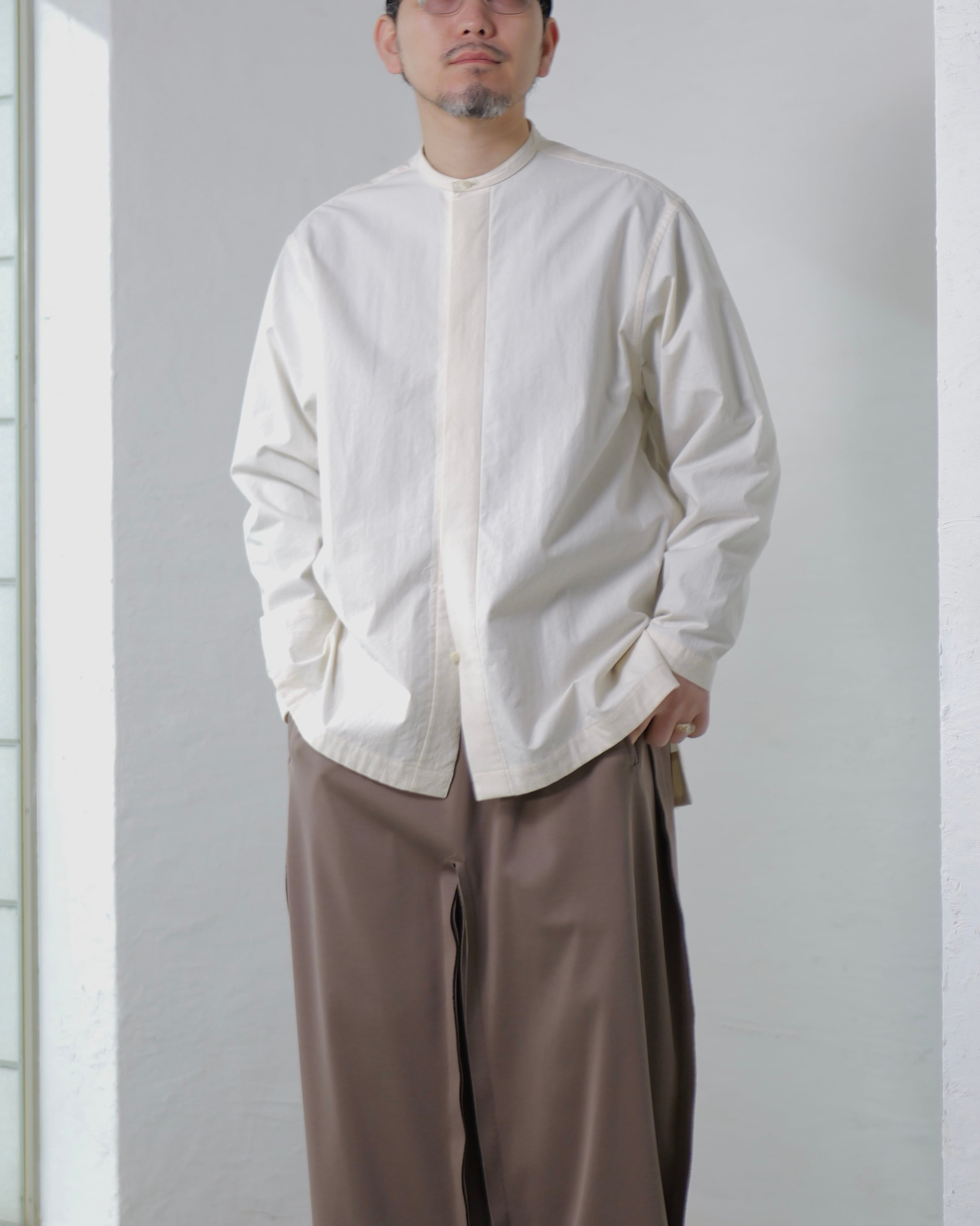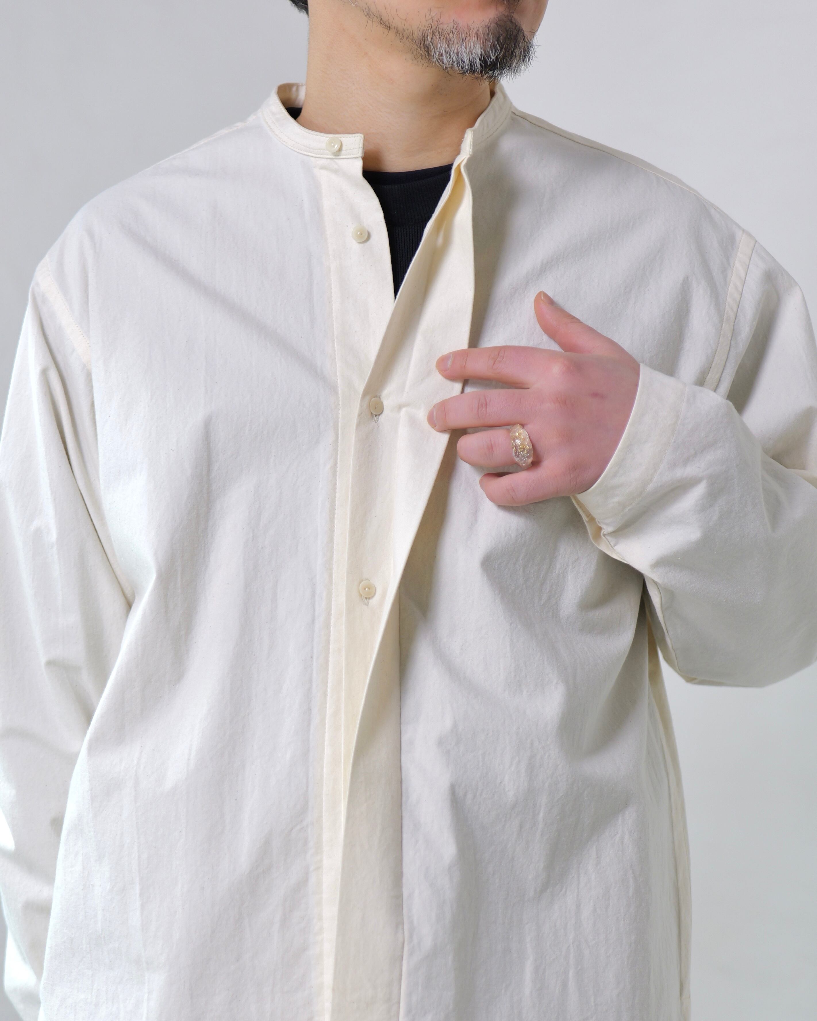 solar - Fly-front Shirt :écru|比翼シャツ/高密度馬布/ユニセックス/受注生産