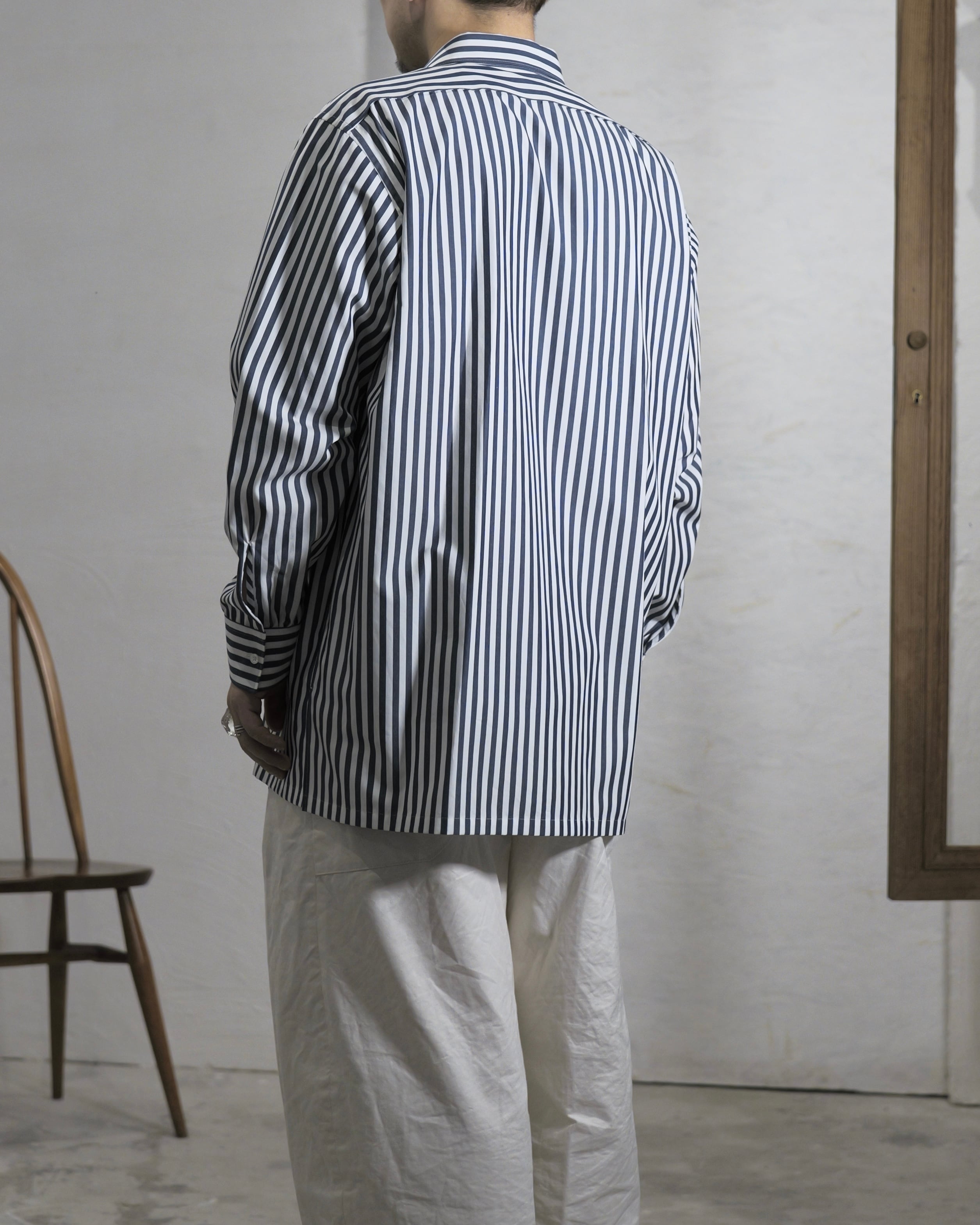 METHO メソ - Single yoke shirt シングルヨークシャツ / blue stripe ブルーストライプ / l unisex ユニセックス